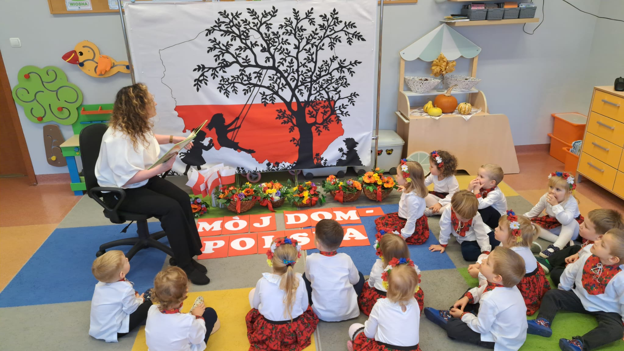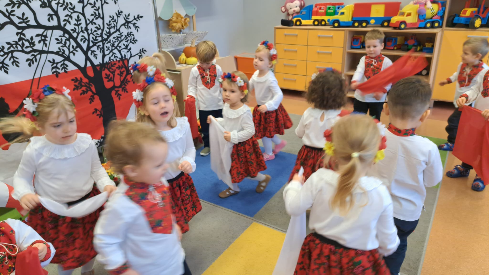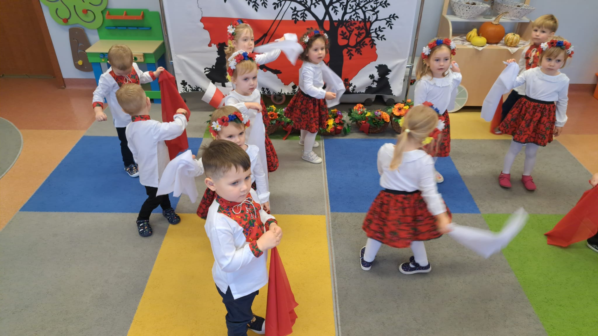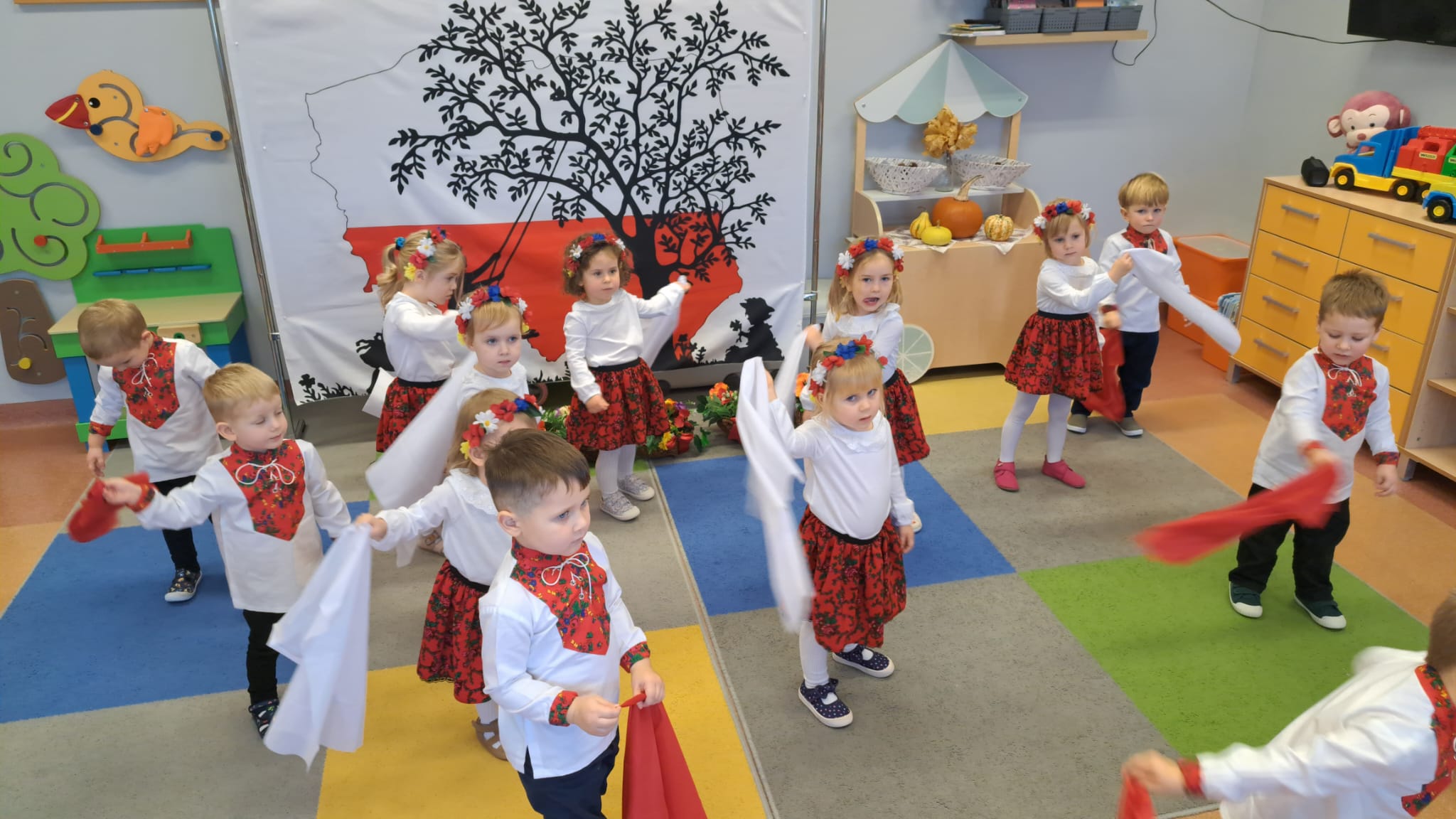 Listopad to jeden z tych miesięcy  w roku, kiedy częściej niż zwykle myślimy o patriotyzmie, Ojczyźnie, polskiej historii. A to za sprawą 11 listopada - Święta Niepodległości, które obchodzimy w przedszkolu co roku dla upamiętnienia rocznicy odzyskania przez Polskę niepodległości w 1918 roku po 123 latach rozbiorów. To nadchodzące święto stało się doskonałą okazją, aby już od najmłodszych lat uczyć nasze dzieci patriotyzmu, dumy z tego, że są Polakami, szacunku do własnej Ojczyzny, do symboli narodowych. Dziś  nasze maluszki przepięknie wystrojone z wielkim przejęciem i radością po raz pierwszy uroczyście świętowały ten wyjątkowy dla Nas – Polaków dzień…