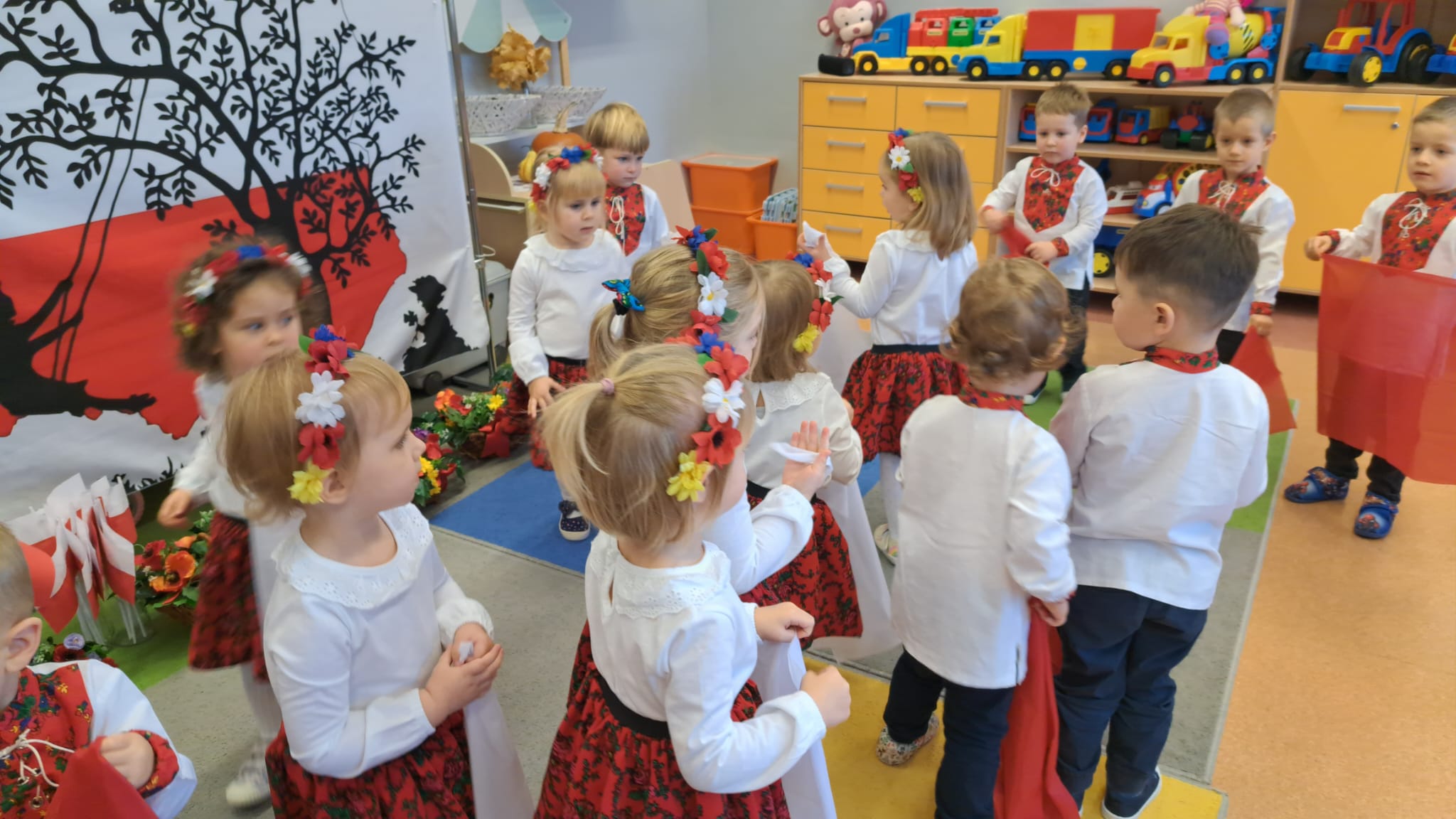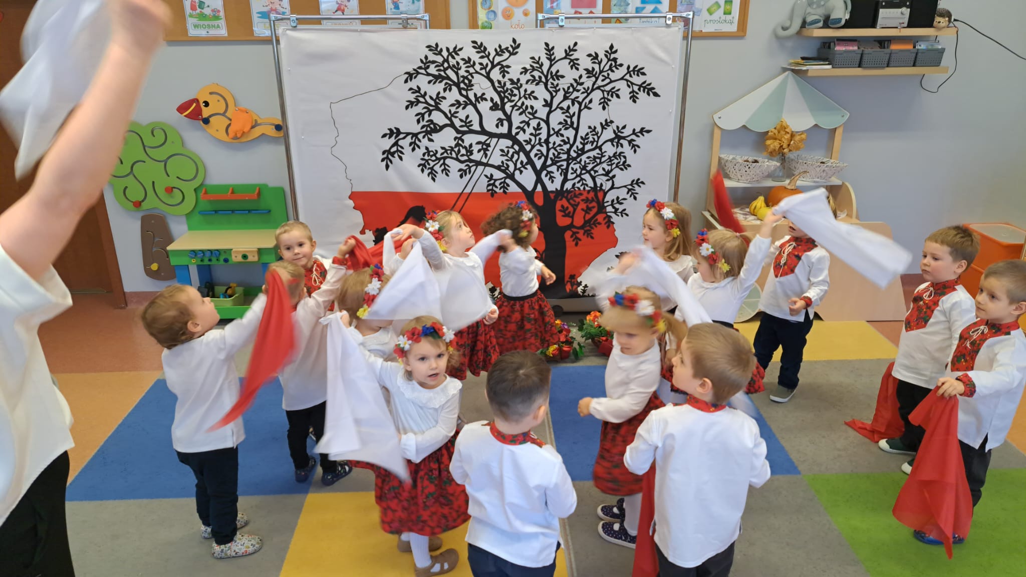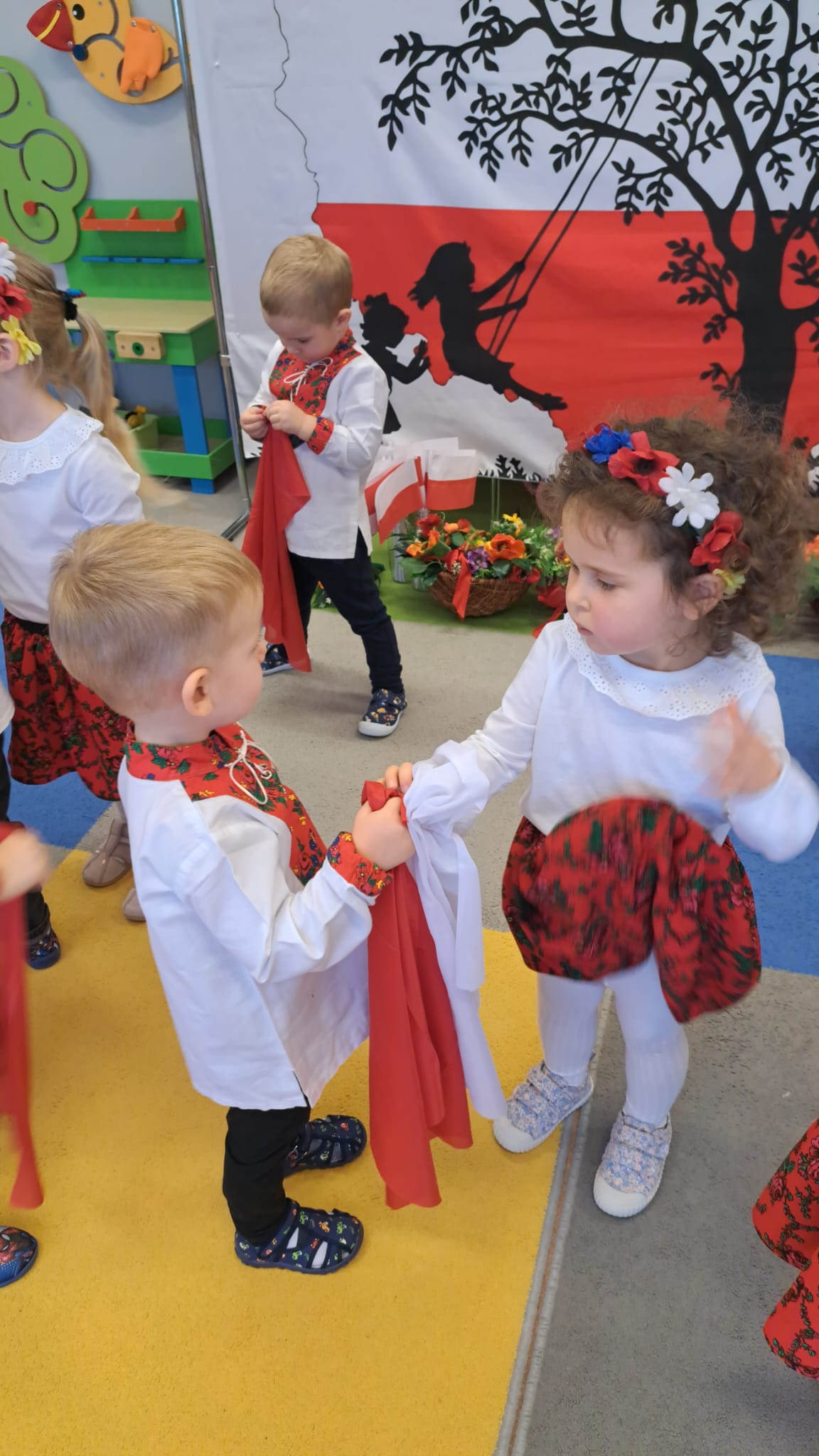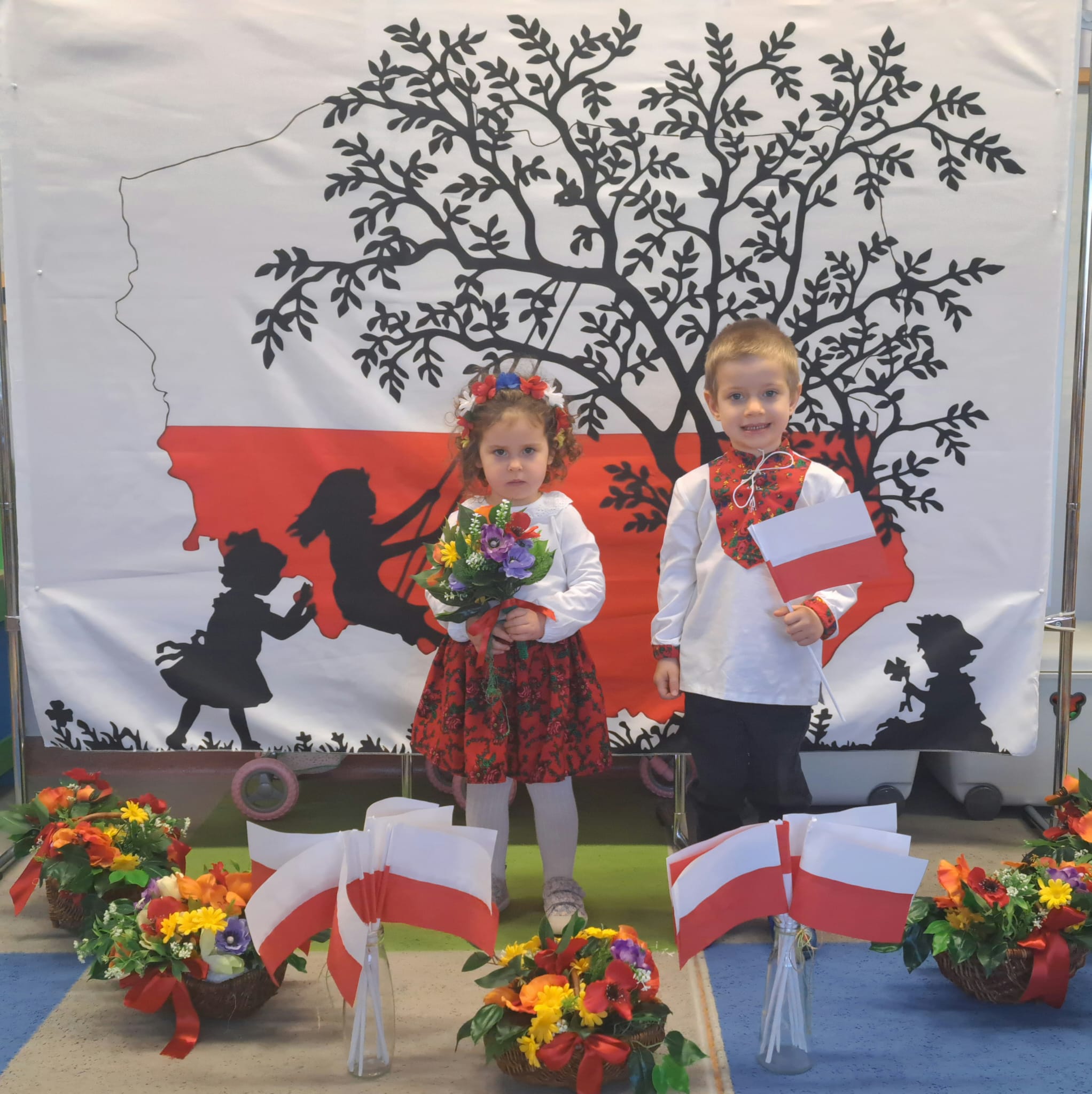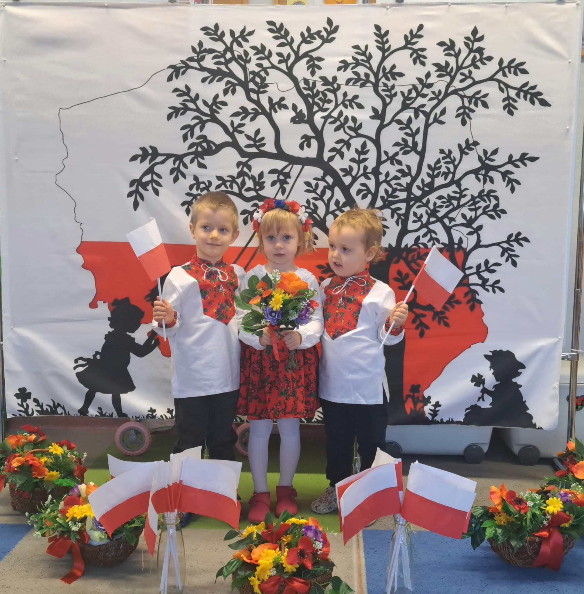 Listopad to jeden z tych miesięcy  w roku, kiedy częściej niż zwykle myślimy o patriotyzmie, Ojczyźnie, polskiej historii. A to za sprawą 11 listopada - Święta Niepodległości, które obchodzimy w przedszkolu co roku dla upamiętnienia rocznicy odzyskania przez Polskę niepodległości w 1918 roku po 123 latach rozbiorów. To nadchodzące święto stało się doskonałą okazją, aby już od najmłodszych lat uczyć nasze dzieci patriotyzmu, dumy z tego, że są Polakami, szacunku do własnej Ojczyzny, do symboli narodowych. Dziś  nasze maluszki przepięknie wystrojone z wielkim przejęciem i radością po raz pierwszy uroczyście świętowały ten wyjątkowy dla Nas – Polaków dzień…