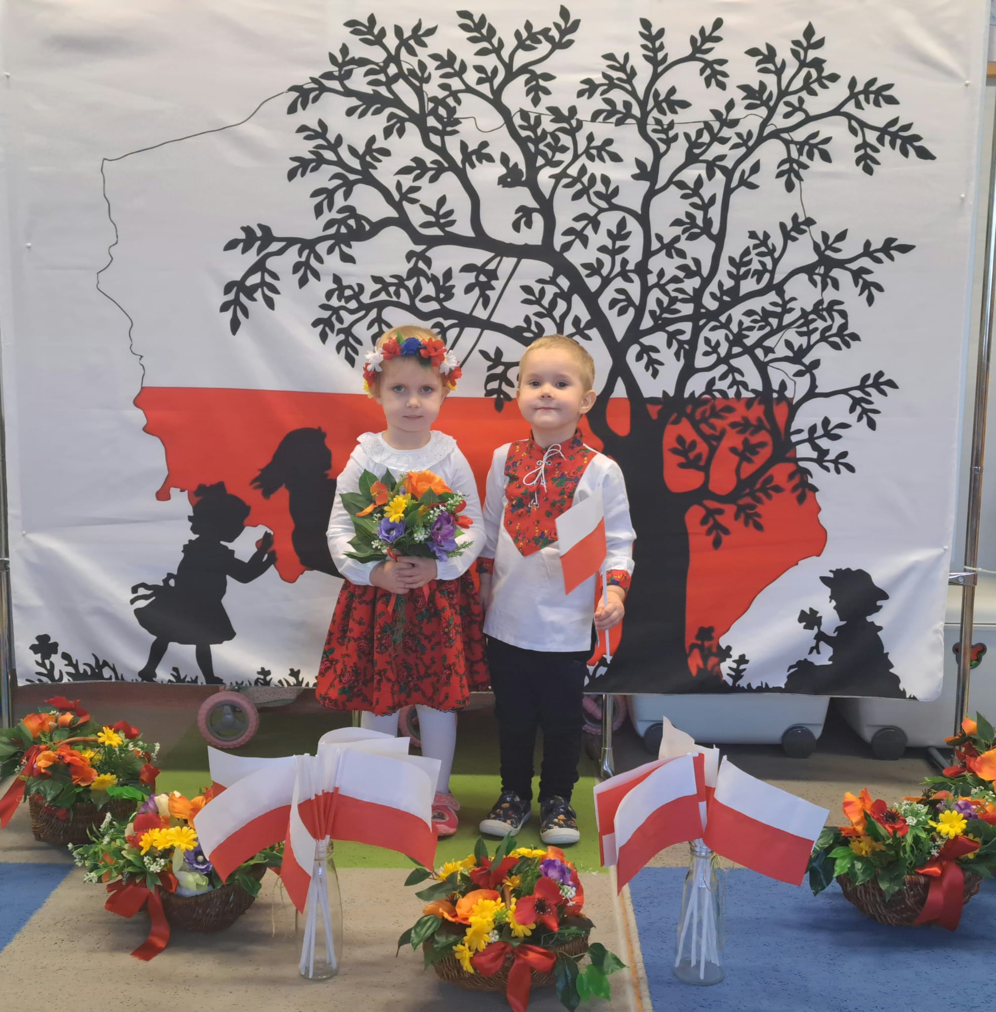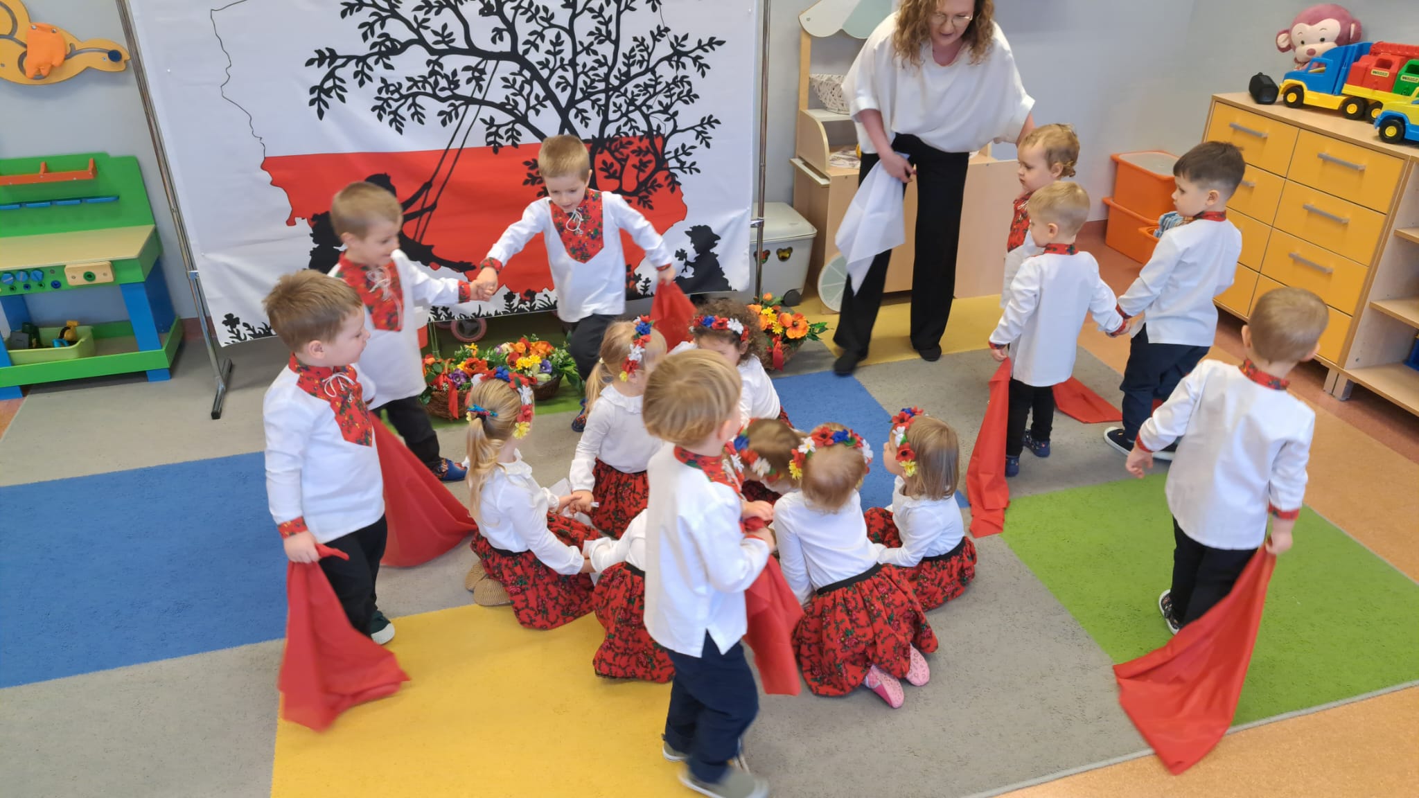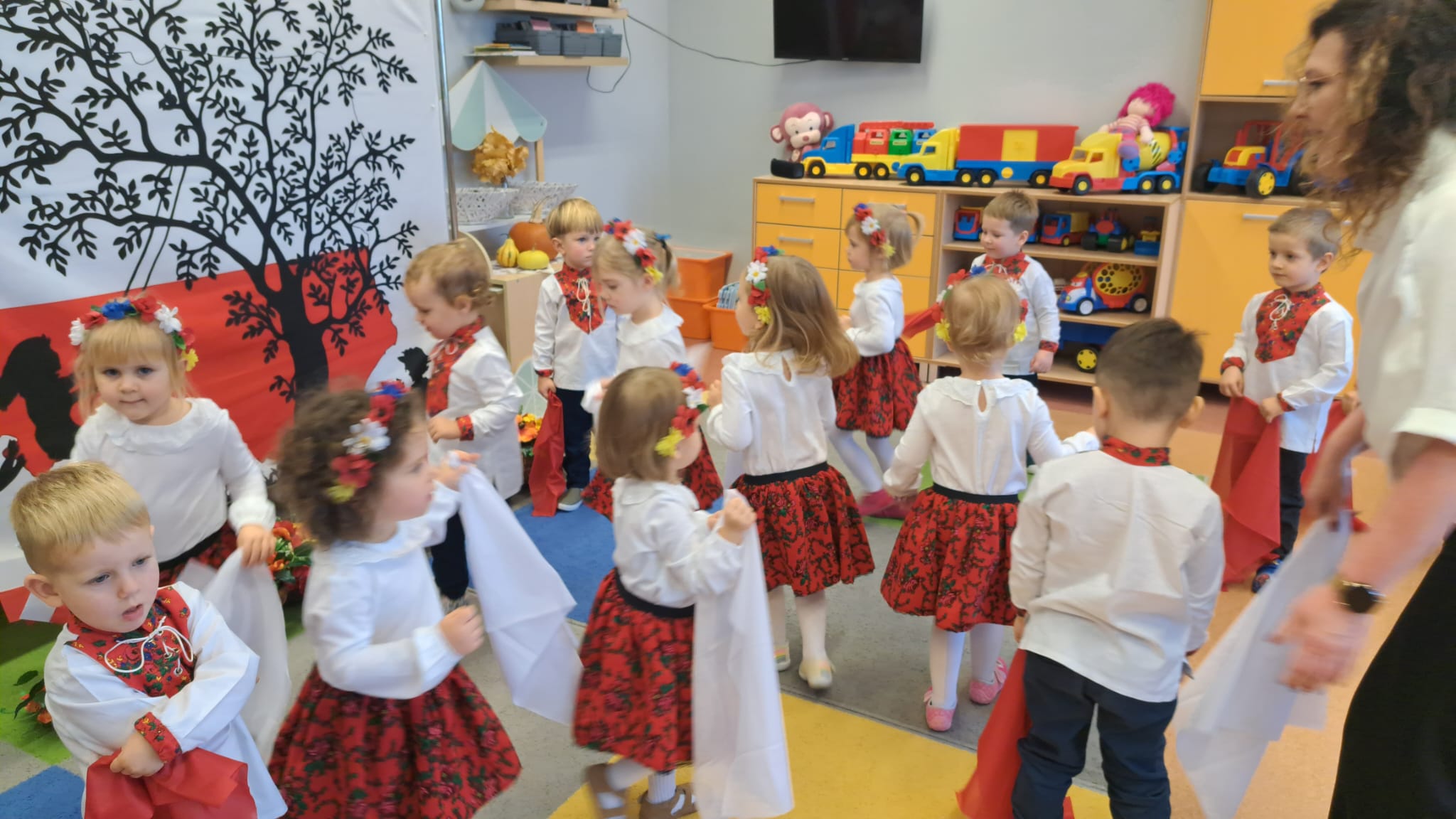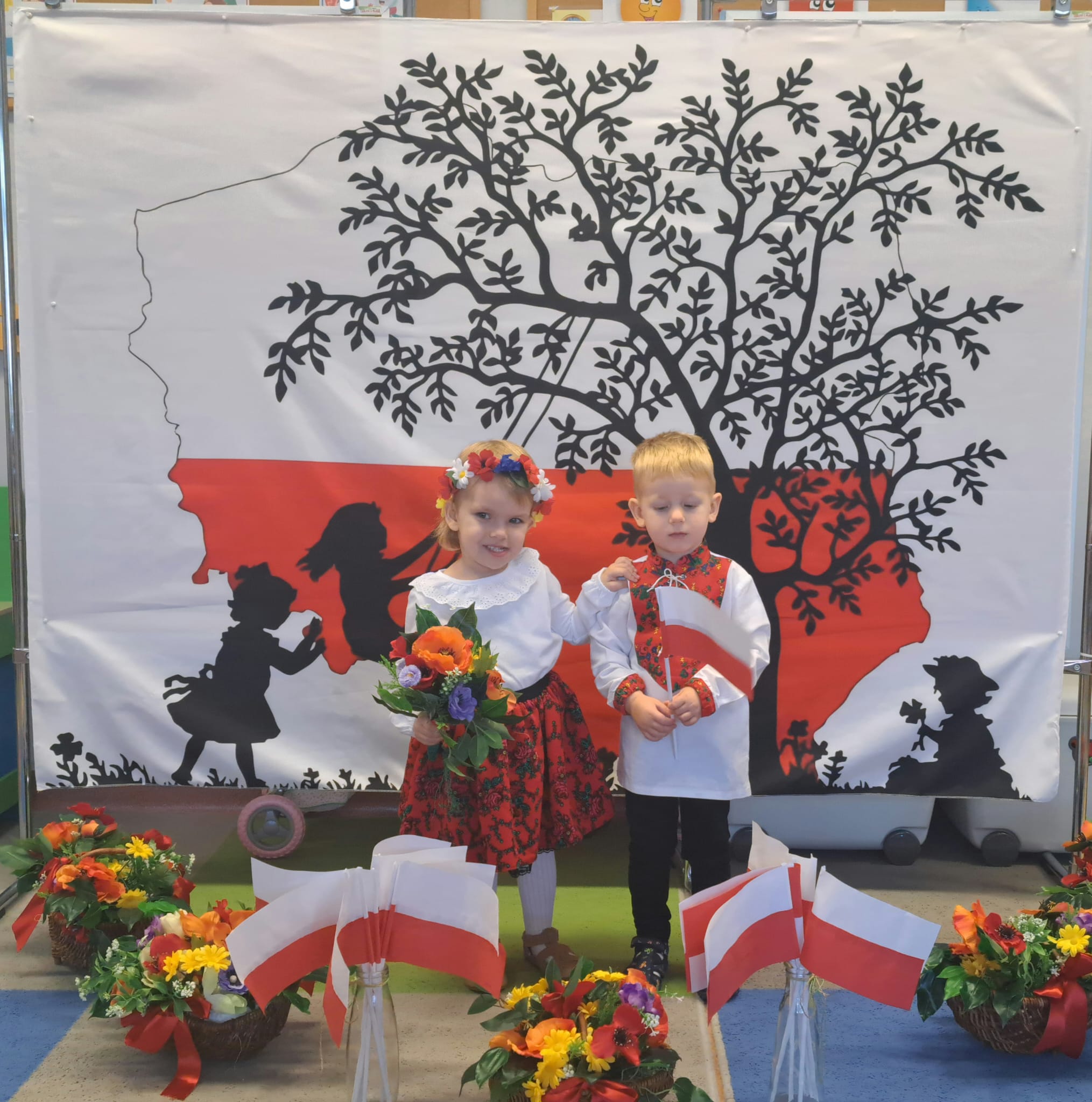 Listopad to jeden z tych miesięcy  w roku, kiedy częściej niż zwykle myślimy o patriotyzmie, Ojczyźnie, polskiej historii. A to za sprawą 11 listopada - Święta Niepodległości, które obchodzimy w przedszkolu co roku dla upamiętnienia rocznicy odzyskania przez Polskę niepodległości w 1918 roku po 123 latach rozbiorów. To nadchodzące święto stało się doskonałą okazją, aby już od najmłodszych lat uczyć nasze dzieci patriotyzmu, dumy z tego, że są Polakami, szacunku do własnej Ojczyzny, do symboli narodowych. Dziś  nasze maluszki przepięknie wystrojone z wielkim przejęciem i radością po raz pierwszy uroczyście świętowały ten wyjątkowy dla Nas – Polaków dzień…