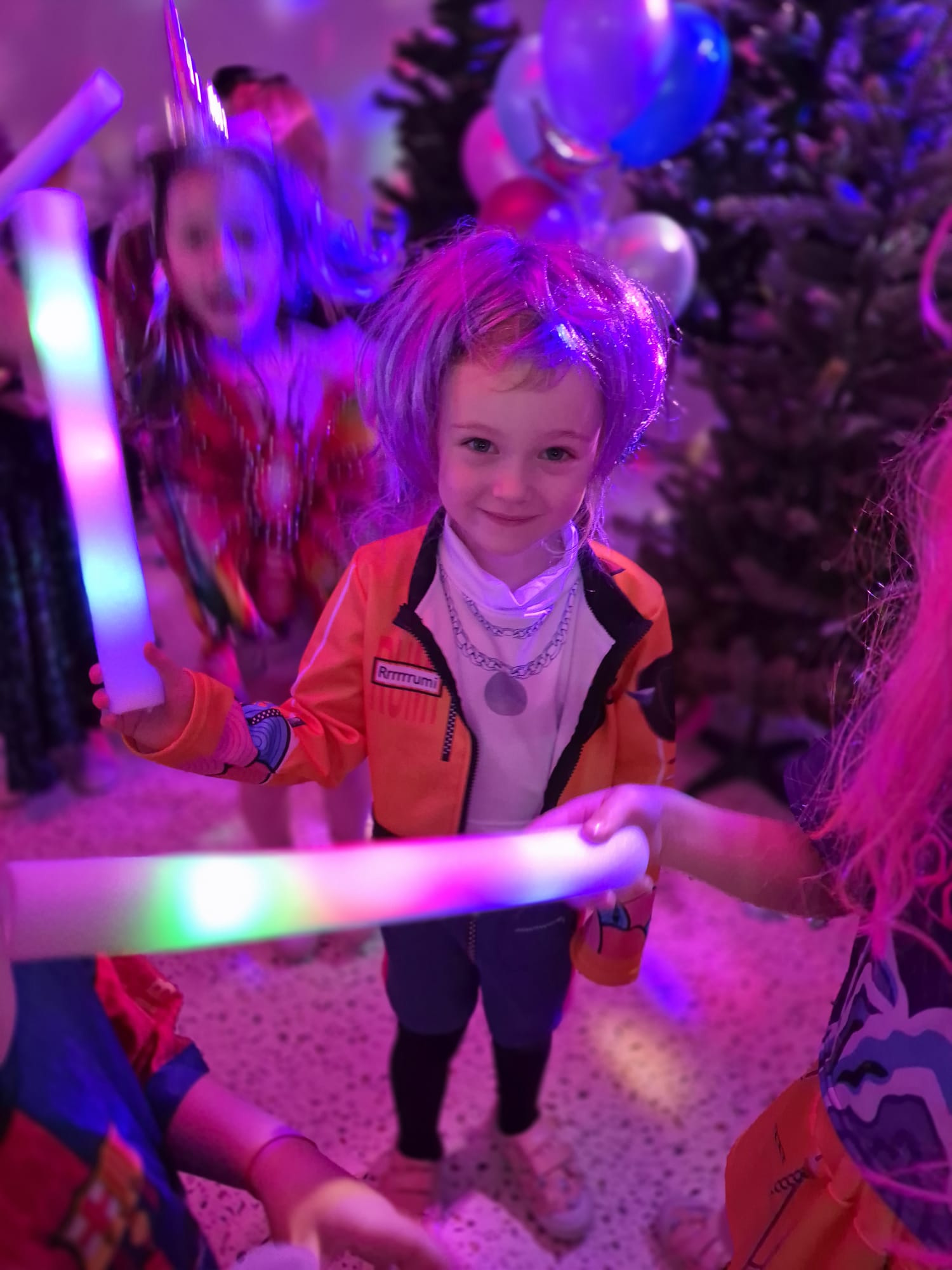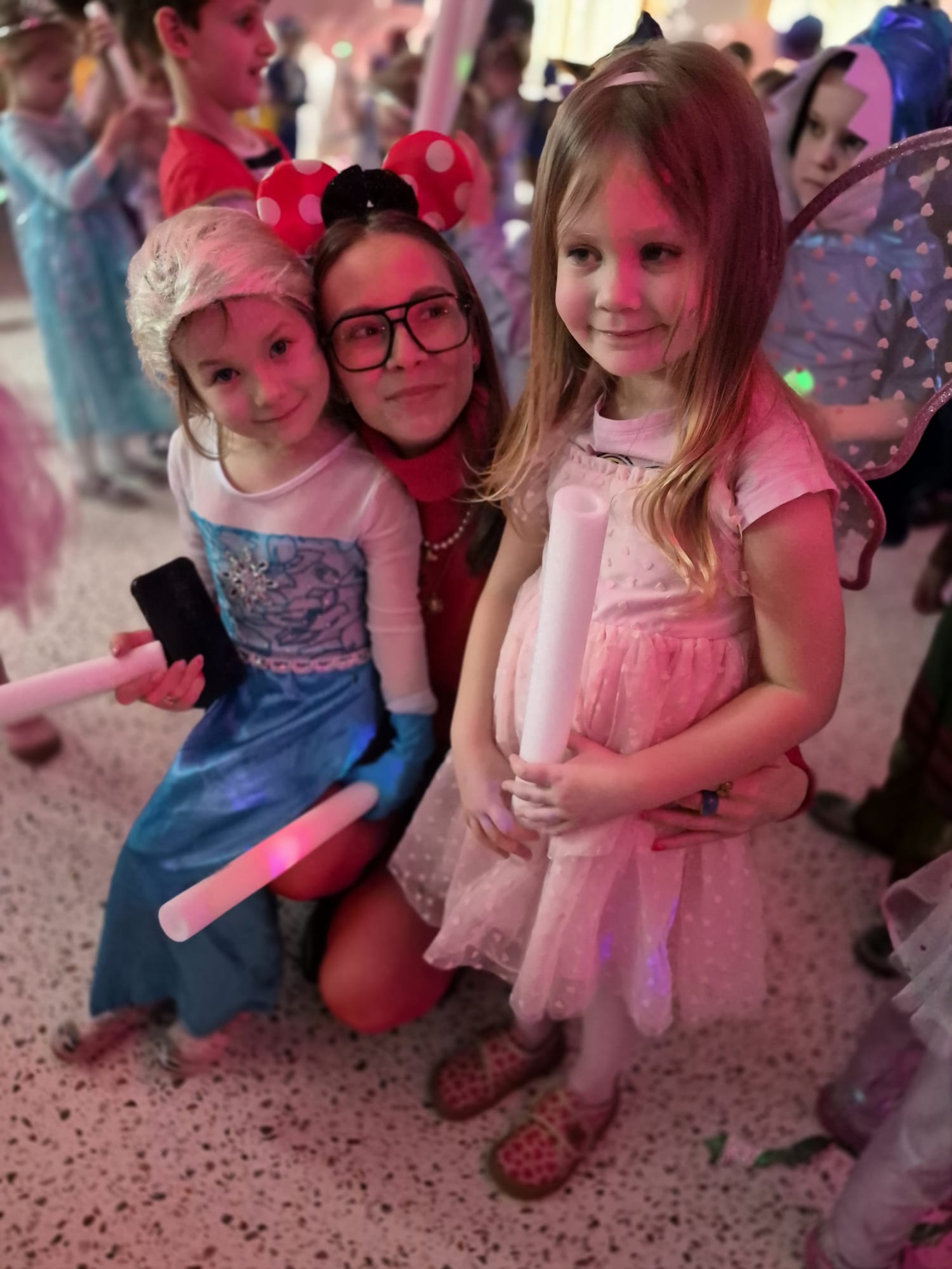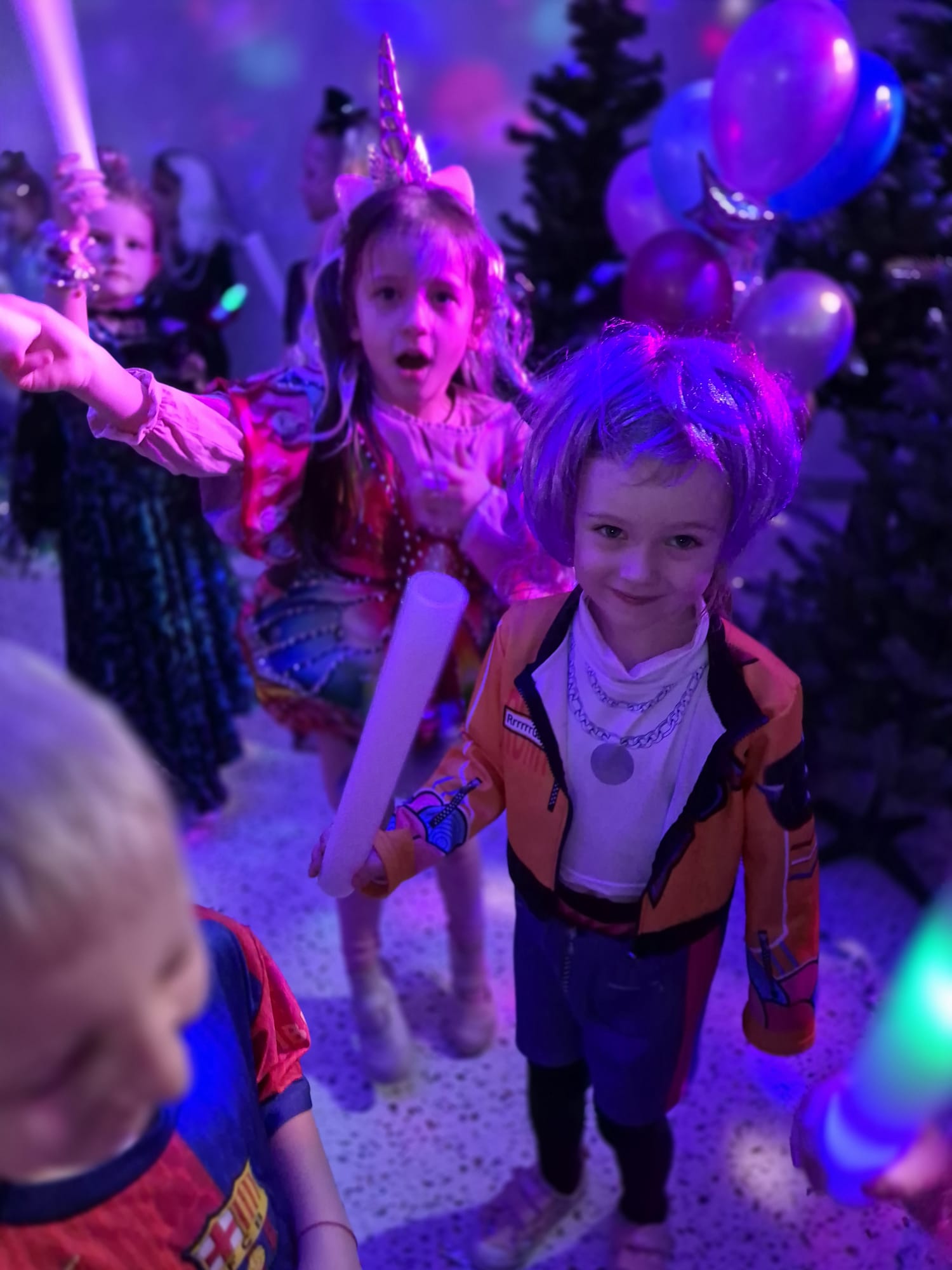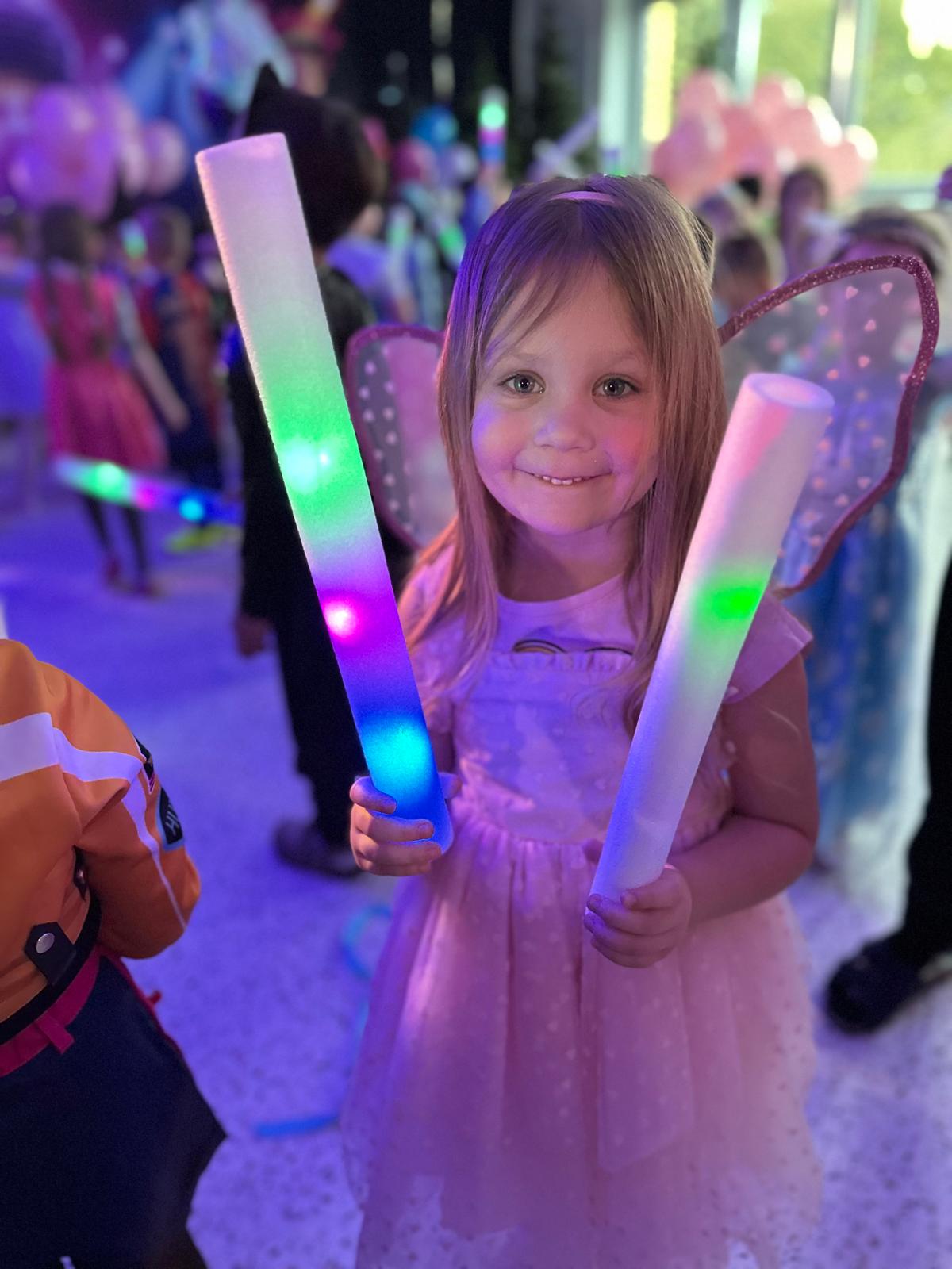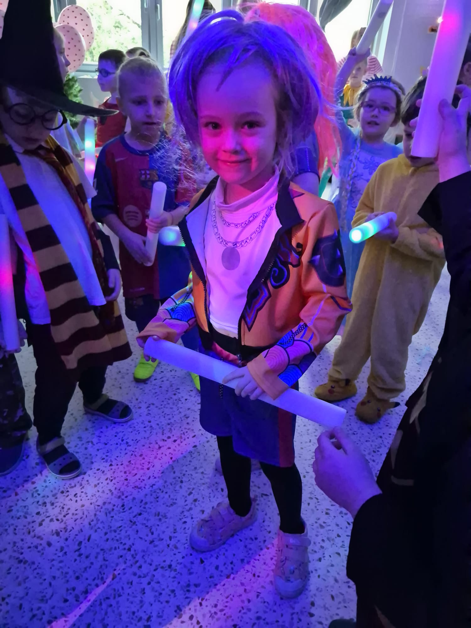 Nie zabrakło także wspaniałych zabaw z magicznymi świecącymi pałeczkami, czy wesołych konkursów do znanych i lubianych przez dzieci utworów z dziecięcych playlist. Wspólne zabawy poprzedzone zostały słodkim poczęstunkiem i wspólnymi rozmowami o bohaterach ze swoich kostiumów.