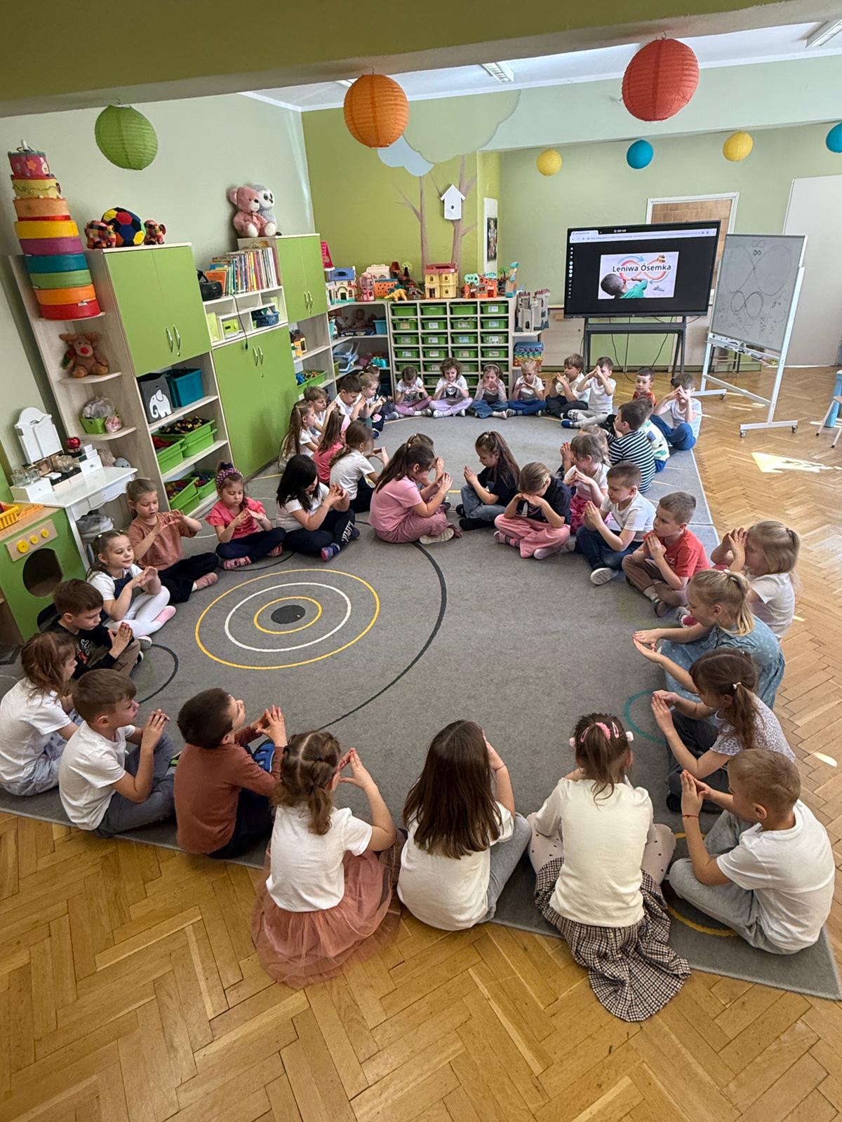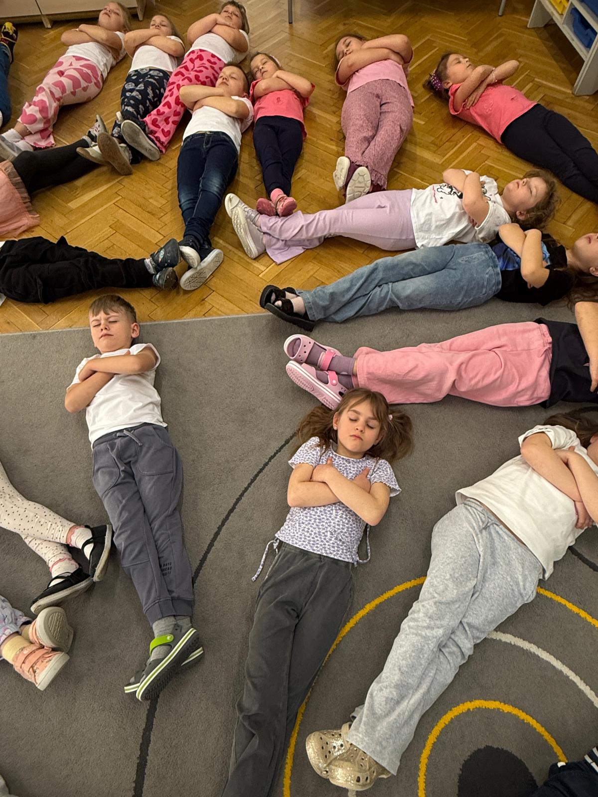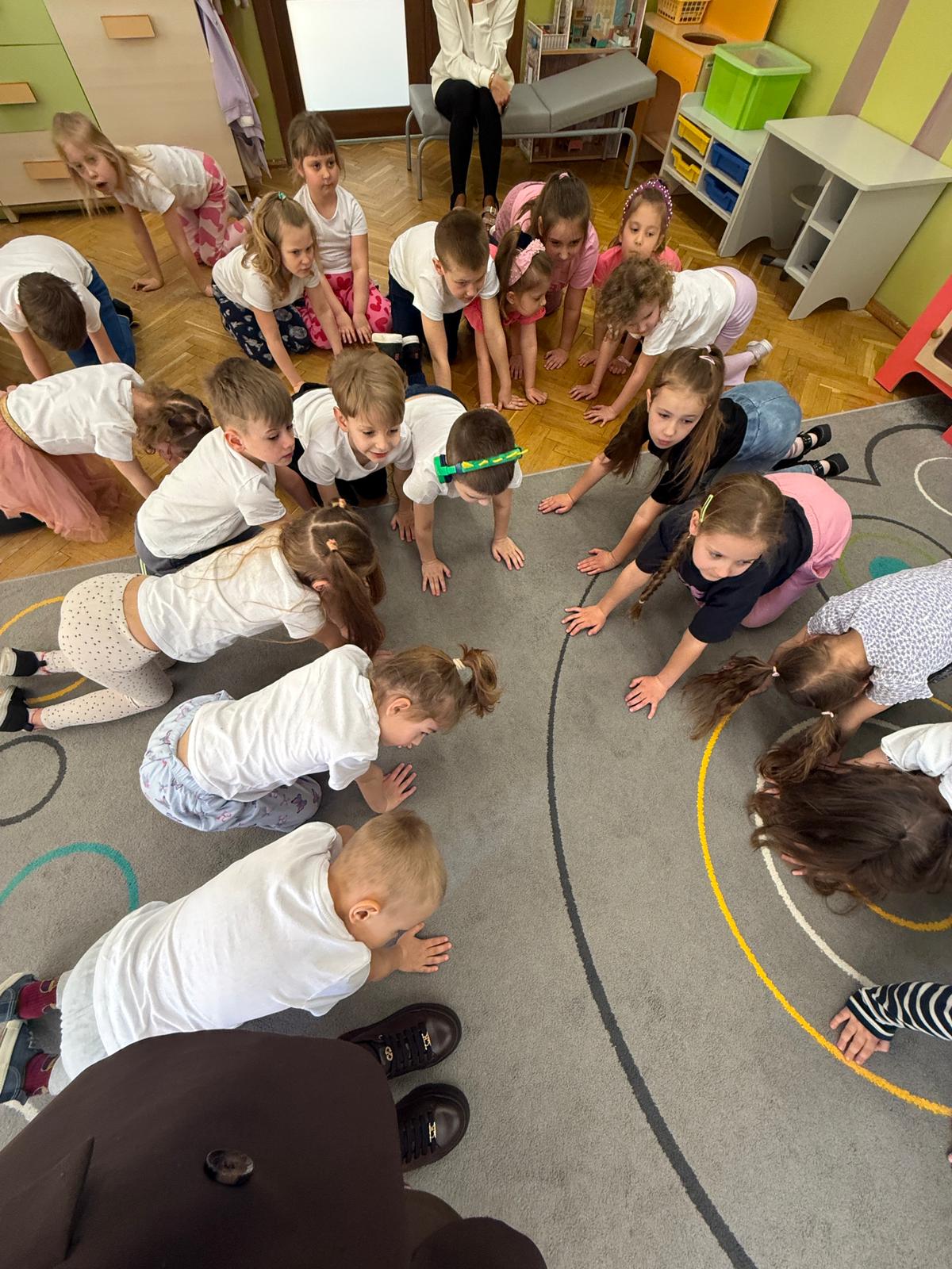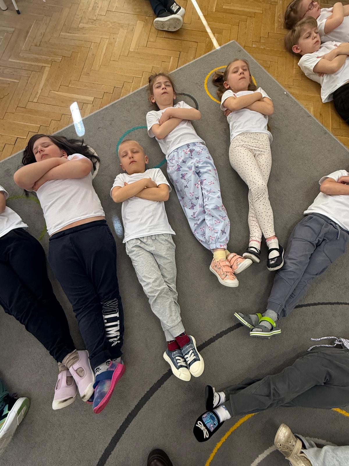 W grupie IV i VI odbyły się zajęcia koleżeńskie oparte na metodzie Kinezjologii Edukacyjnej, inaczej zwanej Gimnastyki Mózgu, opracowanej przez Paula Dennisona. Głównym celem tej metody jest: wspieranie integracji pracy obu półkul mózgowych; poprawa koncentracji i uwagi dzieci; rozwijanie koordynacji wzrokowo-ruchowej; usprawnianie motoryki dużej i małej; redukowanie napięcia i stresu u dzieci; wspieranie procesów uczenia się (czytania, pisania, liczenia); rozwijanie orientacji w schemacie własnego ciała. Zajęcia rozpoczęły się od krótkiego wprowadzenia i rozmowy z dziećmi o tym, dlaczego ruch jest ważny dla naszego mózgu. Następnie dzieci wykonywały serię prostych ćwiczeń ruchowych charakterystycznych dla gimnastyki mózgu. Wśród nich znalazły się m.in. ruchy naprzemienne, leniwe ósemki, ćwiczenie „słoń", punkty na myślenie czy pozycja Cooka. Zajęcia miały formę zabawy ruchowej, dzięki czemu dzieci chętnie i aktywnie w nich uczestniczyły zwracając szczególną uwagę na oddech, koncentrację oraz płynność ruchów. Ćwiczenia sprawiły dzieciom wiele radości, a jednocześnie przyniosły pozytywne efekty: pomogły im się wyciszyć, lepiej skupić uwagę i rozwinąć sprawność ruchową. Zajęcia pokazały, że proste ćwiczenia ruchowe mogą w ciekawy sposób wspierać rozwój dziecka i przygotowywać je do dalszej nauki.
