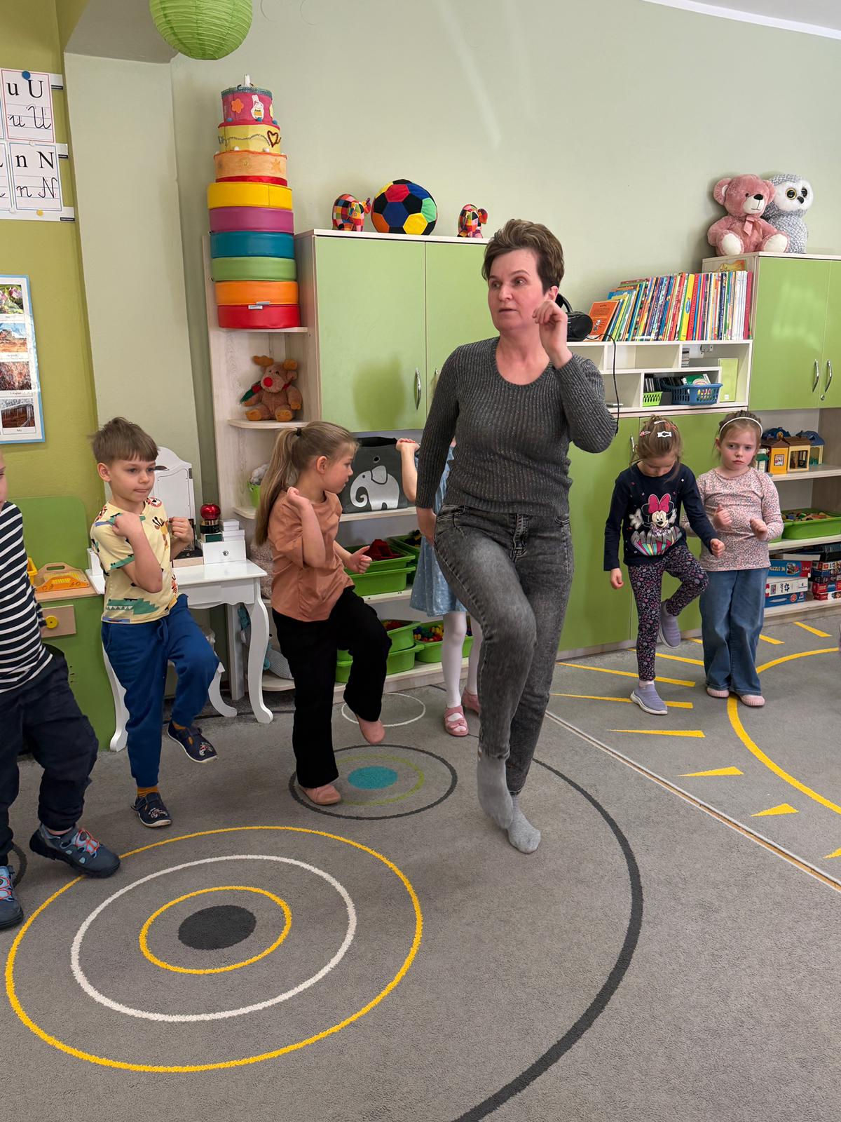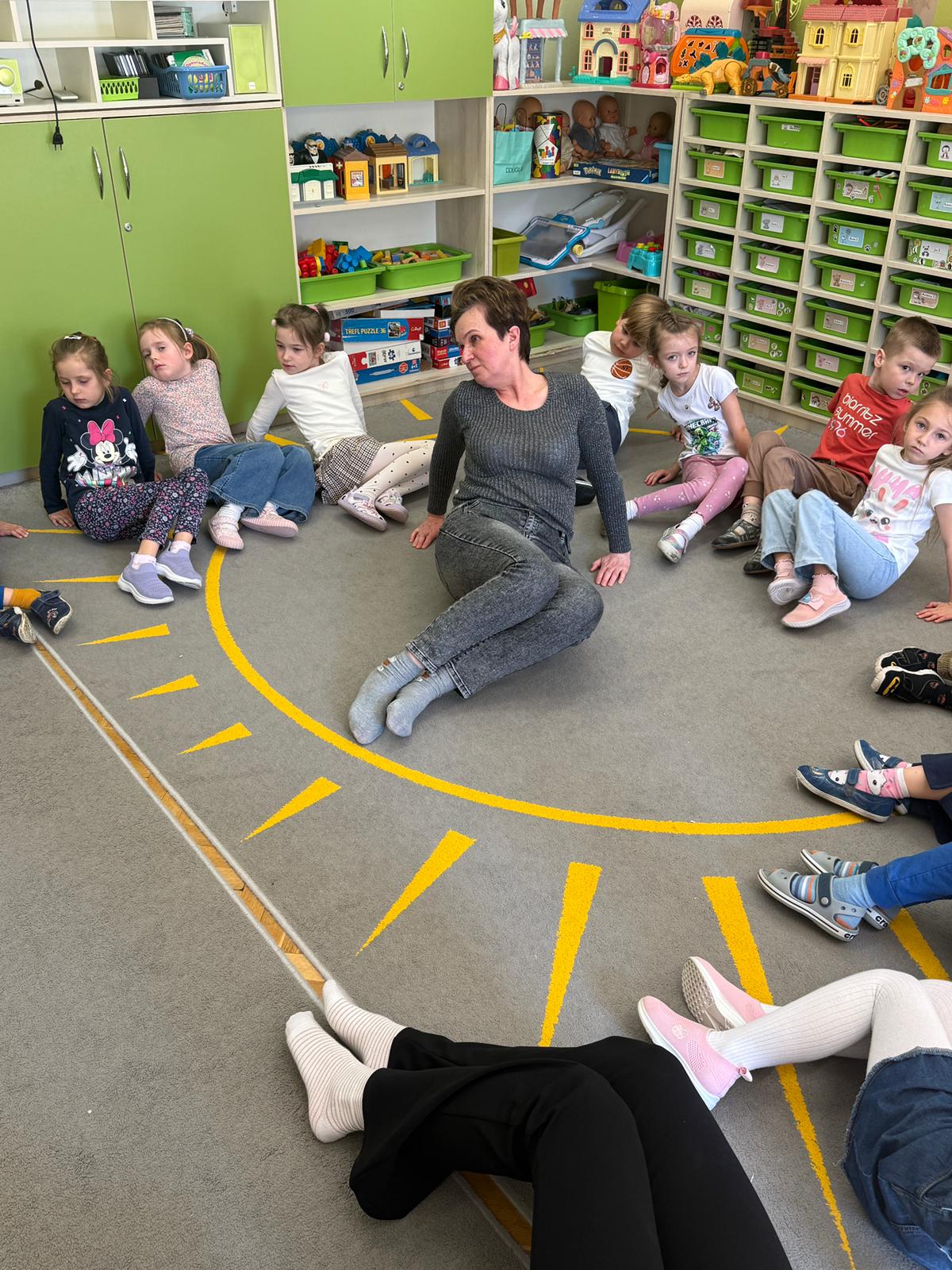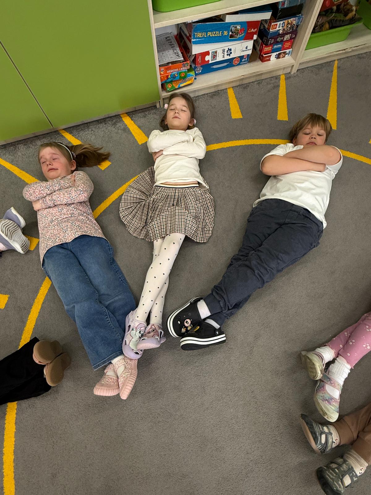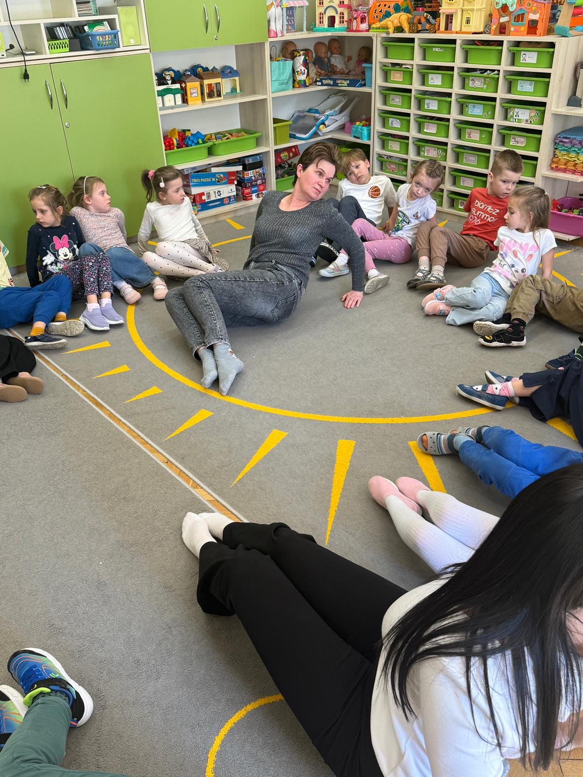 W grupie IV i VI odbyły się zajęcia koleżeńskie oparte na metodzie Kinezjologii Edukacyjnej, inaczej zwanej Gimnastyki Mózgu, opracowanej przez Paula Dennisona. Głównym celem tej metody jest: wspieranie integracji pracy obu półkul mózgowych; poprawa koncentracji i uwagi dzieci; rozwijanie koordynacji wzrokowo-ruchowej; usprawnianie motoryki dużej i małej; redukowanie napięcia i stresu u dzieci; wspieranie procesów uczenia się (czytania, pisania, liczenia); rozwijanie orientacji w schemacie własnego ciała. Zajęcia rozpoczęły się od krótkiego wprowadzenia i rozmowy z dziećmi o tym, dlaczego ruch jest ważny dla naszego mózgu. Następnie dzieci wykonywały serię prostych ćwiczeń ruchowych charakterystycznych dla gimnastyki mózgu. Wśród nich znalazły się m.in. ruchy naprzemienne, leniwe ósemki, ćwiczenie „słoń", punkty na myślenie czy pozycja Cooka. Zajęcia miały formę zabawy ruchowej, dzięki czemu dzieci chętnie i aktywnie w nich uczestniczyły zwracając szczególną uwagę na oddech, koncentrację oraz płynność ruchów. Ćwiczenia sprawiły dzieciom wiele radości, a jednocześnie przyniosły pozytywne efekty: pomogły im się wyciszyć, lepiej skupić uwagę i rozwinąć sprawność ruchową. Zajęcia pokazały, że proste ćwiczenia ruchowe mogą w ciekawy sposób wspierać rozwój dziecka i przygotowywać je do dalszej nauki.