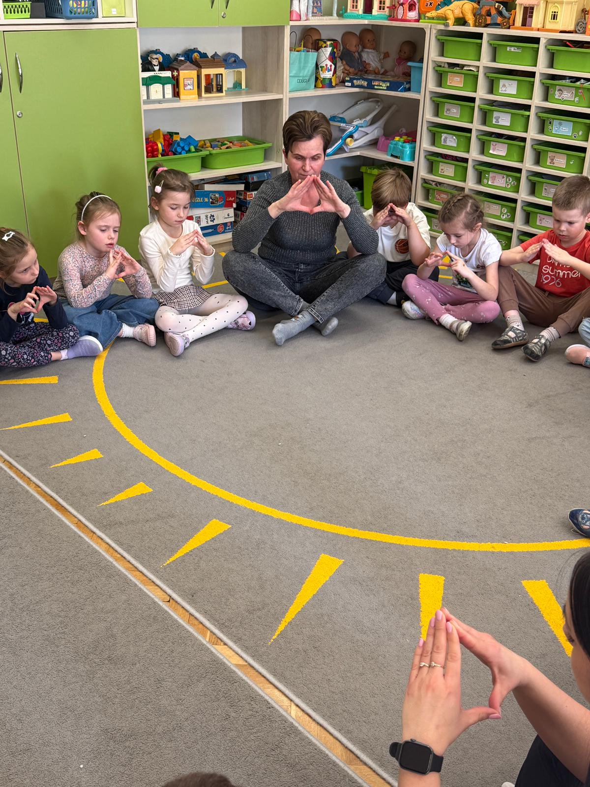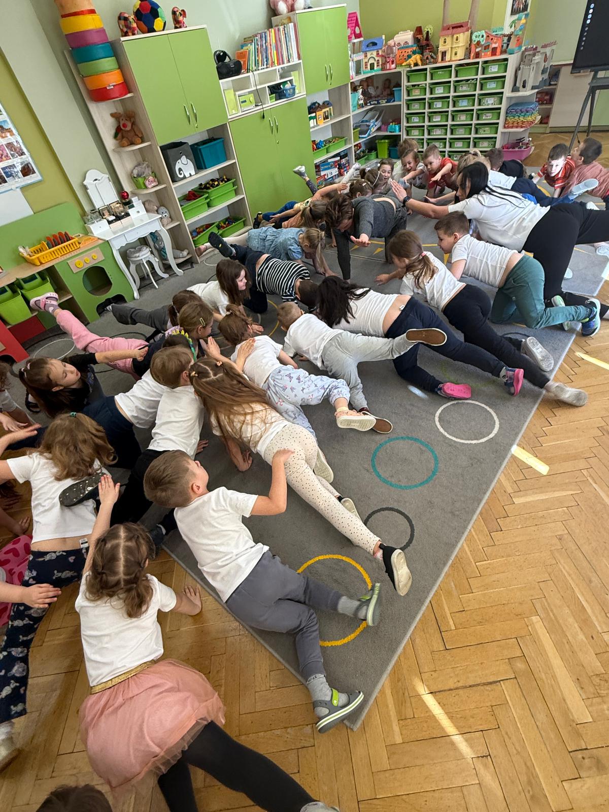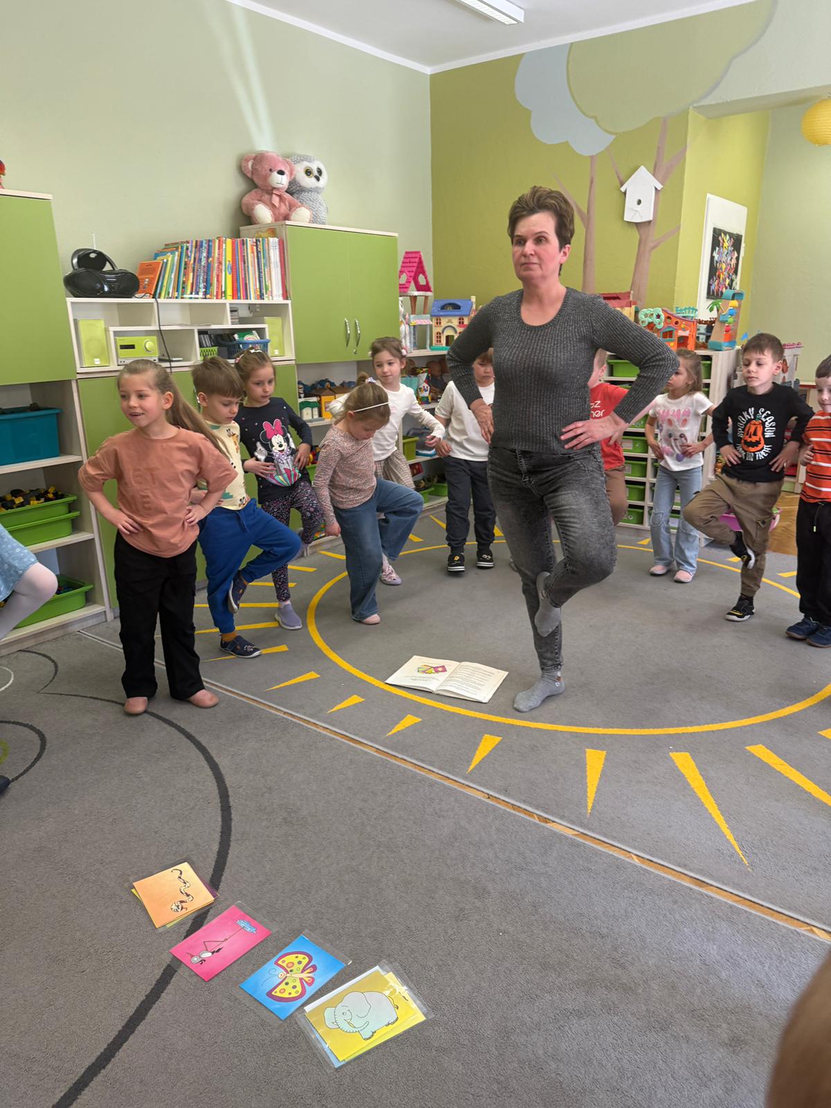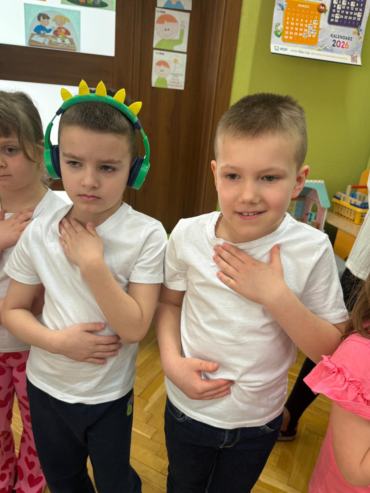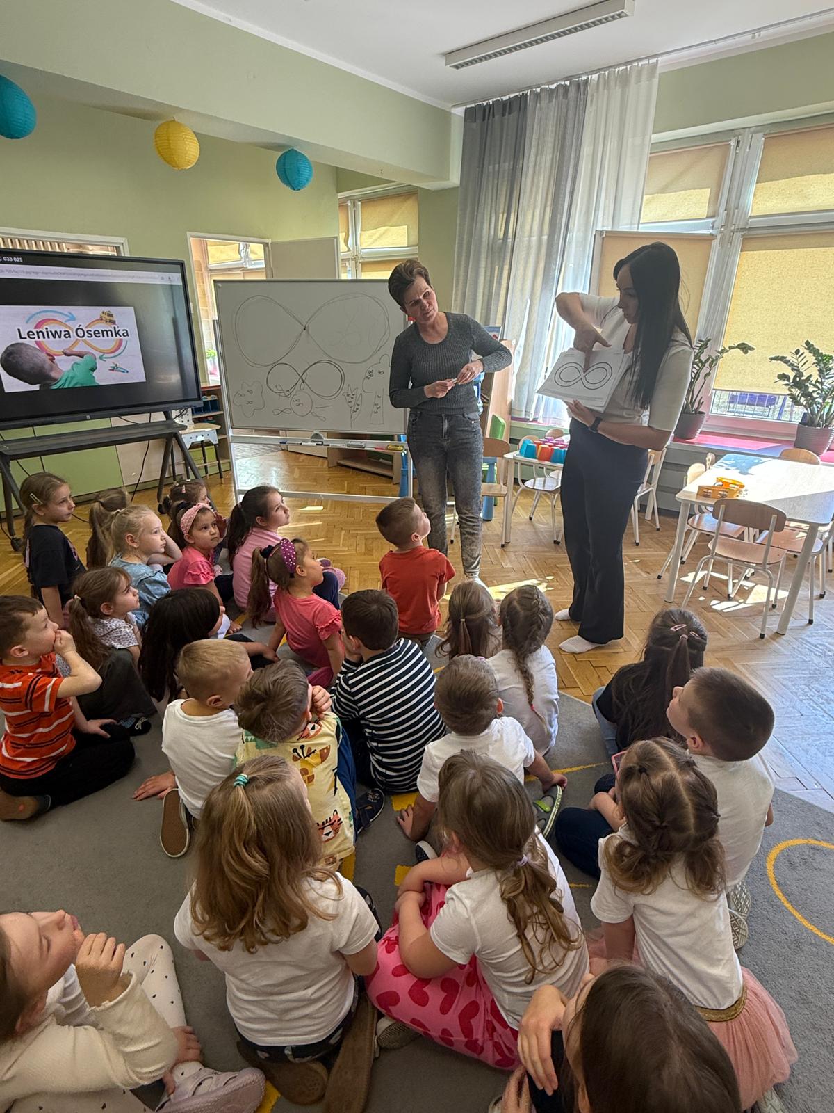 W grupie IV i VI odbyły się zajęcia koleżeńskie oparte na metodzie Kinezjologii Edukacyjnej, inaczej zwanej Gimnastyki Mózgu, opracowanej przez Paula Dennisona. Głównym celem tej metody jest: wspieranie integracji pracy obu półkul mózgowych; poprawa koncentracji i uwagi dzieci; rozwijanie koordynacji wzrokowo-ruchowej; usprawnianie motoryki dużej i małej; redukowanie napięcia i stresu u dzieci; wspieranie procesów uczenia się (czytania, pisania, liczenia); rozwijanie orientacji w schemacie własnego ciała. Zajęcia rozpoczęły się od krótkiego wprowadzenia i rozmowy z dziećmi o tym, dlaczego ruch jest ważny dla naszego mózgu. Następnie dzieci wykonywały serię prostych ćwiczeń ruchowych charakterystycznych dla gimnastyki mózgu. Wśród nich znalazły się m.in. ruchy naprzemienne, leniwe ósemki, ćwiczenie „słoń", punkty na myślenie czy pozycja Cooka. Zajęcia miały formę zabawy ruchowej, dzięki czemu dzieci chętnie i aktywnie w nich uczestniczyły zwracając szczególną uwagę na oddech, koncentrację oraz płynność ruchów. Ćwiczenia sprawiły dzieciom wiele radości, a jednocześnie przyniosły pozytywne efekty: pomogły im się wyciszyć, lepiej skupić uwagę i rozwinąć sprawność ruchową. Zajęcia pokazały, że proste ćwiczenia ruchowe mogą w ciekawy sposób wspierać rozwój dziecka i przygotowywać je do dalszej nauki.