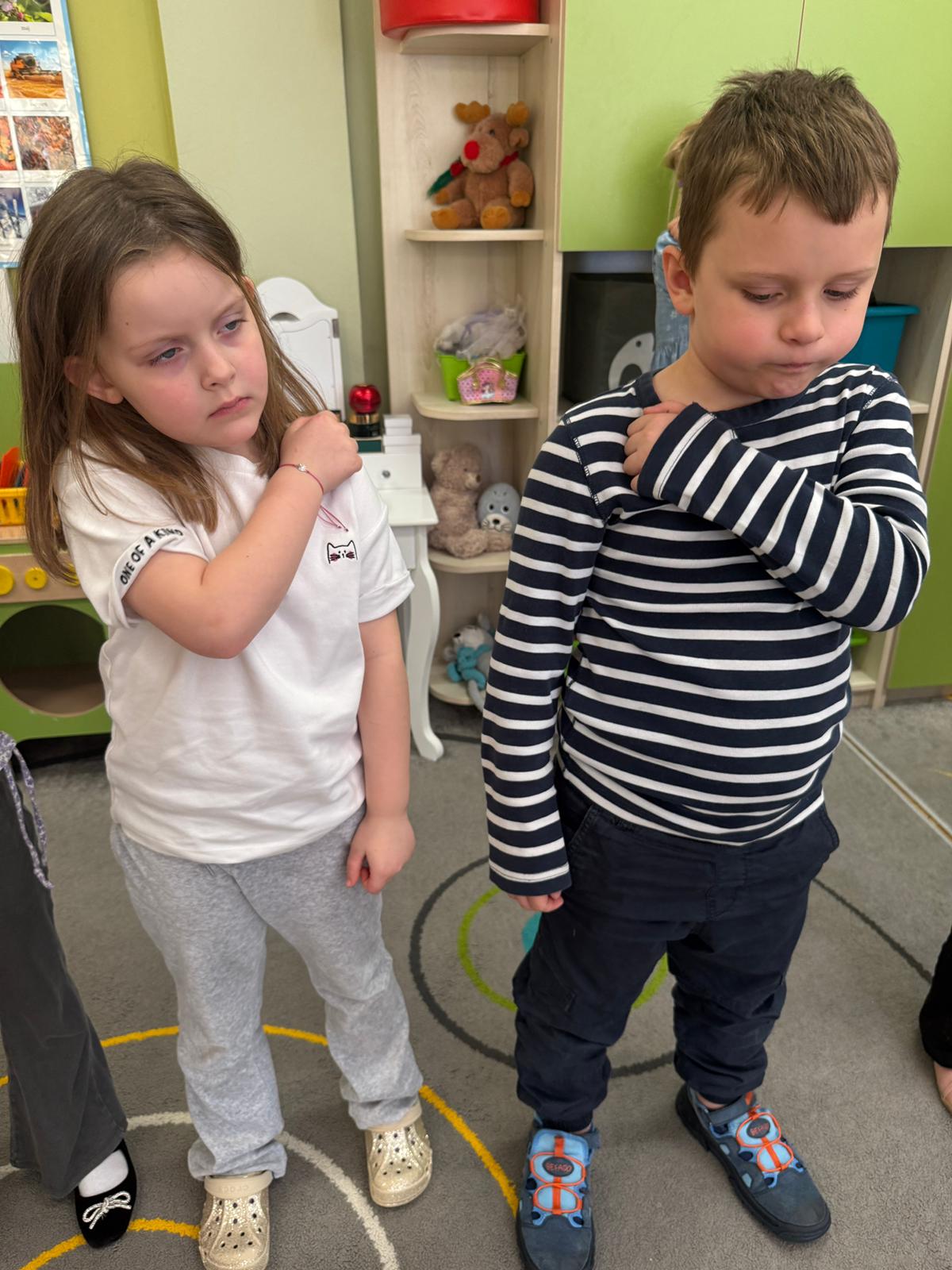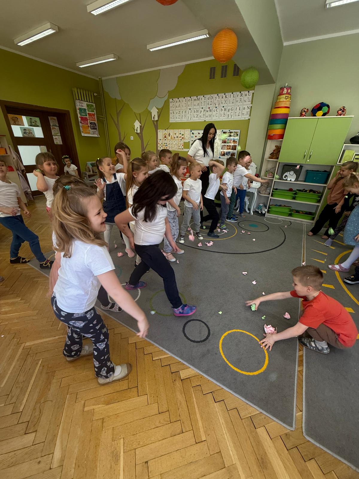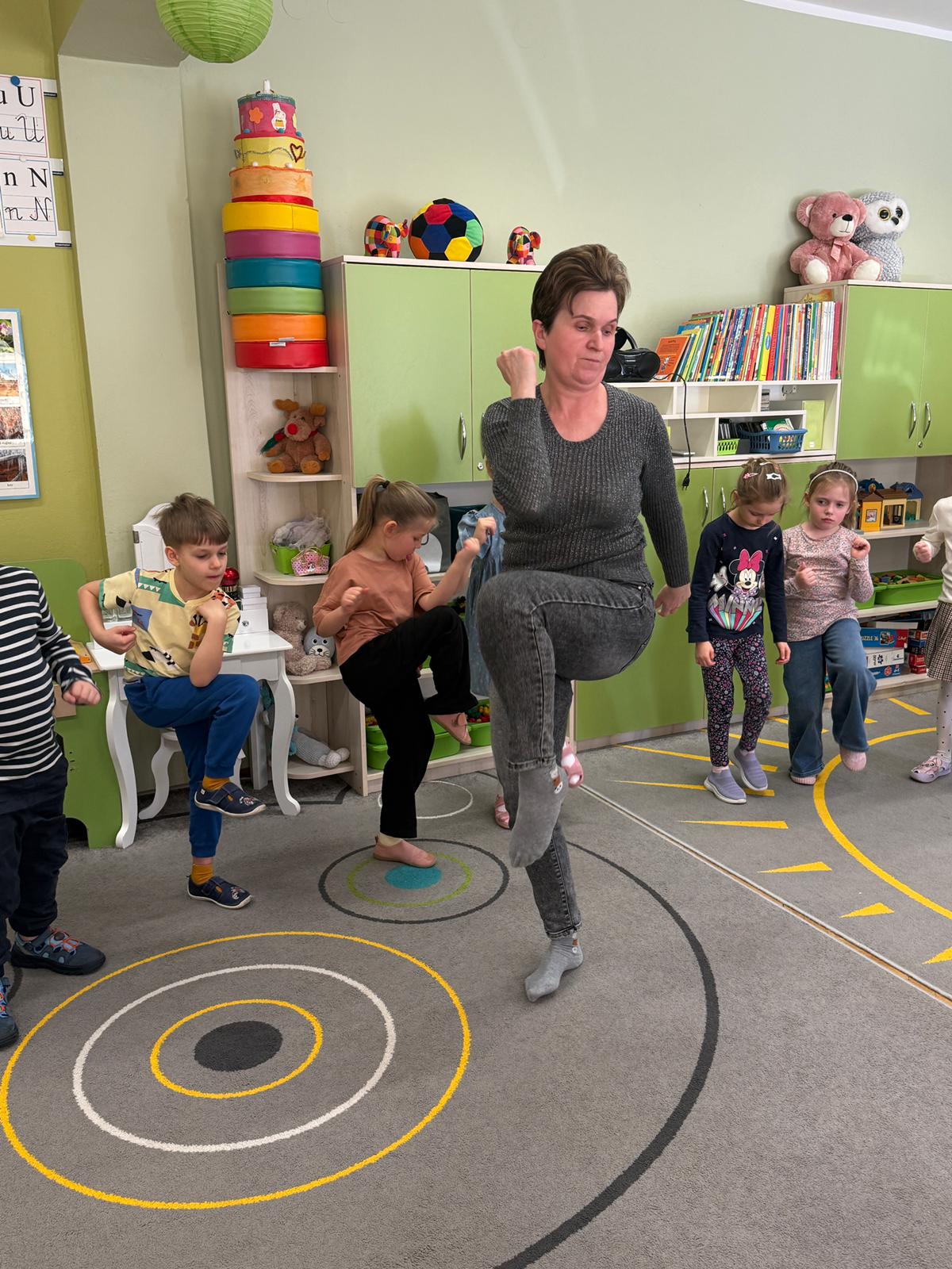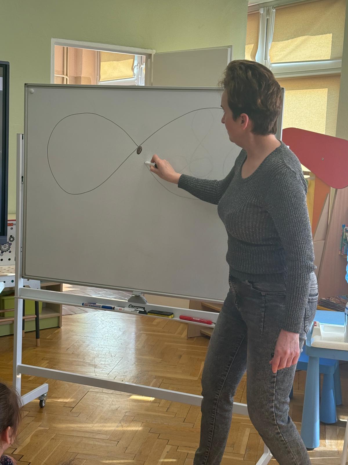 W grupie IV i VI odbyły się zajęcia koleżeńskie oparte na metodzie Kinezjologii Edukacyjnej, inaczej zwanej Gimnastyki Mózgu, opracowanej przez Paula Dennisona. Głównym celem tej metody jest: wspieranie integracji pracy obu półkul mózgowych; poprawa koncentracji i uwagi dzieci; rozwijanie koordynacji wzrokowo-ruchowej; usprawnianie motoryki dużej i małej; redukowanie napięcia i stresu u dzieci; wspieranie procesów uczenia się (czytania, pisania, liczenia); rozwijanie orientacji w schemacie własnego ciała. Zajęcia rozpoczęły się od krótkiego wprowadzenia i rozmowy z dziećmi o tym, dlaczego ruch jest ważny dla naszego mózgu. Następnie dzieci wykonywały serię prostych ćwiczeń ruchowych charakterystycznych dla gimnastyki mózgu. Wśród nich znalazły się m.in. ruchy naprzemienne, leniwe ósemki, ćwiczenie „słoń", punkty na myślenie czy pozycja Cooka. Zajęcia miały formę zabawy ruchowej, dzięki czemu dzieci chętnie i aktywnie w nich uczestniczyły zwracając szczególną uwagę na oddech, koncentrację oraz płynność ruchów. Ćwiczenia sprawiły dzieciom wiele radości, a jednocześnie przyniosły pozytywne efekty: pomogły im się wyciszyć, lepiej skupić uwagę i rozwinąć sprawność ruchową. Zajęcia pokazały, że proste ćwiczenia ruchowe mogą w ciekawy sposób wspierać rozwój dziecka i przygotowywać je do dalszej nauki.