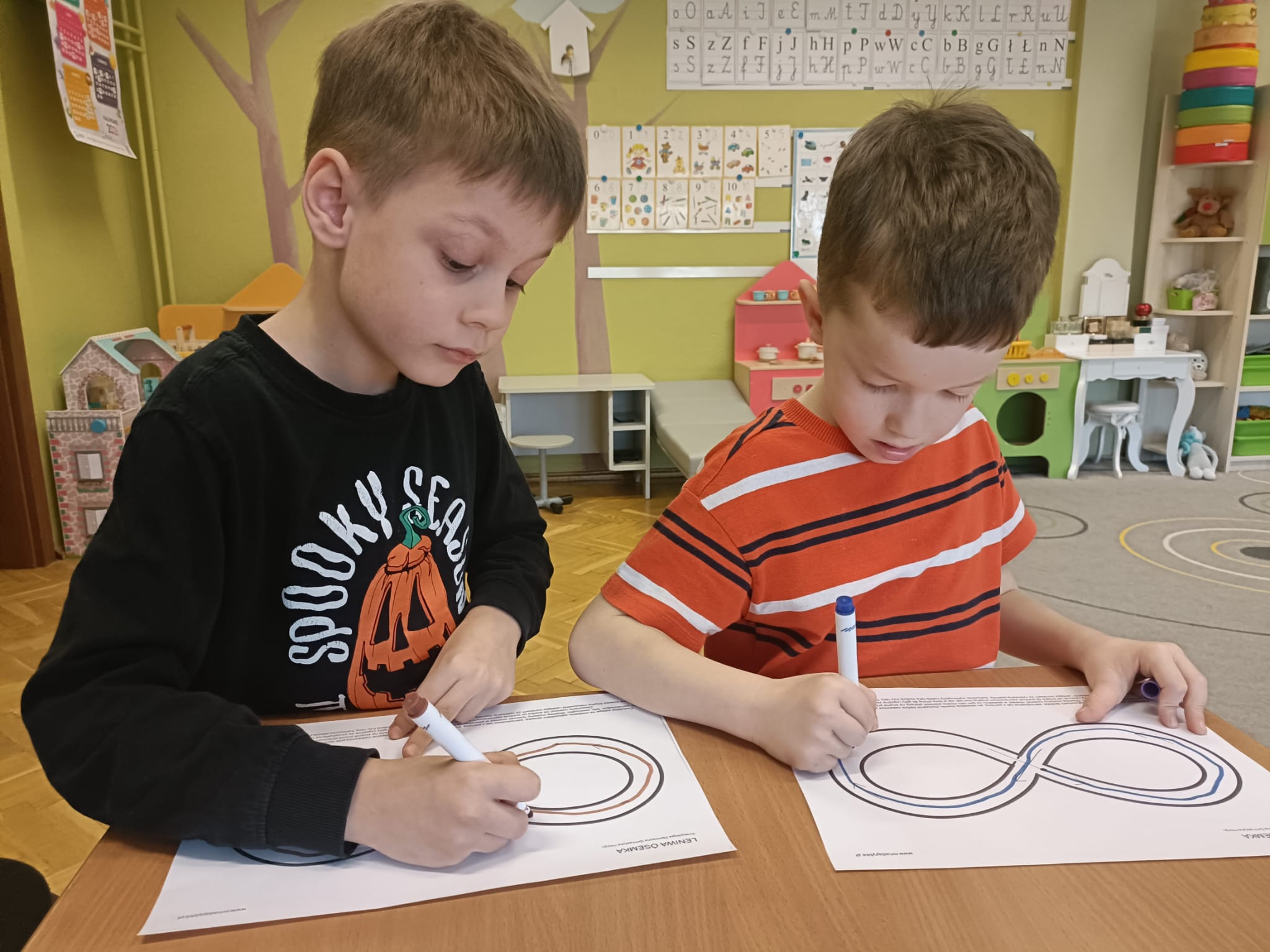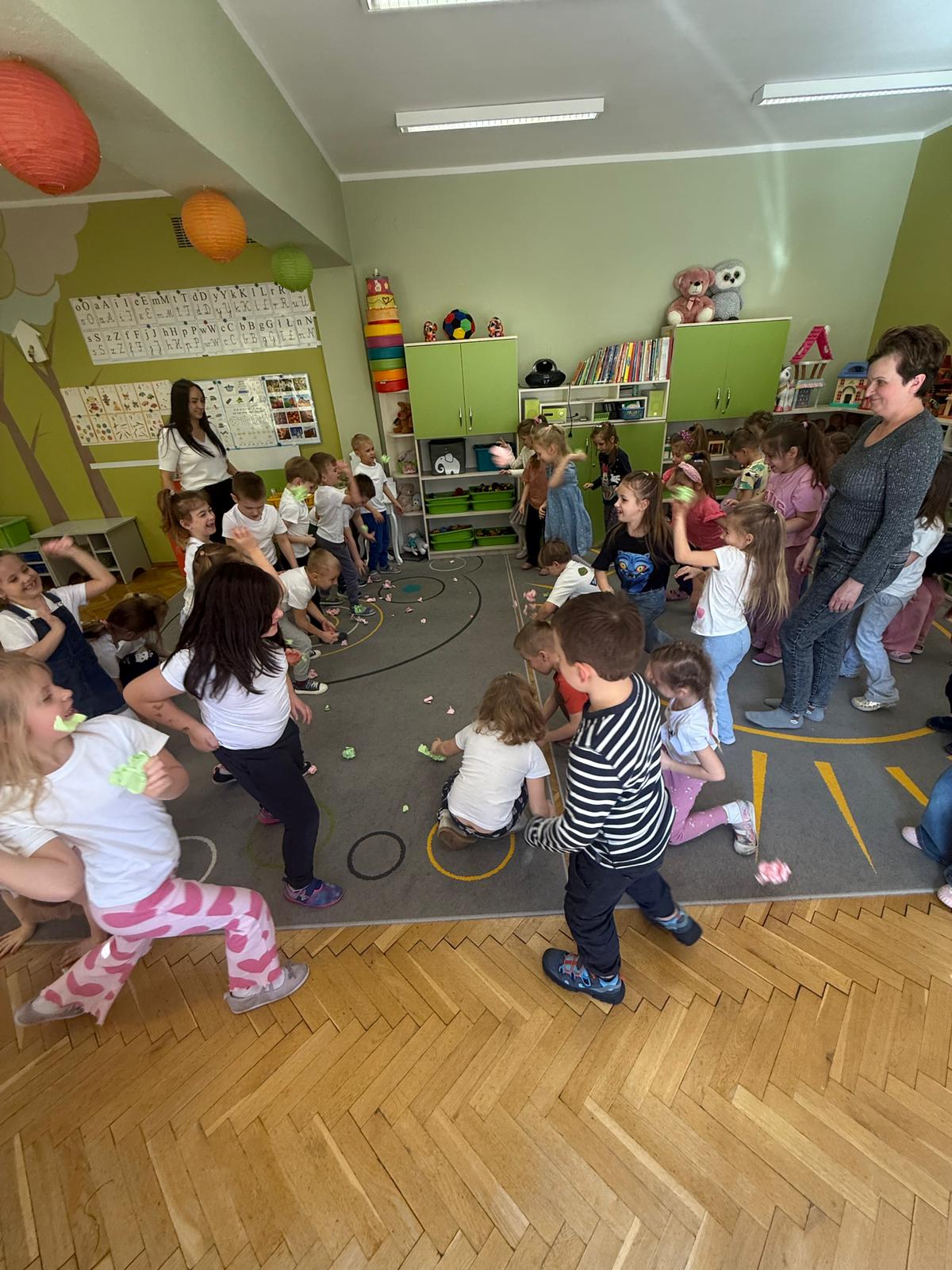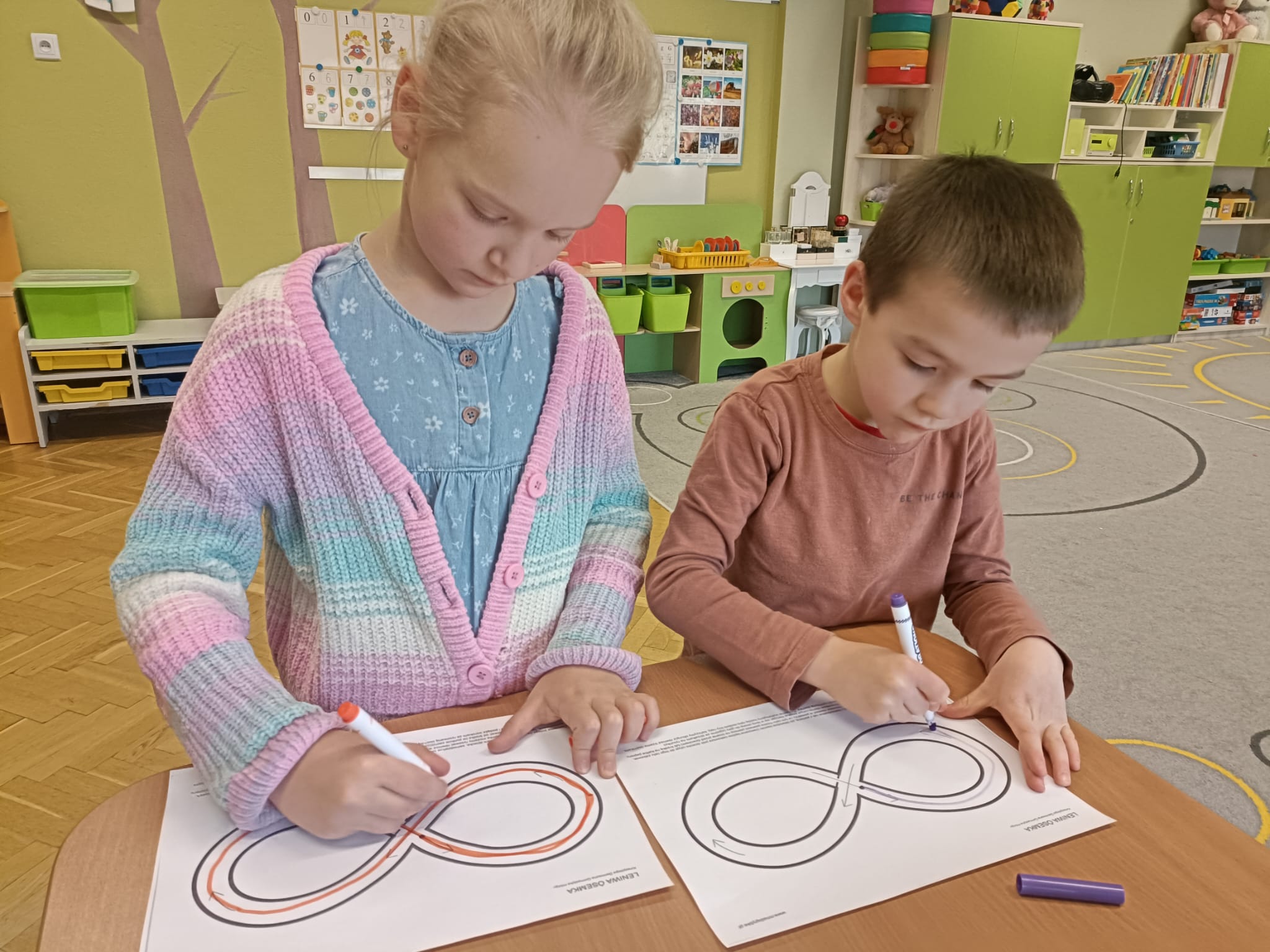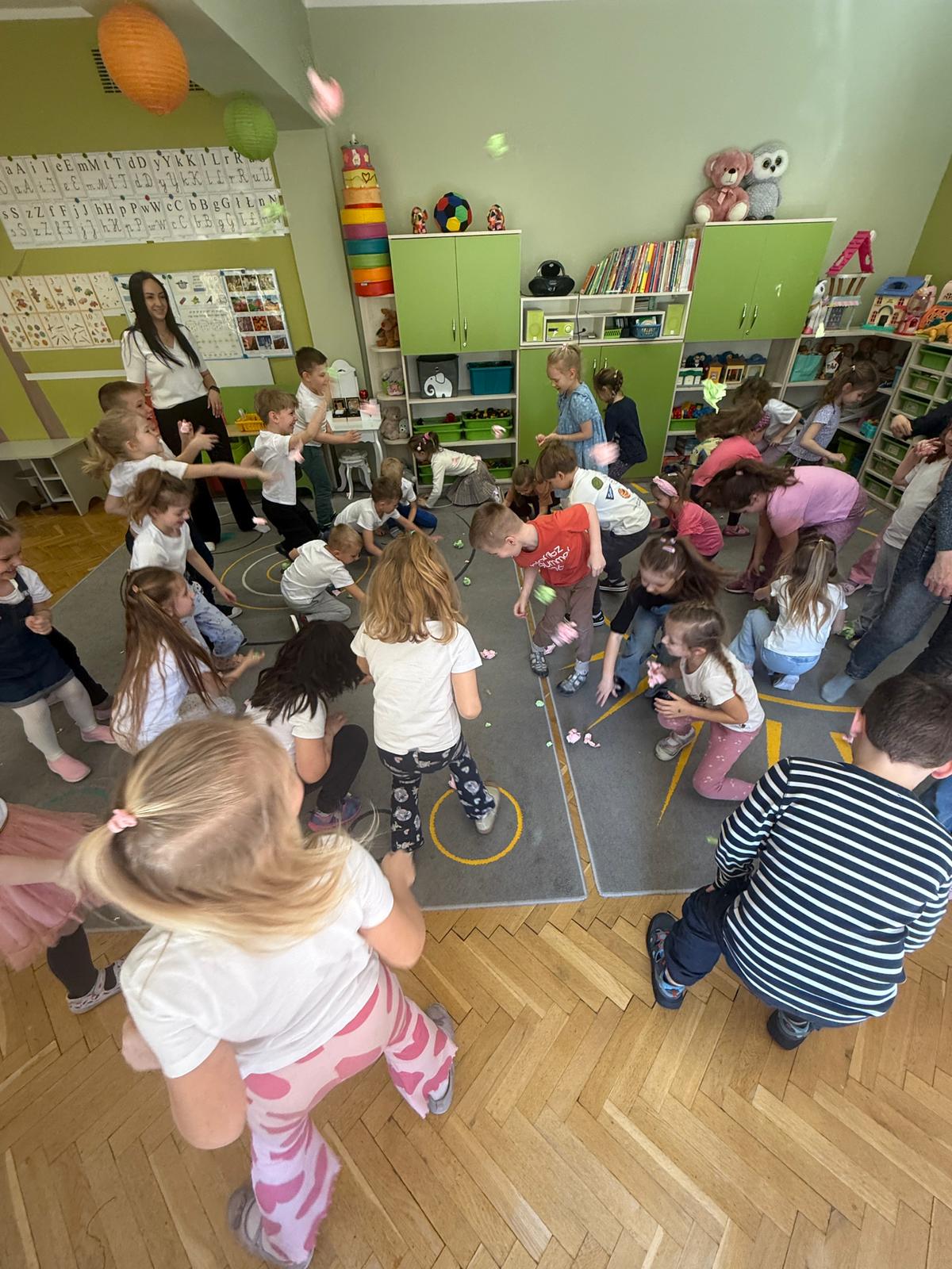 W grupie IV i VI odbyły się zajęcia koleżeńskie oparte na metodzie Kinezjologii Edukacyjnej, inaczej zwanej Gimnastyki Mózgu, opracowanej przez Paula Dennisona. Głównym celem tej metody jest: wspieranie integracji pracy obu półkul mózgowych; poprawa koncentracji i uwagi dzieci; rozwijanie koordynacji wzrokowo-ruchowej; usprawnianie motoryki dużej i małej; redukowanie napięcia i stresu u dzieci; wspieranie procesów uczenia się (czytania, pisania, liczenia); rozwijanie orientacji w schemacie własnego ciała. Zajęcia rozpoczęły się od krótkiego wprowadzenia i rozmowy z dziećmi o tym, dlaczego ruch jest ważny dla naszego mózgu. Następnie dzieci wykonywały serię prostych ćwiczeń ruchowych charakterystycznych dla gimnastyki mózgu. Wśród nich znalazły się m.in. ruchy naprzemienne, leniwe ósemki, ćwiczenie „słoń", punkty na myślenie czy pozycja Cooka. Zajęcia miały formę zabawy ruchowej, dzięki czemu dzieci chętnie i aktywnie w nich uczestniczyły zwracając szczególną uwagę na oddech, koncentrację oraz płynność ruchów. Ćwiczenia sprawiły dzieciom wiele radości, a jednocześnie przyniosły pozytywne efekty: pomogły im się wyciszyć, lepiej skupić uwagę i rozwinąć sprawność ruchową. Zajęcia pokazały, że proste ćwiczenia ruchowe mogą w ciekawy sposób wspierać rozwój dziecka i przygotowywać je do dalszej nauki.