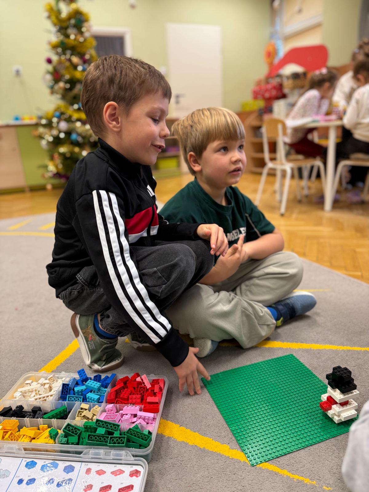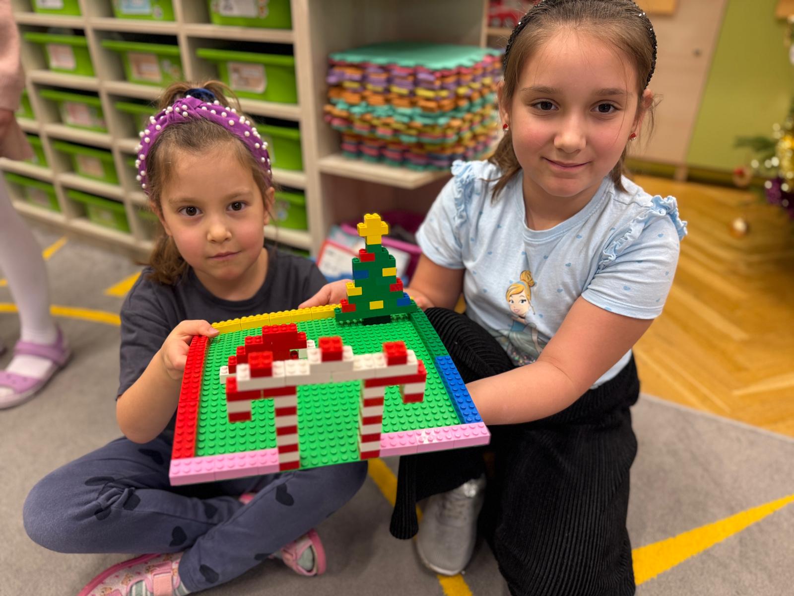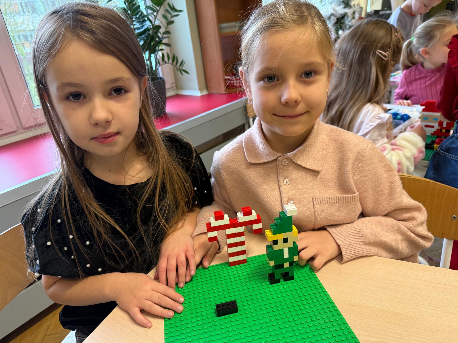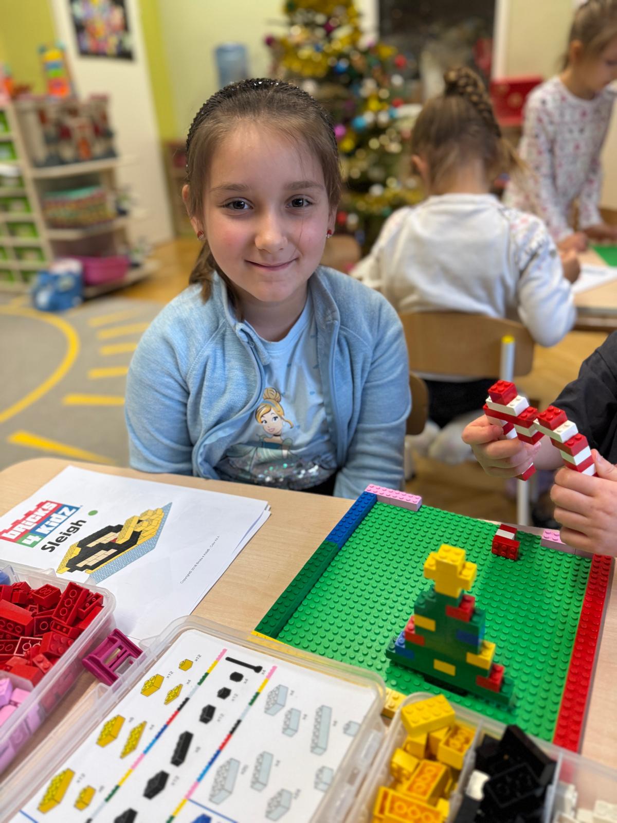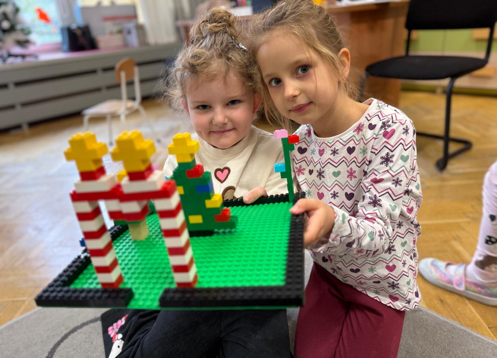 W naszej grupie odbyły się niezwykłe warsztaty, które wprowadziły dzieci w świąteczny klimat i pozwoliły im twórczo przygotować się do nadchodzących Świąt Bożego Narodzenia. Celem spotkania było rozwijanie kreatywności dzieci, poszerzanie ich wiedzy o tradycjach bożonarodzeniowych oraz kształtowanie umiejętności konstrukcyjnych poprzez budowanie modeli z klocków LEGO. Podczas zajęć dzieci z zaangażowaniem opowiadały o Świętach Bożego Narodzenia, wieczerzy wigilijnej, potrawach, zwyczajach i rodzinnych tradycjach. Wspólna rozmowa pozwoliła im lepiej zrozumieć sens świątecznych obrzędów i podzielić się własnymi doświadczeniami. Następnie przedszkolaki zamieniły się w małych konstruktorów Fabryki Świętego Mikołaja. Z klocków LEGO budowały choinki, Mikołaja, bałwana, sanie, renifery oraz inne elementy związane ze świętami. Każde dziecko miało okazję stworzyć własny, niepowtarzalny model, wykazując się wyobraźnią i kreatywnością. Warsztaty przyniosły wiele radości, a dzieci utrwaliły wiedzę o tradycjach bożonarodzeniowych, rozwinęły umiejętności konstrukcyjne i współpracy, a także wzbogaciły swoją wyobraźnię przestrzenną. Spotkanie pozwoliło im poczuć magię świąt i z dumą prezentować swoje wyjątkowe prace.