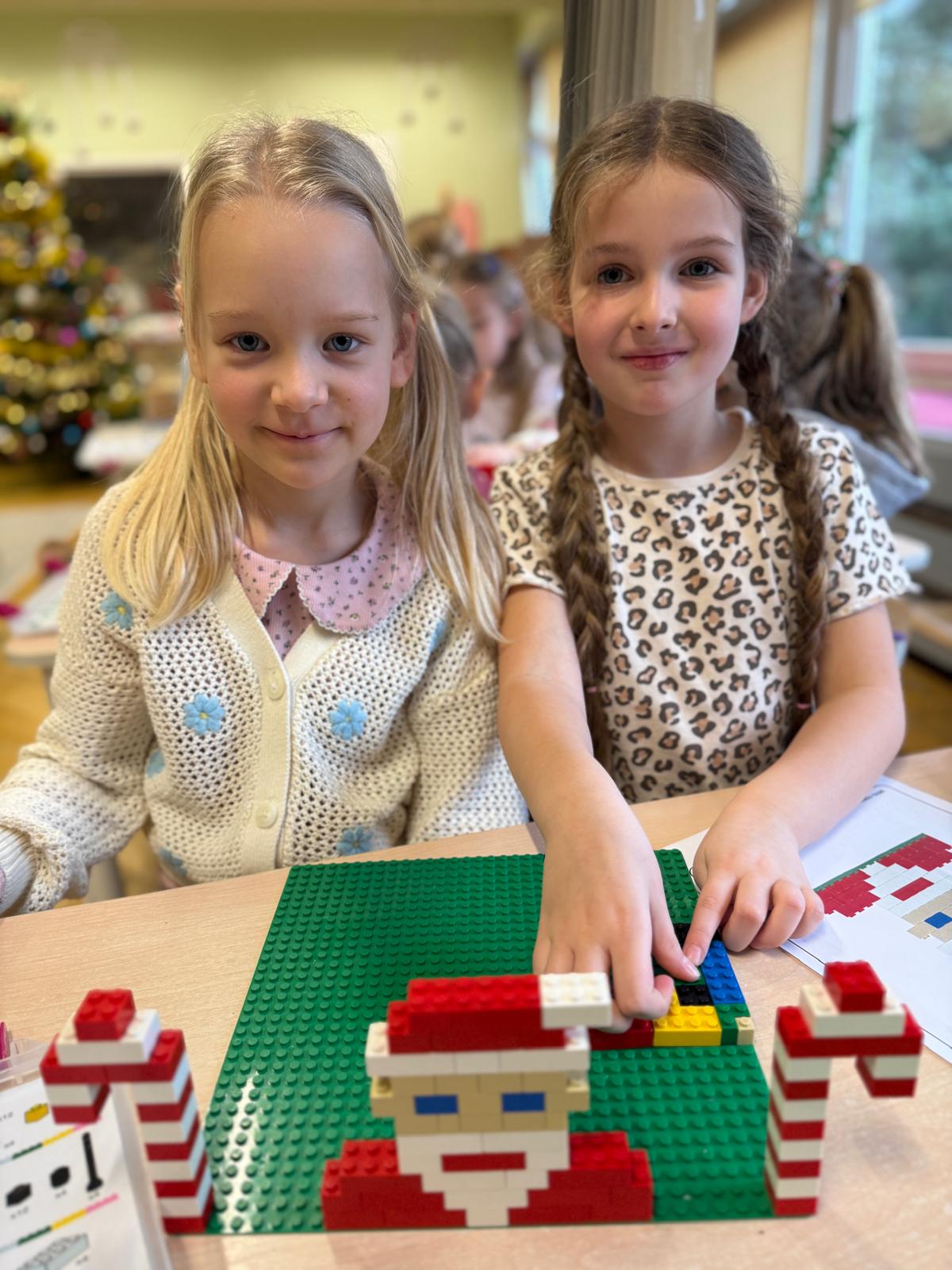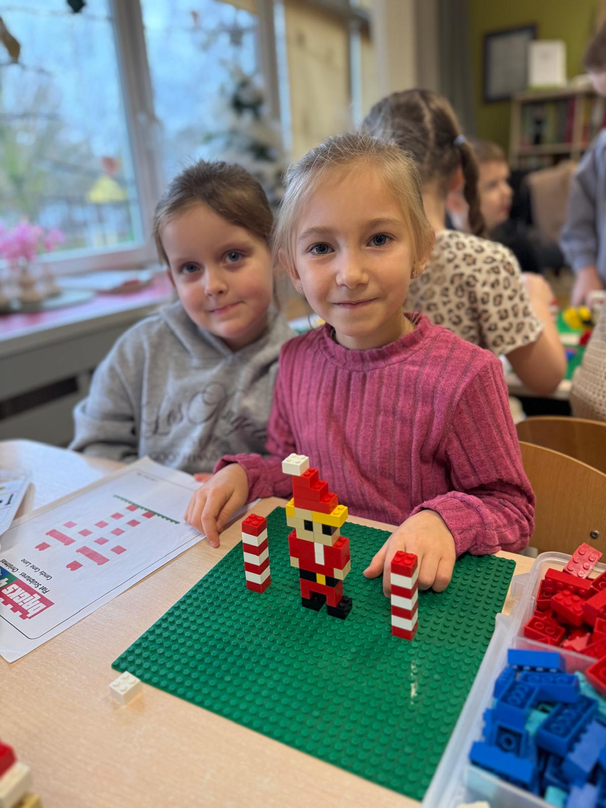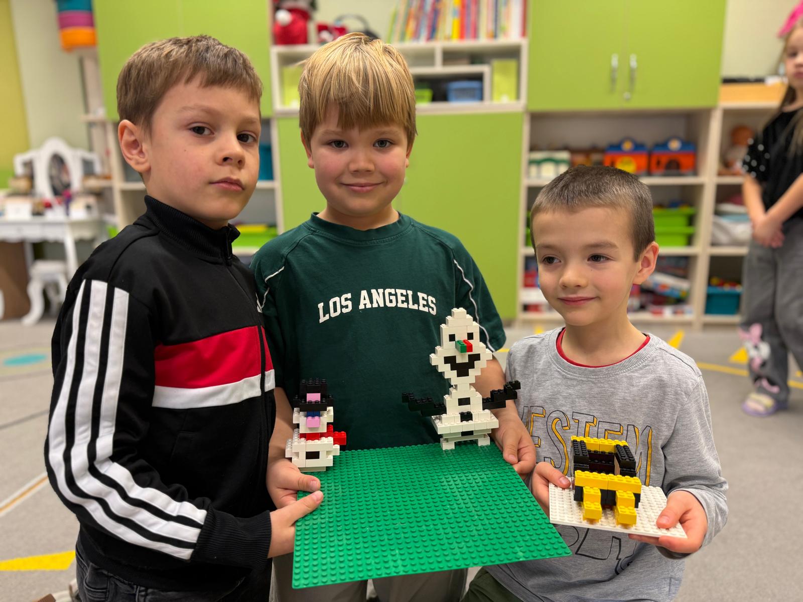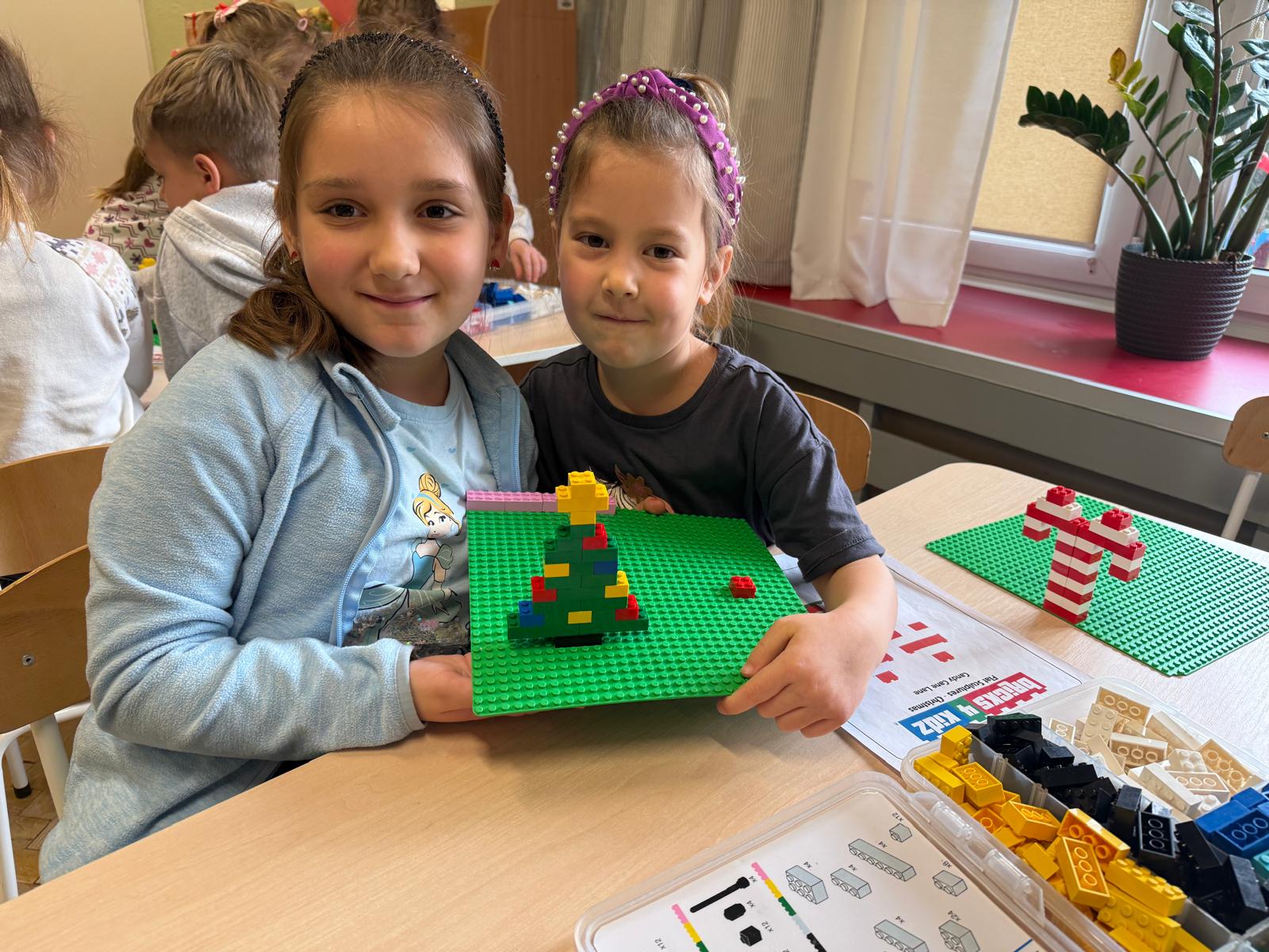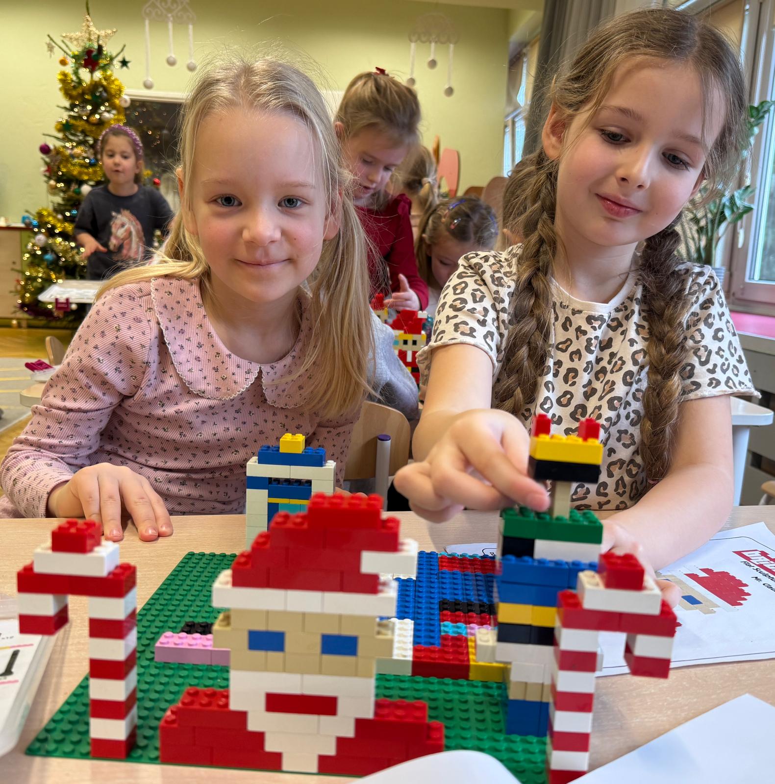 W naszej grupie odbyły się niezwykłe warsztaty, które wprowadziły dzieci w świąteczny klimat i pozwoliły im twórczo przygotować się do nadchodzących Świąt Bożego Narodzenia. Celem spotkania było rozwijanie kreatywności dzieci, poszerzanie ich wiedzy o tradycjach bożonarodzeniowych oraz kształtowanie umiejętności konstrukcyjnych poprzez budowanie modeli z klocków LEGO. Podczas zajęć dzieci z zaangażowaniem opowiadały o Świętach Bożego Narodzenia, wieczerzy wigilijnej, potrawach, zwyczajach i rodzinnych tradycjach. Wspólna rozmowa pozwoliła im lepiej zrozumieć sens świątecznych obrzędów i podzielić się własnymi doświadczeniami. Następnie przedszkolaki zamieniły się w małych konstruktorów Fabryki Świętego Mikołaja. Z klocków LEGO budowały choinki, Mikołaja, bałwana, sanie, renifery oraz inne elementy związane ze świętami. Każde dziecko miało okazję stworzyć własny, niepowtarzalny model, wykazując się wyobraźnią i kreatywnością. Warsztaty przyniosły wiele radości, a dzieci utrwaliły wiedzę o tradycjach bożonarodzeniowych, rozwinęły umiejętności konstrukcyjne i współpracy, a także wzbogaciły swoją wyobraźnię przestrzenną. Spotkanie pozwoliło im poczuć magię świąt i z dumą prezentować swoje wyjątkowe prace.