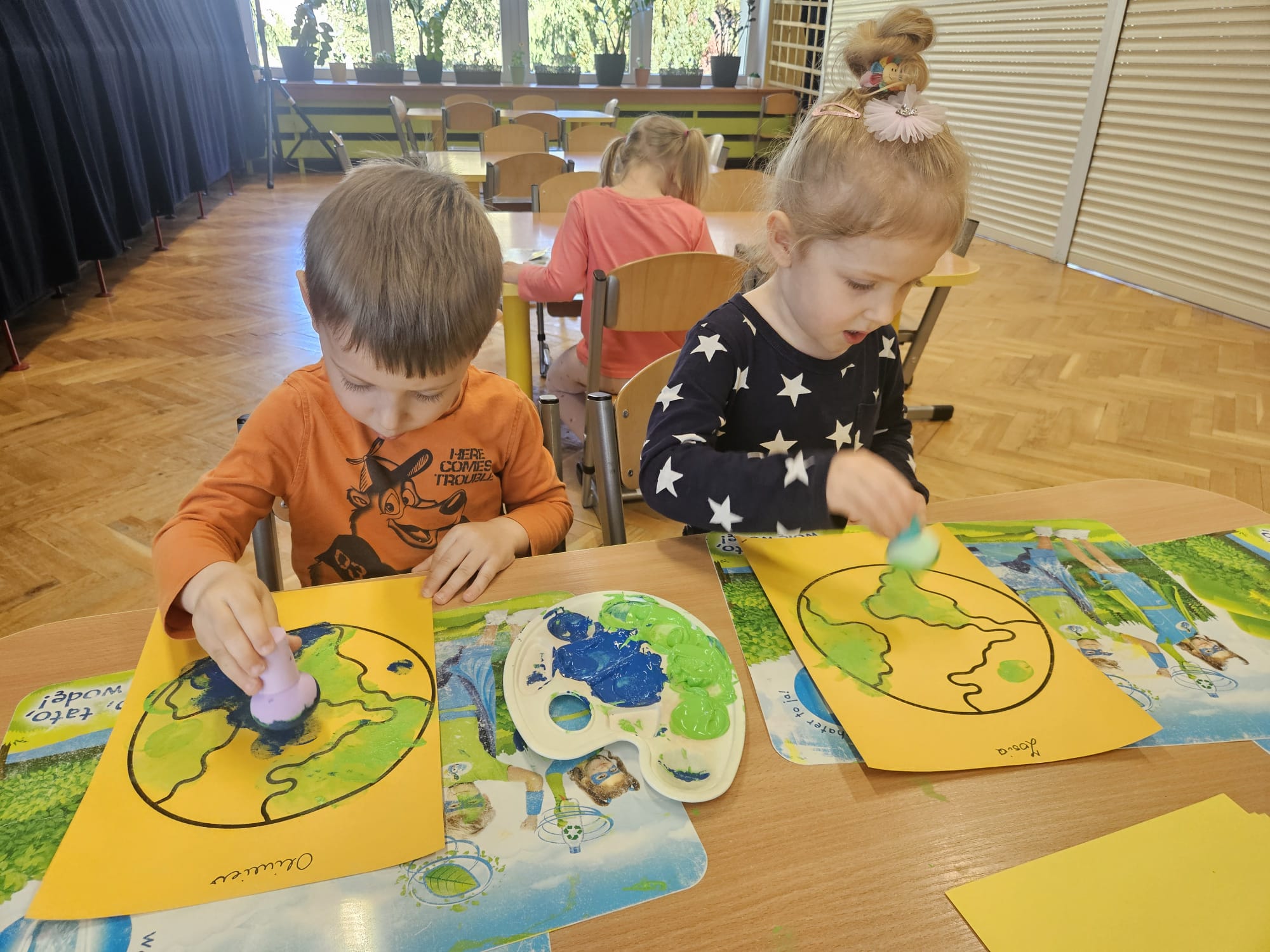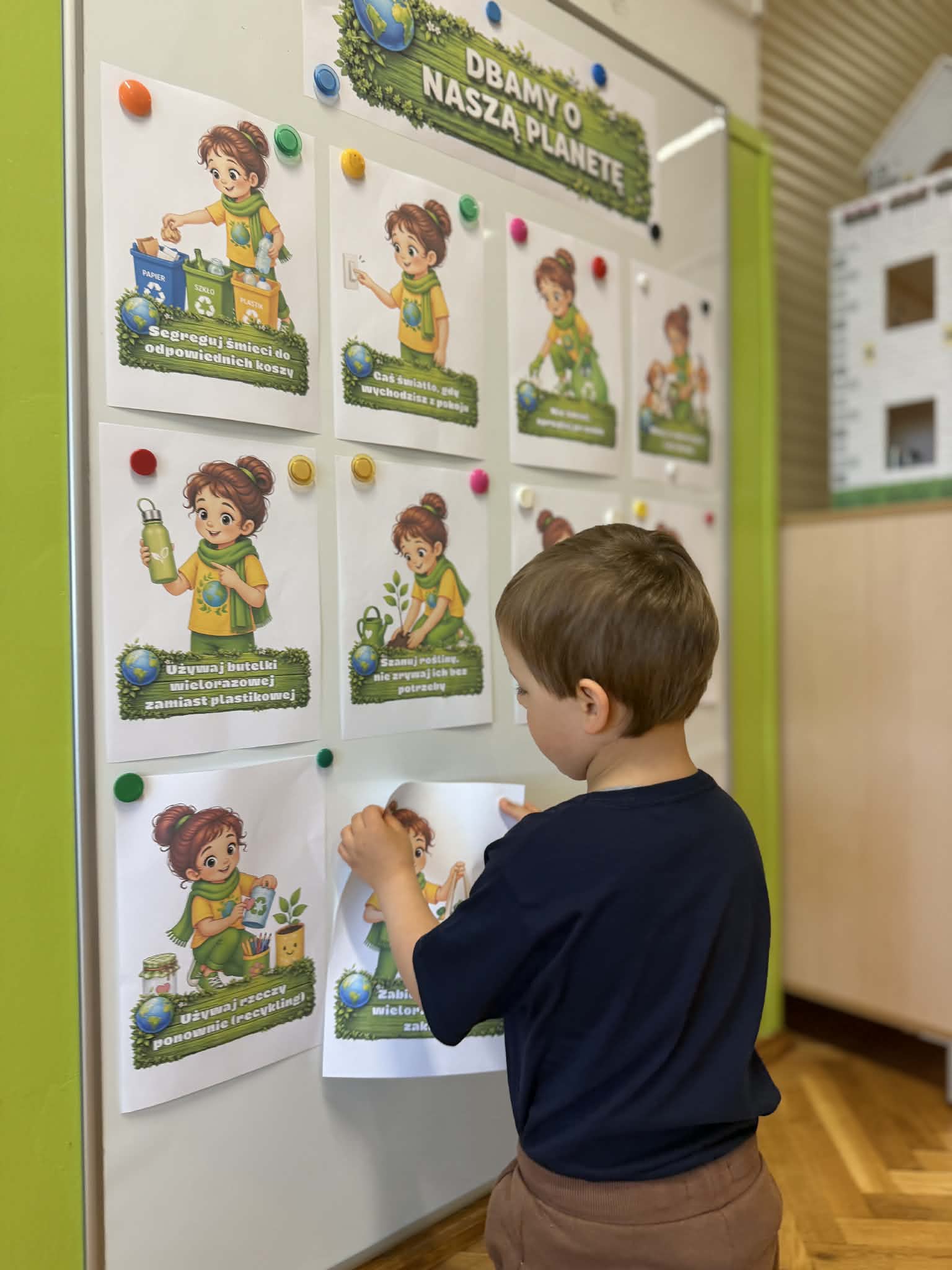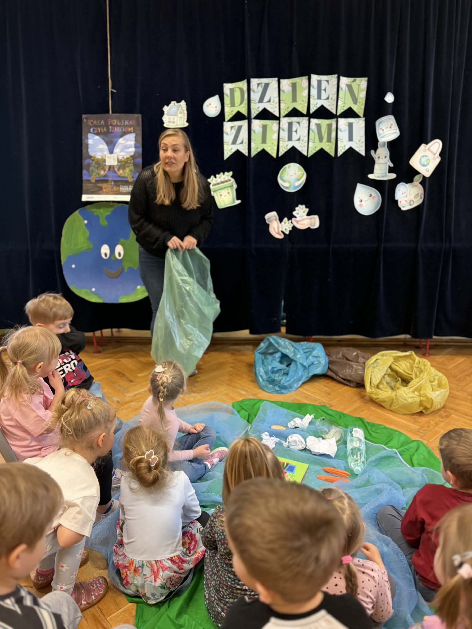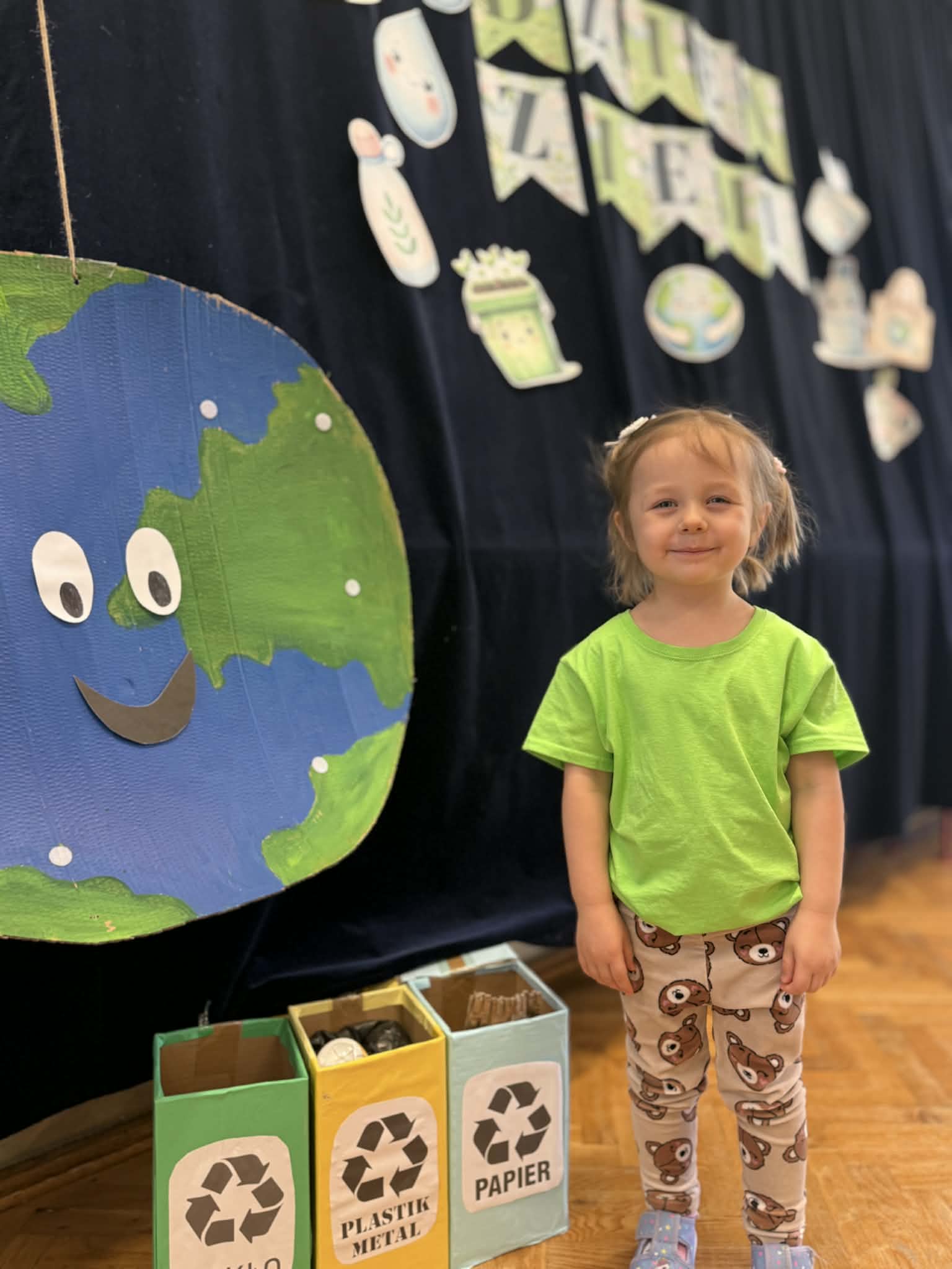 Dzieci z grupy VII w minionym tygodniu zakończyły wyjątkowy projekt edukacyjny poświęcony naszej planecie pt.„Dbamy o Ziemię każdego dnia”. W ramach obchodów Dnia Ziemi przedszkolaki aktywnie uczestniczyły w różnorodnych zajęciach, które przybliżyły im, jak ważna jest troska o środowisko naturalne. Jednym z elementów projektu było wysłuchanie bajki „Basia i śmieci”, zrealizowane w ramach kampanii „Cała Polska czyta dzieciom”, prowadzonej w naszym przedszkolu. Opowieść stała się inspiracją do rozmów o segregacji odpadów, recyklingu oraz codziennych nawykach, które pomagają chronić naszą planetę. Podczas zabaw i aktywności dzieci uczyły się, jak dbać o Ziemię – poznawały zasady ekologii, brały udział w grach edukacyjnych oraz wykonywały prace plastyczne związane z tematyką przyrodniczą. Dzięki temu nie tylko zdobyły nową wiedzę, ale również rozwijały swoją wrażliwość na potrzeby środowiska. To był tydzień pełen radości, nauki i inspiracji do bycia małym ekologiem każdego dnia!