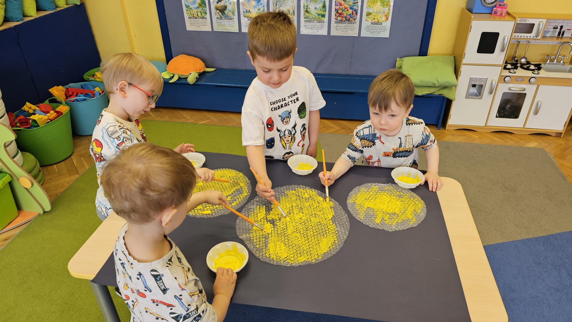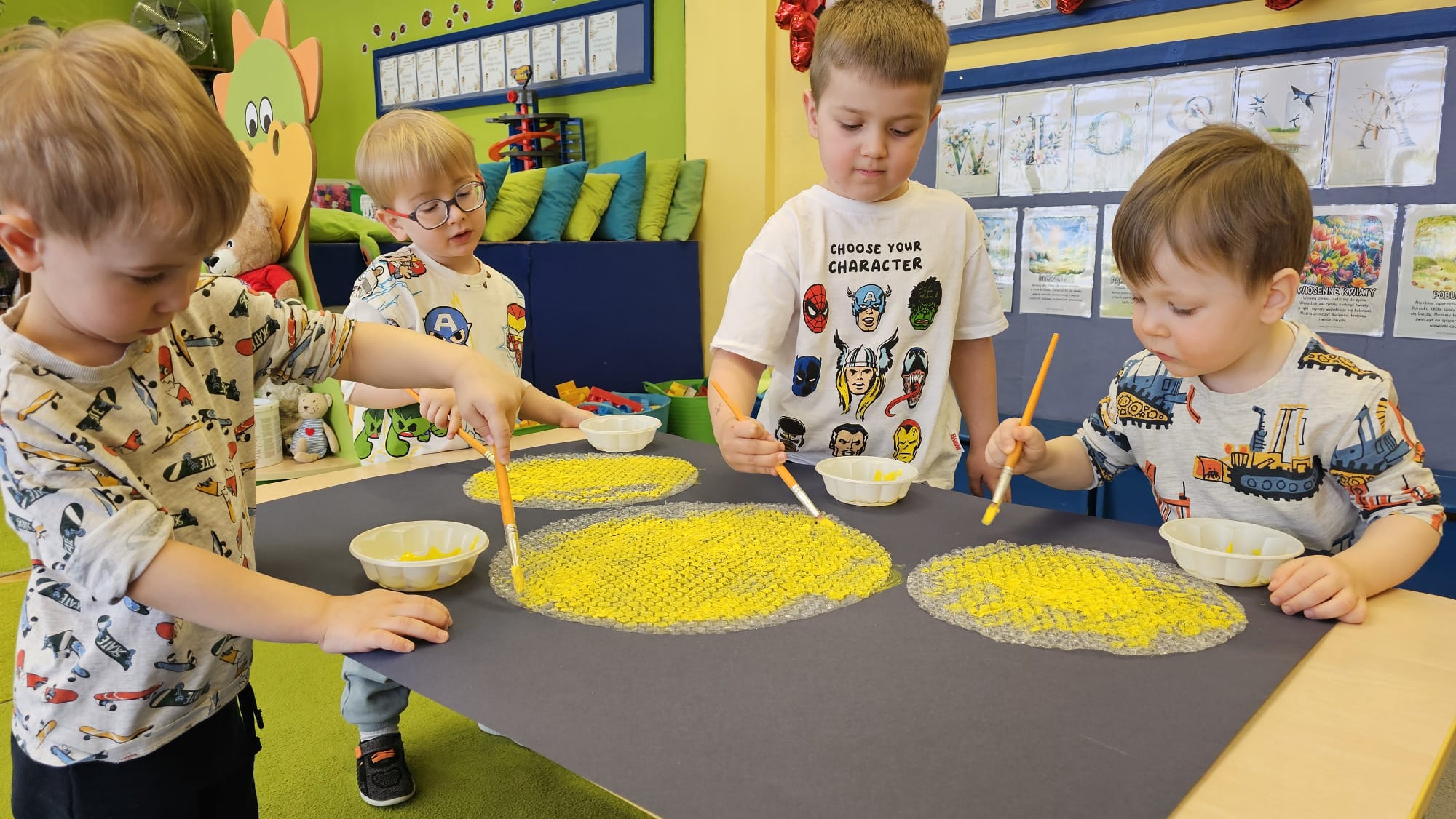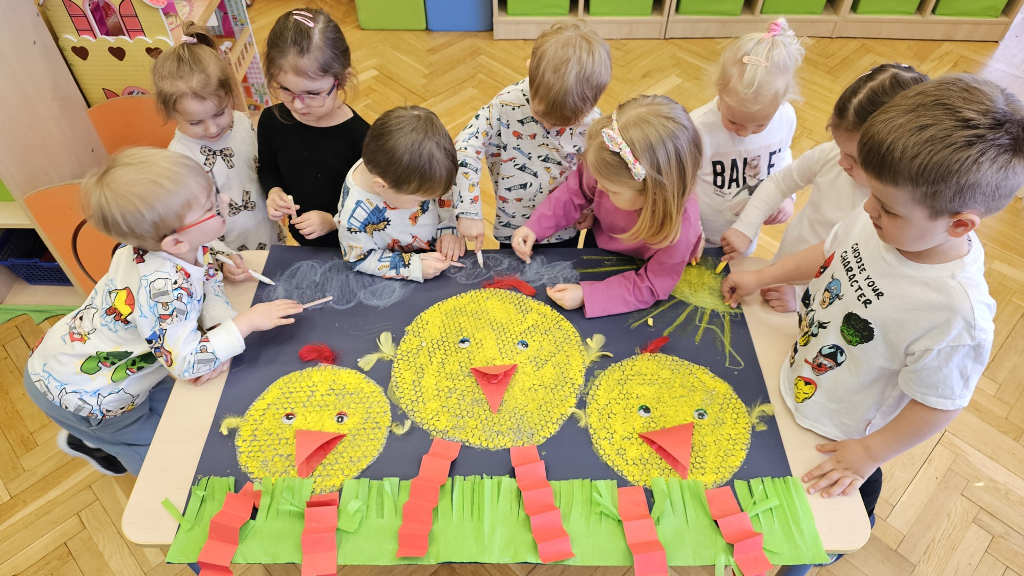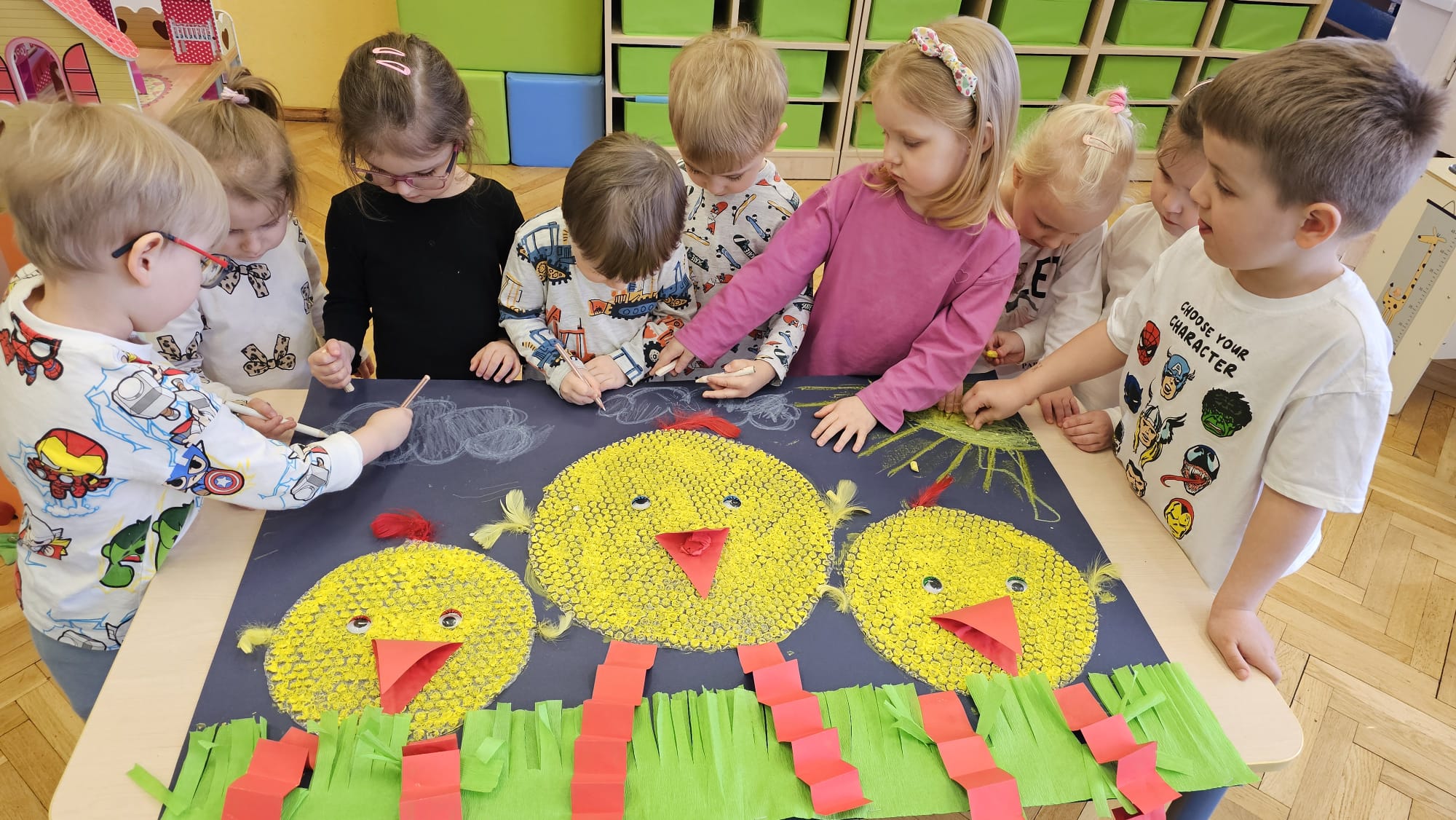 W ostatnich dniach dzieci z grupy I maluszków uczestniczyły w zajęciach o tematyce świątecznej, związanej z Wielkanocą. W naszej sali królowały zające, kurczaczki, baranki oraz oczywiście kolorowe pisanki. Dzieci poznały wybrane tradycje wielkanocne, a poprzez zabawę i różnorodne działania plastyczne mogły poczuć radosną, świąteczną atmosferę. Nie zabrakło kreatywnych prac, uśmiechu i wspólnej zabawy. Cele jakie przyświecały zajęciom to: zapoznanie dzieci z tradycjami i symbolami wielkanocnymi, rozwijanie zainteresowań kulturą i obyczajami, rozwijanie sprawności manualnej poprzez działania plastyczne, kształtowanie kreatywności i wyobraźni, wzmacnianie umiejętności współpracy i wspólnej zabawy. Życzymy Zdrowych, Wesołych Świąt!