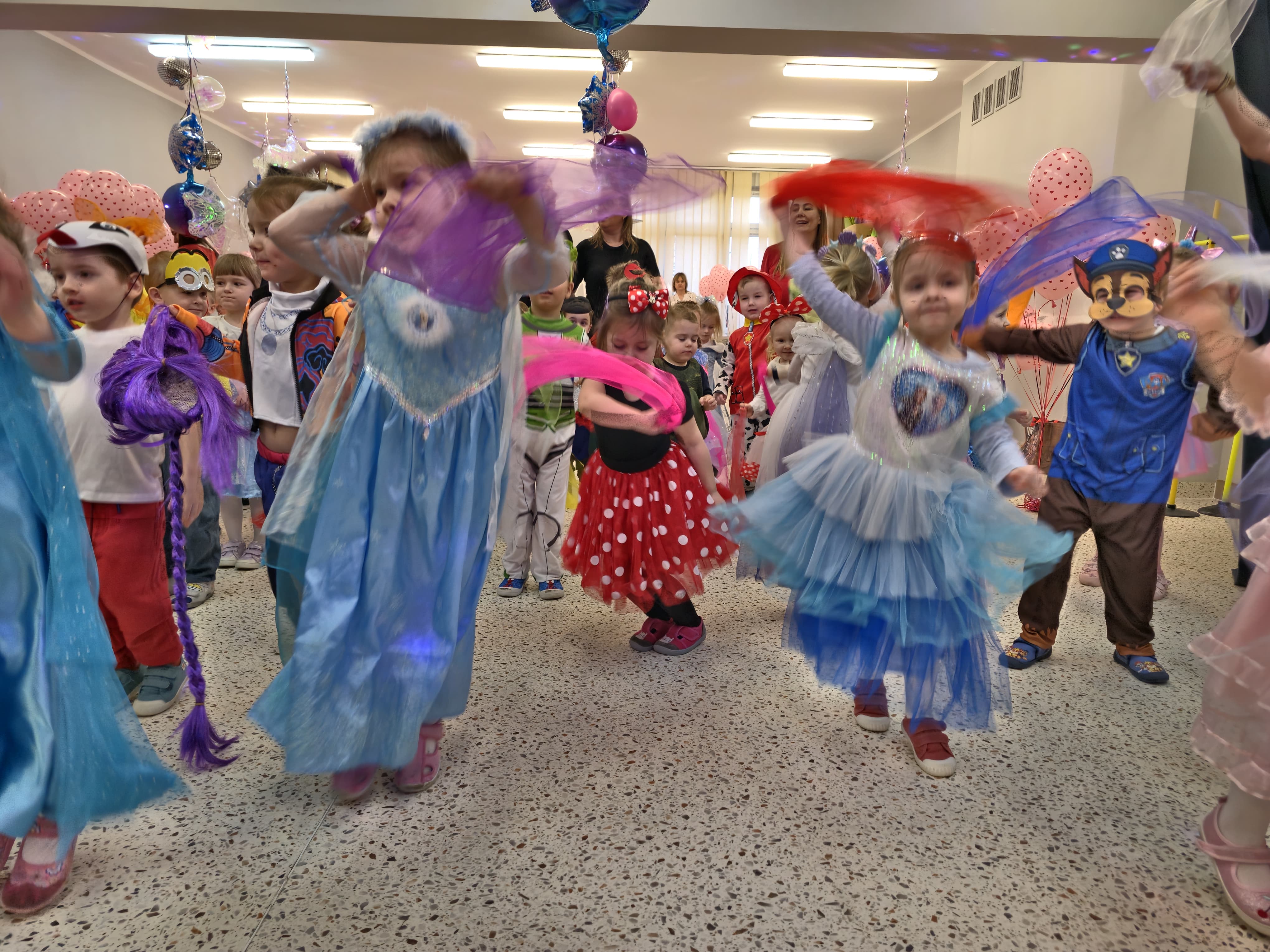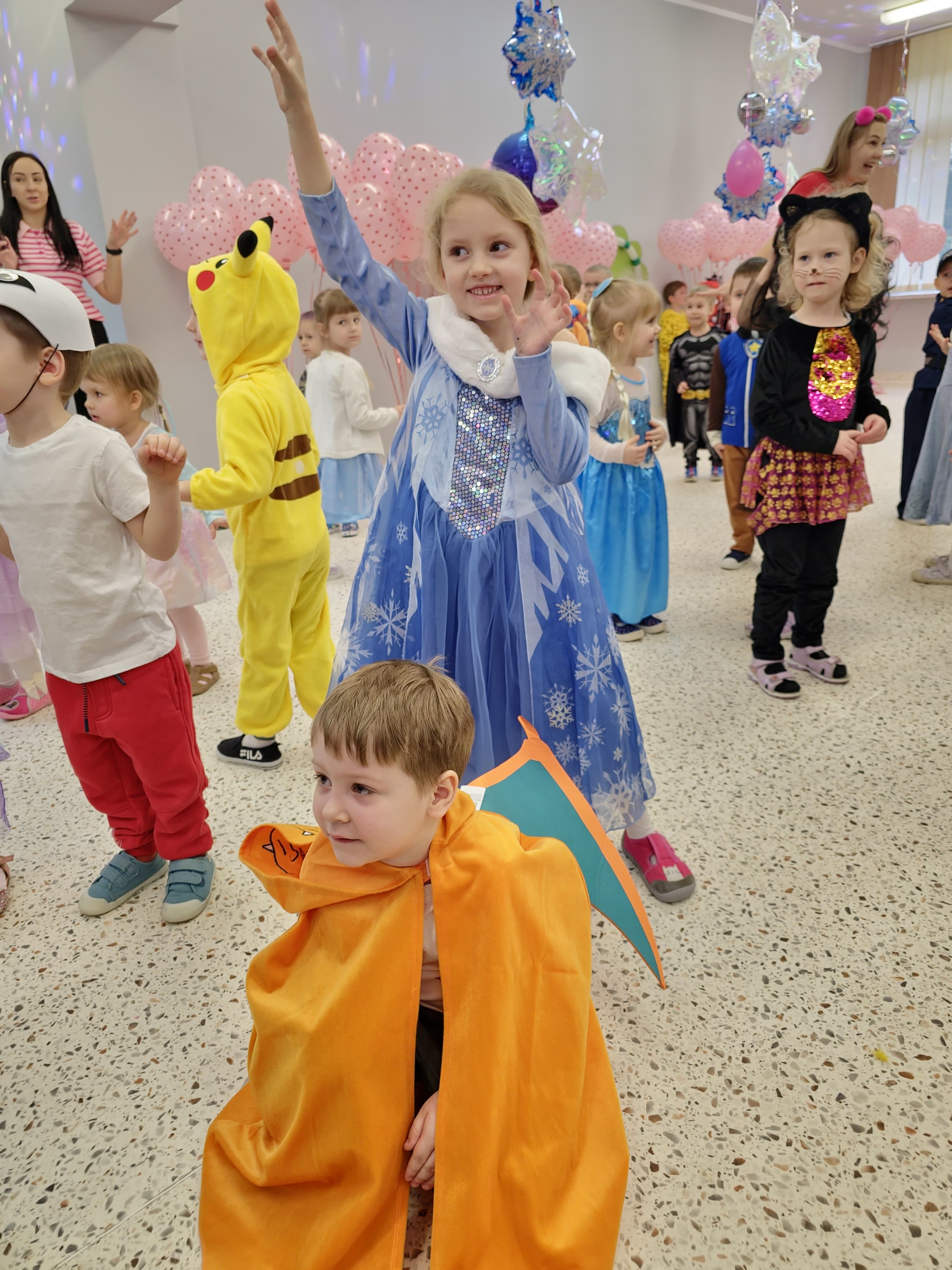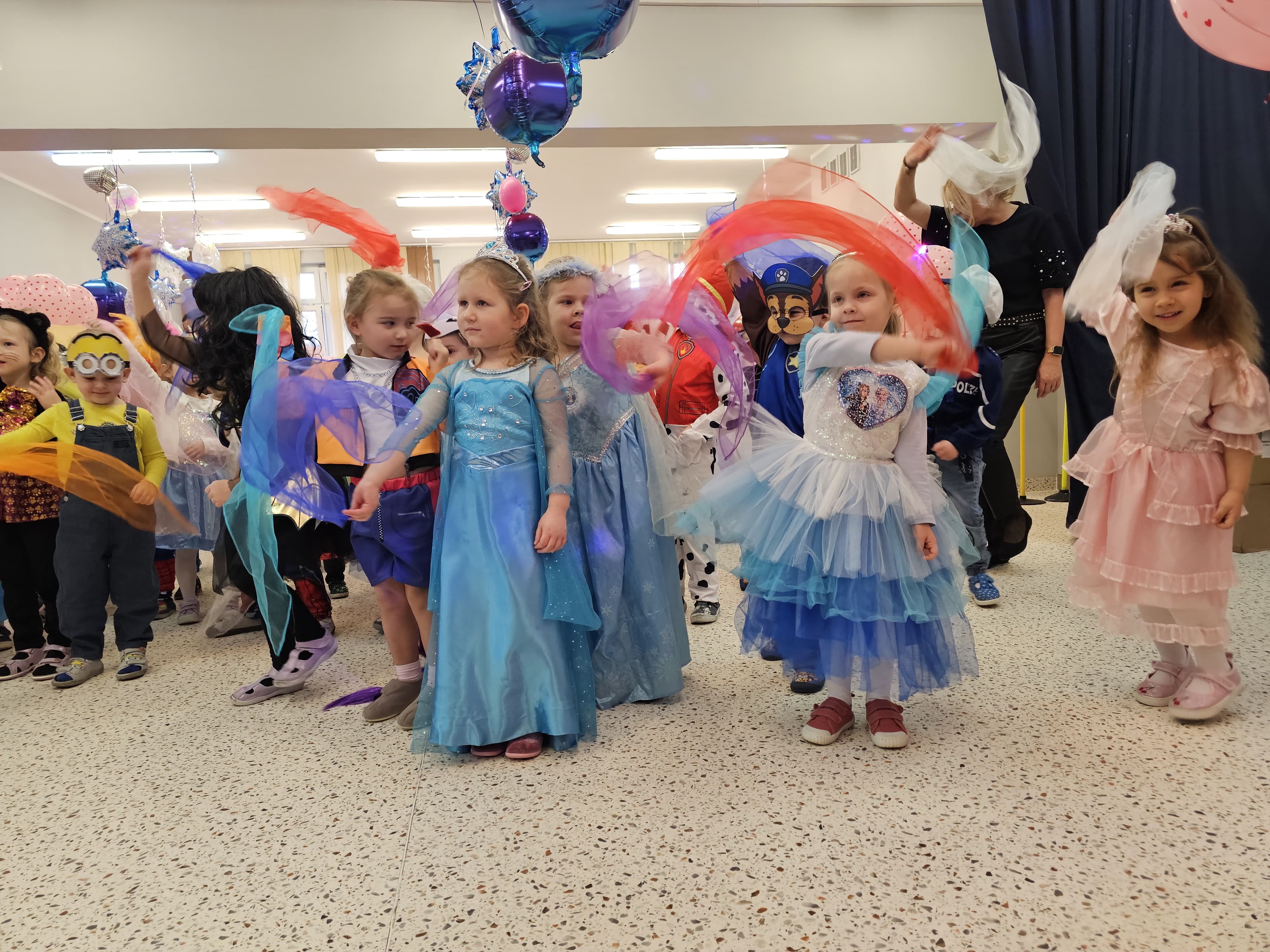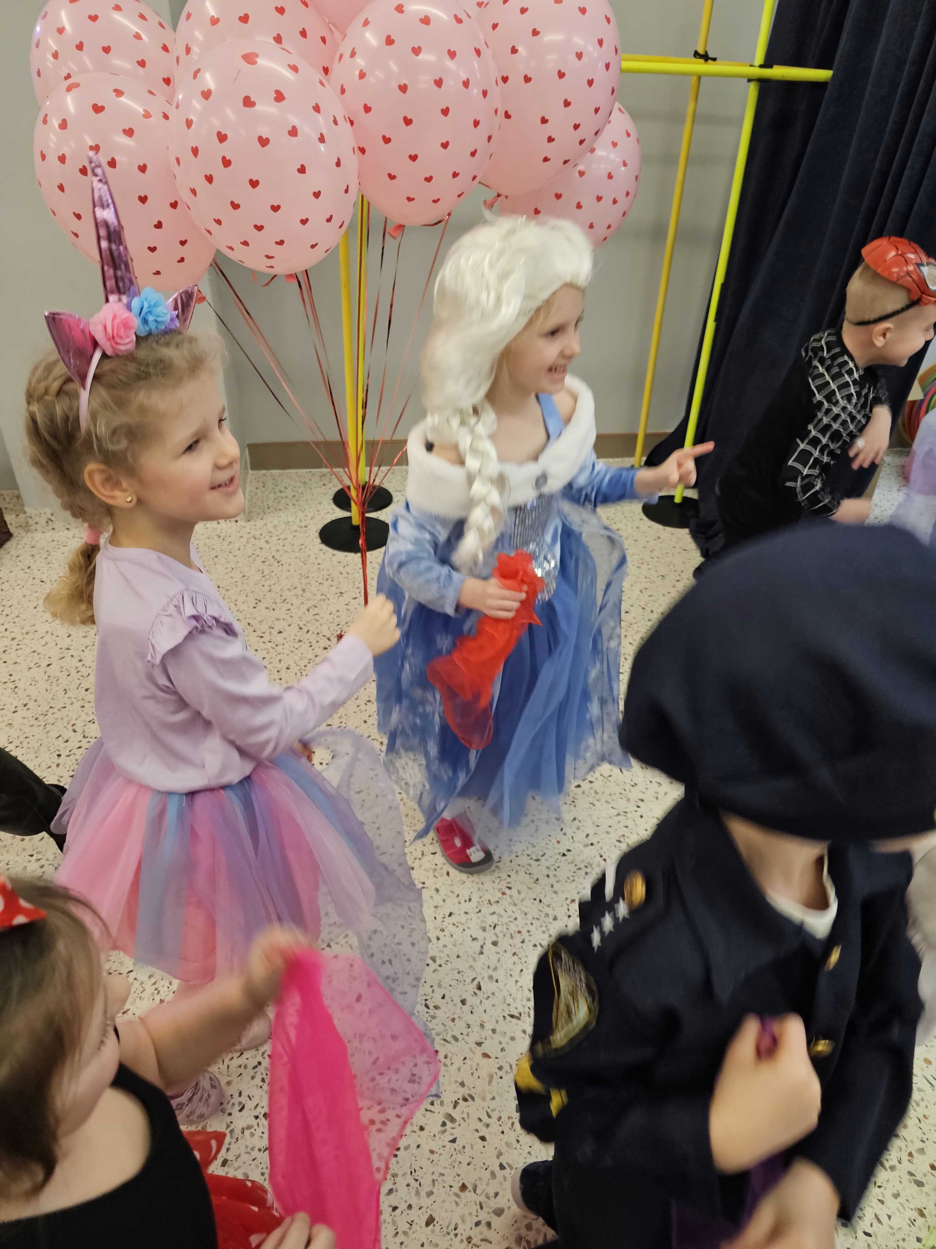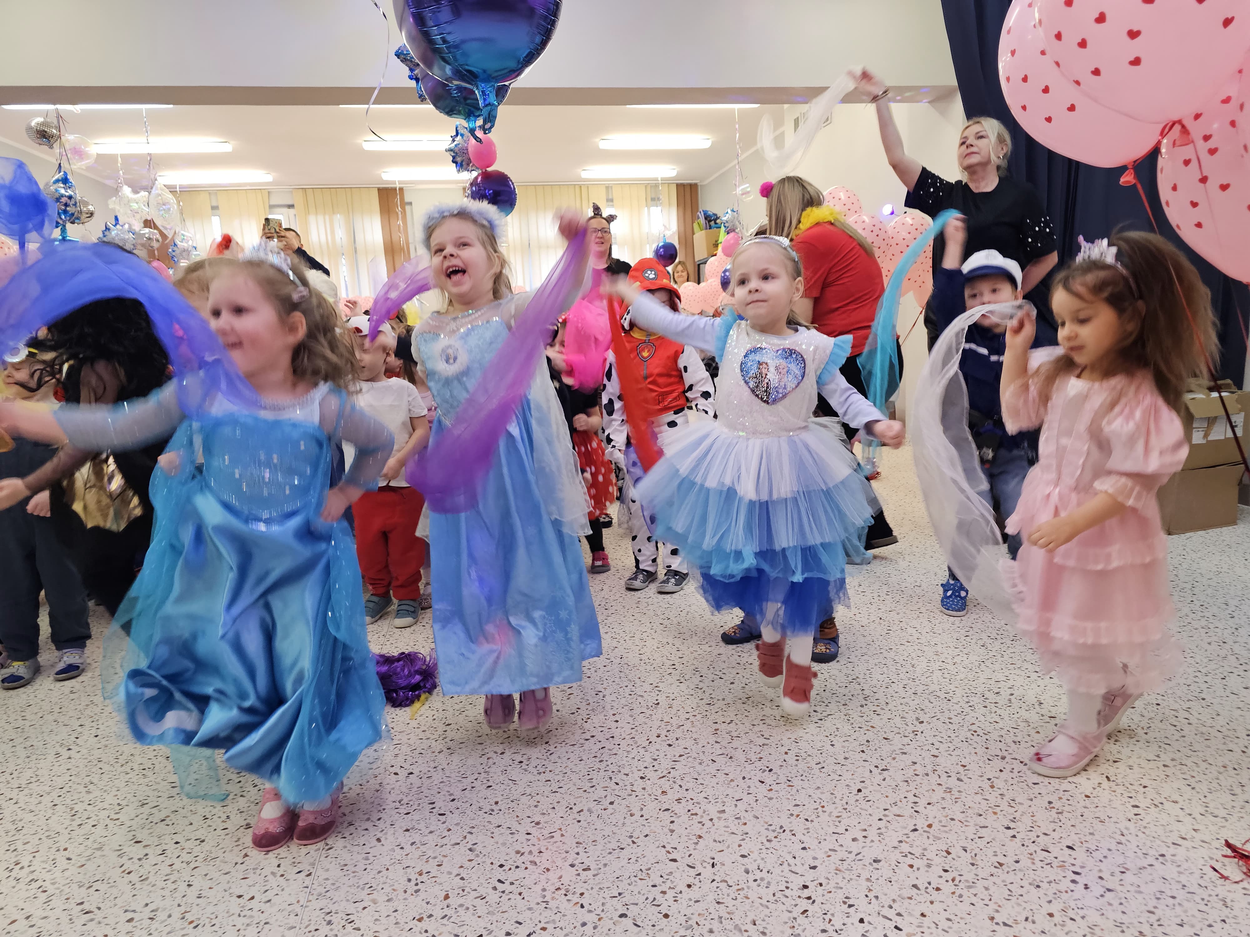 13 lutego średniaki z Grupy X uczestniczyły w wyjątkowym Balu Walentynkowo-Karnawałowym. Tego dnia sala przedszkolna zamieniła się w kolorową, bajkową przestrzeń pełną serduszek, balonów i błyszczących dekoracji, sprzyjającą radosnej zabawie oraz wspólnemu świętowaniu. Dzieci zaprezentowały się w pięknych i pomysłowych strojach. Wśród uczestników można było podziwiać księżniczki, superbohaterów, zwierzątka oraz wiele innych bajkowych postaci. Każde przebranie było wyjątkowe i wzbudzało duże zainteresowanie. Podczas balu nie zabrakło wspólnych tańców, zabaw ruchowych oraz konkursów. Ogromną radość sprawiły dzieciom zabawy z kolorowymi gadżetami karnawałowymi. Dodatkową atrakcją były bańki mydlane, które unosząc się w powietrzu, wywoływały wiele śmiechu i zachęcały do wspólnej zabawy. W rytmie wesołej muzyki dzieci bawiły się z ogromnym zaangażowaniem – radości i pozytywnej energii było co niemiara! Walentynkowy klimat sprzyjał okazywaniu sobie życzliwości, sympatii i przyjaźni. Serdecznie dziękujemy Rodzicom za zaangażowanie i pomoc w przygotowaniu dekoracji sali. Dzięki Państwa wsparciu, udało się stworzyć wyjątkową, karnawałową atmosferę. Dziękujemy również za przygotowanie pysznego poczęstunku, który był miłym uzupełnieniem wspólnej zabawy i dodał energii naszym małym uczestnikom. To był niezapomniany dzień pełen uśmiechu, tańca i wspaniałej zabawy, który na długo pozostanie w pamięci średniaków. Już nie możemy doczekać się kolejnego balu!