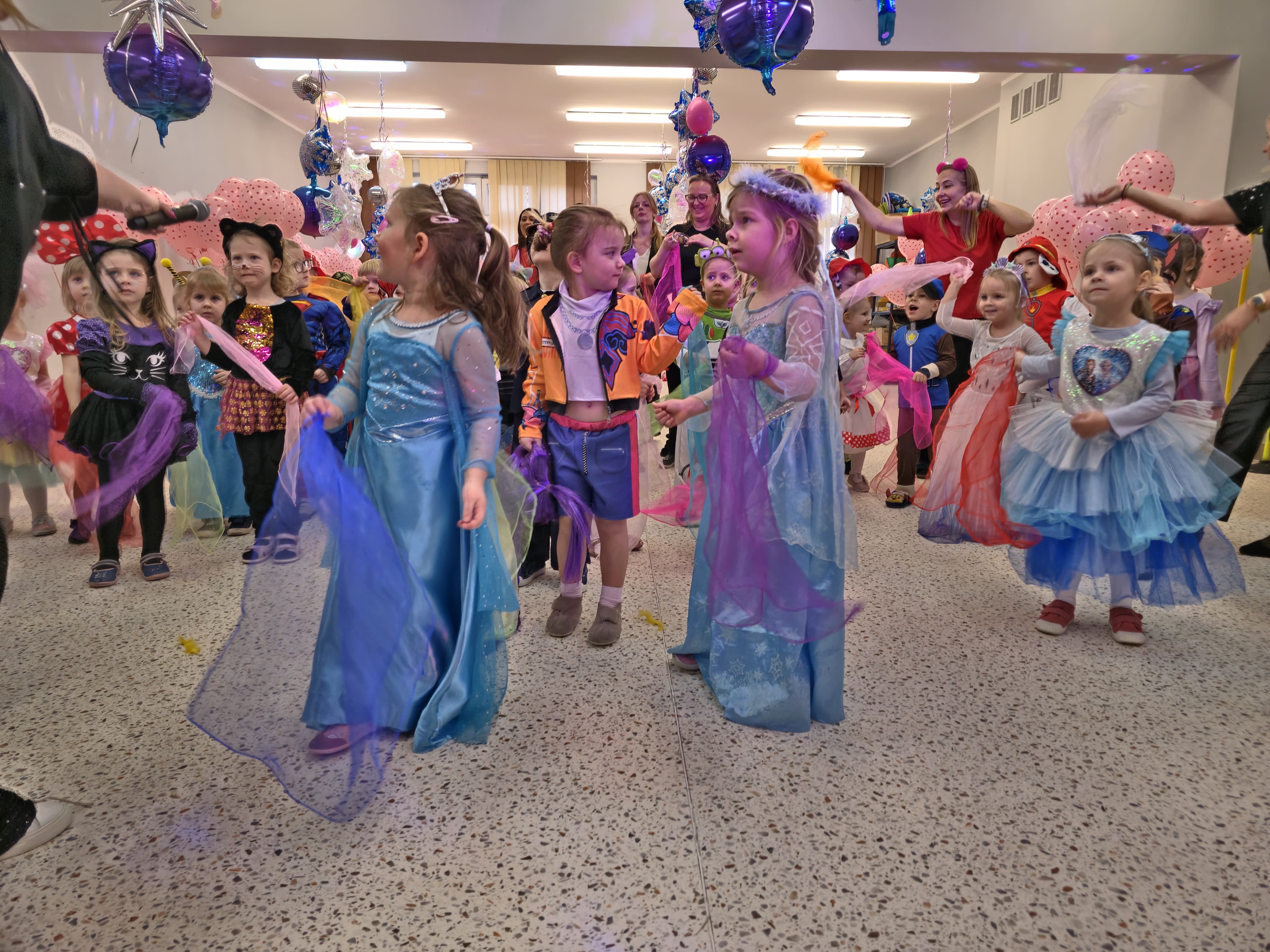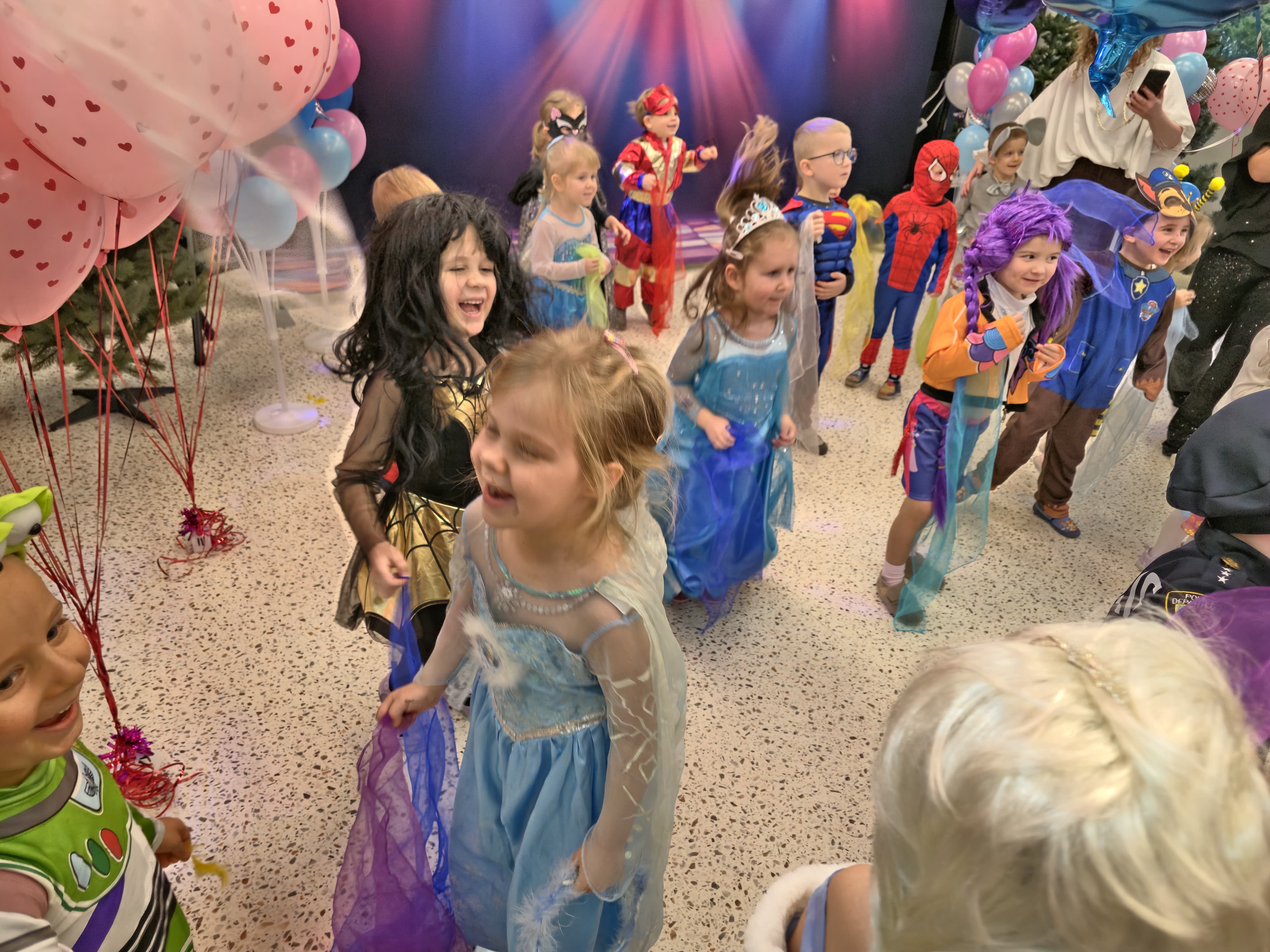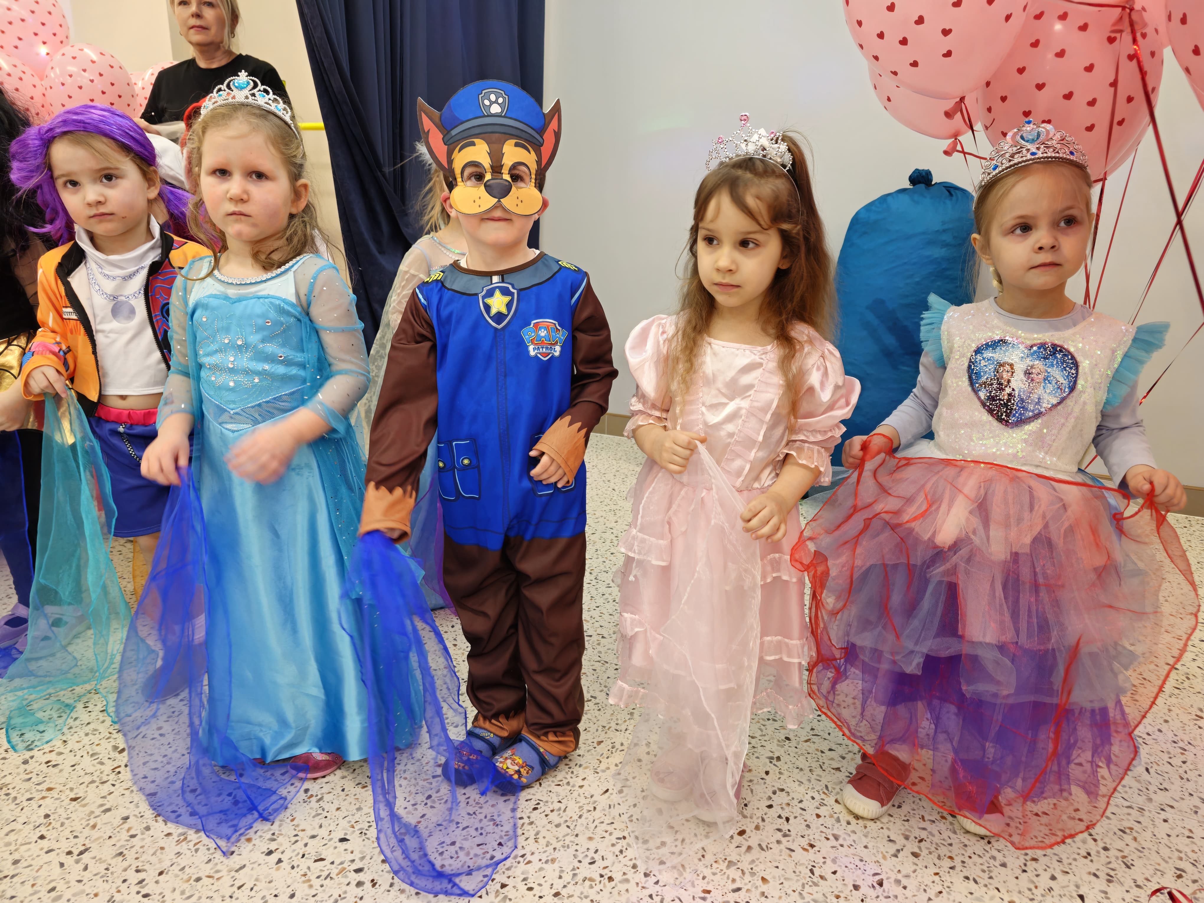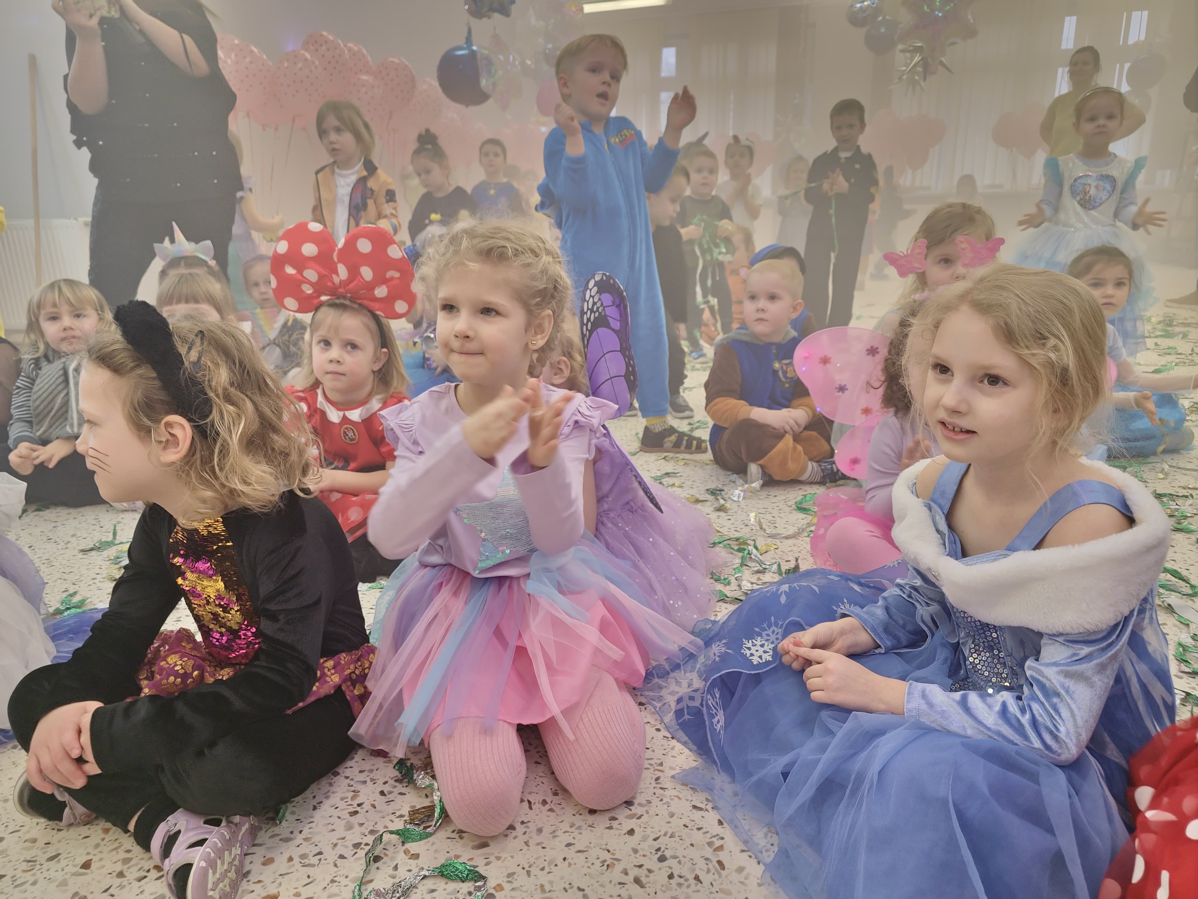 13 lutego średniaki z Grupy X uczestniczyły w wyjątkowym Balu Walentynkowo-Karnawałowym. Tego dnia sala przedszkolna zamieniła się w kolorową, bajkową przestrzeń pełną serduszek, balonów i błyszczących dekoracji, sprzyjającą radosnej zabawie oraz wspólnemu świętowaniu. Dzieci zaprezentowały się w pięknych i pomysłowych strojach. Wśród uczestników można było podziwiać księżniczki, superbohaterów, zwierzątka oraz wiele innych bajkowych postaci. Każde przebranie było wyjątkowe i wzbudzało duże zainteresowanie. Podczas balu nie zabrakło wspólnych tańców, zabaw ruchowych oraz konkursów. Ogromną radość sprawiły dzieciom zabawy z kolorowymi gadżetami karnawałowymi. Dodatkową atrakcją były bańki mydlane, które unosząc się w powietrzu, wywoływały wiele śmiechu i zachęcały do wspólnej zabawy. W rytmie wesołej muzyki dzieci bawiły się z ogromnym zaangażowaniem – radości i pozytywnej energii było co niemiara! Walentynkowy klimat sprzyjał okazywaniu sobie życzliwości, sympatii i przyjaźni. Serdecznie dziękujemy Rodzicom za zaangażowanie i pomoc w przygotowaniu dekoracji sali. Dzięki Państwa wsparciu, udało się stworzyć wyjątkową, karnawałową atmosferę. Dziękujemy również za przygotowanie pysznego poczęstunku, który był miłym uzupełnieniem wspólnej zabawy i dodał energii naszym małym uczestnikom. To był niezapomniany dzień pełen uśmiechu, tańca i wspaniałej zabawy, który na długo pozostanie w pamięci średniaków. Już nie możemy doczekać się kolejnego balu!