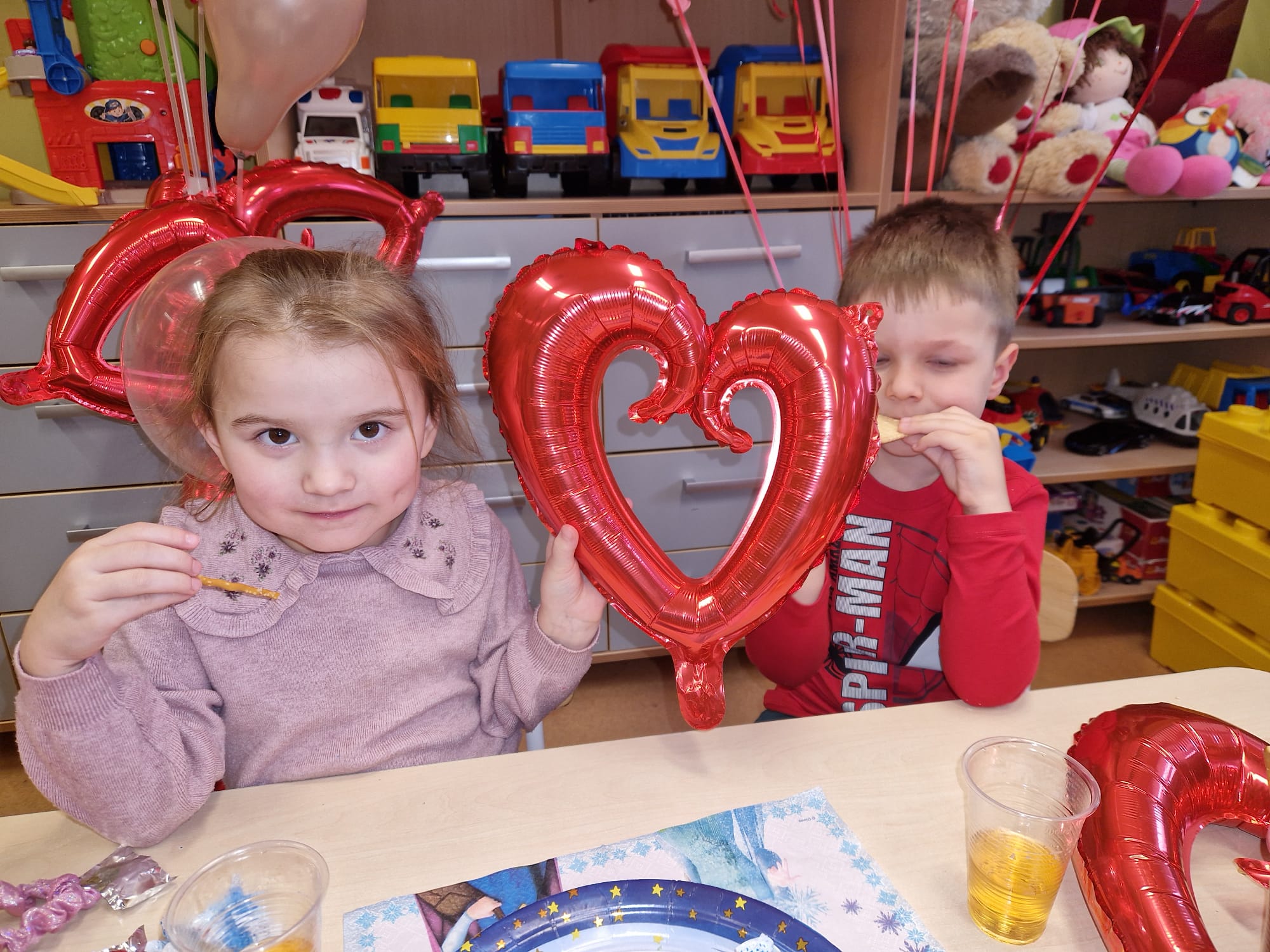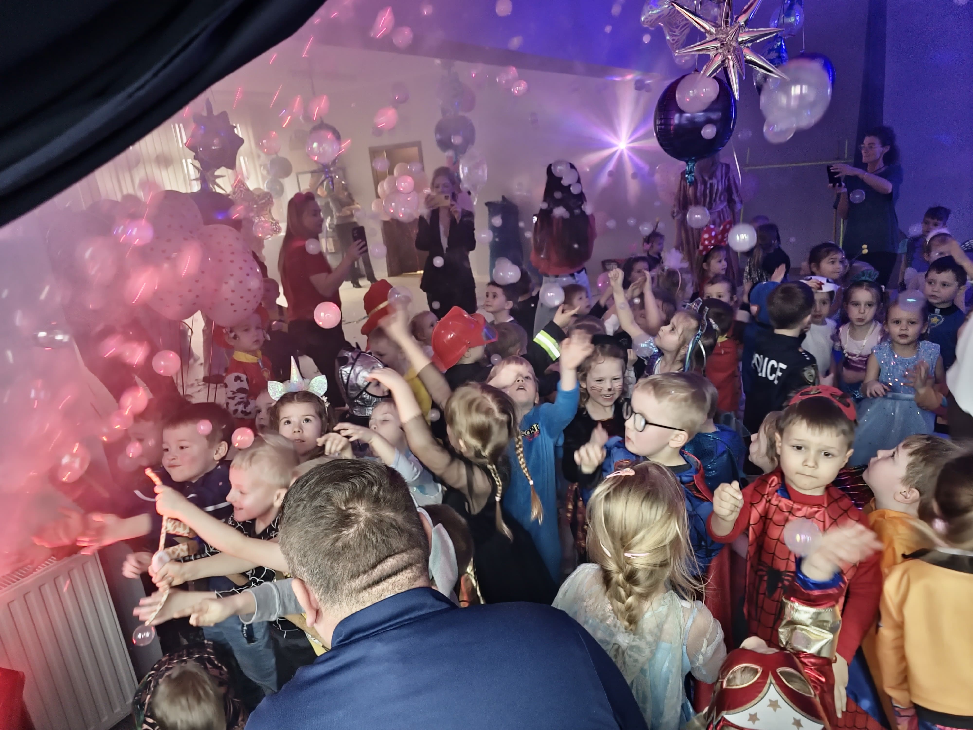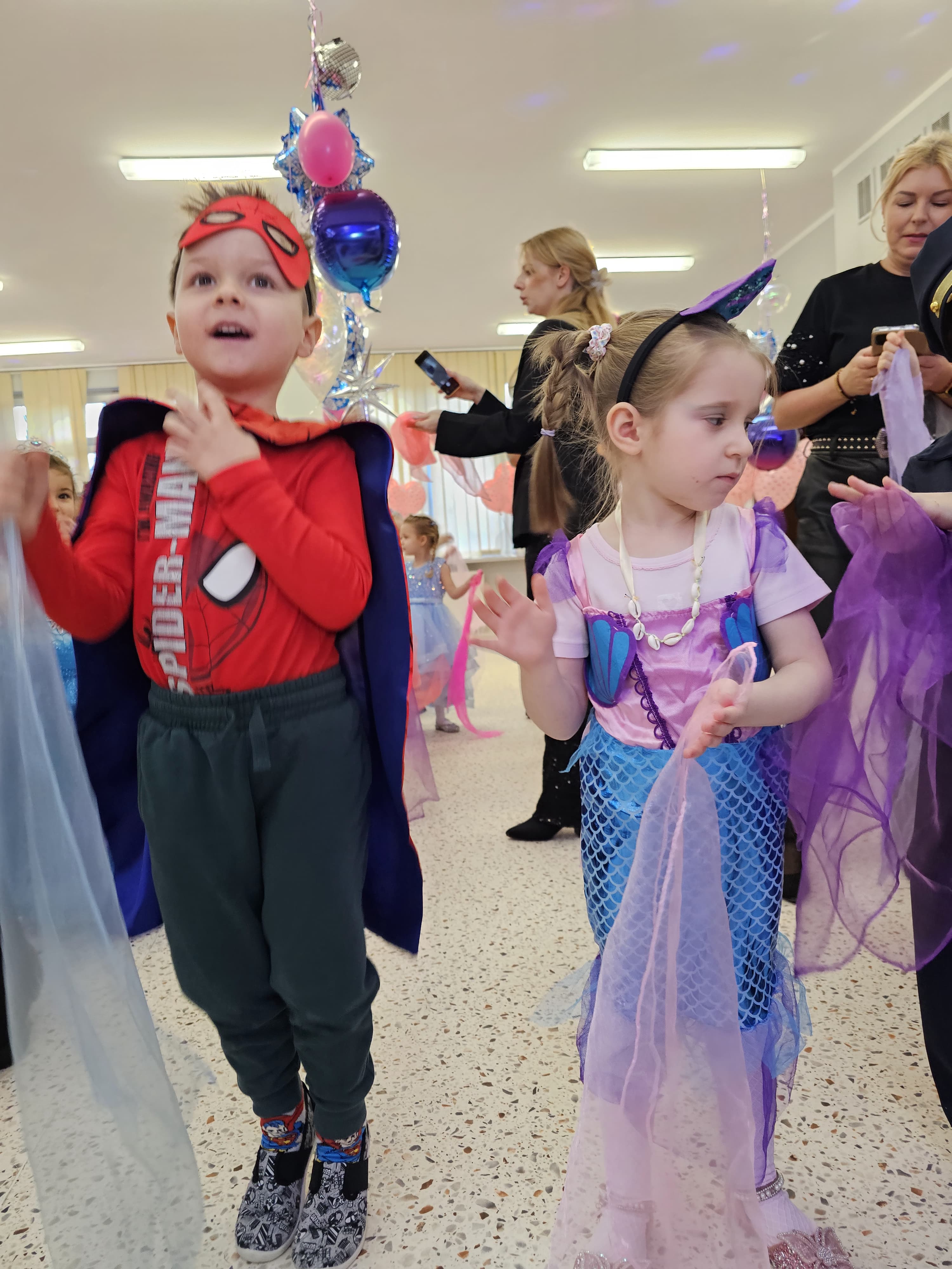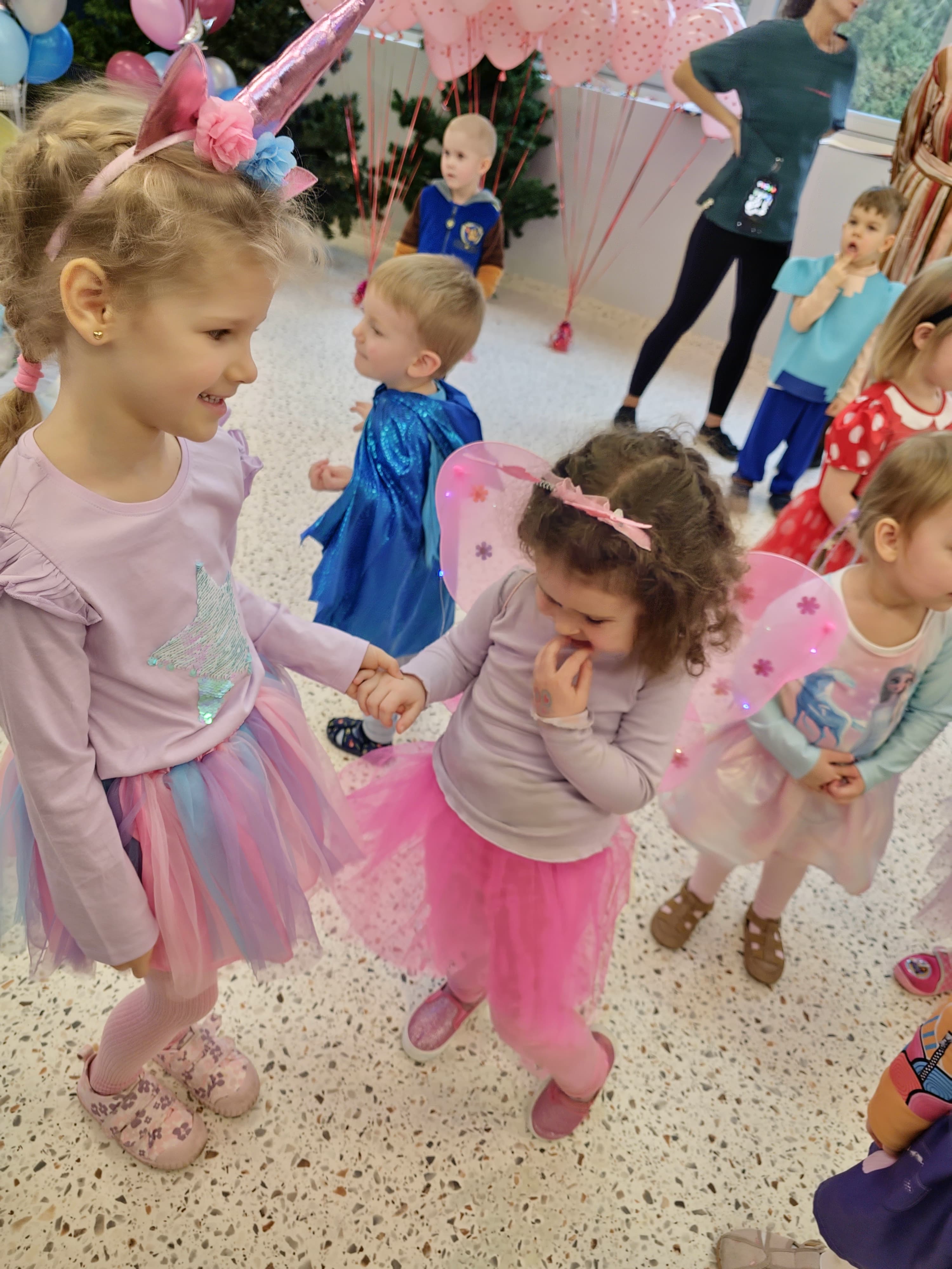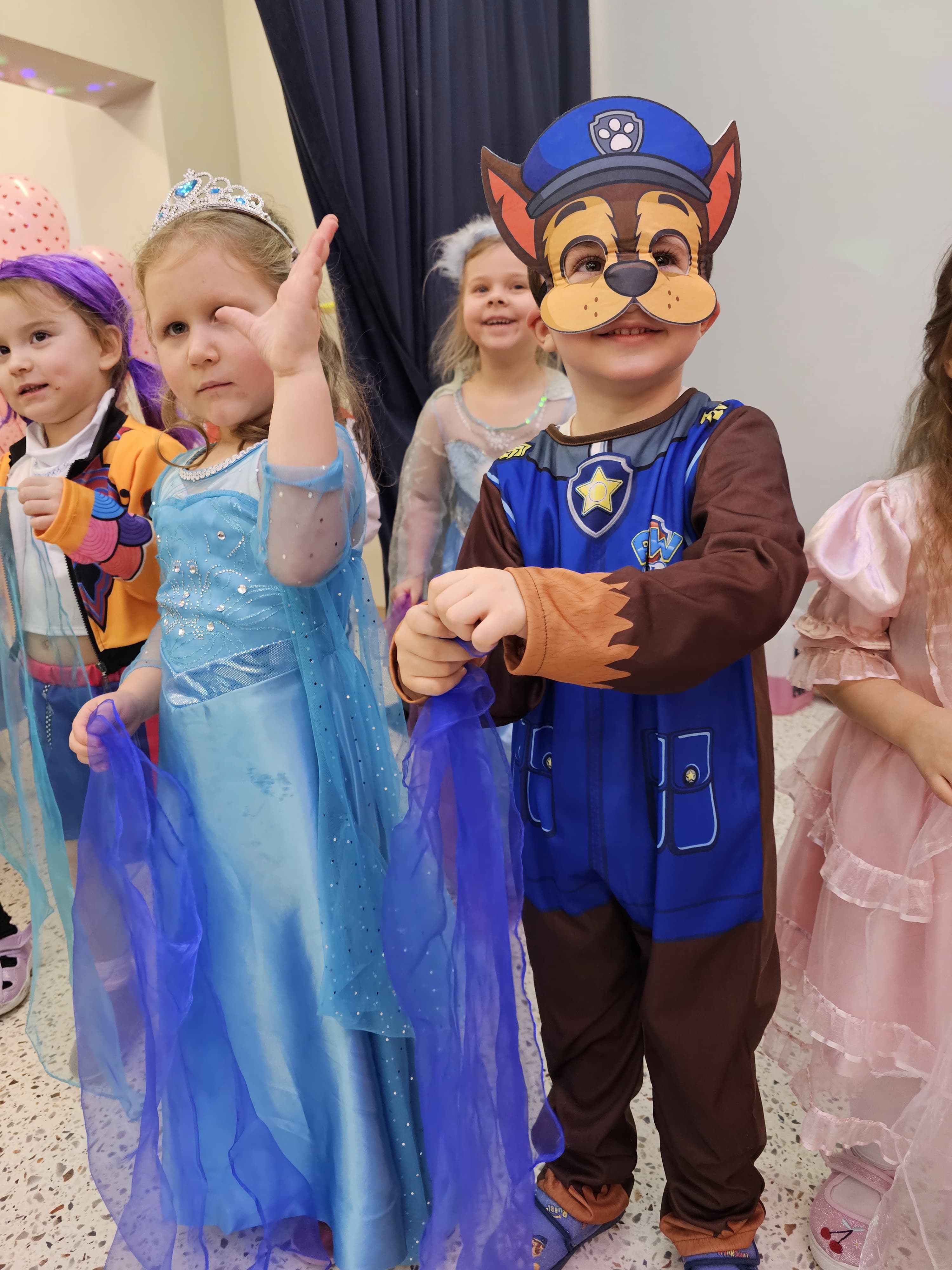 13 lutego średniaki z Grupy X uczestniczyły w wyjątkowym Balu Walentynkowo-Karnawałowym. Tego dnia sala przedszkolna zamieniła się w kolorową, bajkową przestrzeń pełną serduszek, balonów i błyszczących dekoracji, sprzyjającą radosnej zabawie oraz wspólnemu świętowaniu. Dzieci zaprezentowały się w pięknych i pomysłowych strojach. Wśród uczestników można było podziwiać księżniczki, superbohaterów, zwierzątka oraz wiele innych bajkowych postaci. Każde przebranie było wyjątkowe i wzbudzało duże zainteresowanie. Podczas balu nie zabrakło wspólnych tańców, zabaw ruchowych oraz konkursów. Ogromną radość sprawiły dzieciom zabawy z kolorowymi gadżetami karnawałowymi. Dodatkową atrakcją były bańki mydlane, które unosząc się w powietrzu, wywoływały wiele śmiechu i zachęcały do wspólnej zabawy. W rytmie wesołej muzyki dzieci bawiły się z ogromnym zaangażowaniem – radości i pozytywnej energii było co niemiara! Walentynkowy klimat sprzyjał okazywaniu sobie życzliwości, sympatii i przyjaźni. Serdecznie dziękujemy Rodzicom za zaangażowanie i pomoc w przygotowaniu dekoracji sali. Dzięki Państwa wsparciu, udało się stworzyć wyjątkową, karnawałową atmosferę. Dziękujemy również za przygotowanie pysznego poczęstunku, który był miłym uzupełnieniem wspólnej zabawy i dodał energii naszym małym uczestnikom. To był niezapomniany dzień pełen uśmiechu, tańca i wspaniałej zabawy, który na długo pozostanie w pamięci średniaków. Już nie możemy doczekać się kolejnego balu!