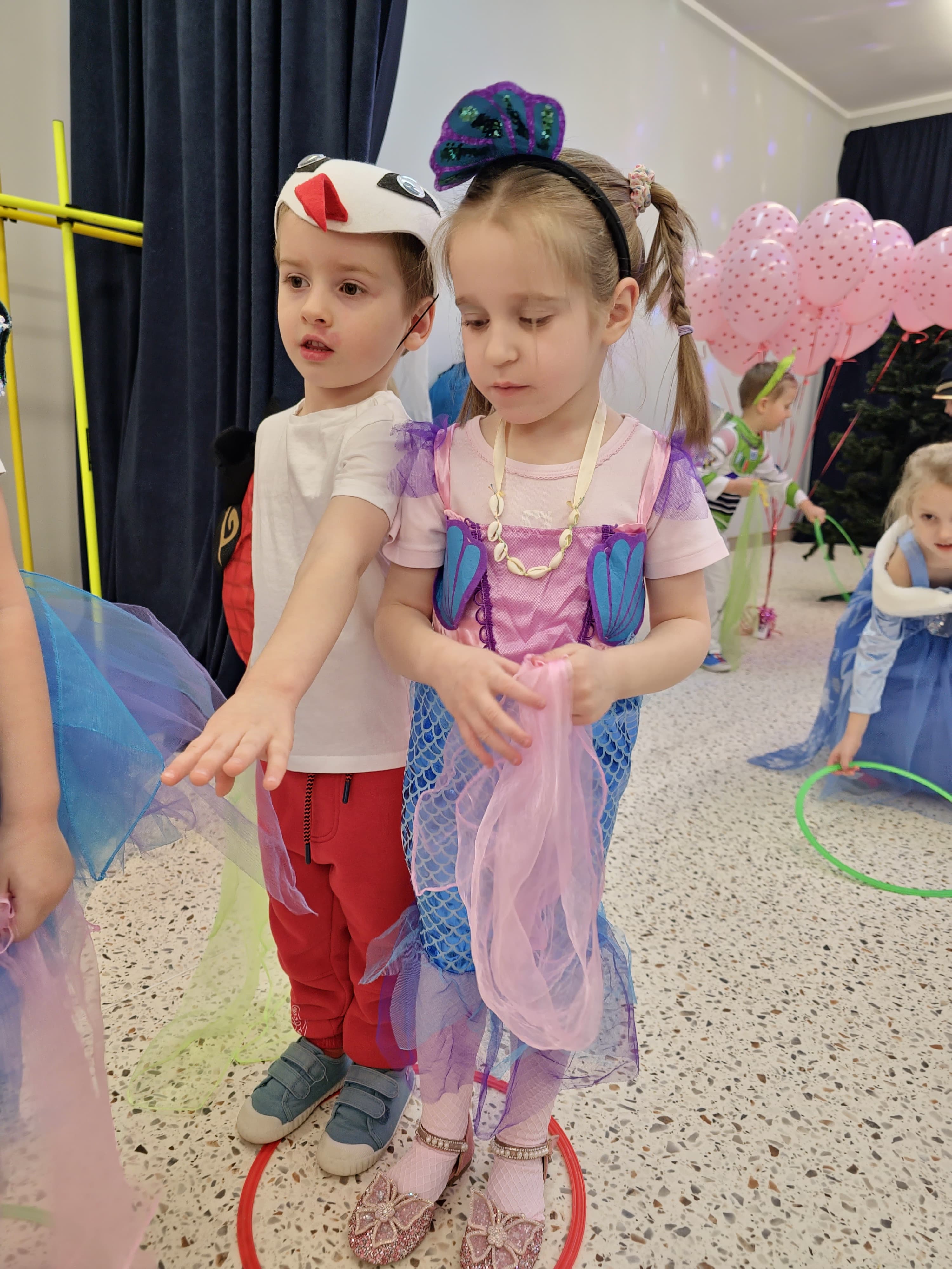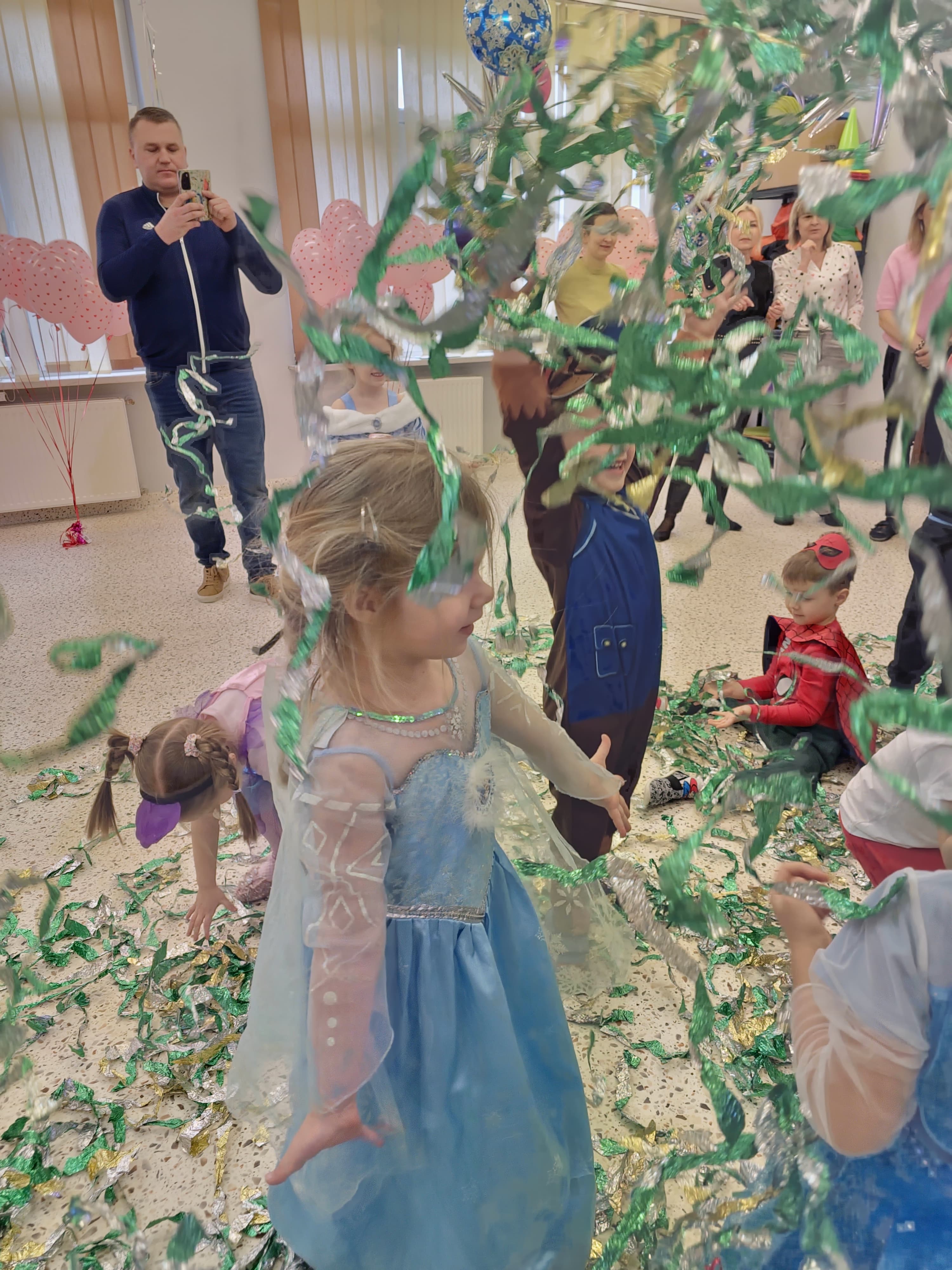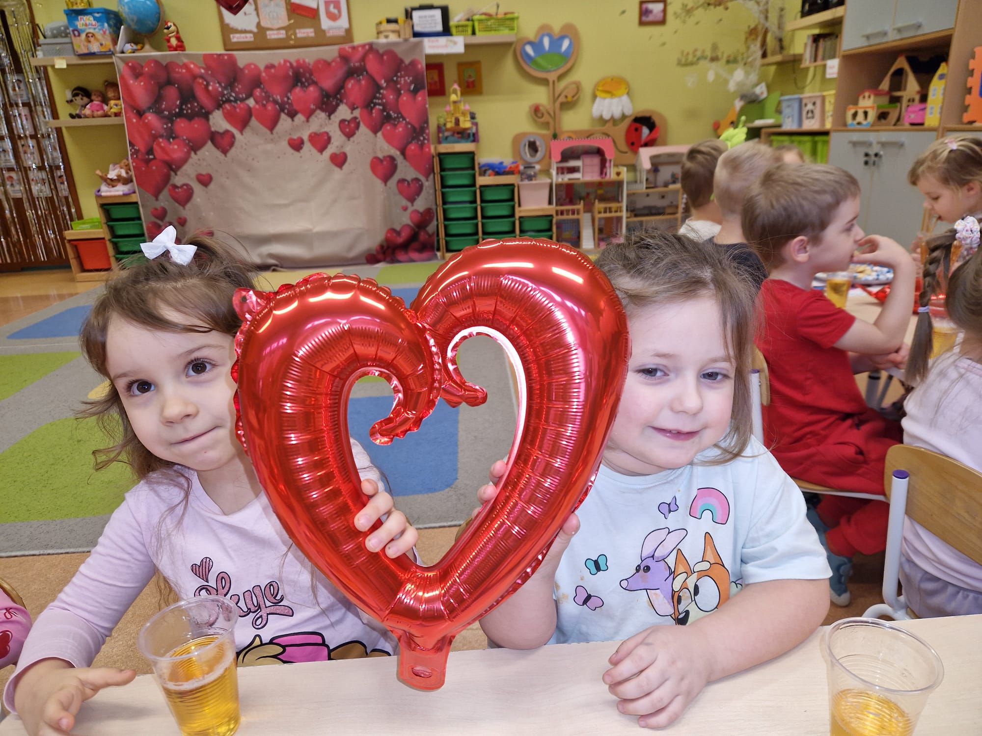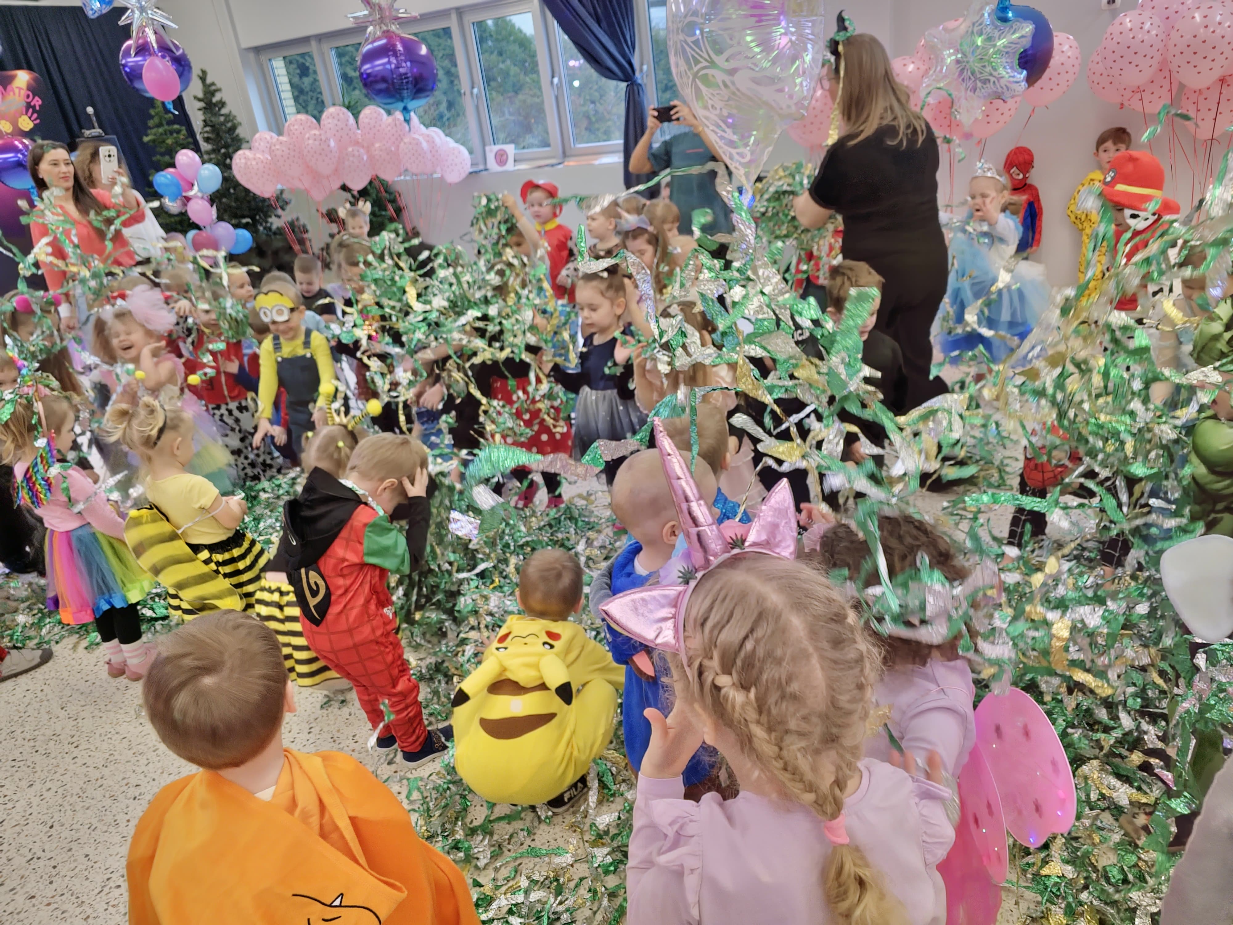13 lutego średniaki z Grupy X uczestniczyły w wyjątkowym Balu Walentynkowo-Karnawałowym. Tego dnia sala przedszkolna zamieniła się w kolorową, bajkową przestrzeń pełną serduszek, balonów i błyszczących dekoracji, sprzyjającą radosnej zabawie oraz wspólnemu świętowaniu. Dzieci zaprezentowały się w pięknych i pomysłowych strojach. Wśród uczestników można było podziwiać księżniczki, superbohaterów, zwierzątka oraz wiele innych bajkowych postaci. Każde przebranie było wyjątkowe i wzbudzało duże zainteresowanie. Podczas balu nie zabrakło wspólnych tańców, zabaw ruchowych oraz konkursów. Ogromną radość sprawiły dzieciom zabawy z kolorowymi gadżetami karnawałowymi. Dodatkową atrakcją były bańki mydlane, które unosząc się w powietrzu, wywoływały wiele śmiechu i zachęcały do wspólnej zabawy. W rytmie wesołej muzyki dzieci bawiły się z ogromnym zaangażowaniem – radości i pozytywnej energii było co niemiara! Walentynkowy klimat sprzyjał okazywaniu sobie życzliwości, sympatii i przyjaźni. Serdecznie dziękujemy Rodzicom za zaangażowanie i pomoc w przygotowaniu dekoracji sali. Dzięki Państwa wsparciu, udało się stworzyć wyjątkową, karnawałową atmosferę. Dziękujemy również za przygotowanie pysznego poczęstunku, który był miłym uzupełnieniem wspólnej zabawy i dodał energii naszym małym uczestnikom. To był niezapomniany dzień pełen uśmiechu, tańca i wspaniałej zabawy, który na długo pozostanie w pamięci średniaków. Już nie możemy doczekać się kolejnego balu!