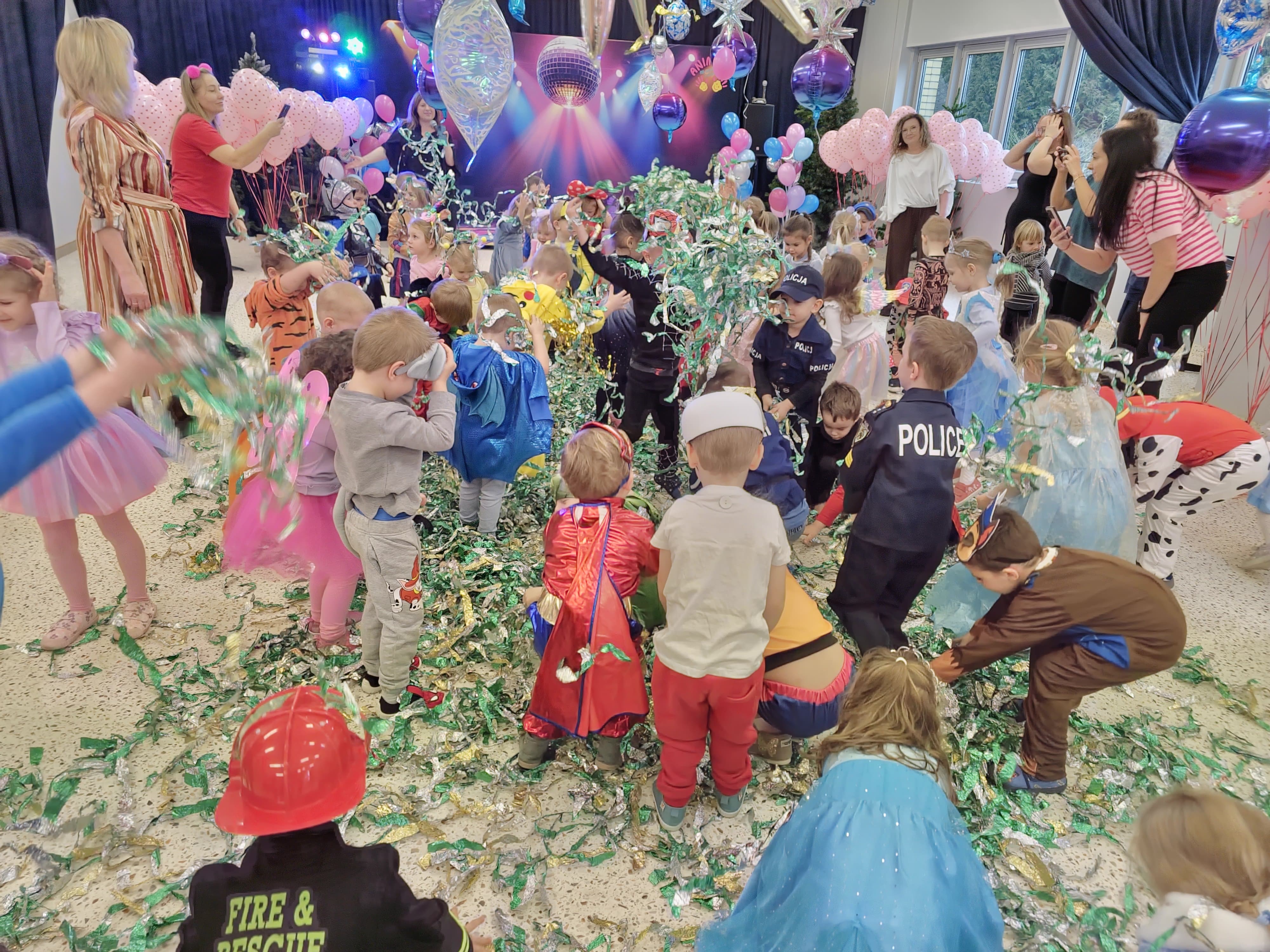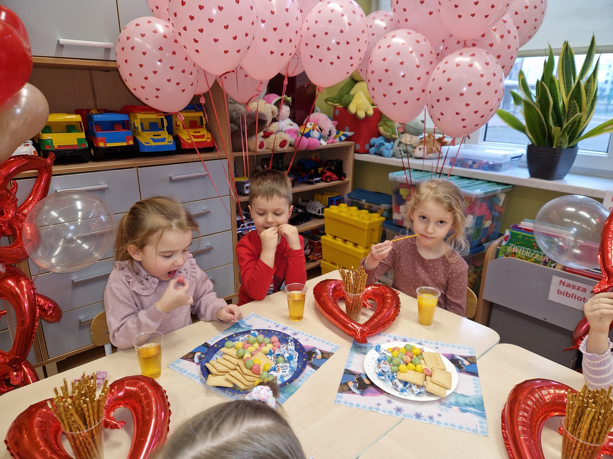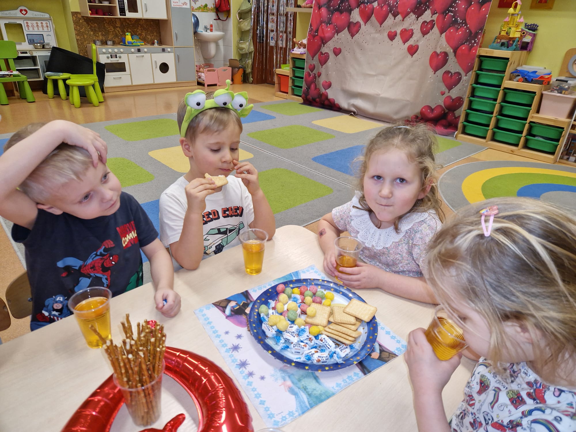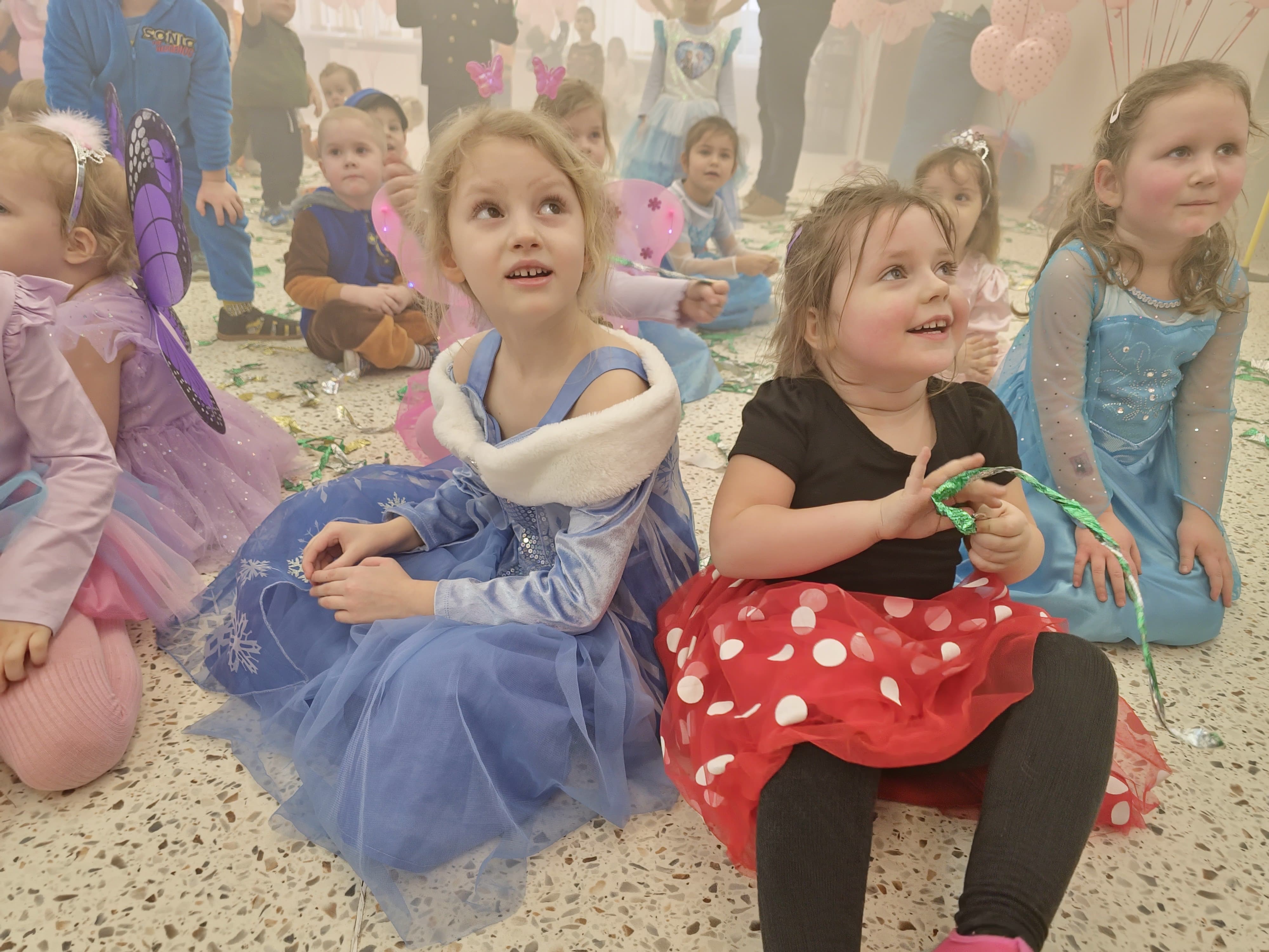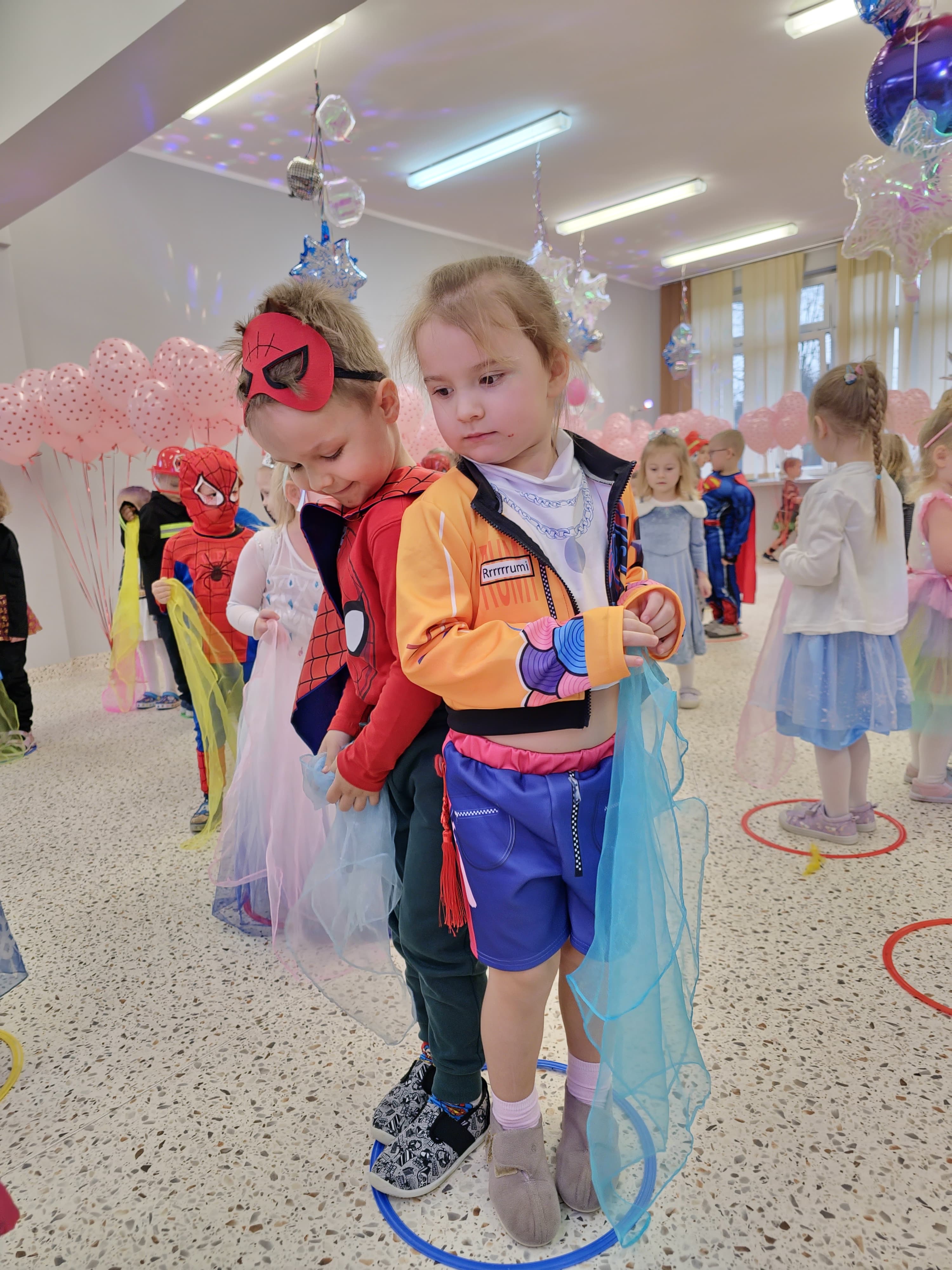 13 lutego średniaki z Grupy X uczestniczyły w wyjątkowym Balu Walentynkowo-Karnawałowym. Tego dnia sala przedszkolna zamieniła się w kolorową, bajkową przestrzeń pełną serduszek, balonów i błyszczących dekoracji, sprzyjającą radosnej zabawie oraz wspólnemu świętowaniu. Dzieci zaprezentowały się w pięknych i pomysłowych strojach. Wśród uczestników można było podziwiać księżniczki, superbohaterów, zwierzątka oraz wiele innych bajkowych postaci. Każde przebranie było wyjątkowe i wzbudzało duże zainteresowanie. Podczas balu nie zabrakło wspólnych tańców, zabaw ruchowych oraz konkursów. Ogromną radość sprawiły dzieciom zabawy z kolorowymi gadżetami karnawałowymi. Dodatkową atrakcją były bańki mydlane, które unosząc się w powietrzu, wywoływały wiele śmiechu i zachęcały do wspólnej zabawy. W rytmie wesołej muzyki dzieci bawiły się z ogromnym zaangażowaniem – radości i pozytywnej energii było co niemiara! Walentynkowy klimat sprzyjał okazywaniu sobie życzliwości, sympatii i przyjaźni. Serdecznie dziękujemy Rodzicom za zaangażowanie i pomoc w przygotowaniu dekoracji sali. Dzięki Państwa wsparciu, udało się stworzyć wyjątkową, karnawałową atmosferę. Dziękujemy również za przygotowanie pysznego poczęstunku, który był miłym uzupełnieniem wspólnej zabawy i dodał energii naszym małym uczestnikom. To był niezapomniany dzień pełen uśmiechu, tańca i wspaniałej zabawy, który na długo pozostanie w pamięci średniaków. Już nie możemy doczekać się kolejnego balu!