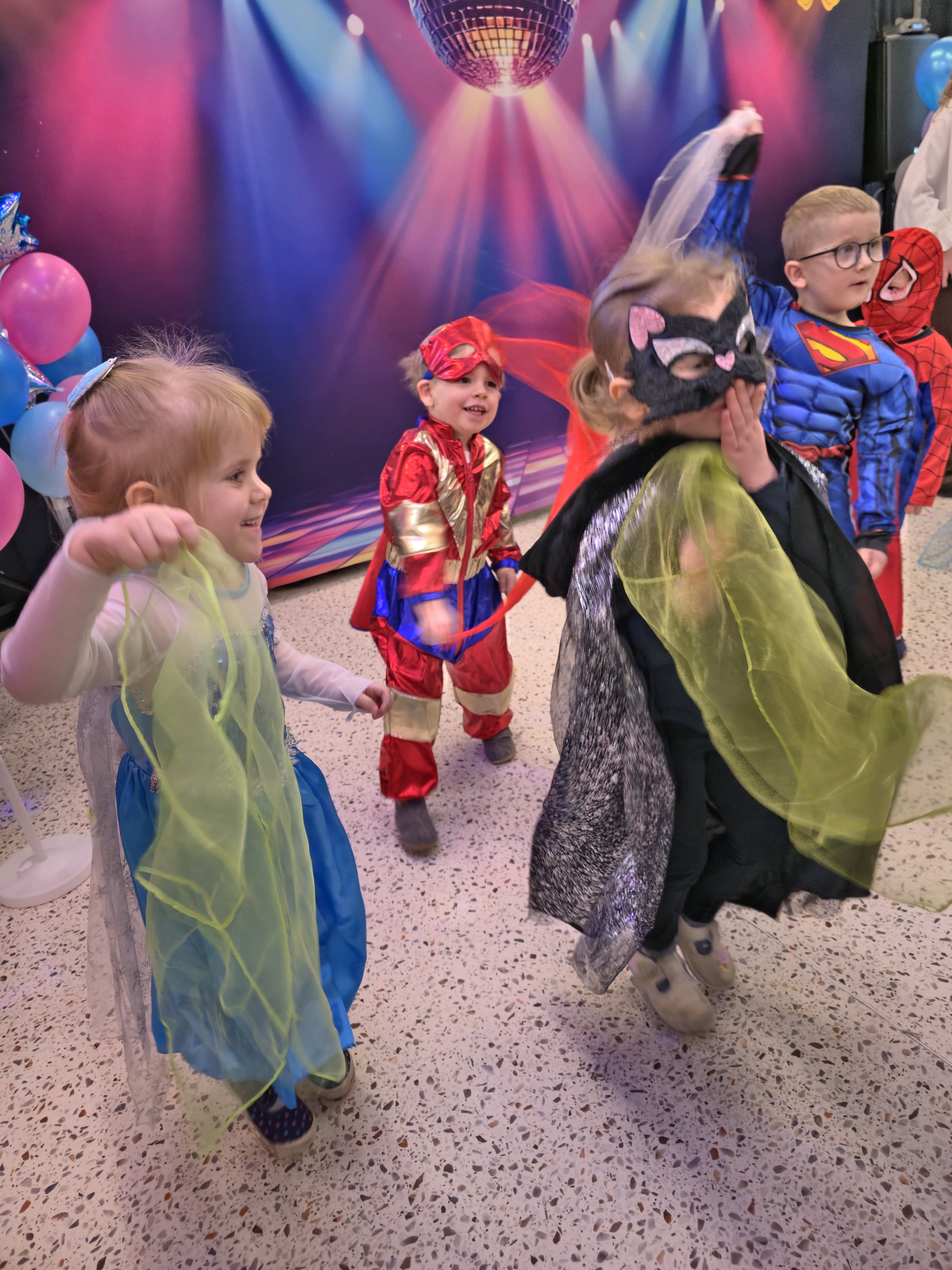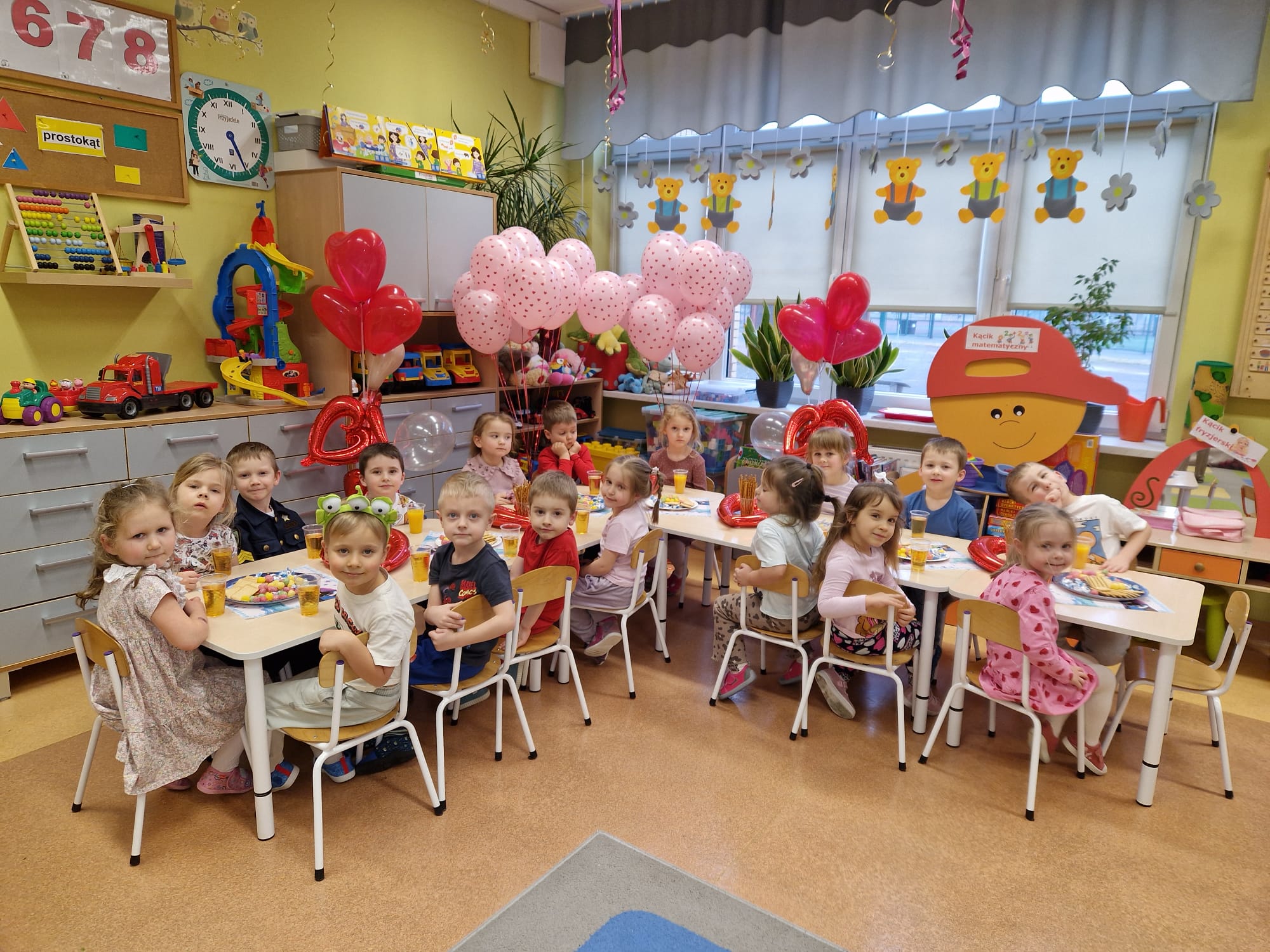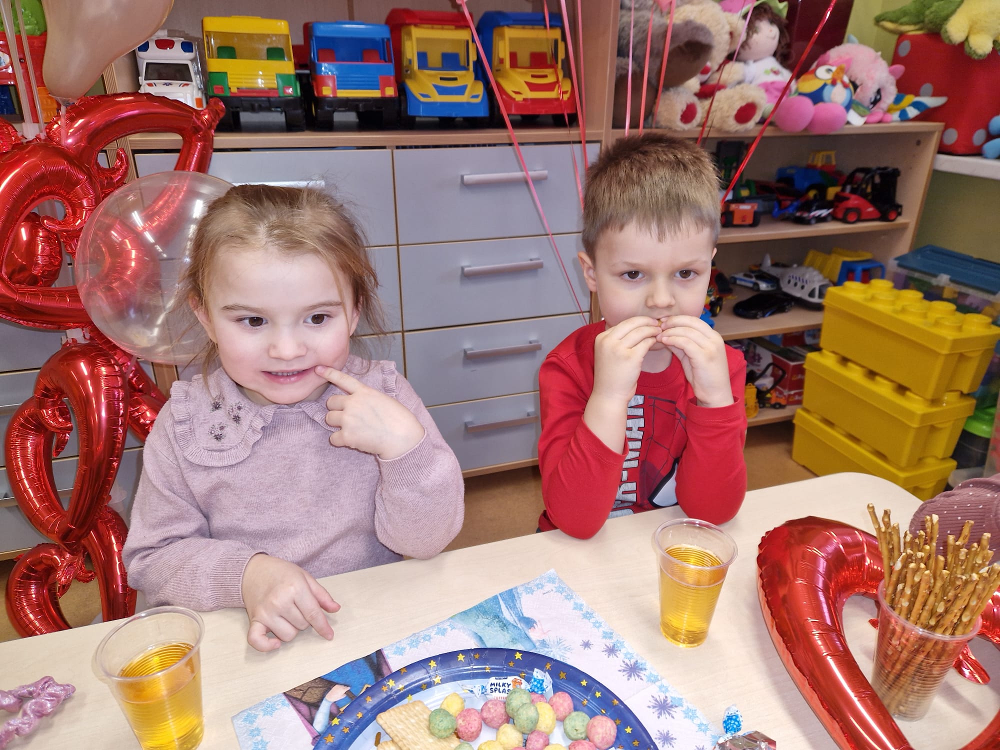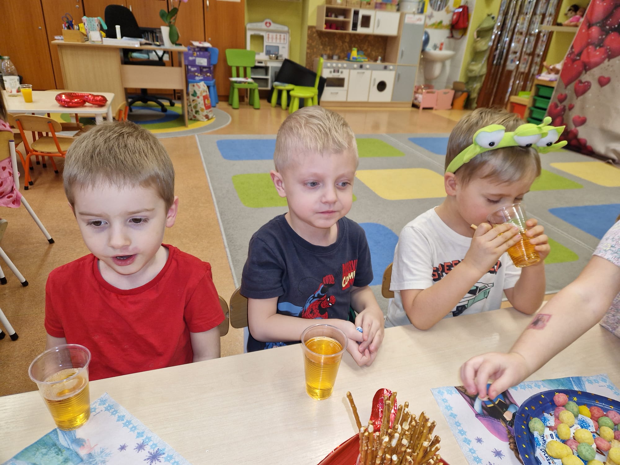 13 lutego średniaki z Grupy X uczestniczyły w wyjątkowym Balu Walentynkowo-Karnawałowym. Tego dnia sala przedszkolna zamieniła się w kolorową, bajkową przestrzeń pełną serduszek, balonów i błyszczących dekoracji, sprzyjającą radosnej zabawie oraz wspólnemu świętowaniu. Dzieci zaprezentowały się w pięknych i pomysłowych strojach. Wśród uczestników można było podziwiać księżniczki, superbohaterów, zwierzątka oraz wiele innych bajkowych postaci. Każde przebranie było wyjątkowe i wzbudzało duże zainteresowanie. Podczas balu nie zabrakło wspólnych tańców, zabaw ruchowych oraz konkursów. Ogromną radość sprawiły dzieciom zabawy z kolorowymi gadżetami karnawałowymi. Dodatkową atrakcją były bańki mydlane, które unosząc się w powietrzu, wywoływały wiele śmiechu i zachęcały do wspólnej zabawy. W rytmie wesołej muzyki dzieci bawiły się z ogromnym zaangażowaniem – radości i pozytywnej energii było co niemiara! Walentynkowy klimat sprzyjał okazywaniu sobie życzliwości, sympatii i przyjaźni. Serdecznie dziękujemy Rodzicom za zaangażowanie i pomoc w przygotowaniu dekoracji sali. Dzięki Państwa wsparciu, udało się stworzyć wyjątkową, karnawałową atmosferę. Dziękujemy również za przygotowanie pysznego poczęstunku, który był miłym uzupełnieniem wspólnej zabawy i dodał energii naszym małym uczestnikom. To był niezapomniany dzień pełen uśmiechu, tańca i wspaniałej zabawy, który na długo pozostanie w pamięci średniaków. Już nie możemy doczekać się kolejnego balu!