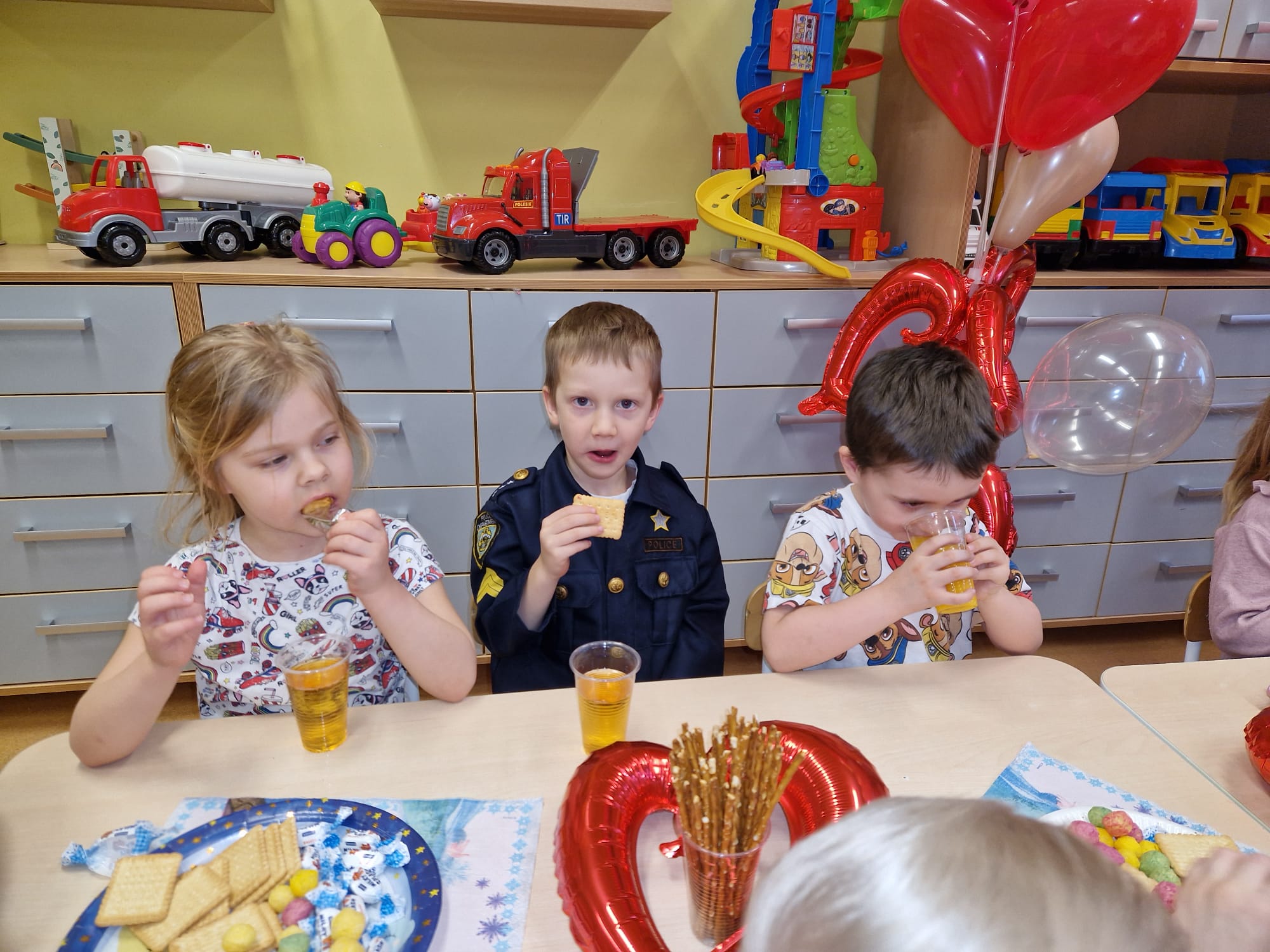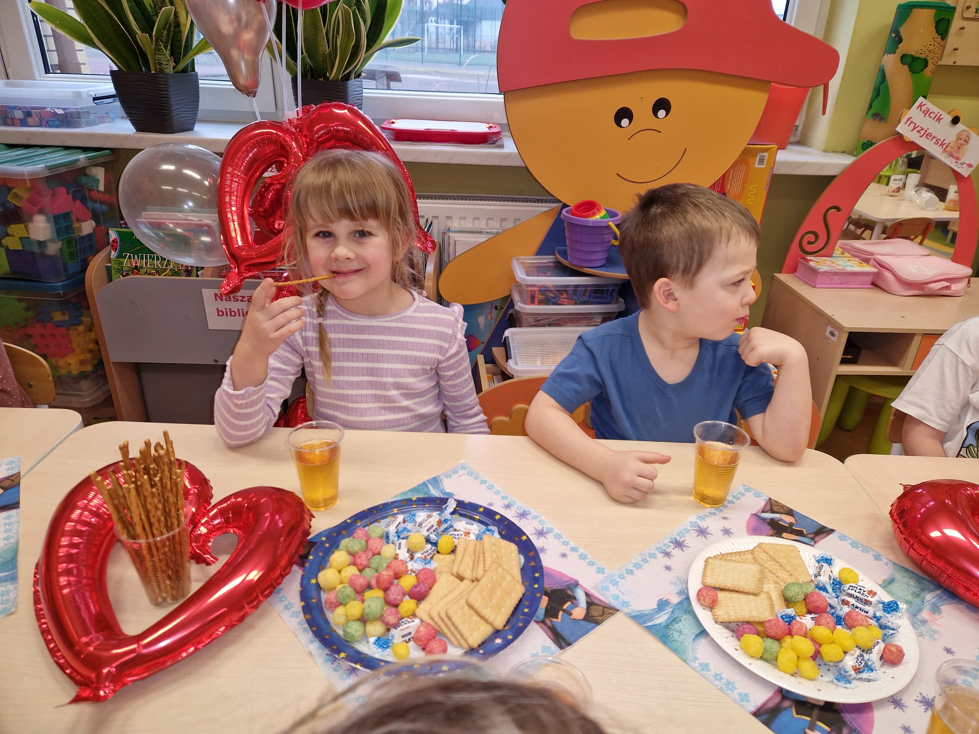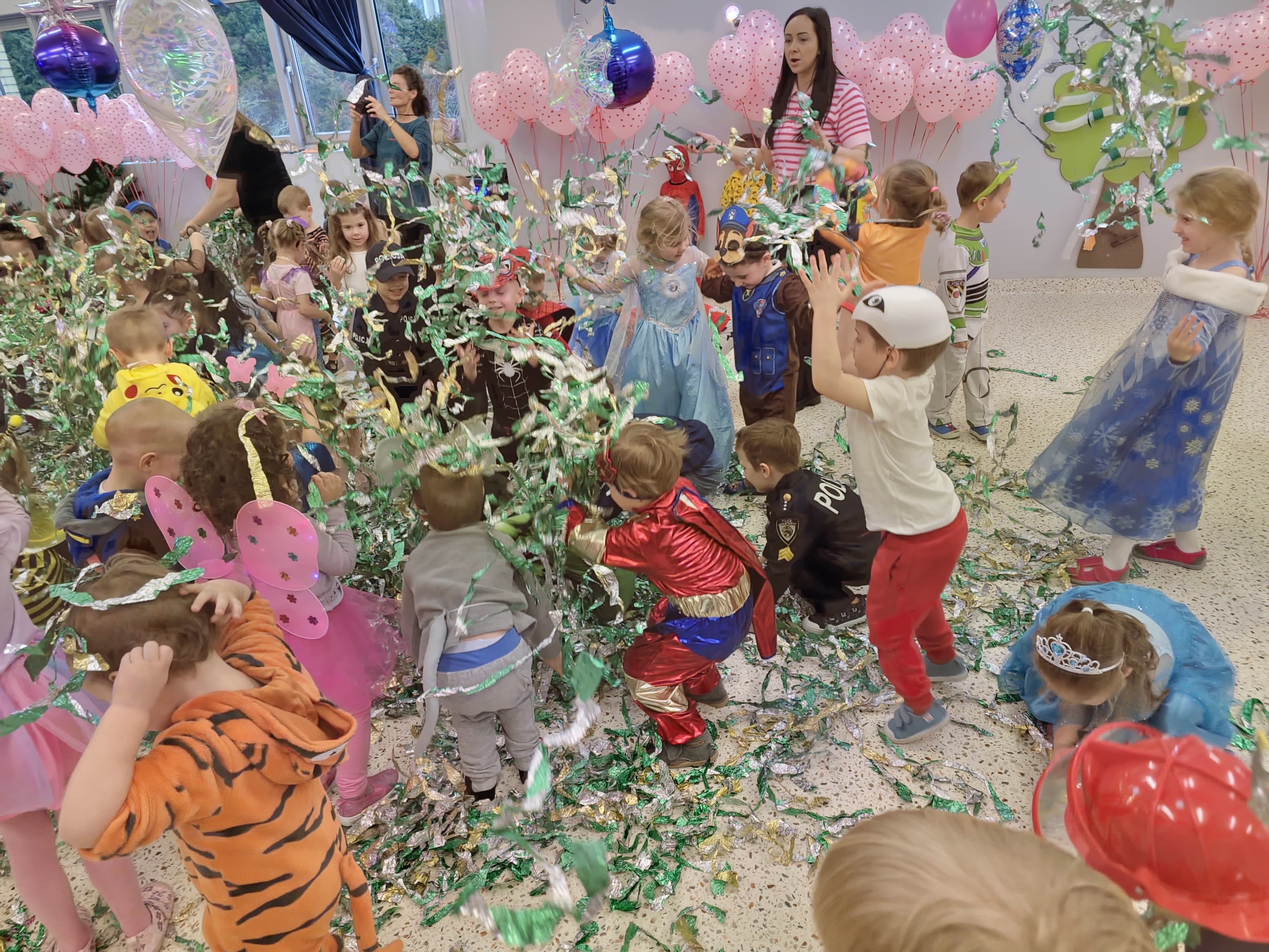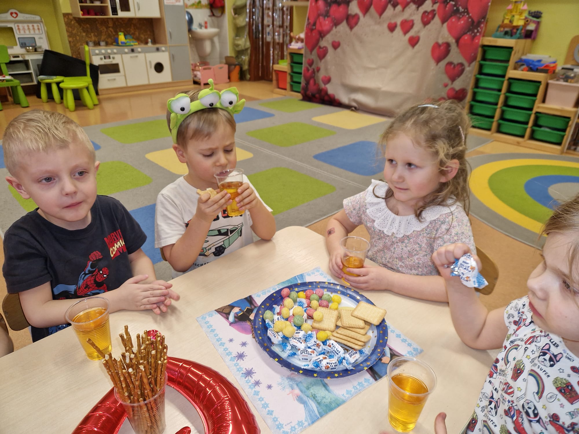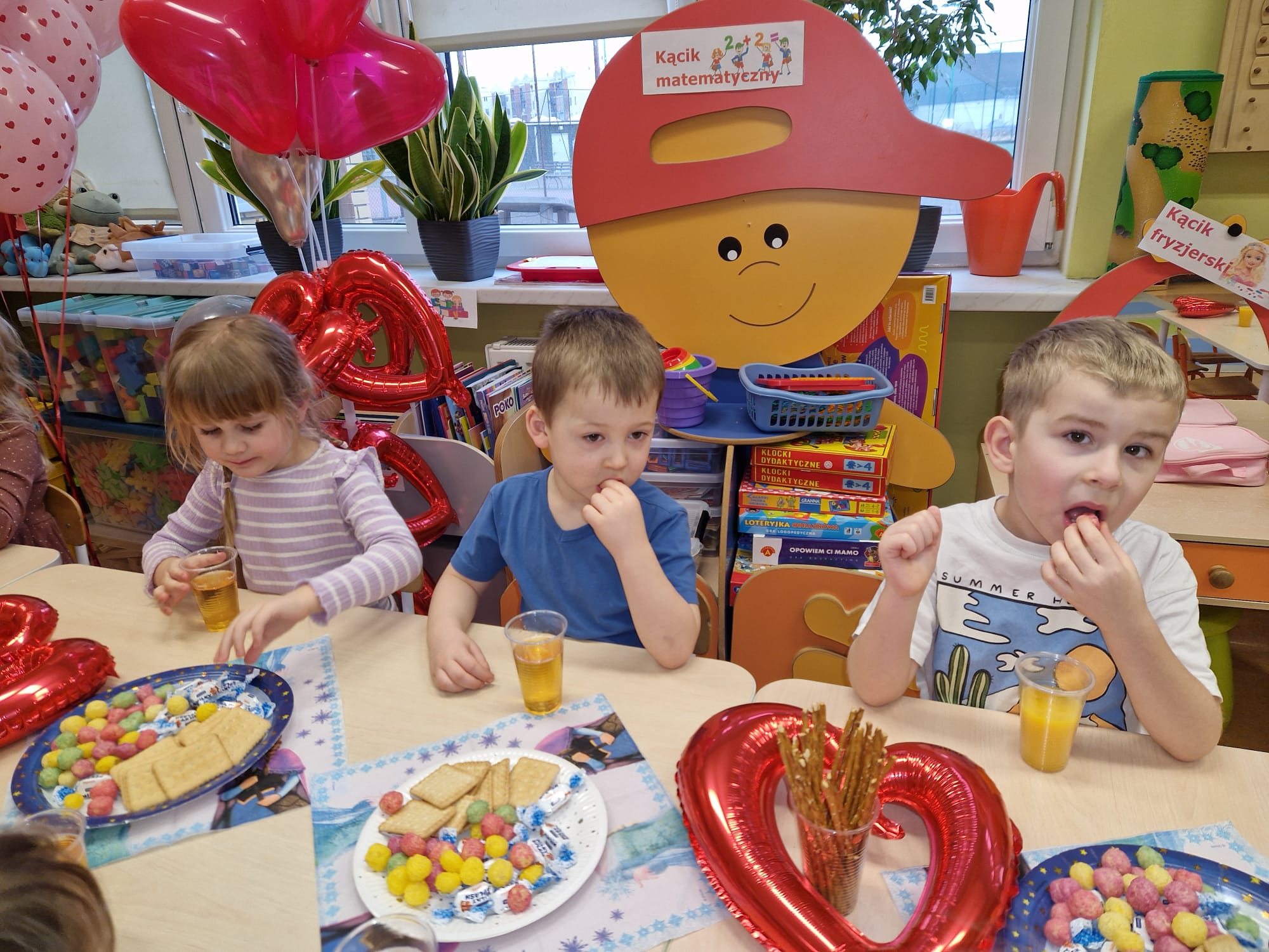 13 lutego średniaki z Grupy X uczestniczyły w wyjątkowym Balu Walentynkowo-Karnawałowym. Tego dnia sala przedszkolna zamieniła się w kolorową, bajkową przestrzeń pełną serduszek, balonów i błyszczących dekoracji, sprzyjającą radosnej zabawie oraz wspólnemu świętowaniu. Dzieci zaprezentowały się w pięknych i pomysłowych strojach. Wśród uczestników można było podziwiać księżniczki, superbohaterów, zwierzątka oraz wiele innych bajkowych postaci. Każde przebranie było wyjątkowe i wzbudzało duże zainteresowanie. Podczas balu nie zabrakło wspólnych tańców, zabaw ruchowych oraz konkursów. Ogromną radość sprawiły dzieciom zabawy z kolorowymi gadżetami karnawałowymi. Dodatkową atrakcją były bańki mydlane, które unosząc się w powietrzu, wywoływały wiele śmiechu i zachęcały do wspólnej zabawy. W rytmie wesołej muzyki dzieci bawiły się z ogromnym zaangażowaniem – radości i pozytywnej energii było co niemiara! Walentynkowy klimat sprzyjał okazywaniu sobie życzliwości, sympatii i przyjaźni. Serdecznie dziękujemy Rodzicom za zaangażowanie i pomoc w przygotowaniu dekoracji sali. Dzięki Państwa wsparciu, udało się stworzyć wyjątkową, karnawałową atmosferę. Dziękujemy również za przygotowanie pysznego poczęstunku, który był miłym uzupełnieniem wspólnej zabawy i dodał energii naszym małym uczestnikom. To był niezapomniany dzień pełen uśmiechu, tańca i wspaniałej zabawy, który na długo pozostanie w pamięci średniaków. Już nie możemy doczekać się kolejnego balu!