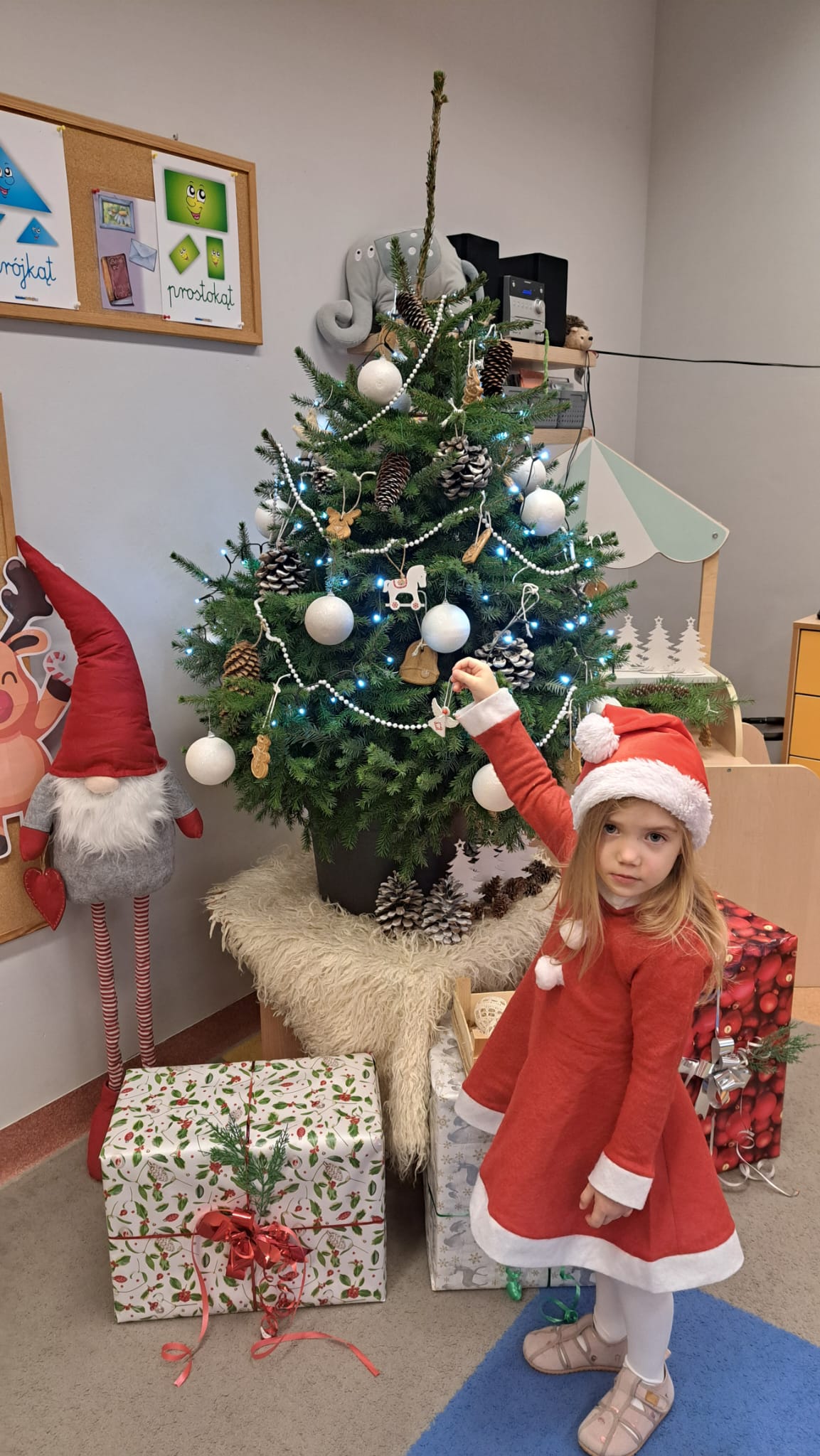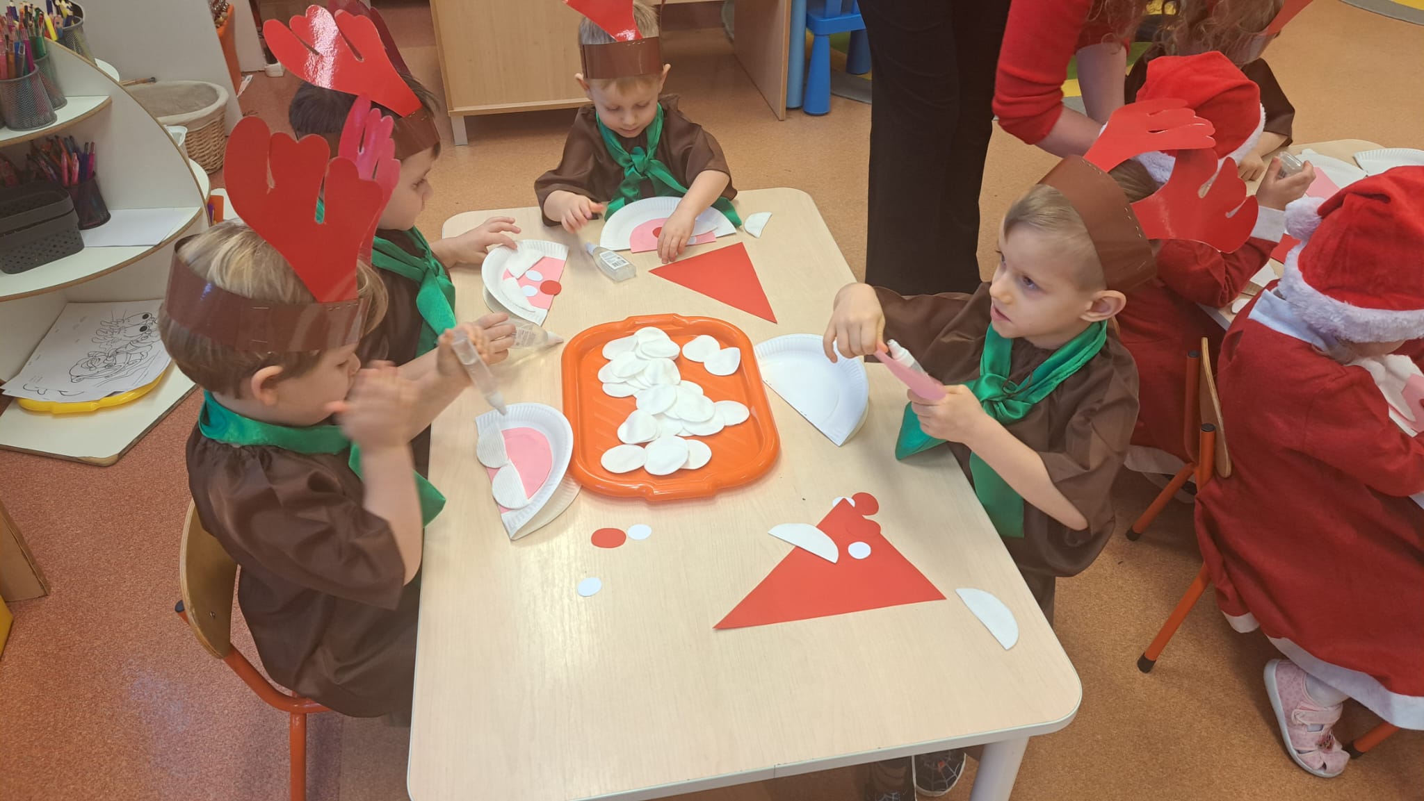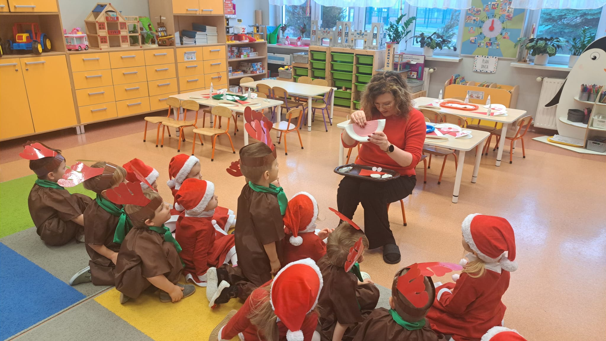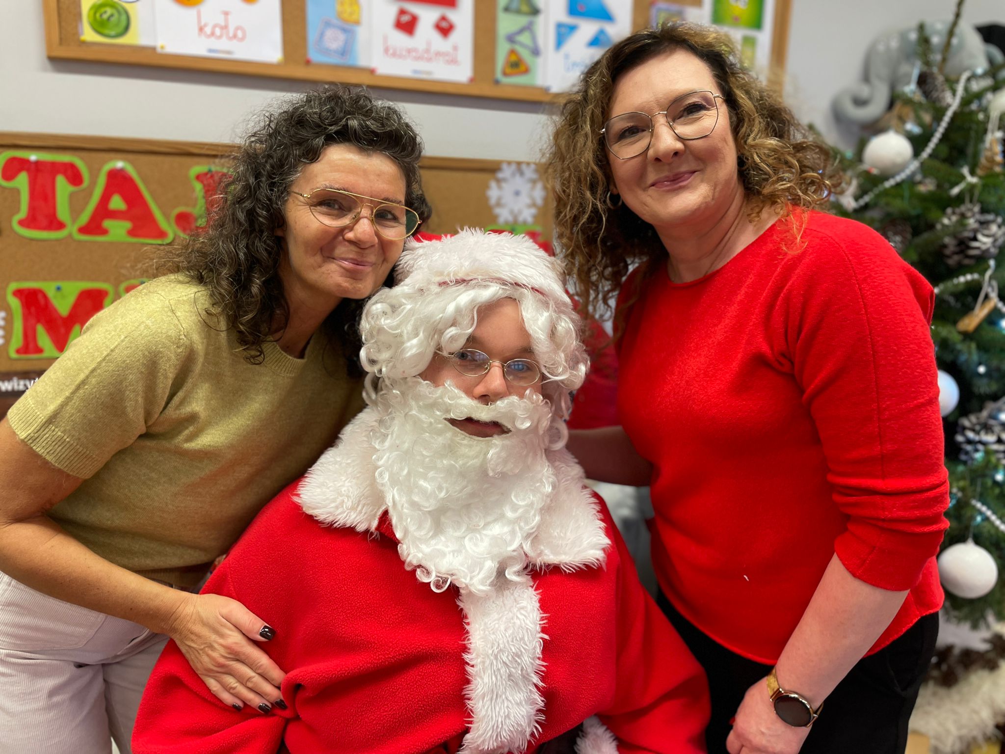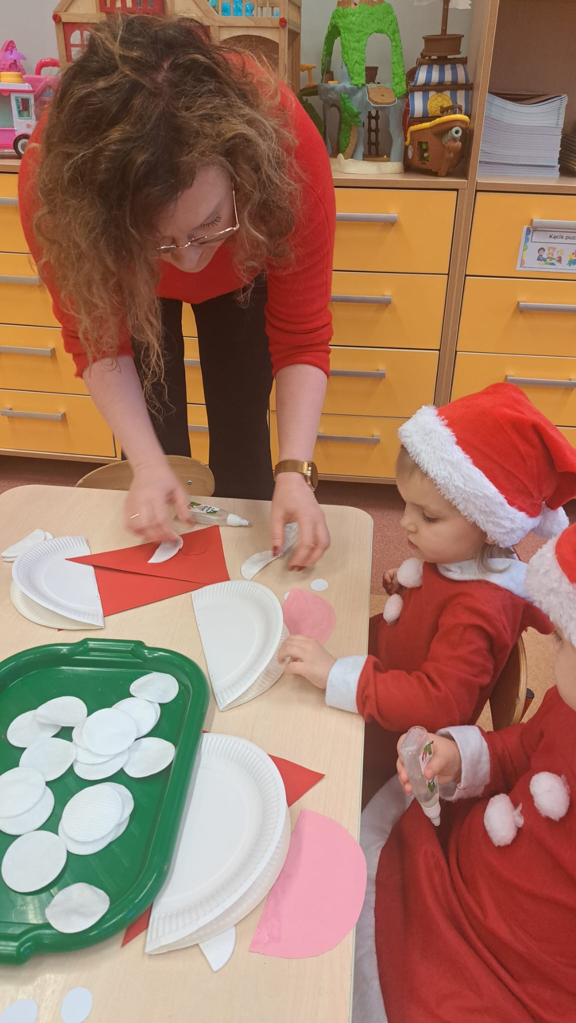 Dziś maluszki z niecierpliwością oczekiwały na wizytę Świętego Mikołaja w naszej przedszkolnej sali. Wszystkie dzieci już od samego rana spoglądały w okno, nasłuchiwały „Mikołajowych” dzwoneczków i radosną piosenką zapraszały Mikołaja. Wyczarowały także świąteczny klimat i wspólnie ubrały choinkę, przy której później wesoło się bawiły. Święty Mikołaj nie zawiódł i i nie kazał długo na siebie czekać… Wszedł ze swoim tubalnym „Ho, Ho, Ho „…I z pewnością też był bardzo zadowolony ze spotkania, bo uśmiech nie znikał z jego twarzy. Dzieci długo wspominały chwile spędzone z Mikołajem, z dużym entuzjazmem rozpakowywały prezenty oraz zerkały przez okno z nadzieją, że jeszcze raz zobaczą naszego gościa i pomachają mu na pożegnanie.