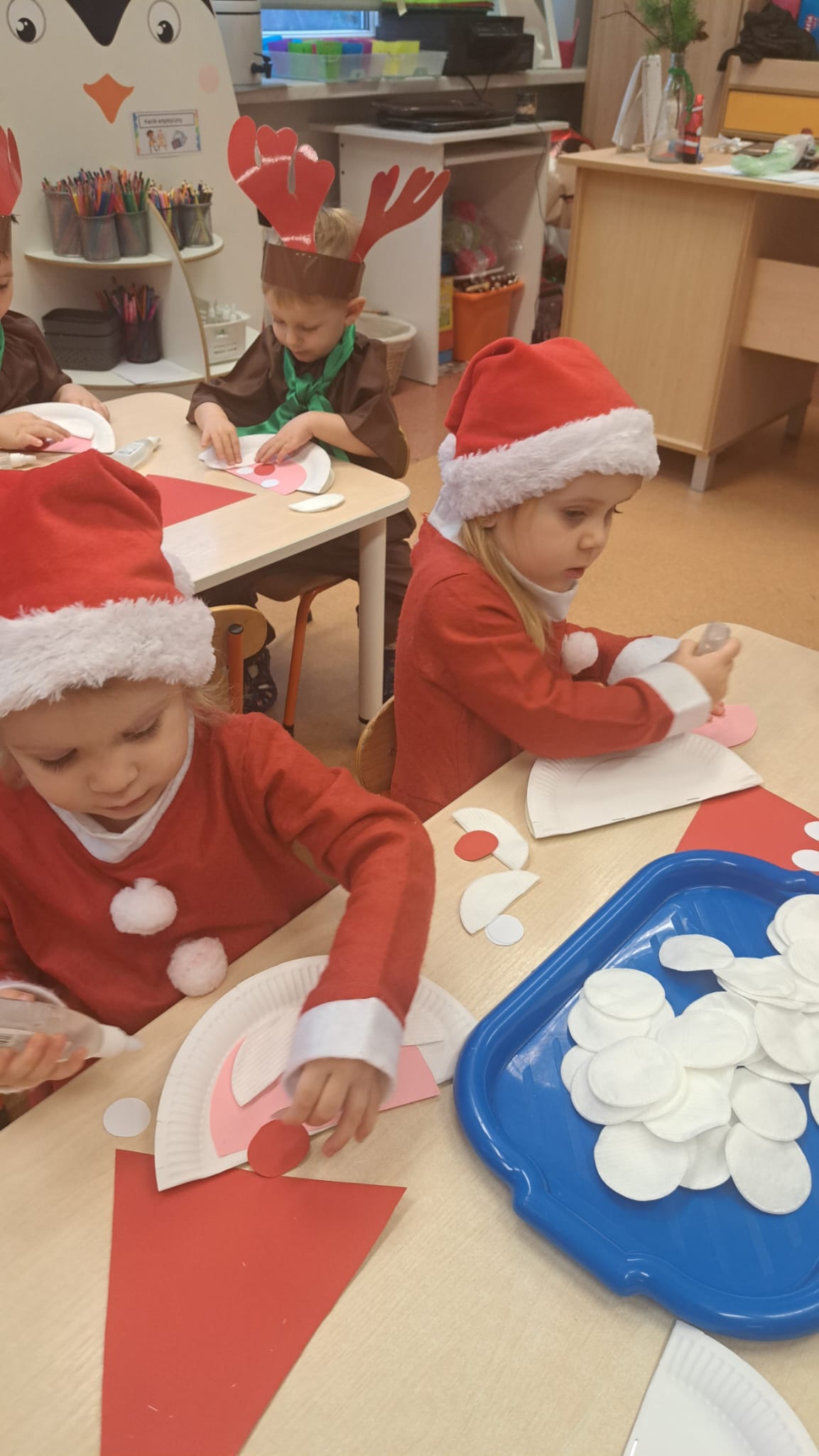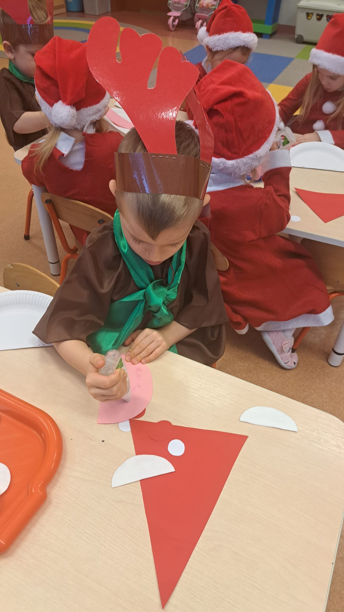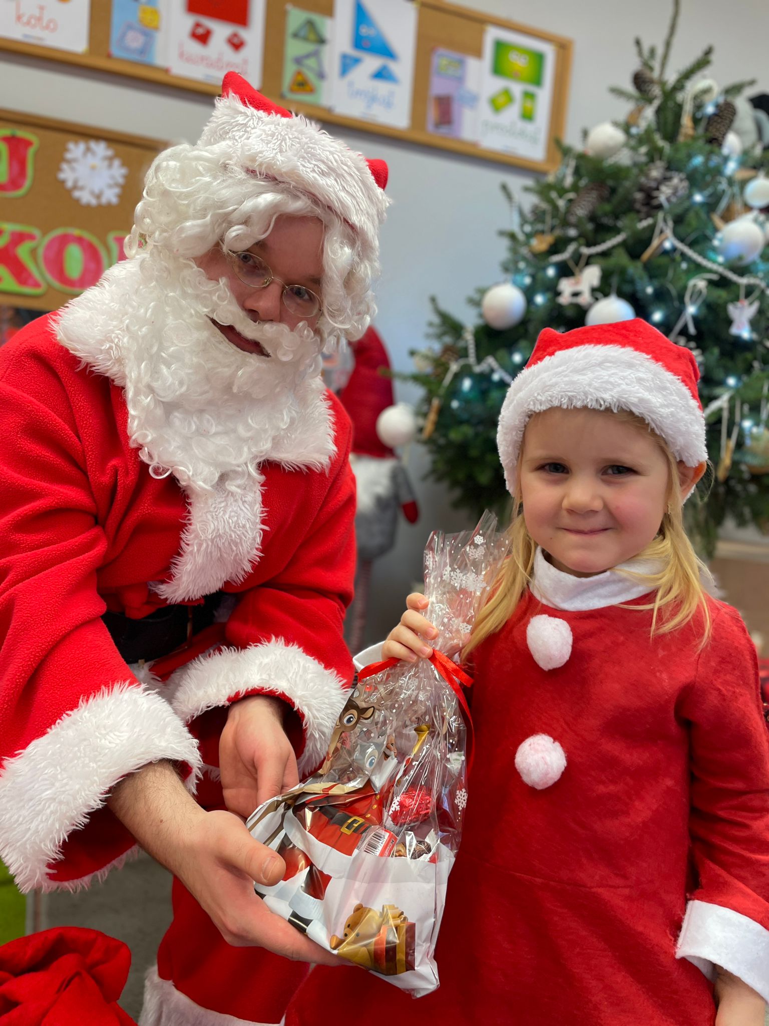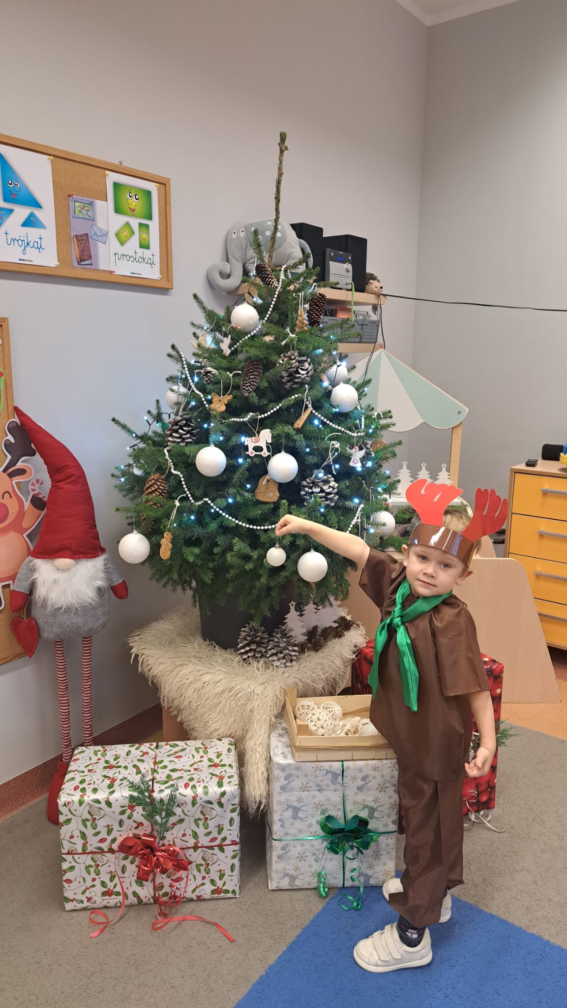 Dziś maluszki z niecierpliwością oczekiwały na wizytę Świętego Mikołaja w naszej przedszkolnej sali. Wszystkie dzieci już od samego rana spoglądały w okno, nasłuchiwały „Mikołajowych” dzwoneczków i radosną piosenką zapraszały Mikołaja. Wyczarowały także świąteczny klimat i wspólnie ubrały choinkę, przy której później wesoło się bawiły. Święty Mikołaj nie zawiódł i i nie kazał długo na siebie czekać… Wszedł ze swoim tubalnym „Ho, Ho, Ho „…I z pewnością też był bardzo zadowolony ze spotkania, bo uśmiech nie znikał z jego twarzy. Dzieci długo wspominały chwile spędzone z Mikołajem, z dużym entuzjazmem rozpakowywały prezenty oraz zerkały przez okno z nadzieją, że jeszcze raz zobaczą naszego gościa i pomachają mu na pożegnanie.