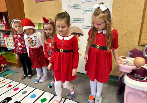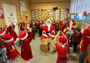 Dzień 6 grudnia jest znany dzieciom na całym świecie pod nazwą Mikołajek . Grupa II już od rana wyczekiwała specjalnego gościa, który odwiedza tylko grzeczne dzieci- Świętego Mikołaja. Gdy już pojawił się w sali przedszkolaki z gr II radośnie powitały Świętego piosenką. Nasz Gość był zachwycony tak uroczym widokiem sali pełnej małych czerwonych Mikołajków . Obdarował dzieci słodkimi upominkami oraz pięknymi kolorowymi dzwonkami naciskanymi. Na twarzach dzieci malowała się wielką radość i przejęcie a także nadzieję na kolejne spotkanie . Po wizycie Mikołaja dzieci przystąpiły do licznych Mikołajkowych zabaw w sali, a na zakończenie tak mile zaczętego dnia dzieci miały słodki poczęstunek w swojej sali przy pachnącej lasem choince.