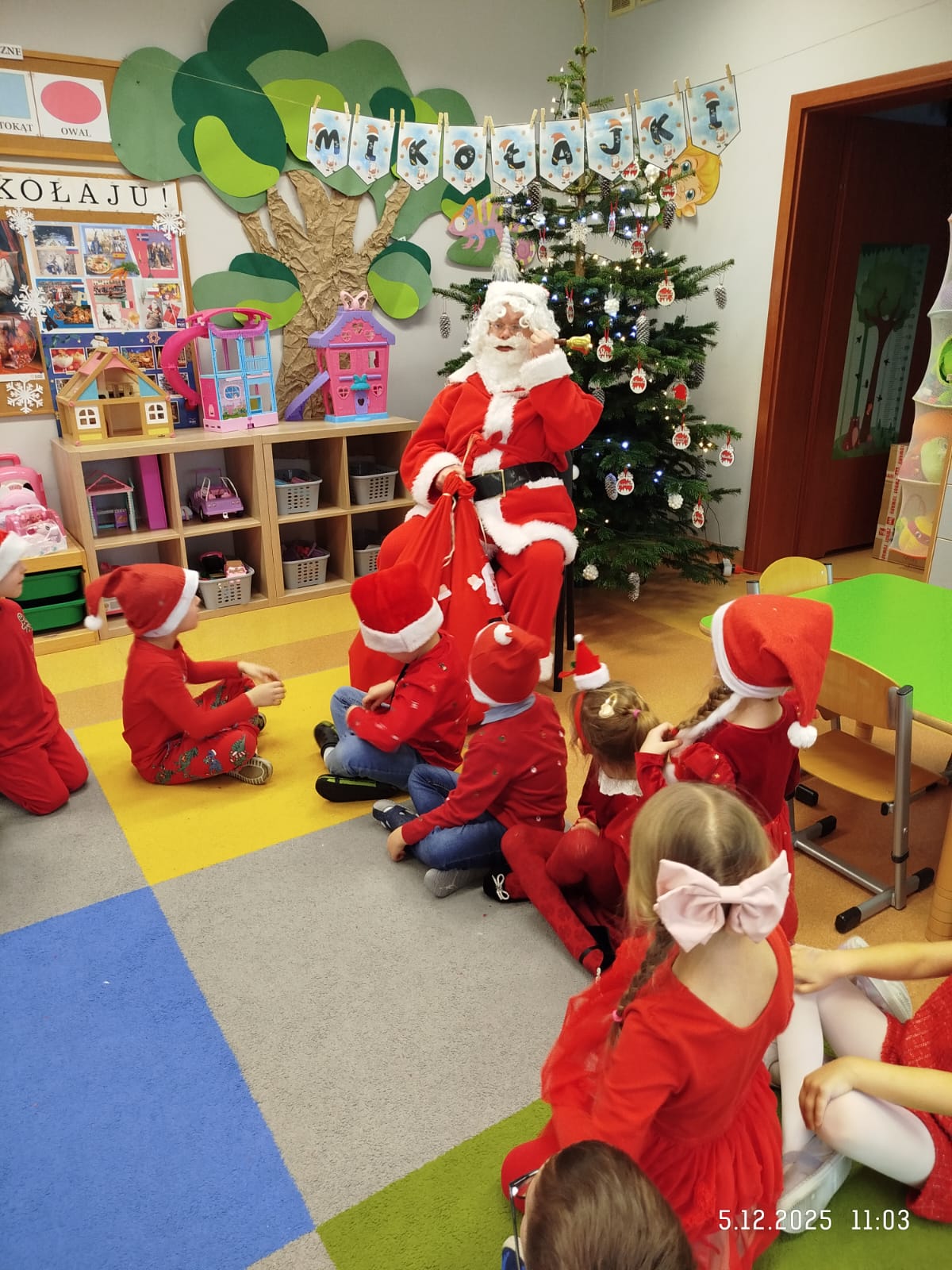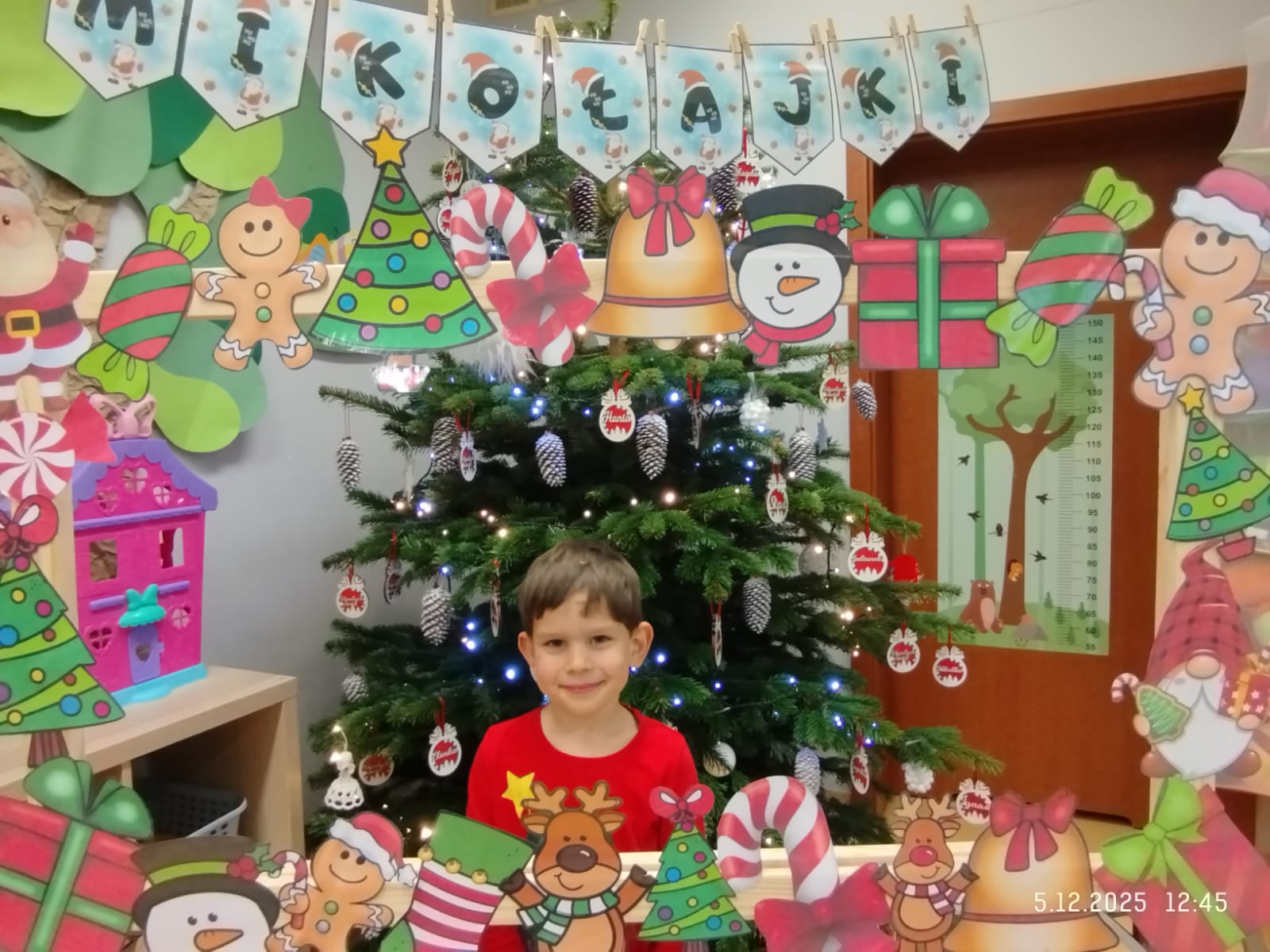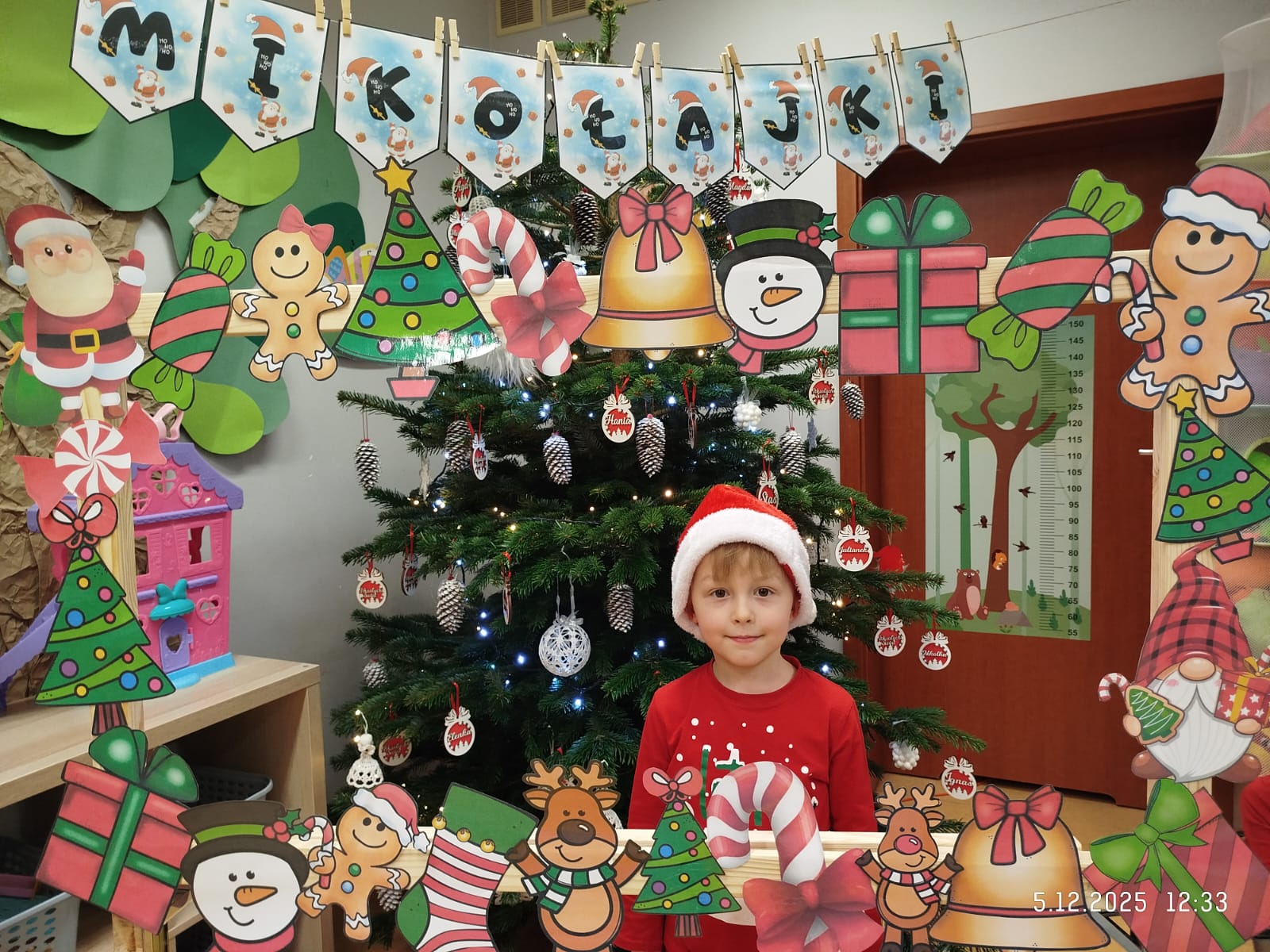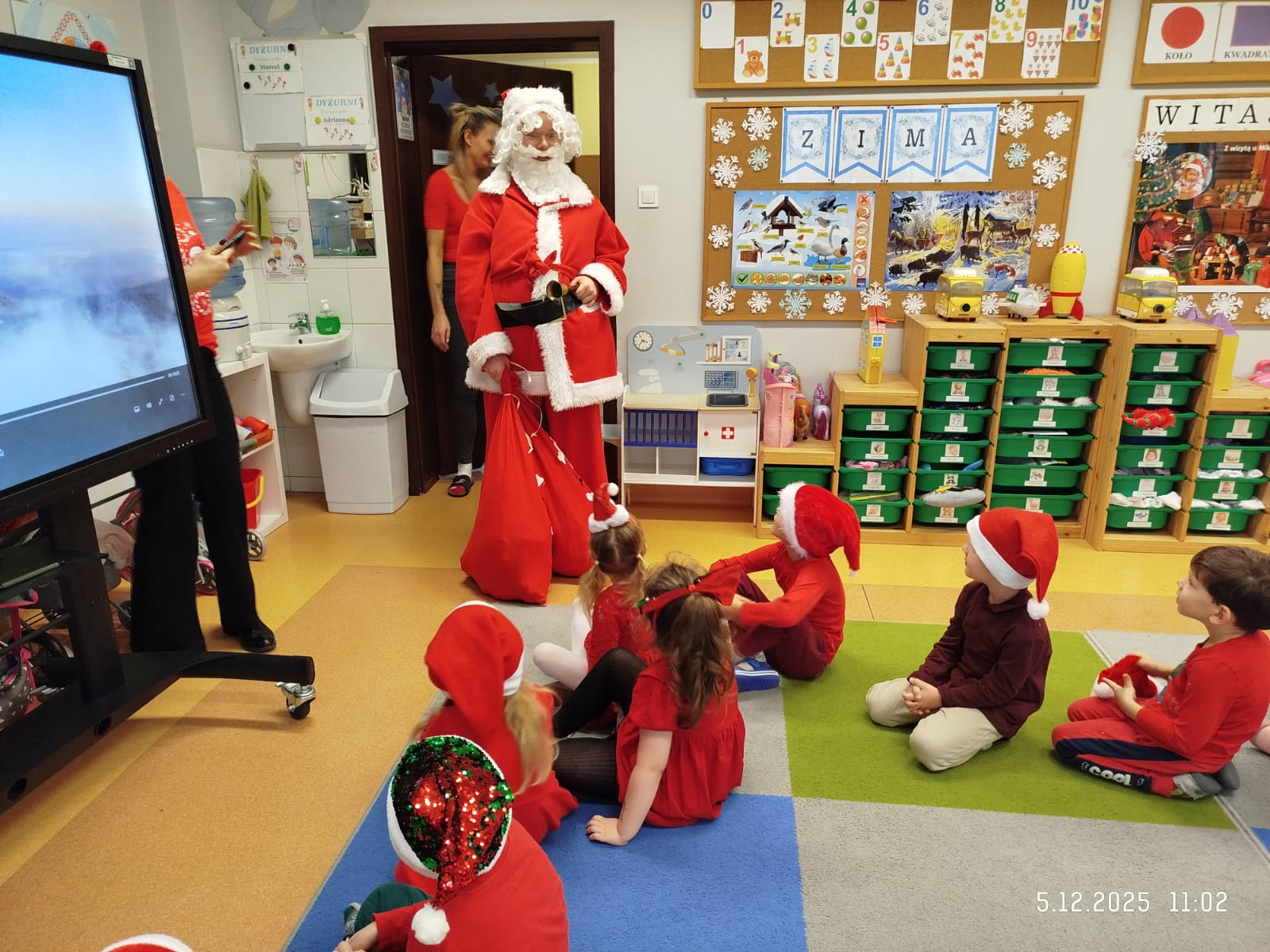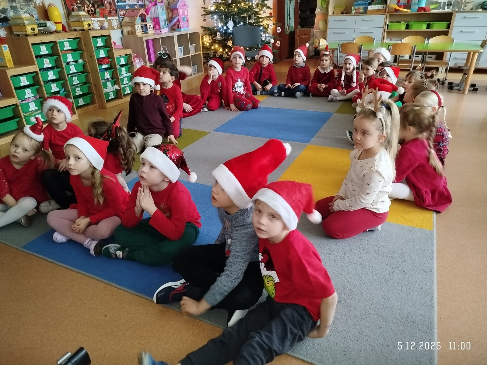 Dnia 5 grudnia nasza sala zamieniła się w czerwoną, prawdziwą krainę świątecznych przygód. Cały dzień wypełniły wesołe aktywności, które przeniosły dzieci w magiczny świat Bożego Narodzenia. Były wesołe zabawy ruchowe podczas których przedszkolaki tańczyły w rytm świątecznych melodii, a ich radość i energia wypełniły cały dzień. Była również mikołajowa praca plastyczna, słodki poczęstunek oraz świąteczna fotobudka, która sprawiła dzieciom mnóstwo radości. Kulminacyjnym punktem programu było oczywiście spotkanie ze Świętym Mikołajem, który wręczył każdemu dziecku wyjątkowy prezent. Jego przyjście poprzedził film, który wprowadził dzieci w magiczny zaczarowany nastrój. Dziękujemy wszystkim, którzy pomogli w przygotowaniu tego wyjątkowego dnia! Dzień ten bowiem na długo pozostanie w naszej pamięci jako czas pełen ciepła, radości i wspólnego świętowania.
