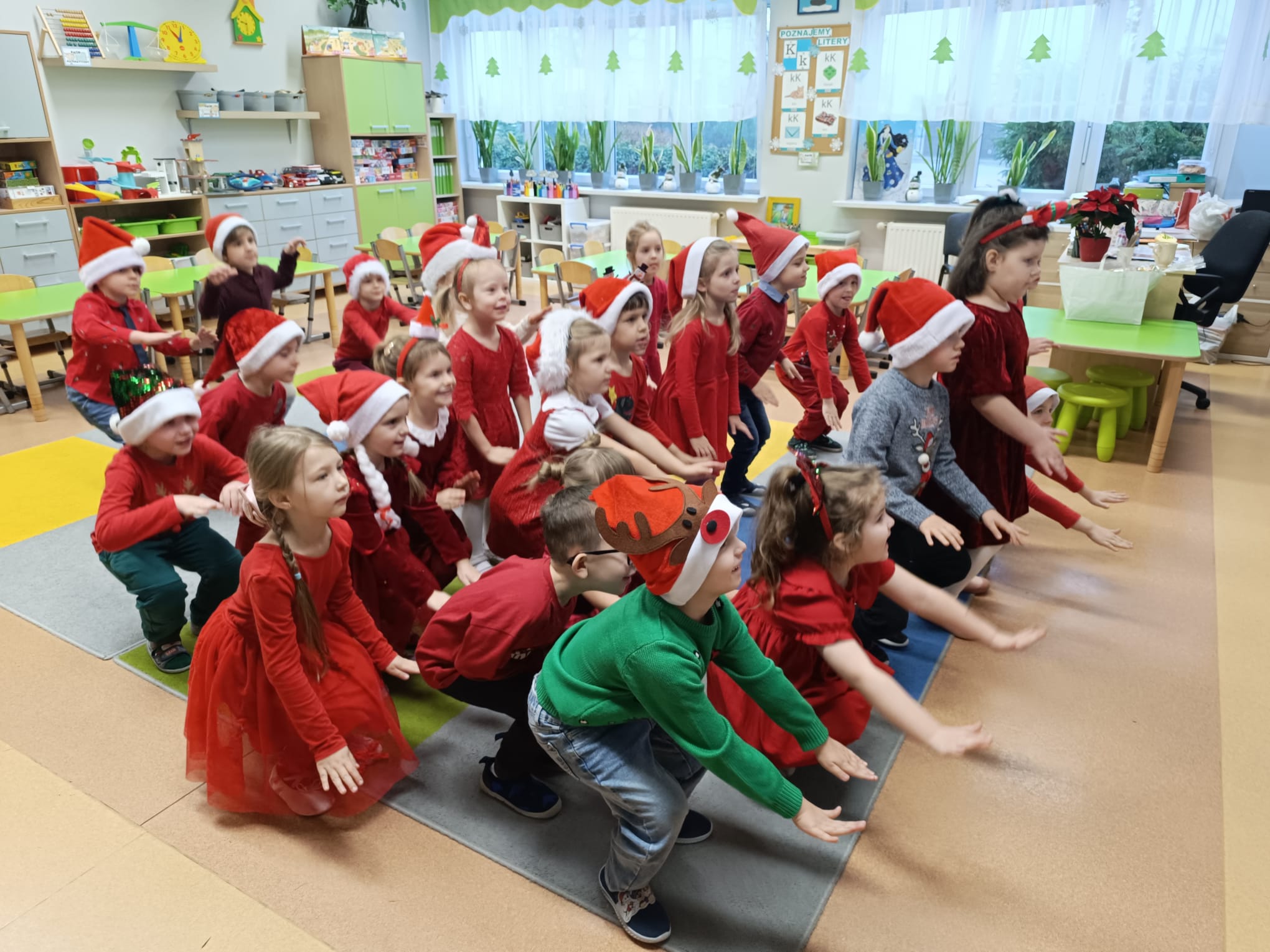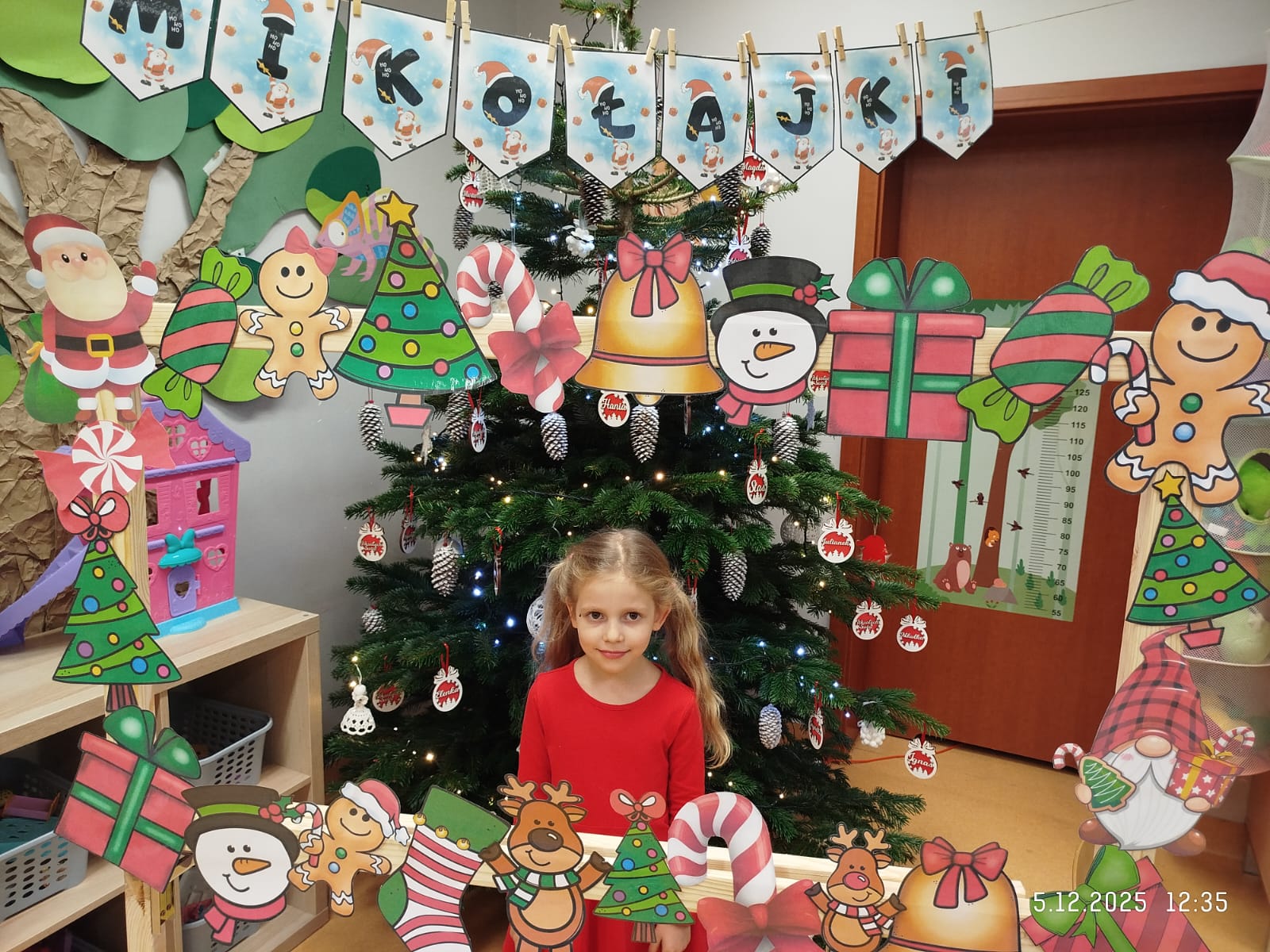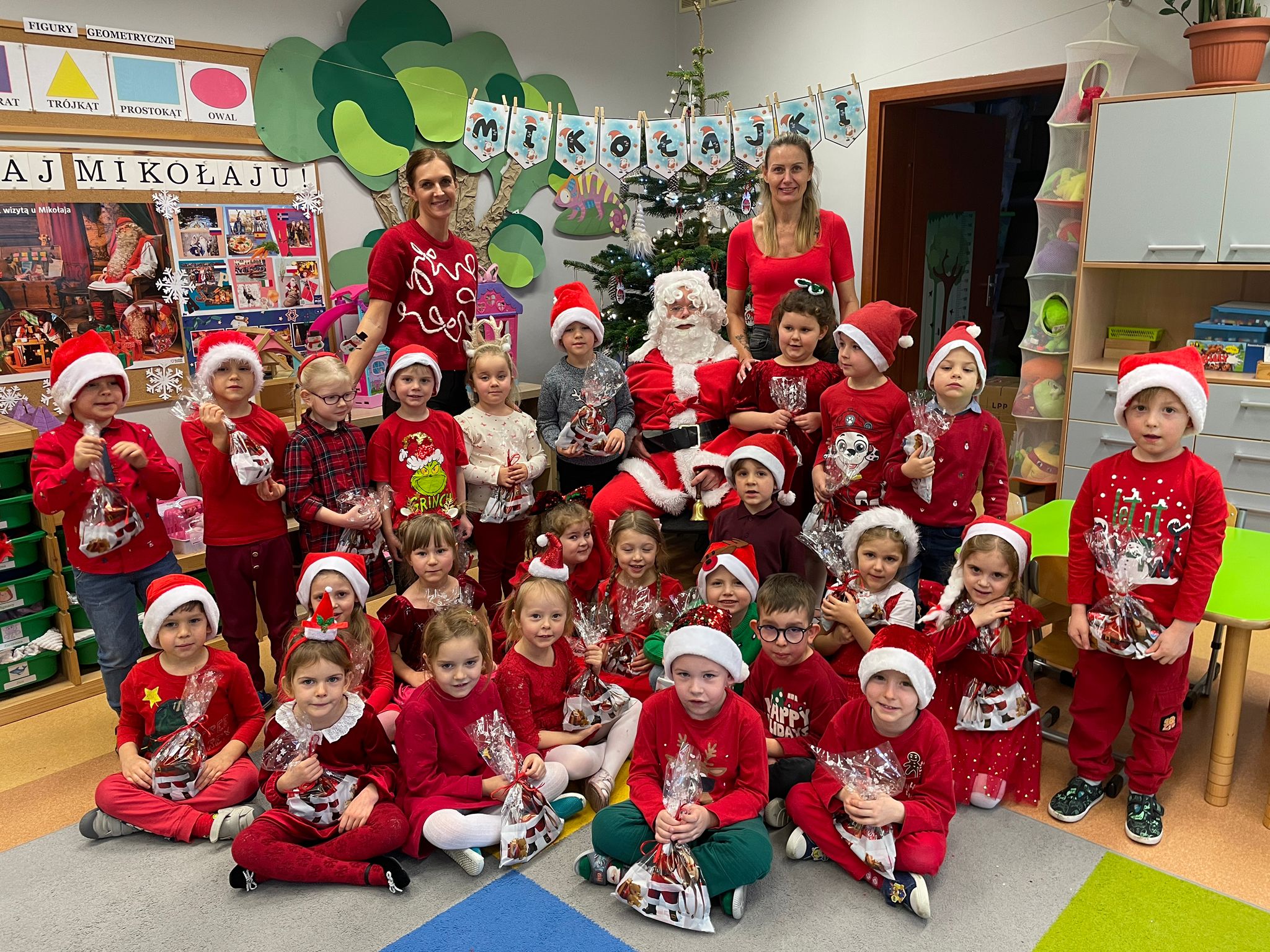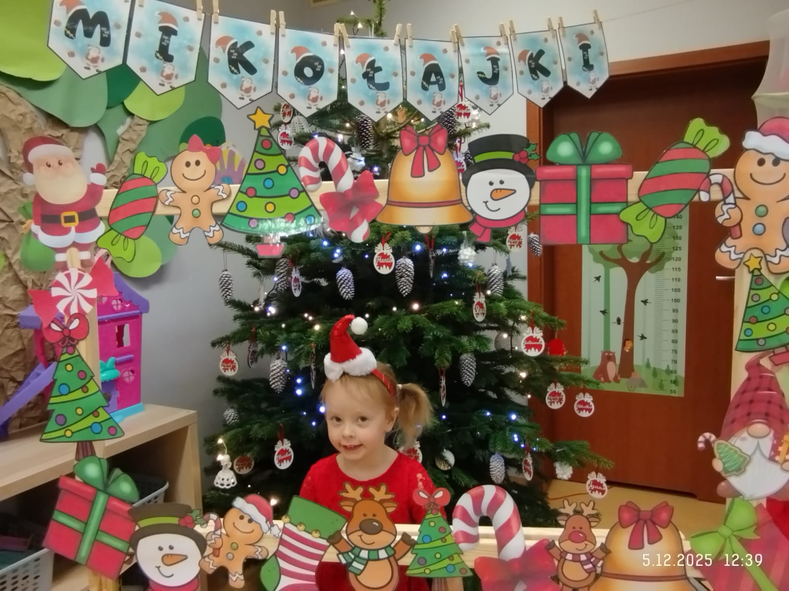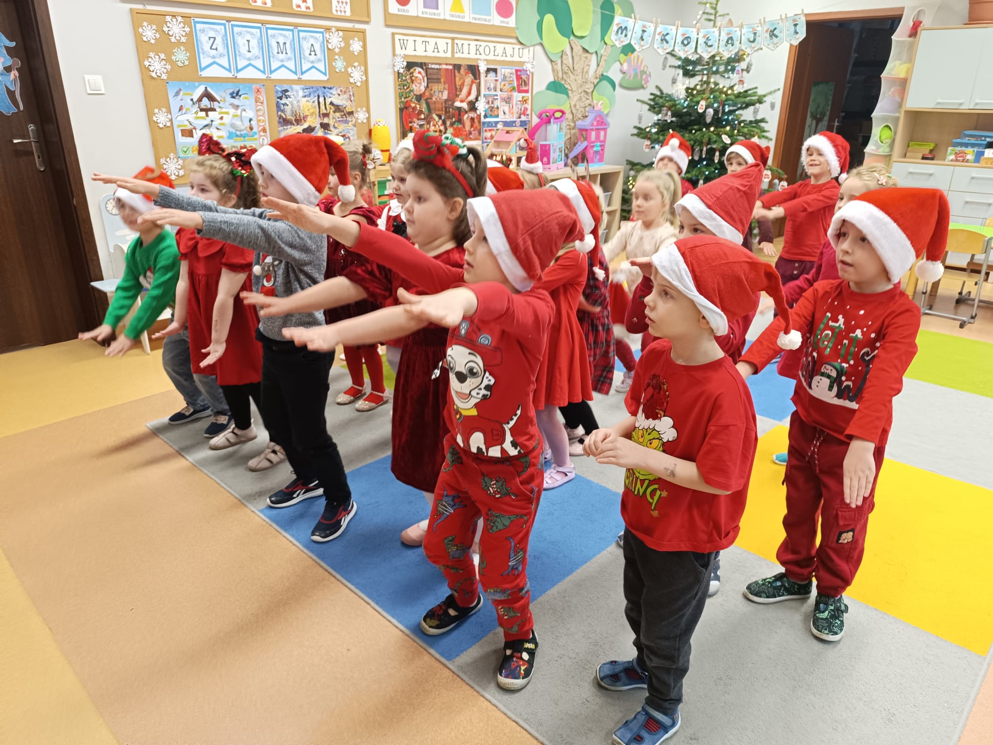 Dnia 5 grudnia nasza sala zamieniła się w czerwoną, prawdziwą krainę świątecznych przygód. Cały dzień wypełniły wesołe aktywności, które przeniosły dzieci w magiczny świat Bożego Narodzenia. Były wesołe zabawy ruchowe podczas których przedszkolaki tańczyły w rytm świątecznych melodii, a ich radość i energia wypełniły cały dzień. Była również mikołajowa praca plastyczna, słodki poczęstunek oraz świąteczna fotobudka, która sprawiła dzieciom mnóstwo radości. Kulminacyjnym punktem programu było oczywiście spotkanie ze Świętym Mikołajem, który wręczył każdemu dziecku wyjątkowy prezent. Jego przyjście poprzedził film, który wprowadził dzieci w magiczny zaczarowany nastrój. Dziękujemy wszystkim, którzy pomogli w przygotowaniu tego wyjątkowego dnia! Dzień ten bowiem na długo pozostanie w naszej pamięci jako czas pełen ciepła, radości i wspólnego świętowania.