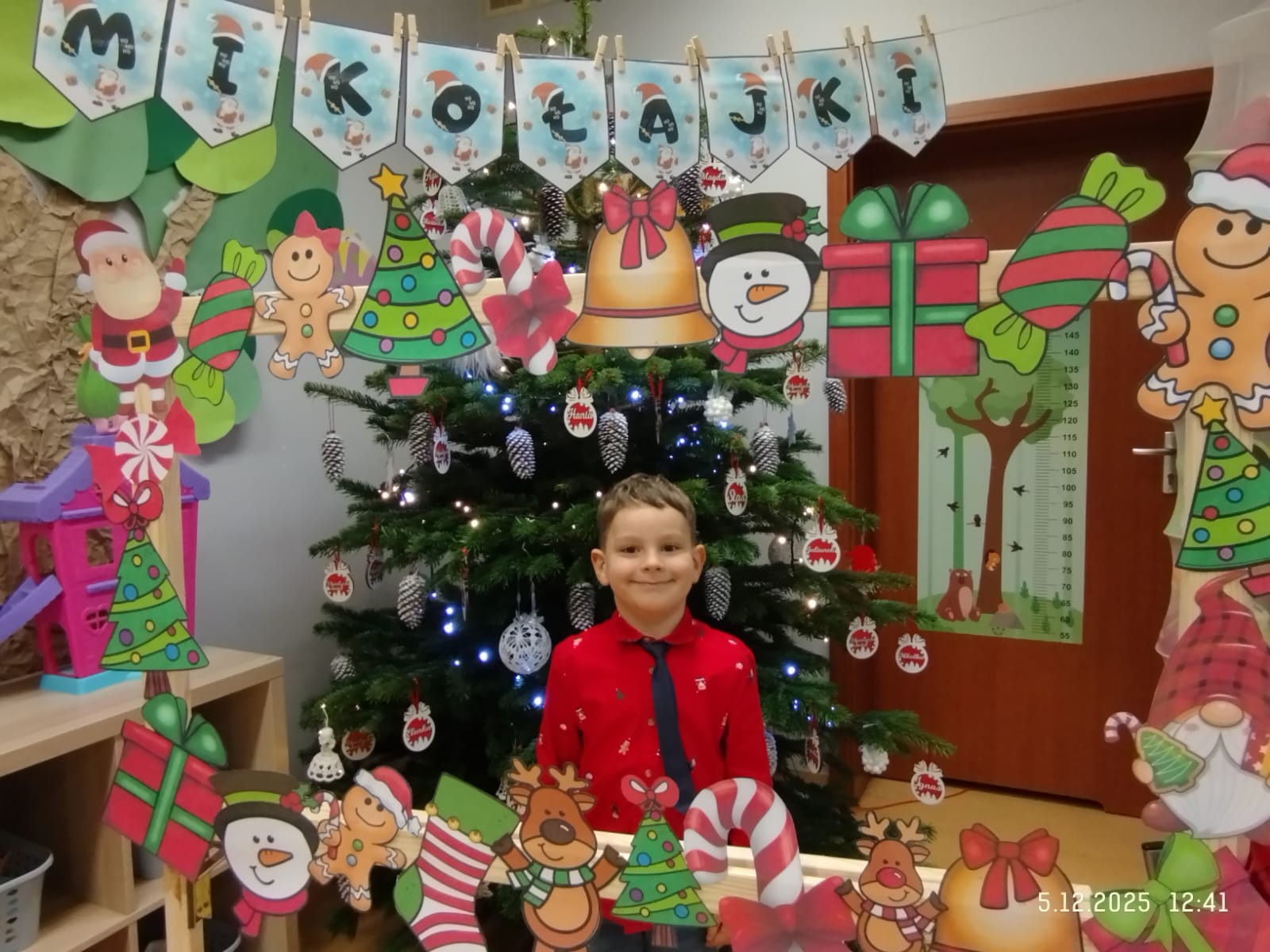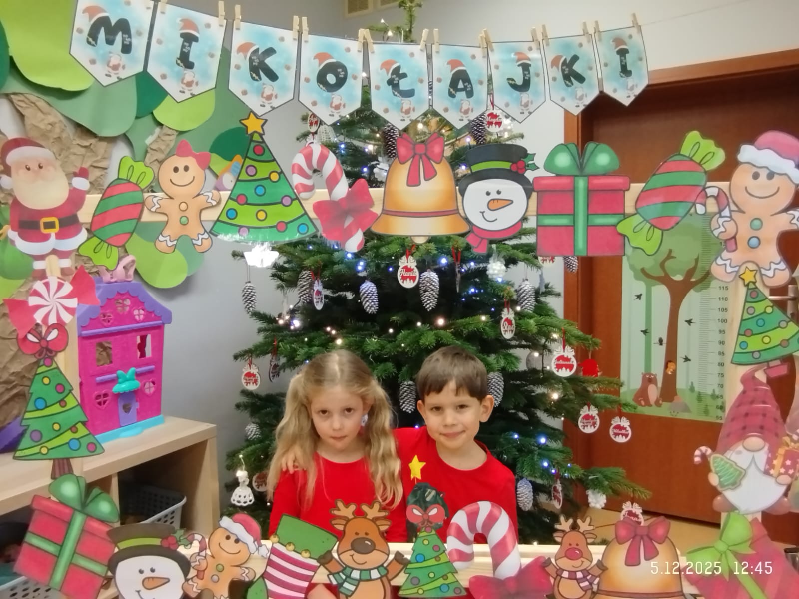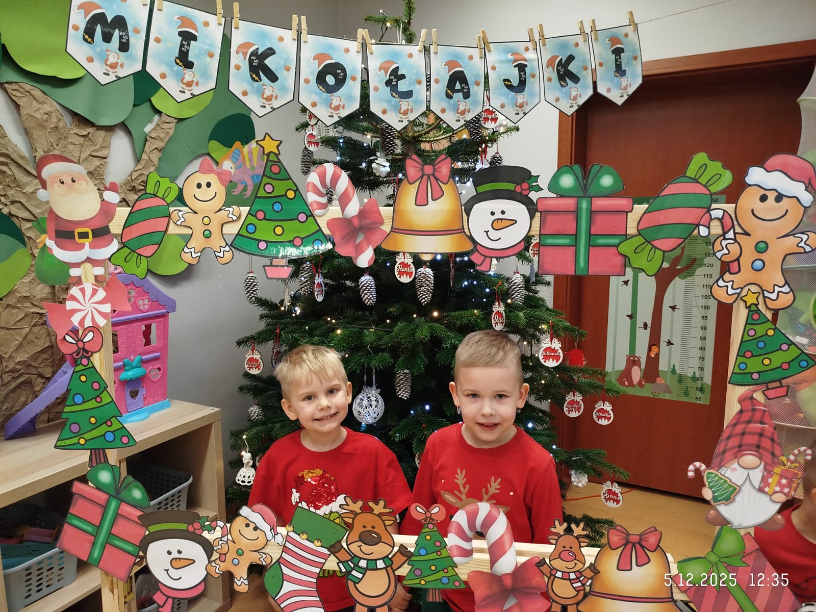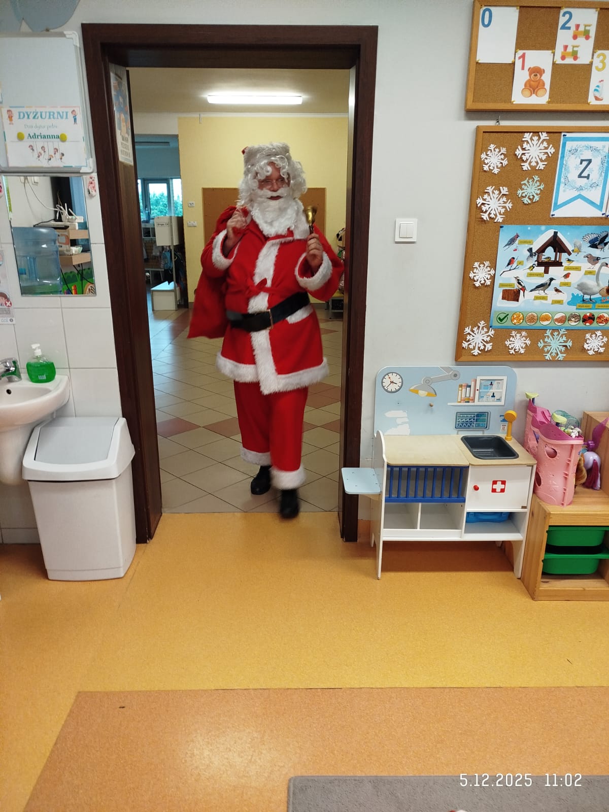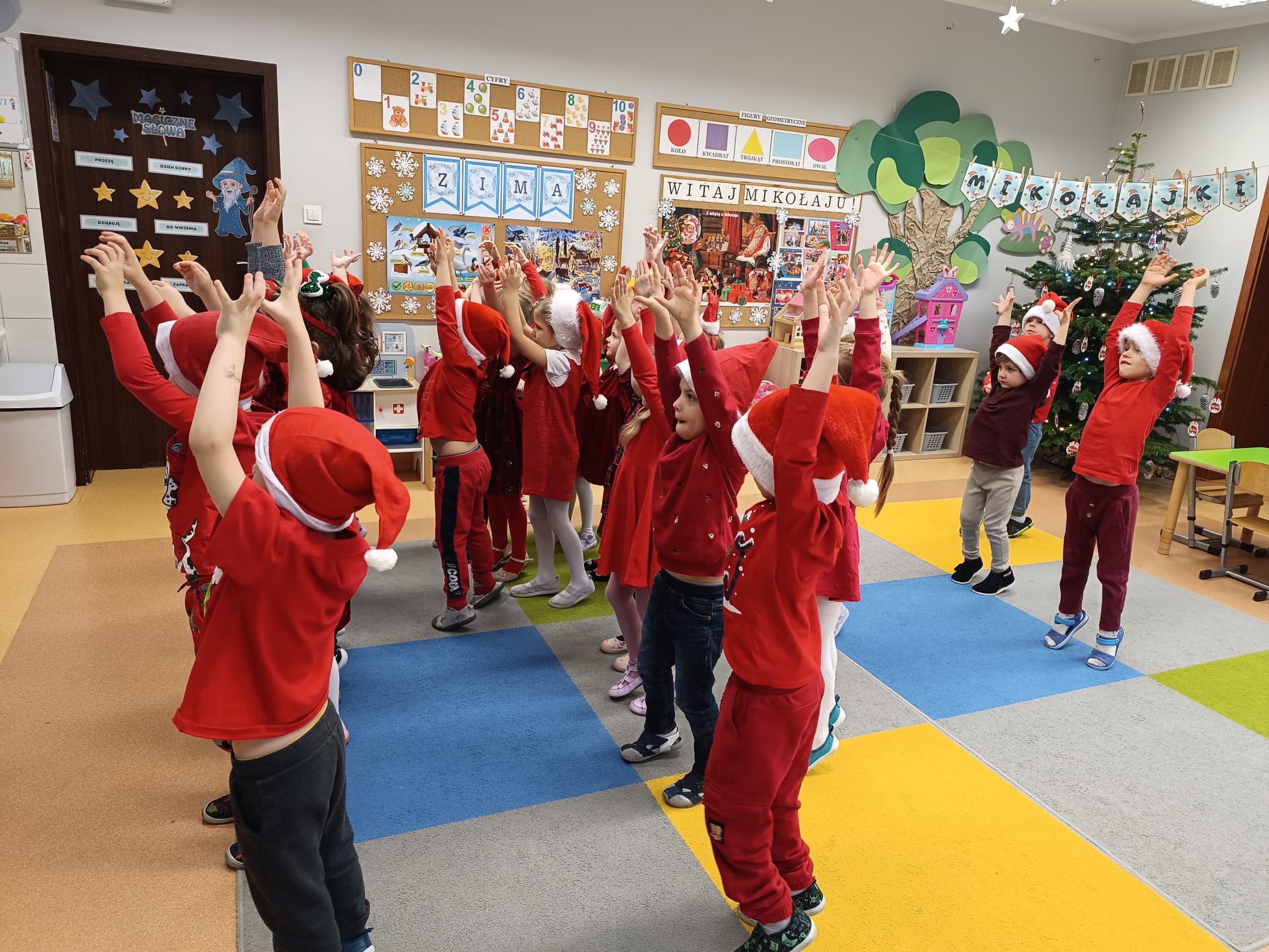 Dnia 5 grudnia nasza sala zamieniła się w czerwoną, prawdziwą krainę świątecznych przygód. Cały dzień wypełniły wesołe aktywności, które przeniosły dzieci w magiczny świat Bożego Narodzenia. Były wesołe zabawy ruchowe podczas których przedszkolaki tańczyły w rytm świątecznych melodii, a ich radość i energia wypełniły cały dzień. Była również mikołajowa praca plastyczna, słodki poczęstunek oraz świąteczna fotobudka, która sprawiła dzieciom mnóstwo radości. Kulminacyjnym punktem programu było oczywiście spotkanie ze Świętym Mikołajem, który wręczył każdemu dziecku wyjątkowy prezent. Jego przyjście poprzedził film, który wprowadził dzieci w magiczny zaczarowany nastrój. Dziękujemy wszystkim, którzy pomogli w przygotowaniu tego wyjątkowego dnia! Dzień ten bowiem na długo pozostanie w naszej pamięci jako czas pełen ciepła, radości i wspólnego świętowania.