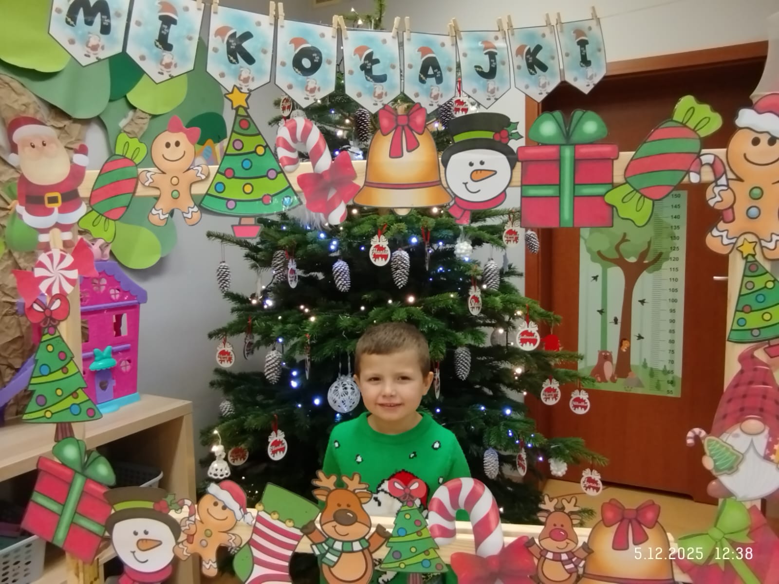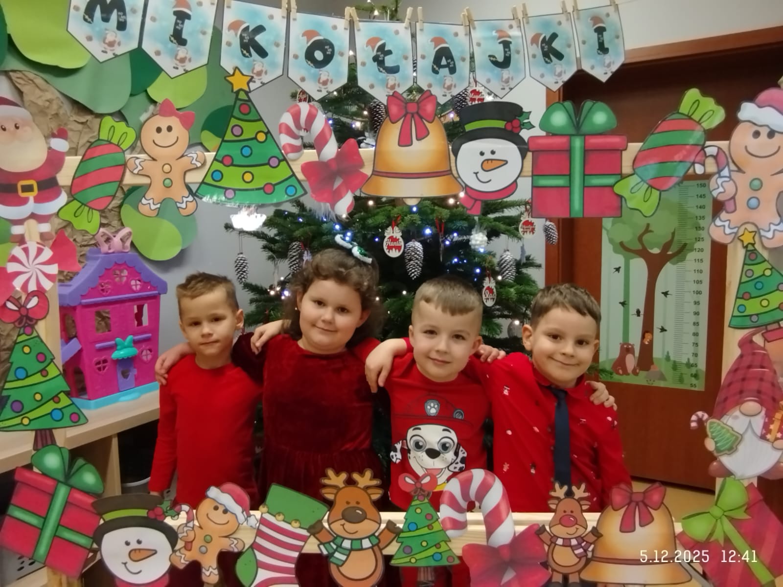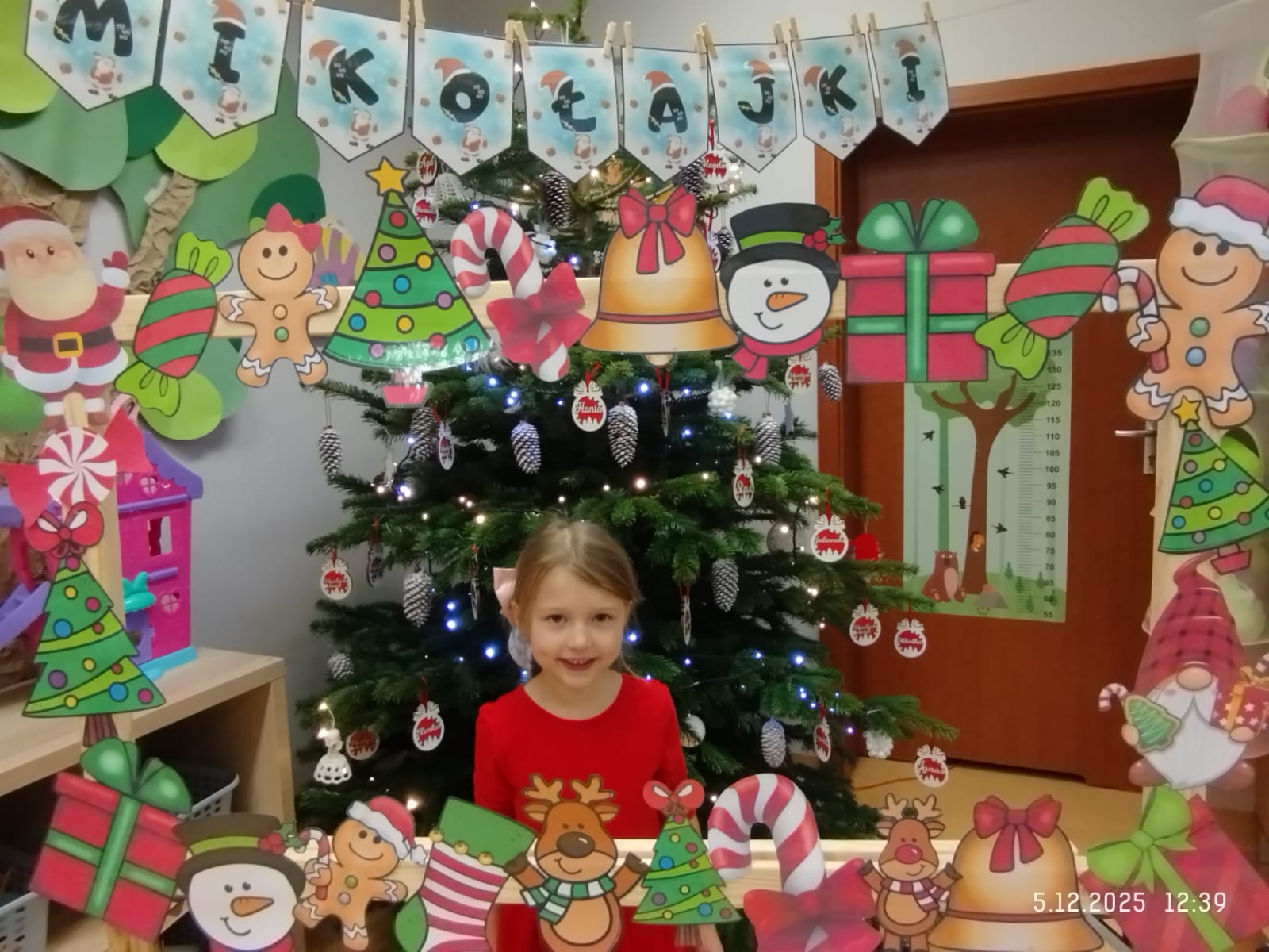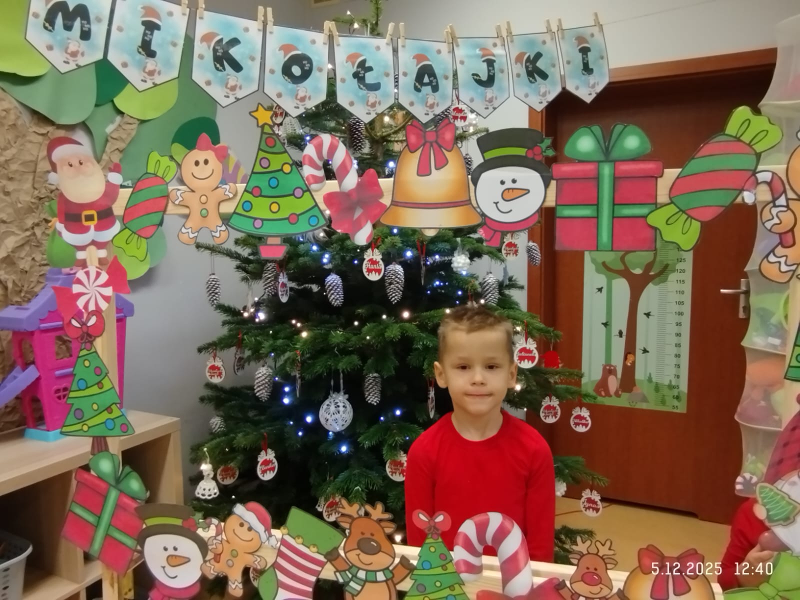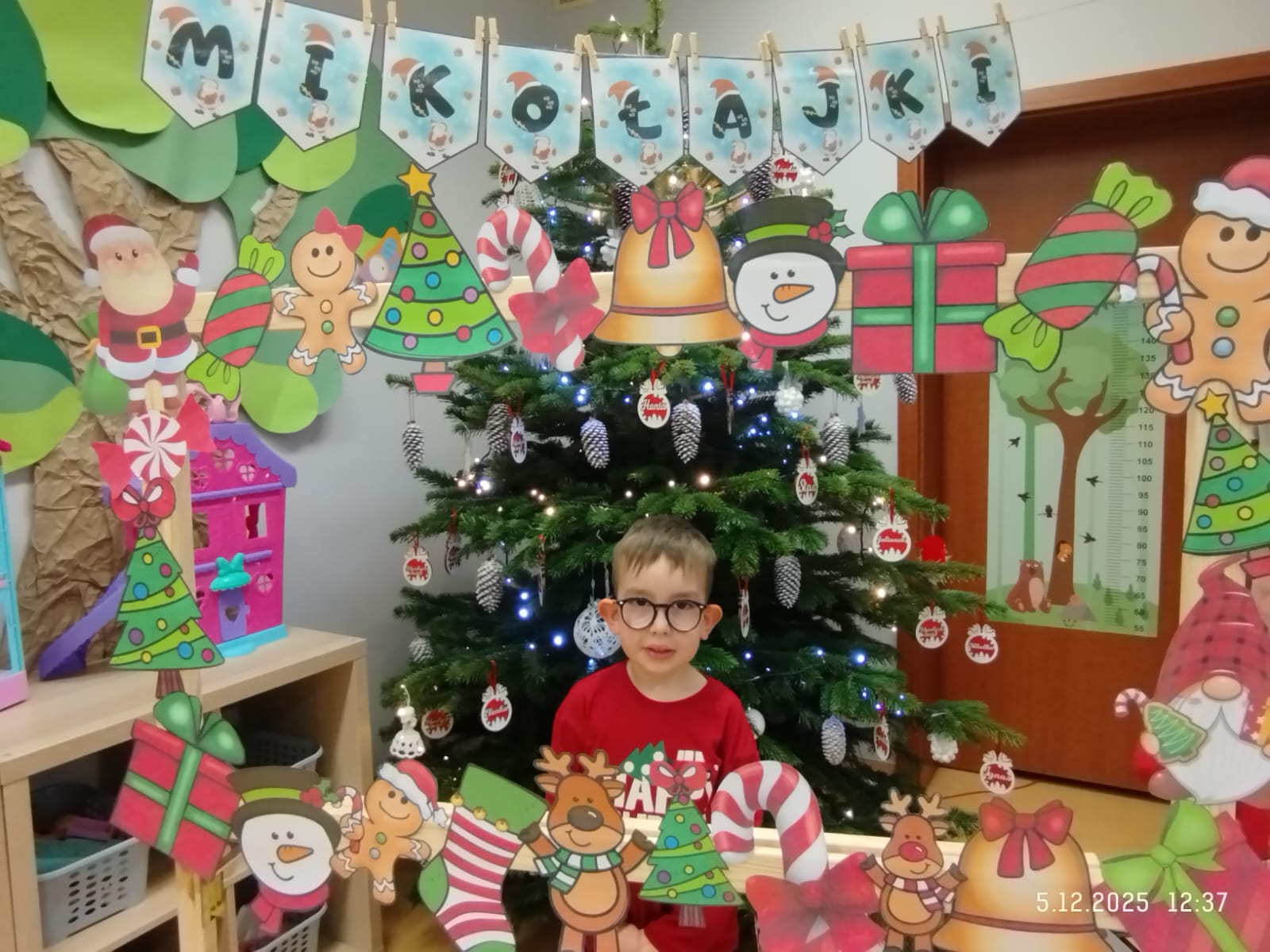 Dnia 5 grudnia nasza sala zamieniła się w czerwoną, prawdziwą krainę świątecznych przygód. Cały dzień wypełniły wesołe aktywności, które przeniosły dzieci w magiczny świat Bożego Narodzenia. Były wesołe zabawy ruchowe podczas których przedszkolaki tańczyły w rytm świątecznych melodii, a ich radość i energia wypełniły cały dzień. Była również mikołajowa praca plastyczna, słodki poczęstunek oraz świąteczna fotobudka, która sprawiła dzieciom mnóstwo radości. Kulminacyjnym punktem programu było oczywiście spotkanie ze Świętym Mikołajem, który wręczył każdemu dziecku wyjątkowy prezent. Jego przyjście poprzedził film, który wprowadził dzieci w magiczny zaczarowany nastrój. Dziękujemy wszystkim, którzy pomogli w przygotowaniu tego wyjątkowego dnia! Dzień ten bowiem na długo pozostanie w naszej pamięci jako czas pełen ciepła, radości i wspólnego świętowania.