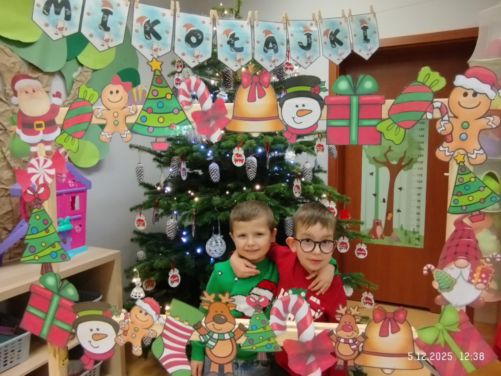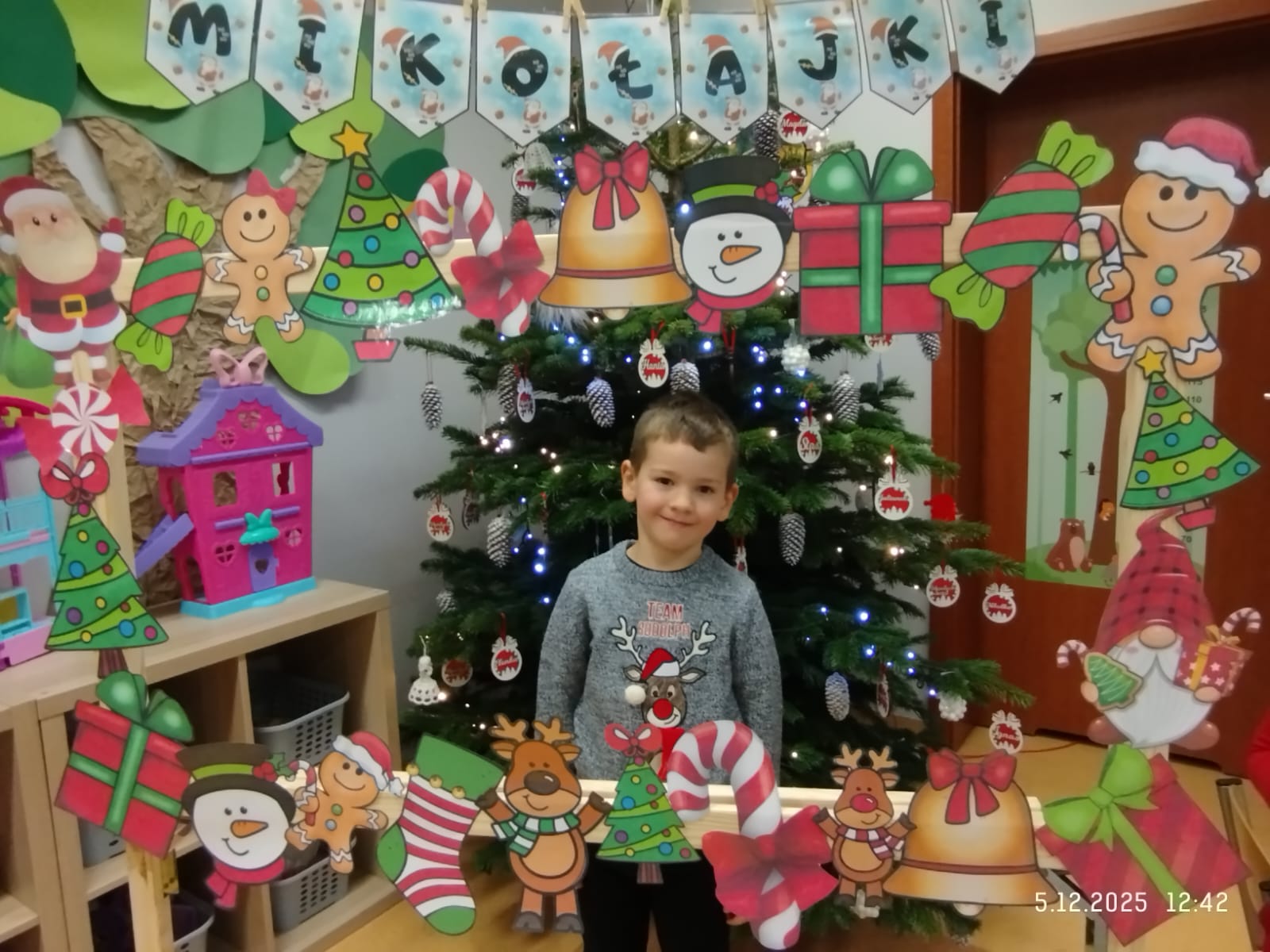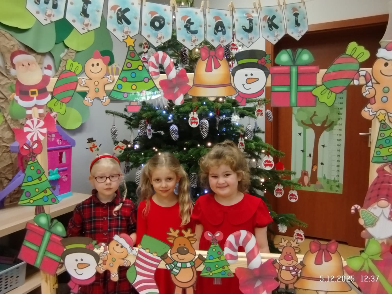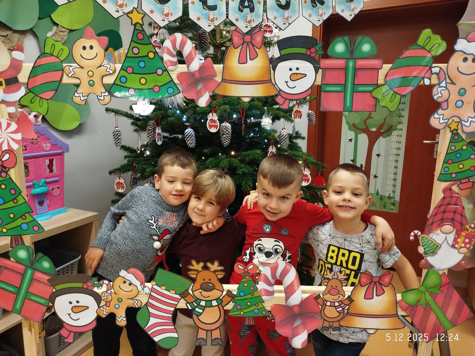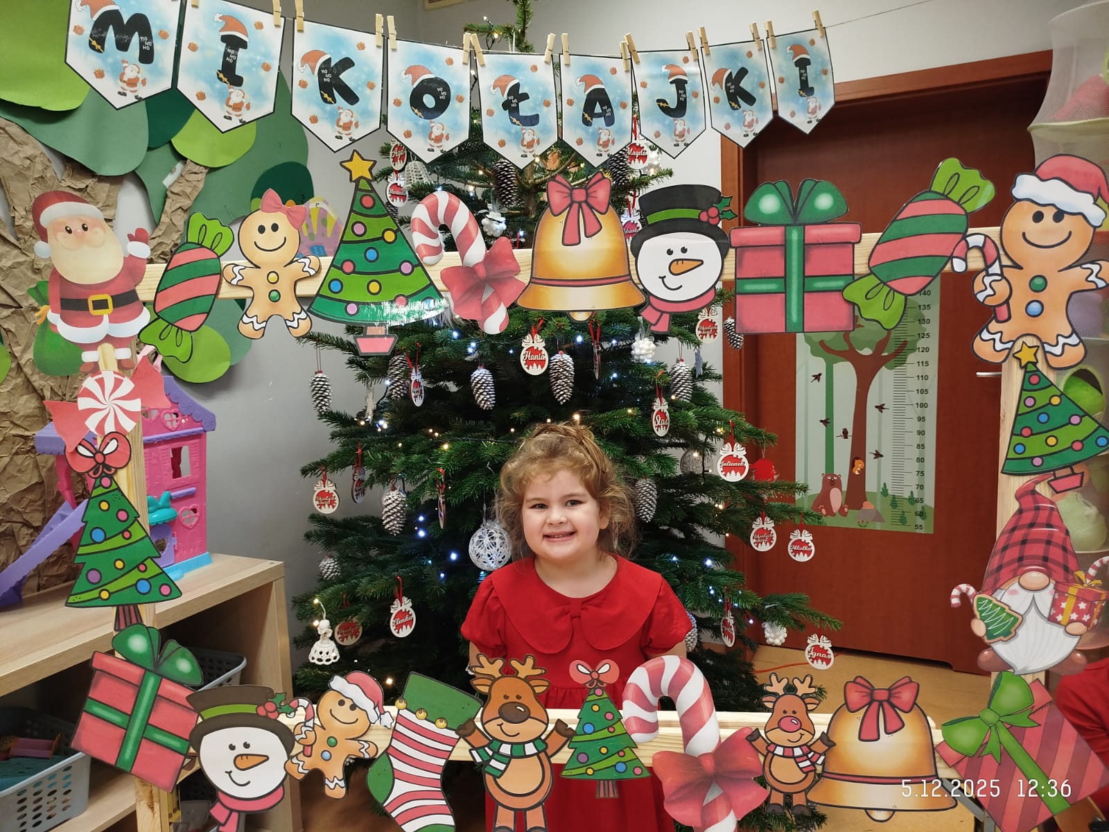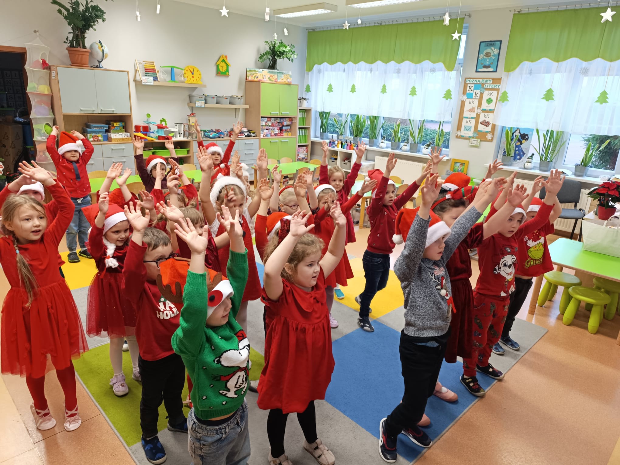 Dnia 5 grudnia nasza sala zamieniła się w czerwoną, prawdziwą krainę świątecznych przygód. Cały dzień wypełniły wesołe aktywności, które przeniosły dzieci w magiczny świat Bożego Narodzenia. Były wesołe zabawy ruchowe podczas których przedszkolaki tańczyły w rytm świątecznych melodii, a ich radość i energia wypełniły cały dzień. Była również mikołajowa praca plastyczna, słodki poczęstunek oraz świąteczna fotobudka, która sprawiła dzieciom mnóstwo radości. Kulminacyjnym punktem programu było oczywiście spotkanie ze Świętym Mikołajem, który wręczył każdemu dziecku wyjątkowy prezent. Jego przyjście poprzedził film, który wprowadził dzieci w magiczny zaczarowany nastrój. Dziękujemy wszystkim, którzy pomogli w przygotowaniu tego wyjątkowego dnia! Dzień ten bowiem na długo pozostanie w naszej pamięci jako czas pełen ciepła, radości i wspólnego świętowania.