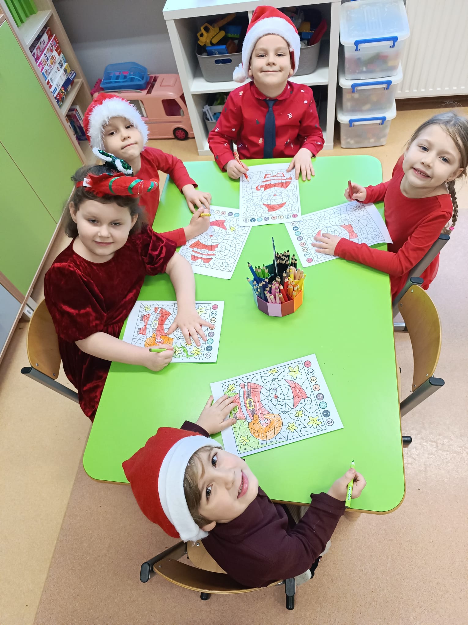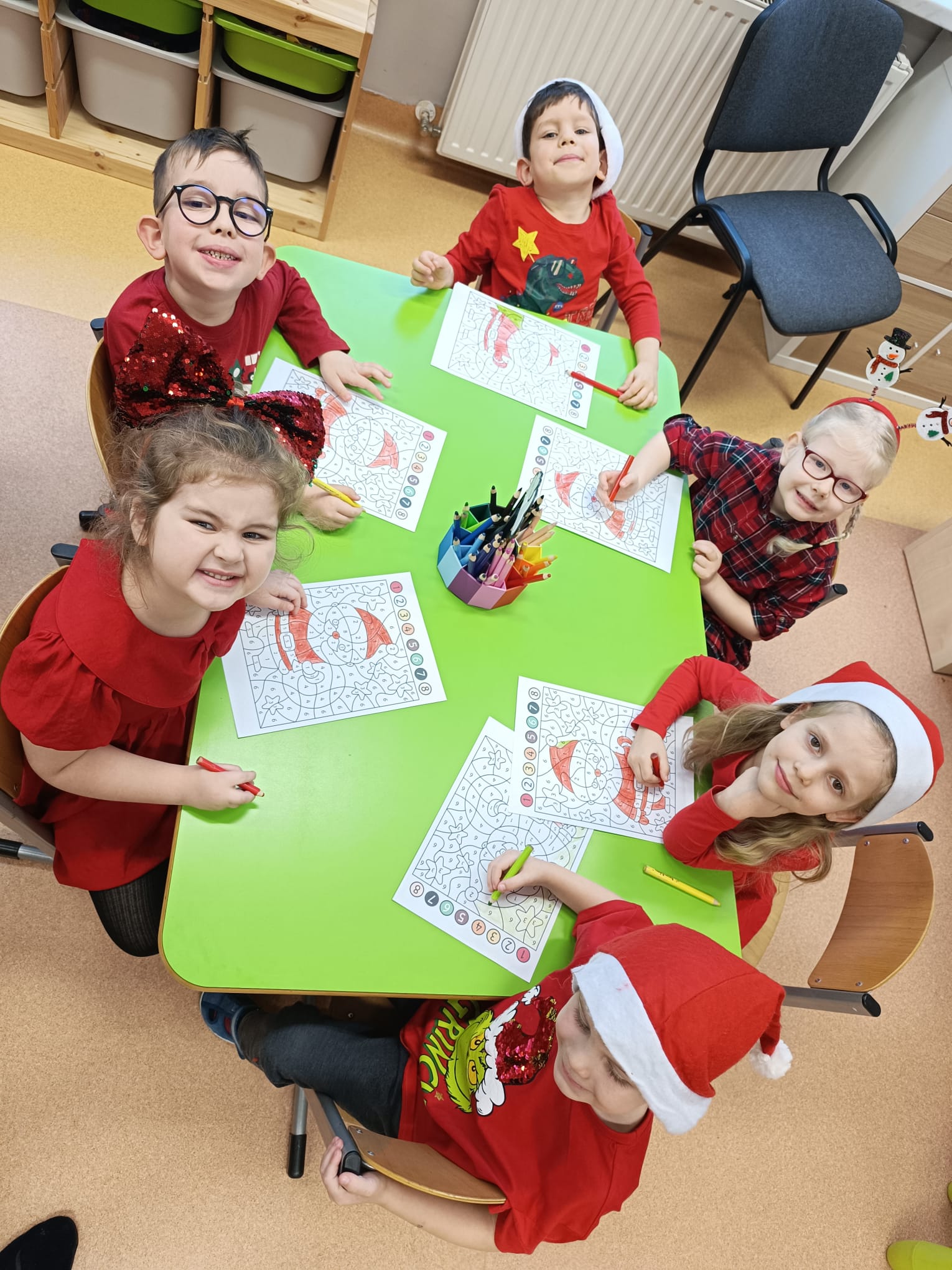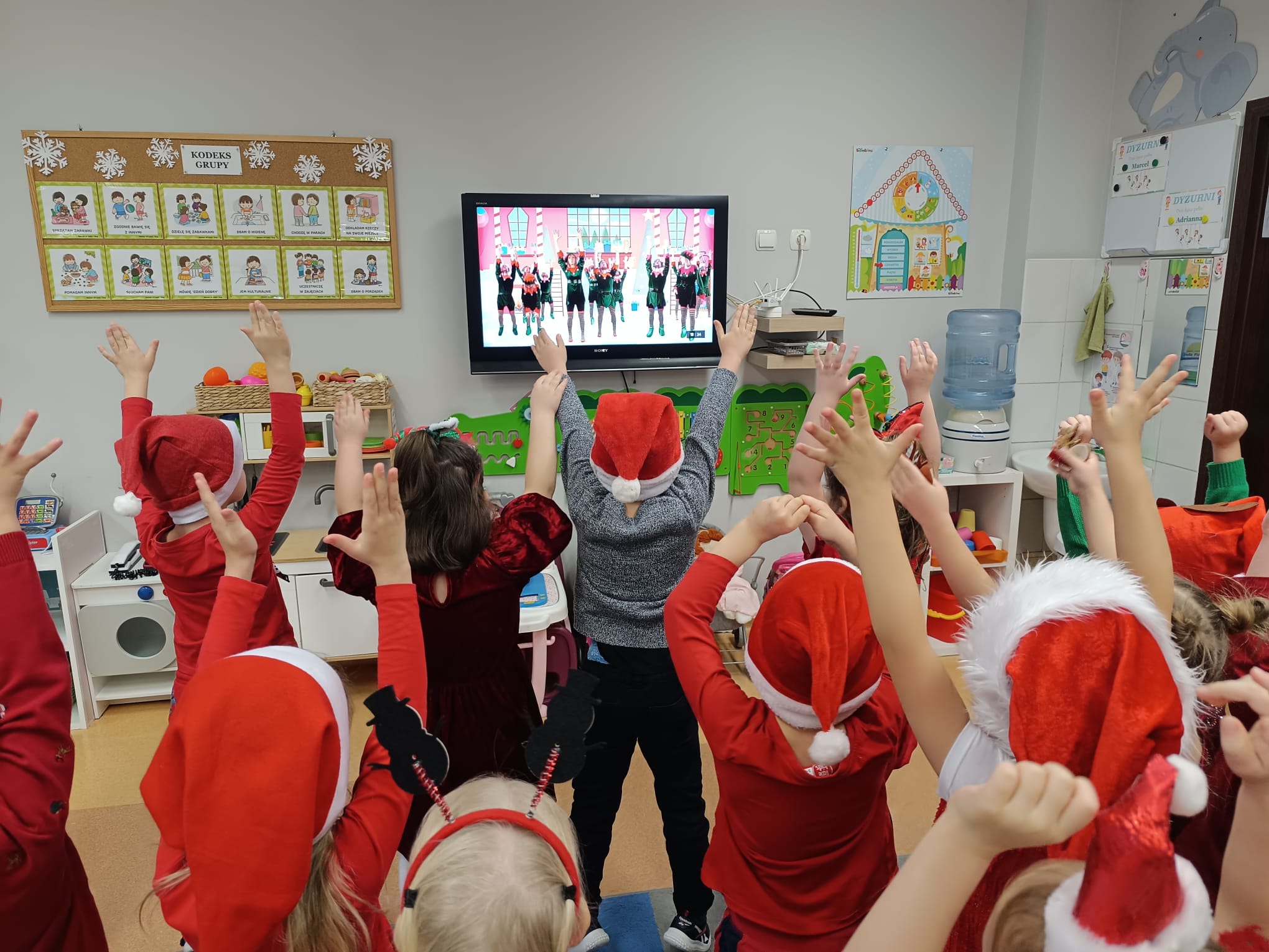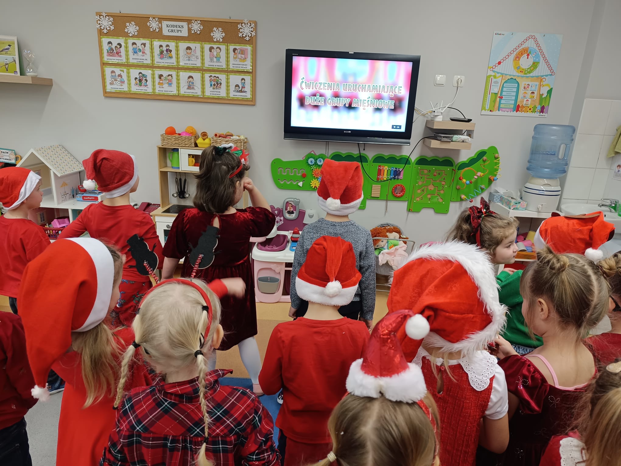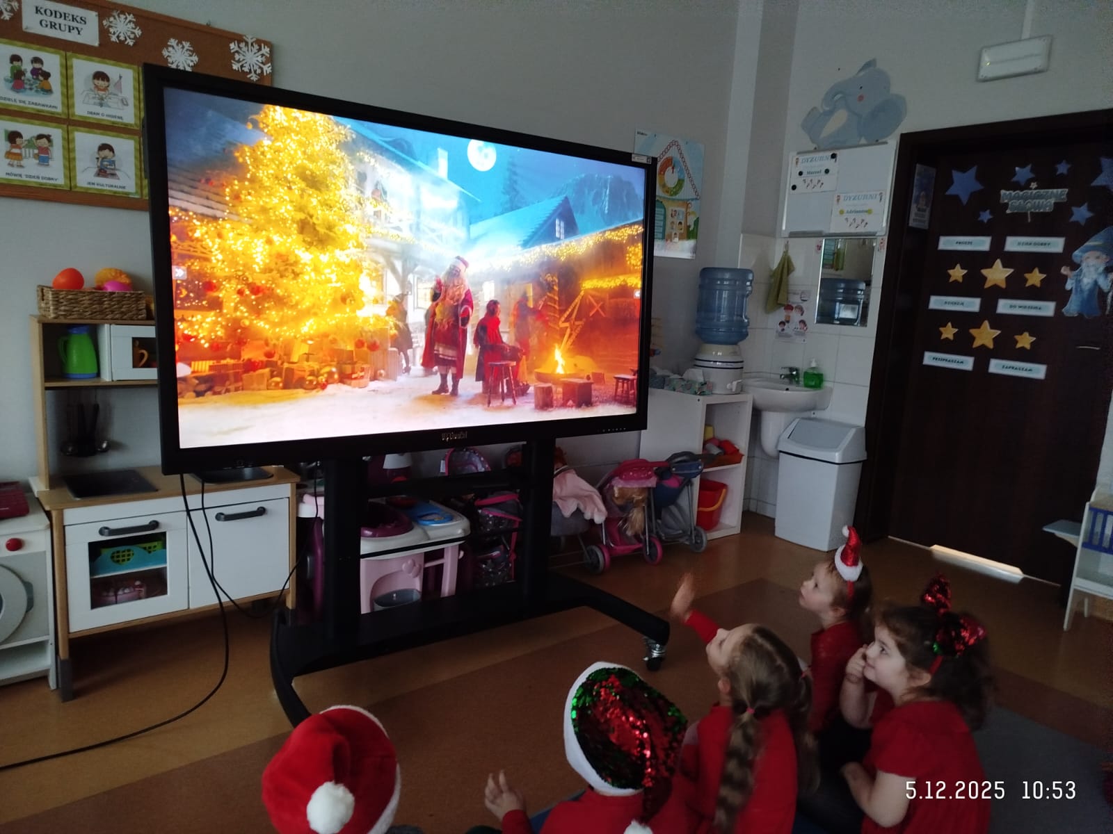 Dnia 5 grudnia nasza sala zamieniła się w czerwoną, prawdziwą krainę świątecznych przygód. Cały dzień wypełniły wesołe aktywności, które przeniosły dzieci w magiczny świat Bożego Narodzenia. Były wesołe zabawy ruchowe podczas których przedszkolaki tańczyły w rytm świątecznych melodii, a ich radość i energia wypełniły cały dzień. Była również mikołajowa praca plastyczna, słodki poczęstunek oraz świąteczna fotobudka, która sprawiła dzieciom mnóstwo radości. Kulminacyjnym punktem programu było oczywiście spotkanie ze Świętym Mikołajem, który wręczył każdemu dziecku wyjątkowy prezent. Jego przyjście poprzedził film, który wprowadził dzieci w magiczny zaczarowany nastrój. Dziękujemy wszystkim, którzy pomogli w przygotowaniu tego wyjątkowego dnia! Dzień ten bowiem na długo pozostanie w naszej pamięci jako czas pełen ciepła, radości i wspólnego świętowania.