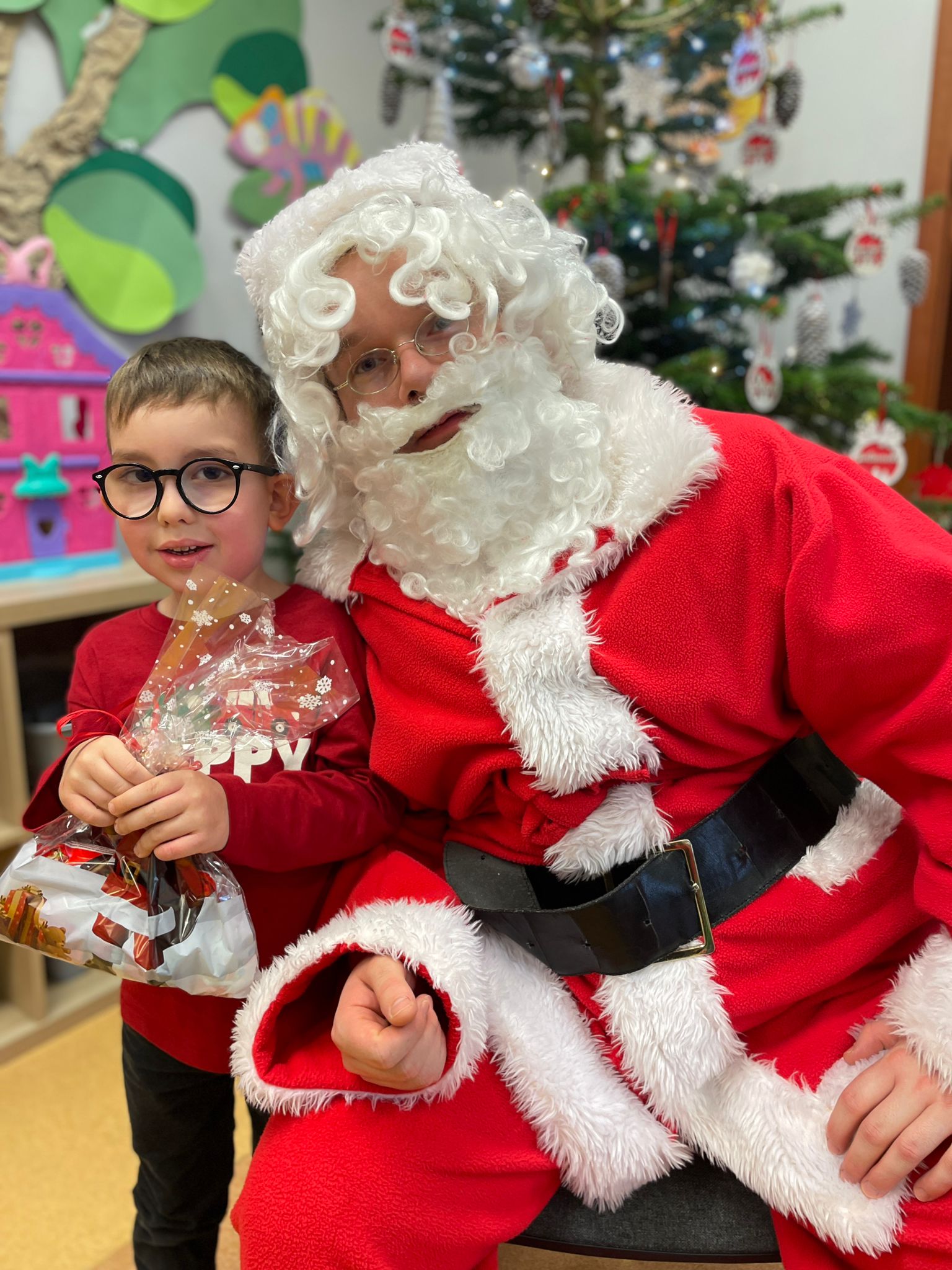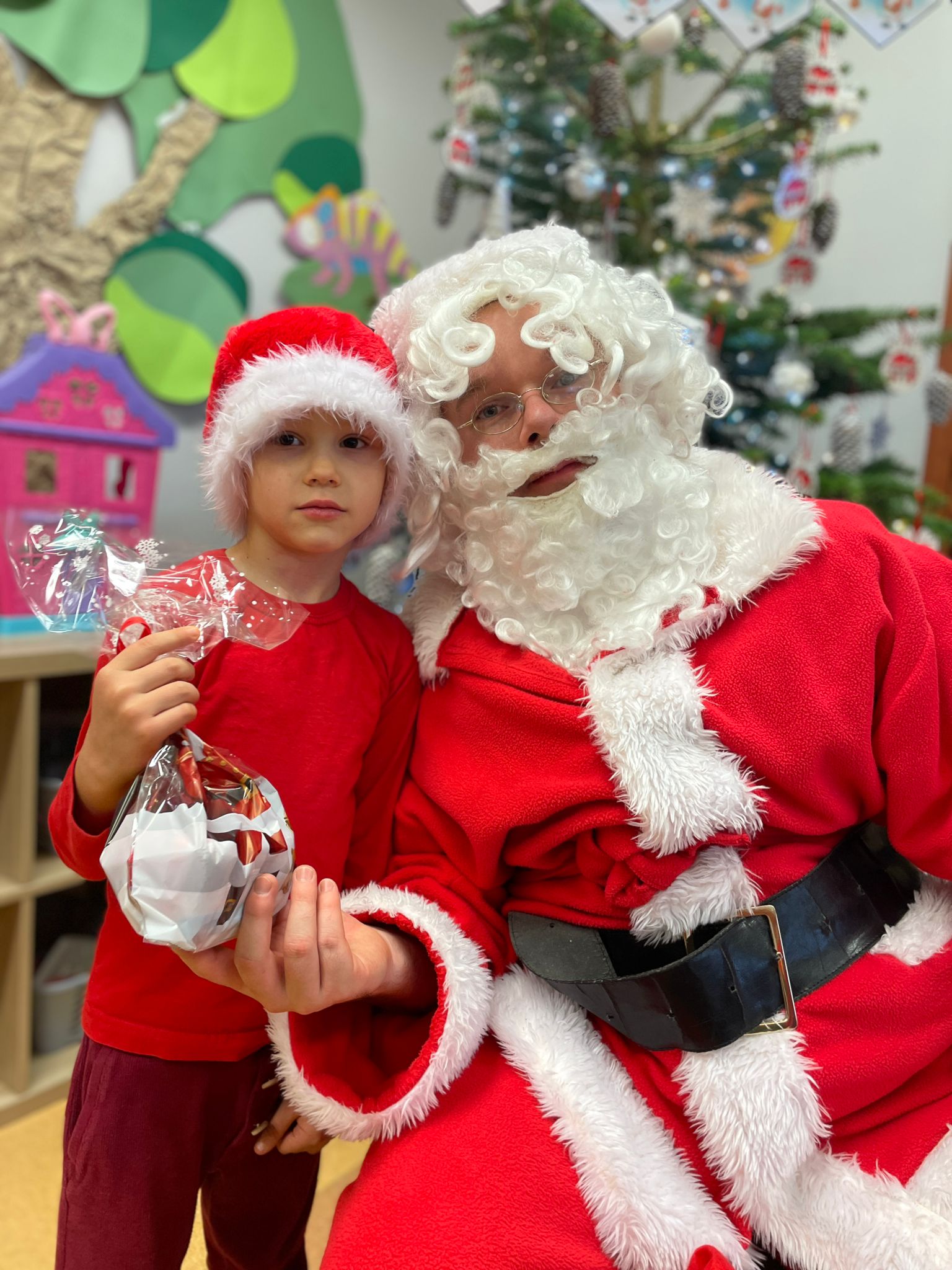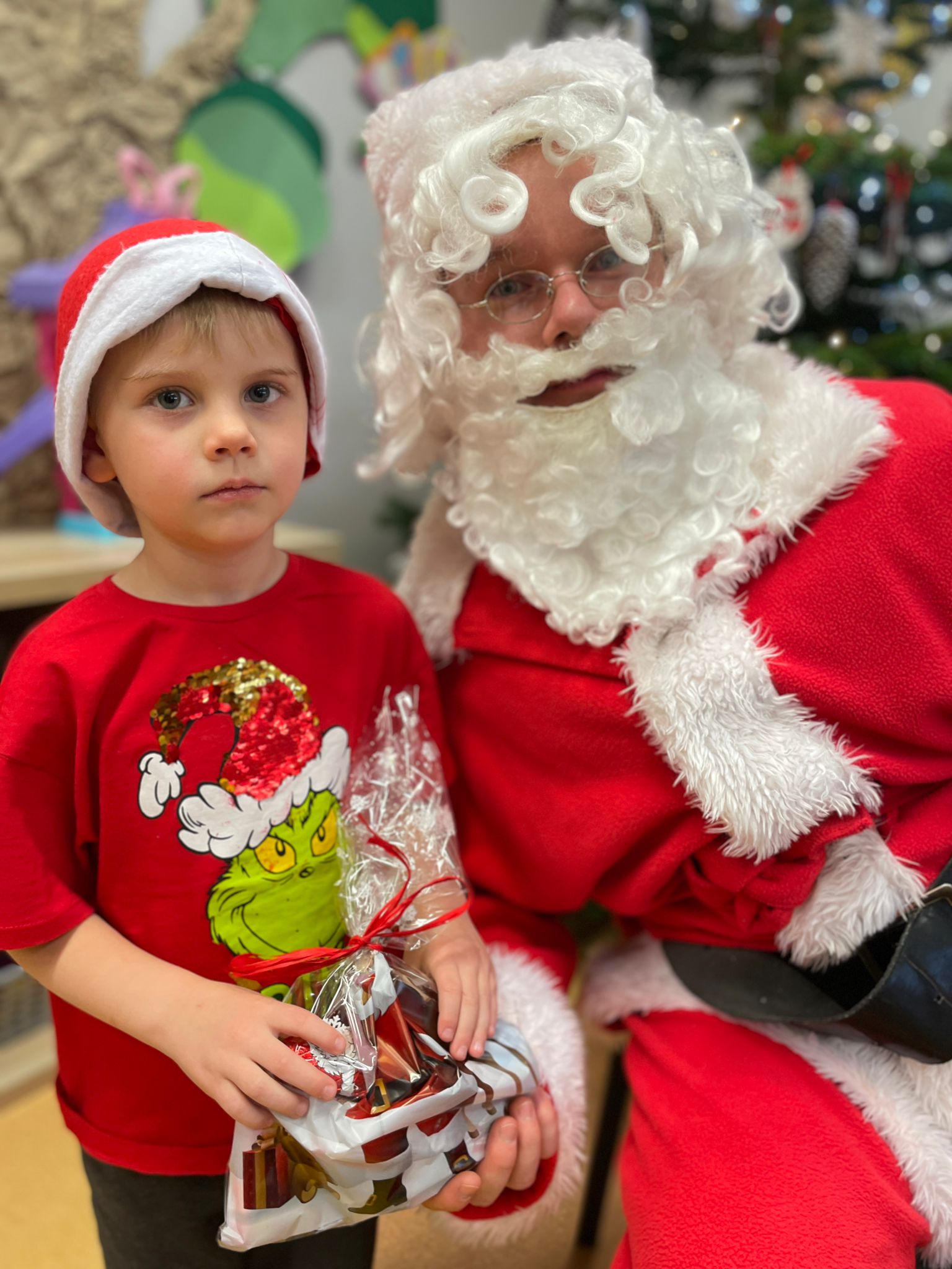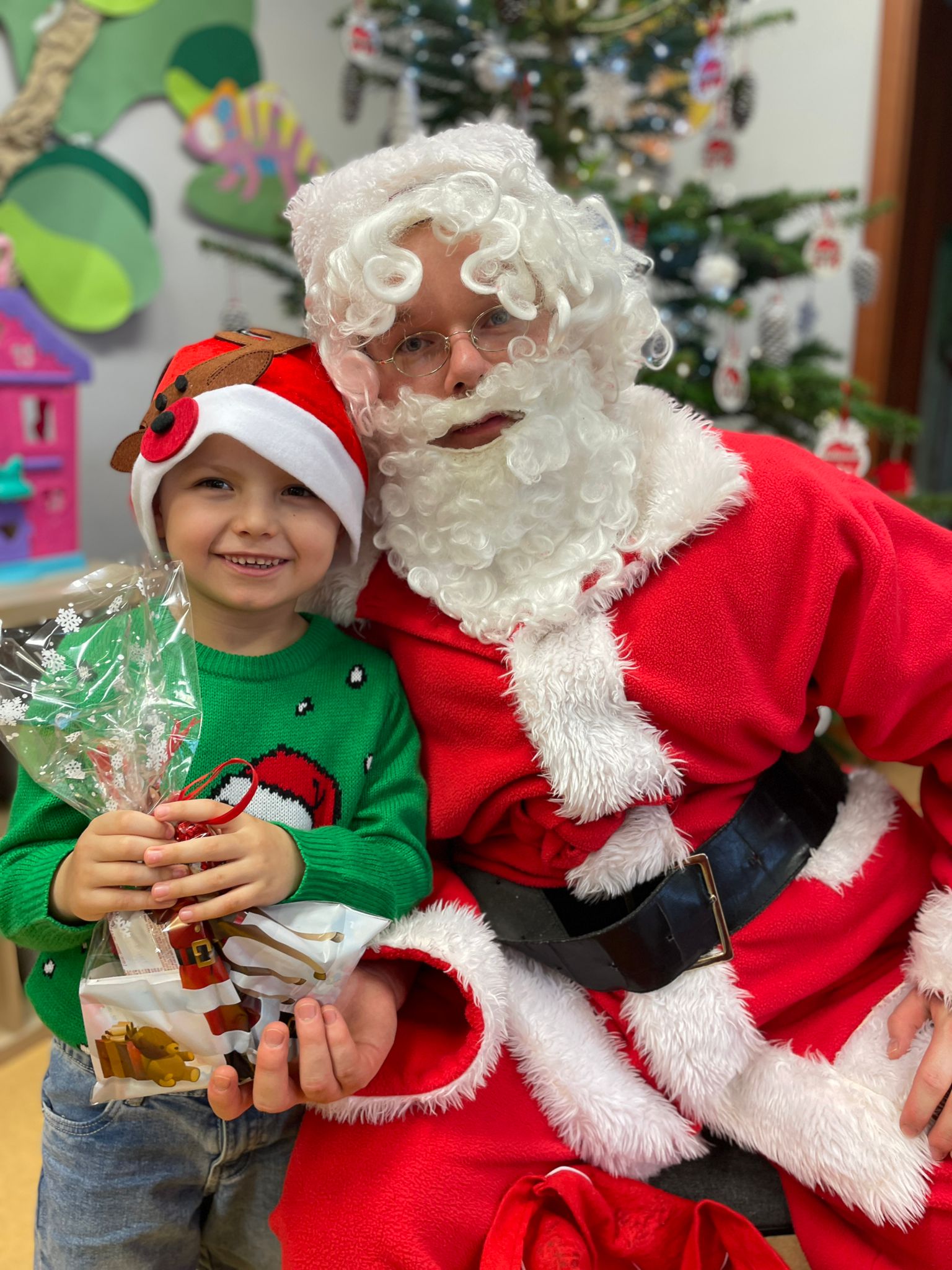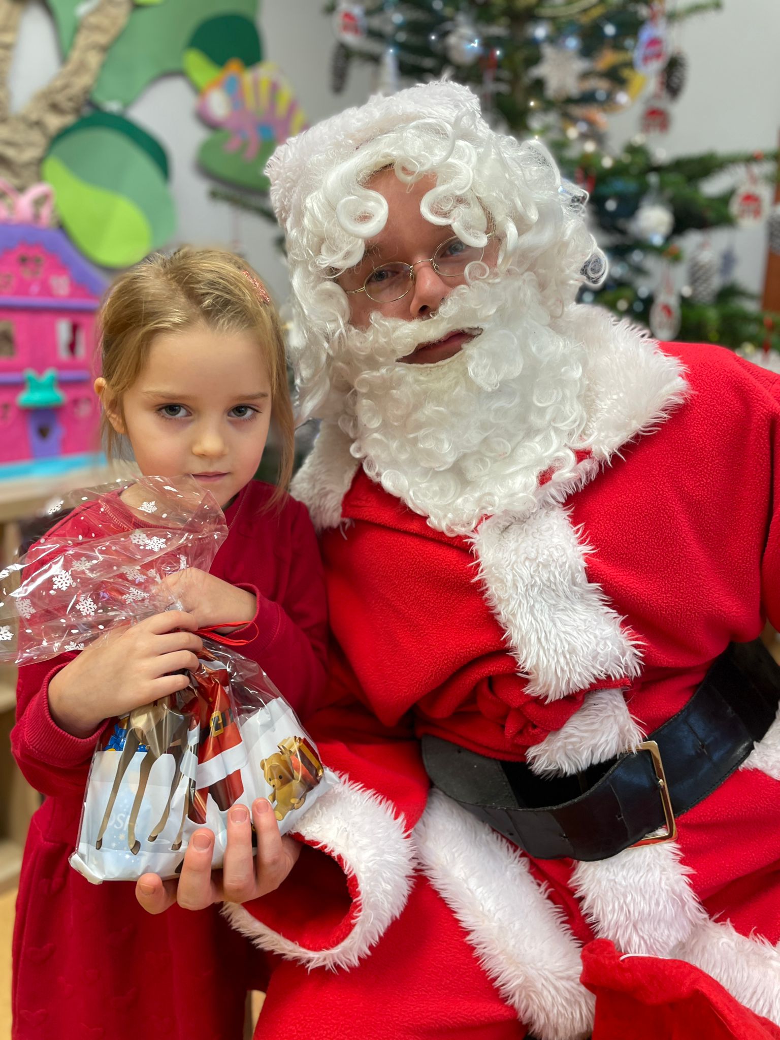 Dnia 5 grudnia nasza sala zamieniła się w czerwoną, prawdziwą krainę świątecznych przygód. Cały dzień wypełniły wesołe aktywności, które przeniosły dzieci w magiczny świat Bożego Narodzenia. Były wesołe zabawy ruchowe podczas których przedszkolaki tańczyły w rytm świątecznych melodii, a ich radość i energia wypełniły cały dzień. Była również mikołajowa praca plastyczna, słodki poczęstunek oraz świąteczna fotobudka, która sprawiła dzieciom mnóstwo radości. Kulminacyjnym punktem programu było oczywiście spotkanie ze Świętym Mikołajem, który wręczył każdemu dziecku wyjątkowy prezent. Jego przyjście poprzedził film, który wprowadził dzieci w magiczny zaczarowany nastrój. Dziękujemy wszystkim, którzy pomogli w przygotowaniu tego wyjątkowego dnia! Dzień ten bowiem na długo pozostanie w naszej pamięci jako czas pełen ciepła, radości i wspólnego świętowania.