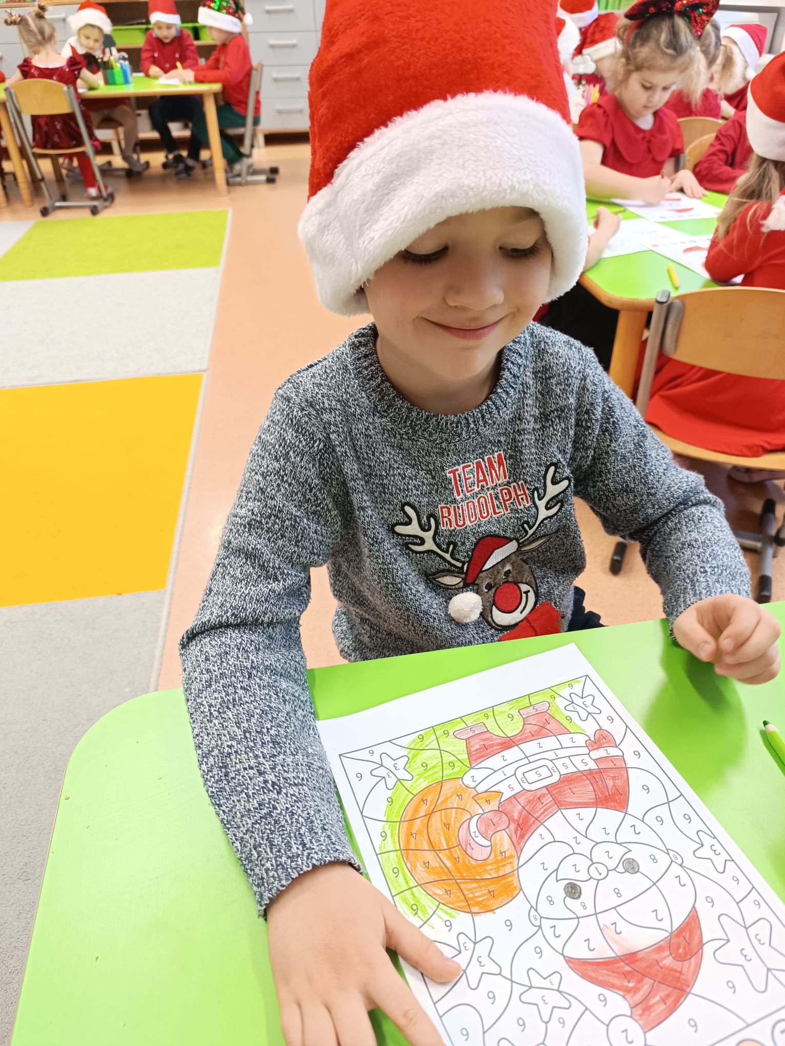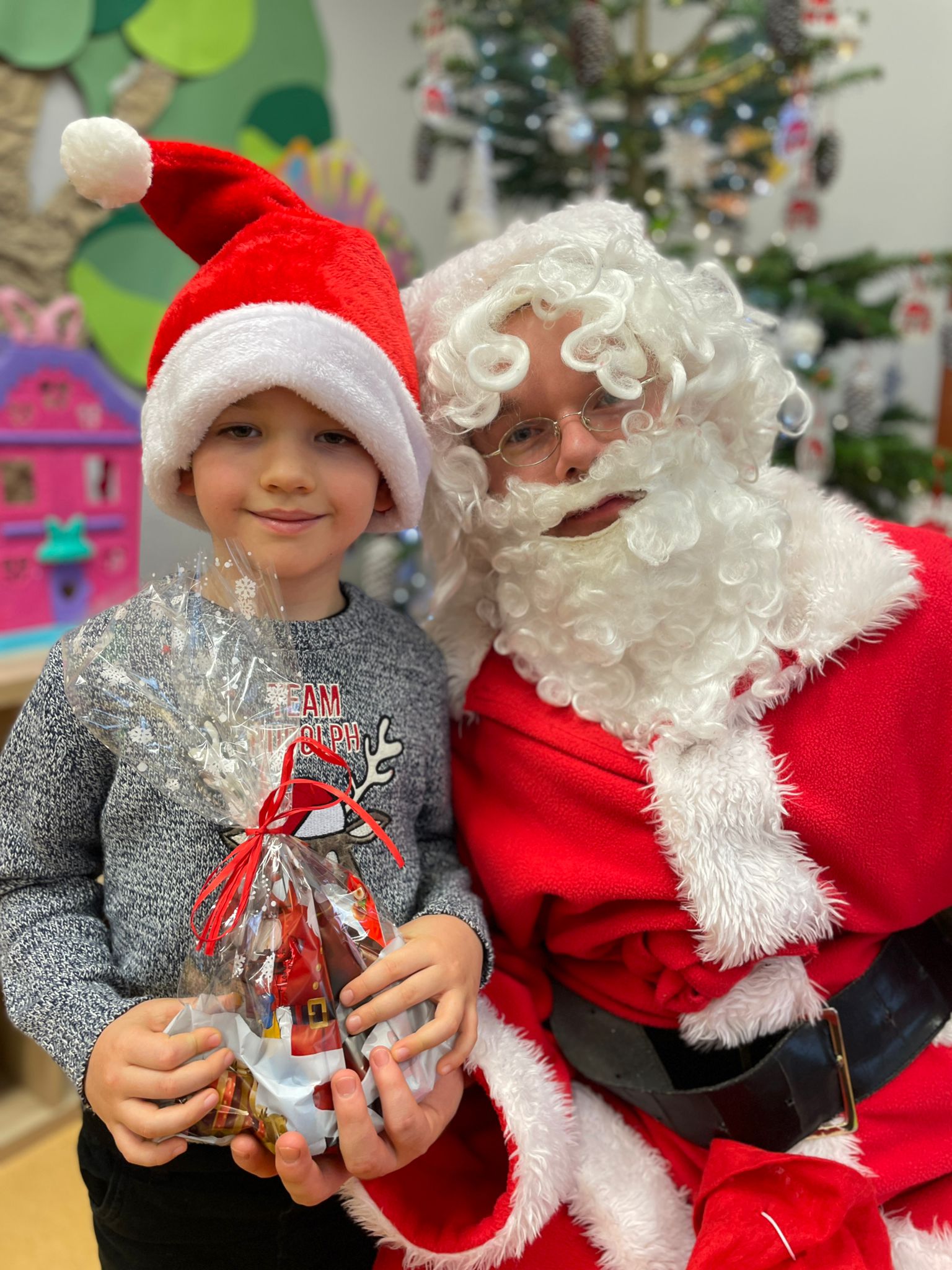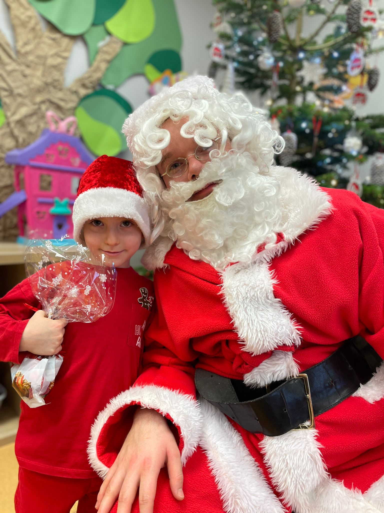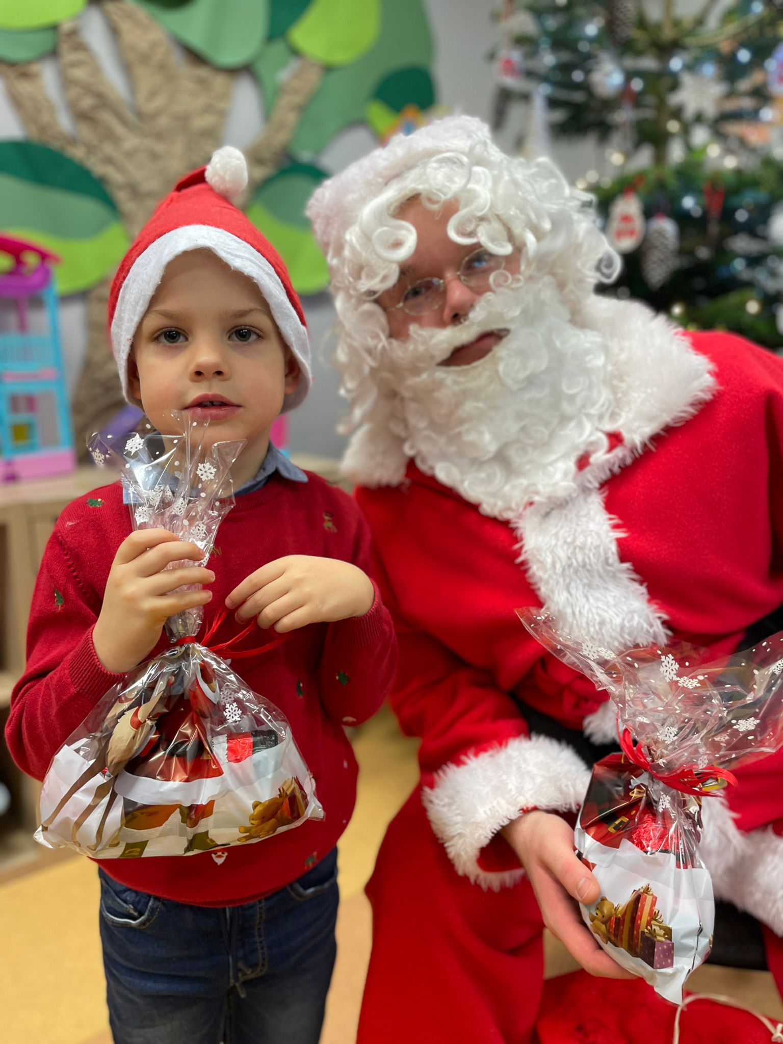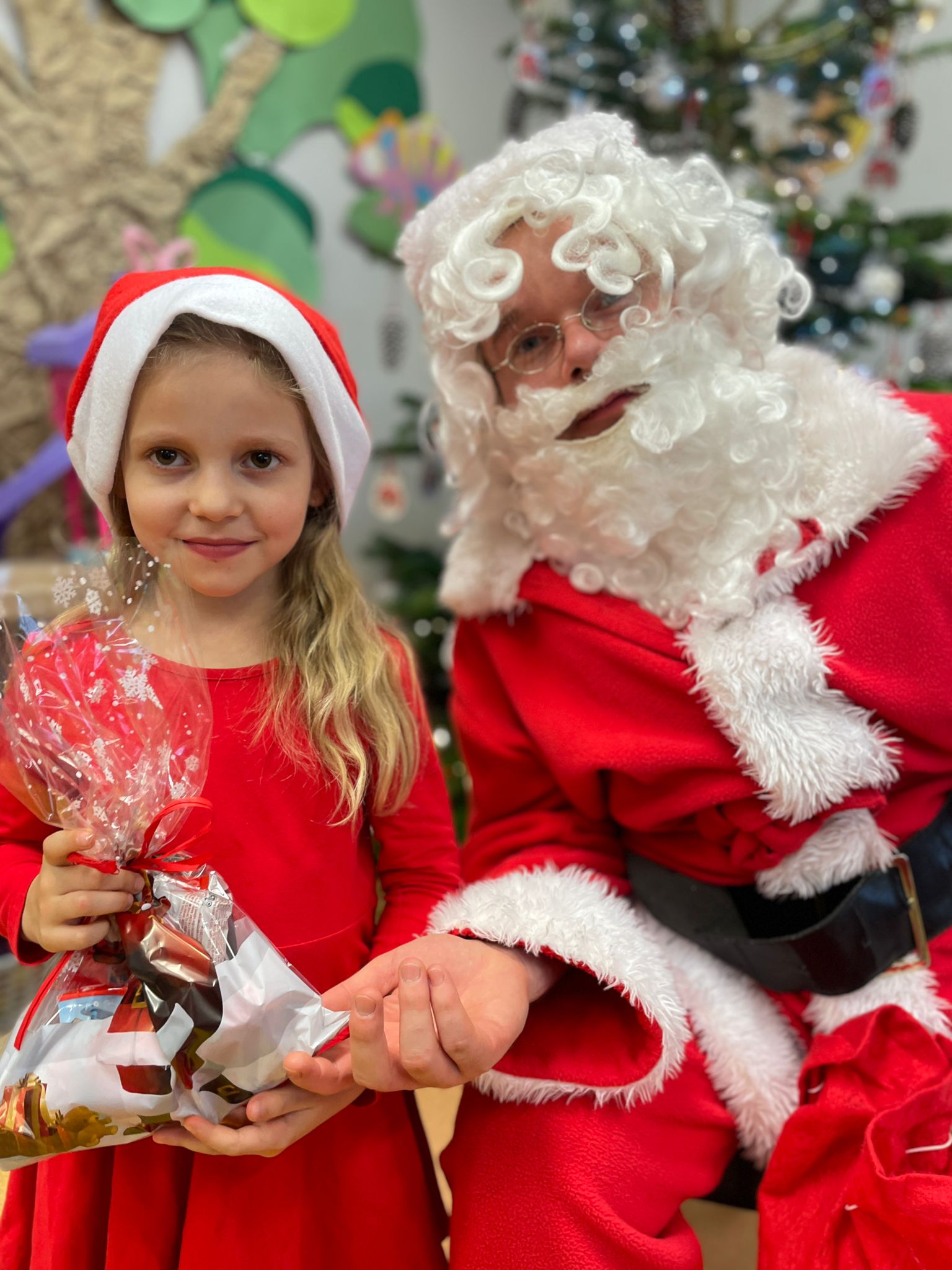 Dnia 5 grudnia nasza sala zamieniła się w czerwoną, prawdziwą krainę świątecznych przygód. Cały dzień wypełniły wesołe aktywności, które przeniosły dzieci w magiczny świat Bożego Narodzenia. Były wesołe zabawy ruchowe podczas których przedszkolaki tańczyły w rytm świątecznych melodii, a ich radość i energia wypełniły cały dzień. Była również mikołajowa praca plastyczna, słodki poczęstunek oraz świąteczna fotobudka, która sprawiła dzieciom mnóstwo radości. Kulminacyjnym punktem programu było oczywiście spotkanie ze Świętym Mikołajem, który wręczył każdemu dziecku wyjątkowy prezent. Jego przyjście poprzedził film, który wprowadził dzieci w magiczny zaczarowany nastrój. Dziękujemy wszystkim, którzy pomogli w przygotowaniu tego wyjątkowego dnia! Dzień ten bowiem na długo pozostanie w naszej pamięci jako czas pełen ciepła, radości i wspólnego świętowania.