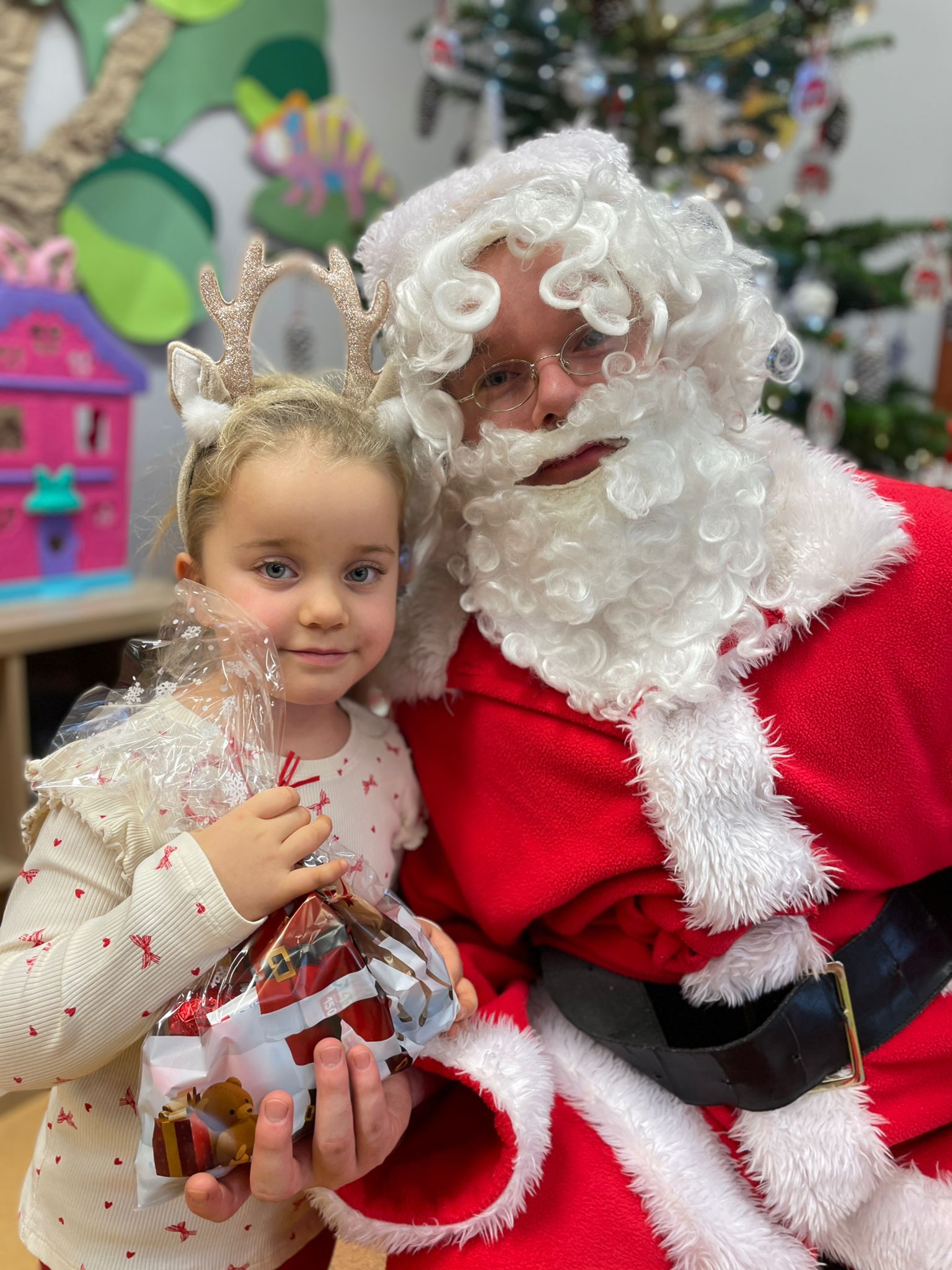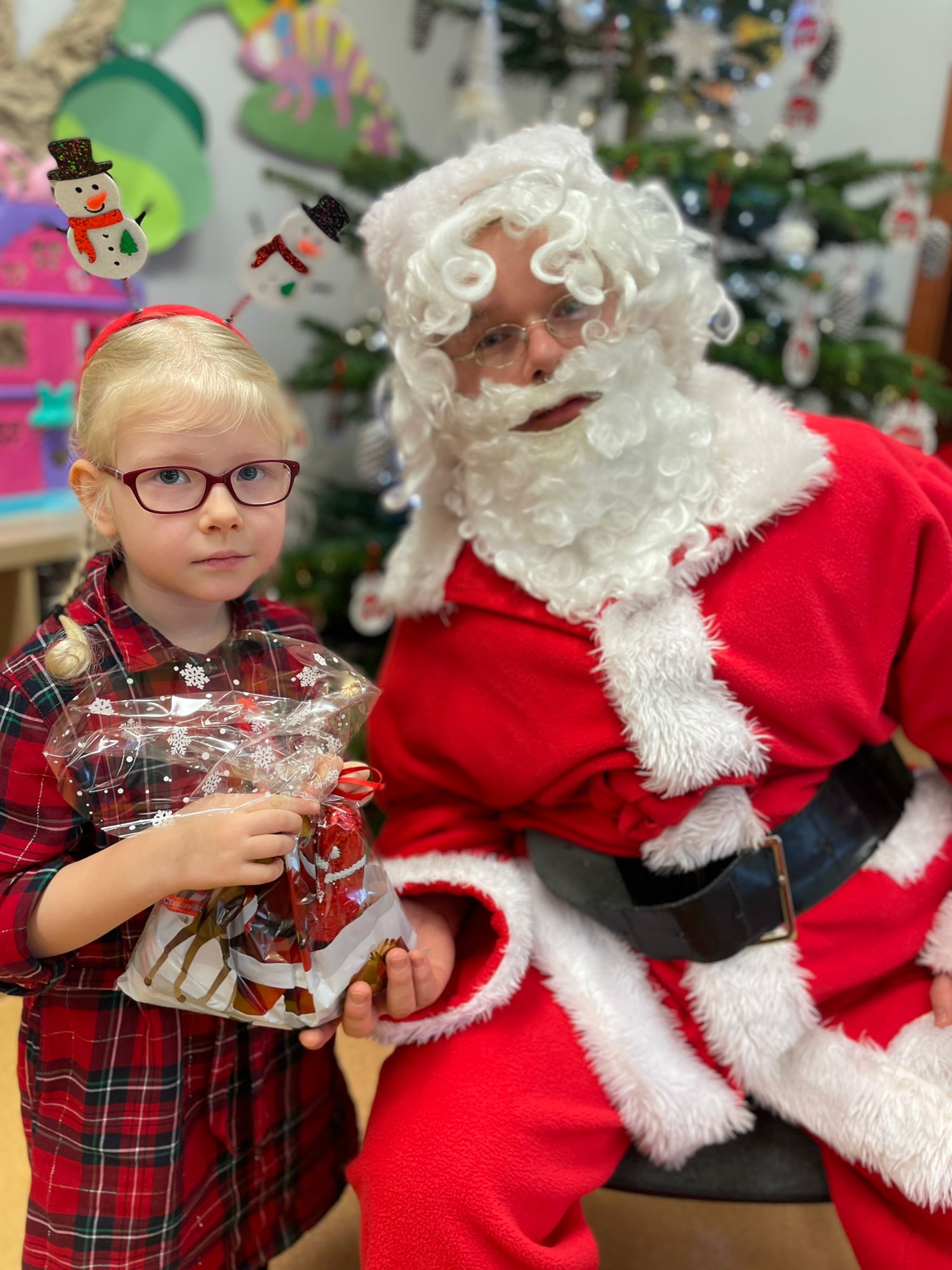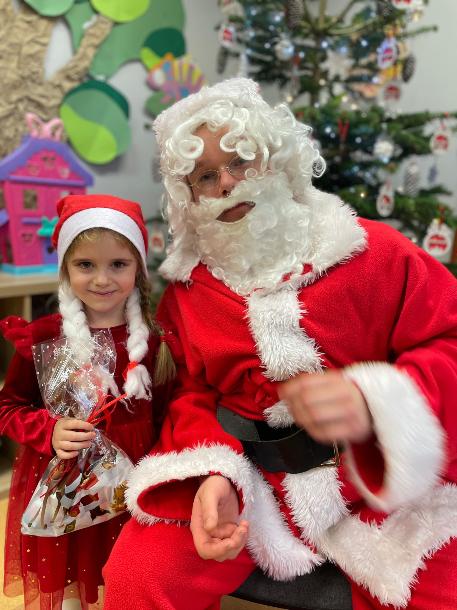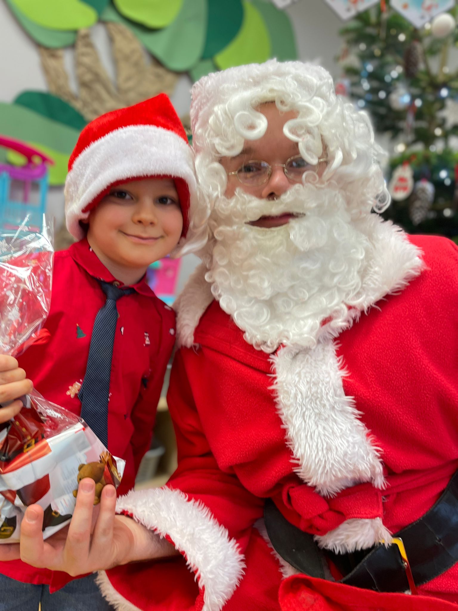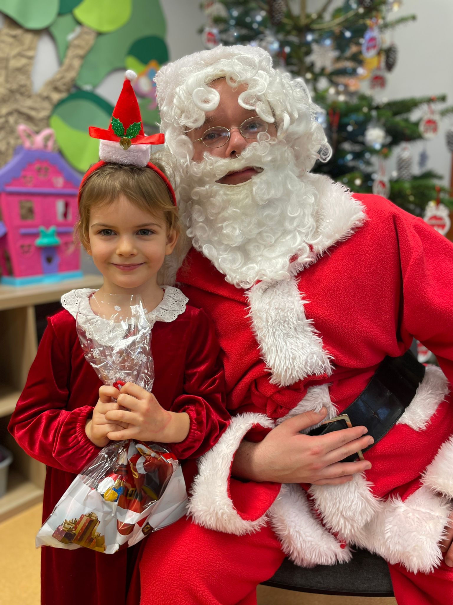 Dnia 5 grudnia nasza sala zamieniła się w czerwoną, prawdziwą krainę świątecznych przygód. Cały dzień wypełniły wesołe aktywności, które przeniosły dzieci w magiczny świat Bożego Narodzenia. Były wesołe zabawy ruchowe podczas których przedszkolaki tańczyły w rytm świątecznych melodii, a ich radość i energia wypełniły cały dzień. Była również mikołajowa praca plastyczna, słodki poczęstunek oraz świąteczna fotobudka, która sprawiła dzieciom mnóstwo radości. Kulminacyjnym punktem programu było oczywiście spotkanie ze Świętym Mikołajem, który wręczył każdemu dziecku wyjątkowy prezent. Jego przyjście poprzedził film, który wprowadził dzieci w magiczny zaczarowany nastrój. Dziękujemy wszystkim, którzy pomogli w przygotowaniu tego wyjątkowego dnia! Dzień ten bowiem na długo pozostanie w naszej pamięci jako czas pełen ciepła, radości i wspólnego świętowania.