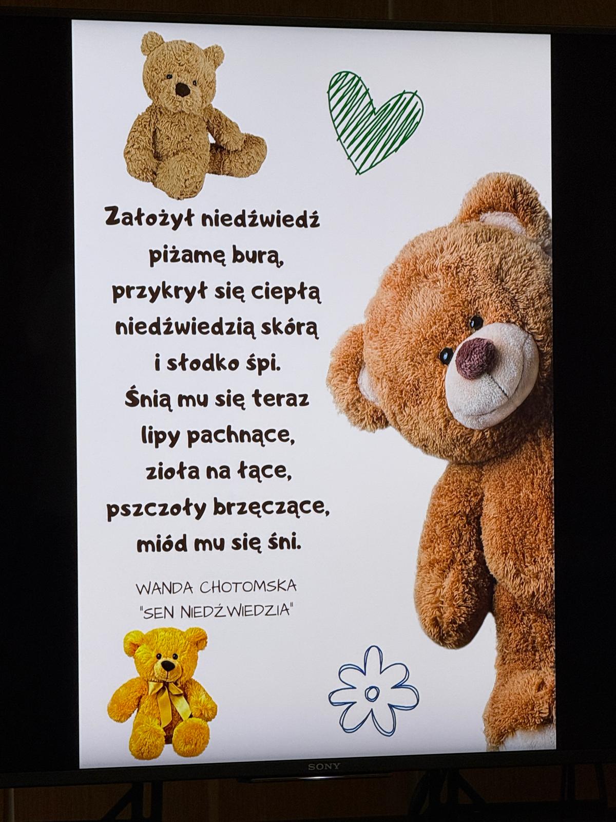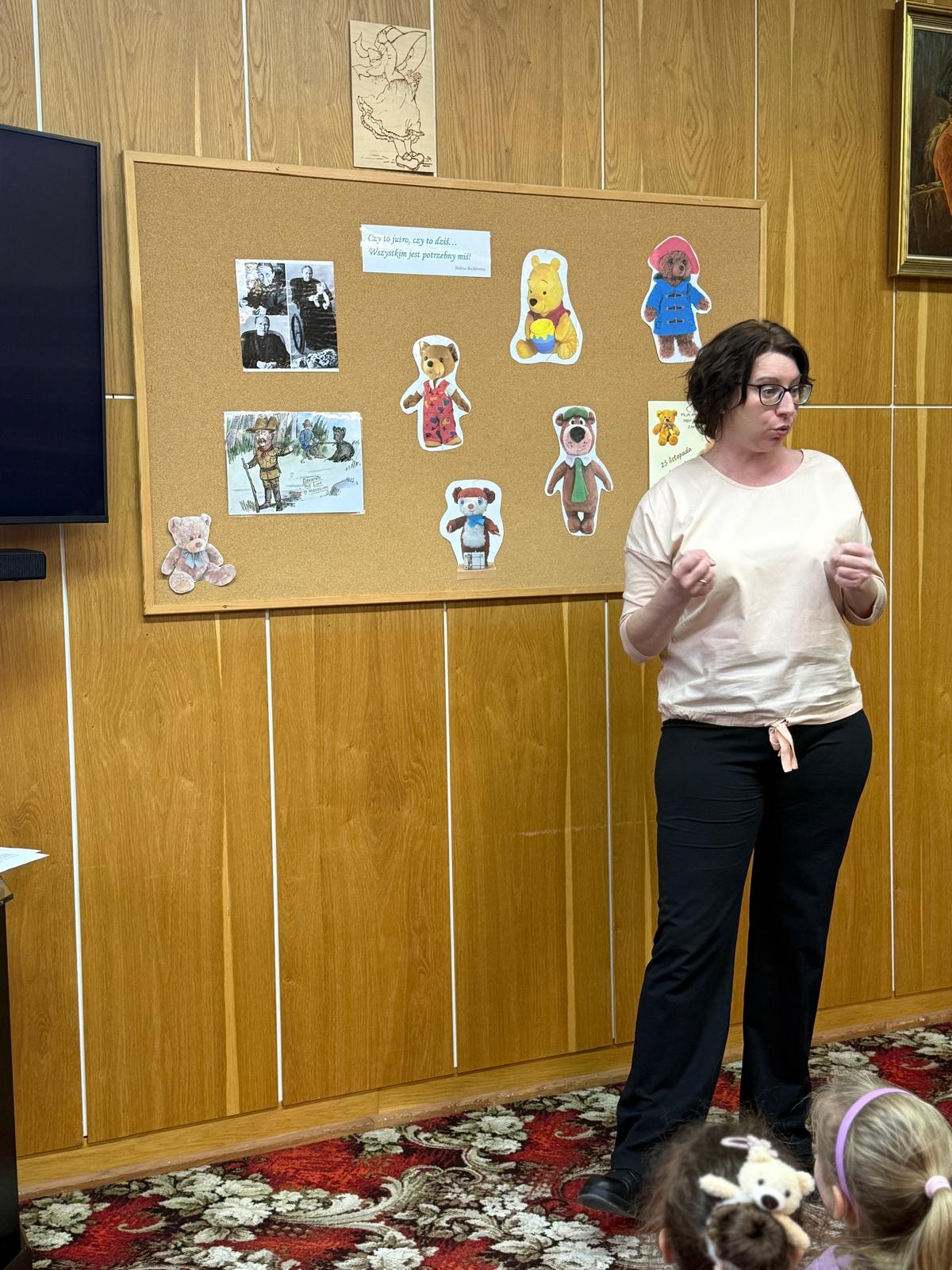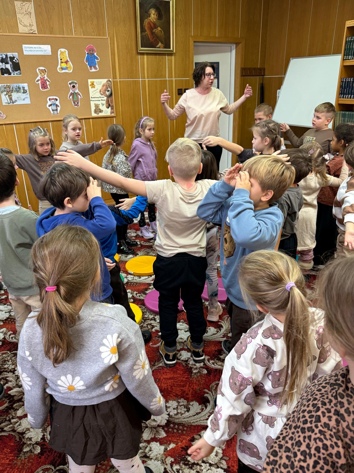 Z okazji Światowego Dnia Pluszowego Misia, dzieci z grupy czwartej i piątej udały się do Filii „Medycznej” Miejskiej Biblioteki Publicznej im. Zofii Urbanowskiej, mieszczącej się w Wojewódzkim Szpitalu Zespolonym w Koninie. To wyjątkowe wydarzenie pozwoliło przedszkolakom przenieść się w świat misiów i ich fascynujących historii. Celem wizyty było nie tylko świętowanie tego wyjątkowego dnia, ale także rozwijanie wyobraźni, zachęcanie do czytelnictwa oraz integracja dzieci poprzez wspólne zabawy. Wierszyki i opowiadania były czytane w ramach kampanii społecznej „Cała Polska czyta dzieciom”, co dodatkowo wpłynęło na rozwój czytelniczych pasji najmłodszych. Podczas wizyty dzieci poznały różne rodzaje misiów, takie jak Kubuś Puchatek, Uszatek, Colargol, Yogi czy Paddington oraz zapoznały się z bogatą kolekcją książek o misiach. Uczestniczyły także w fantastycznych zabawach, które uatrakcyjniły całe wydarzenie. Po powrocie do przedszkola dzieci wspólnie ze swoimi misiami wzięły udział w zajęciach koleżeńskich podczas których przeniosły się w świat zabaw muzyczno – ruchowych, tanecznych a nawet matematycznych, co jeszcze bardziej umocniło ich entuzjazm i radość z odkrywania nowych historii.