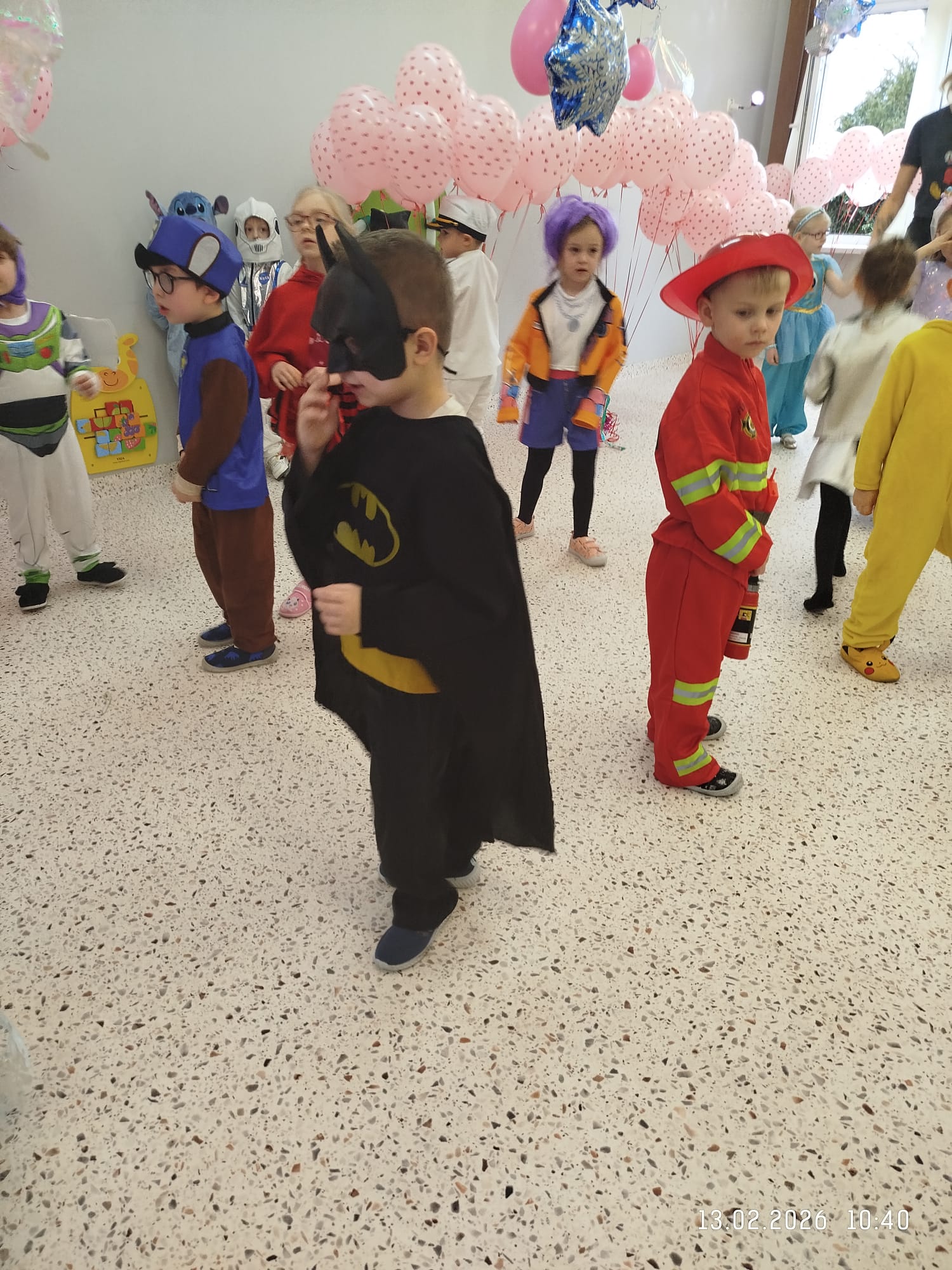 Tegoroczny piątek 13-tego w grupie XII zdecydowanie nie należał do pechowych… Można wręcz z całą pewnością powiedzieć, że takie piątki to my uwielbiamy, a wręcz KOCHAMY!!! A to dlatego, że 13 lutego w naszym przedszkolu odbył się bal karnawałowo-walentynkowy, na który dzieci czekały z dużą niecierpliwością. Tego dnia już od rana w sali przedszkolnej pojawiały się kolorowe postacie: bohaterowie z różnych bajek, filmów, służby mundurowe, wróżki, księżniczki, karatecy, kapitanowie, astronauci... Było magicznie, bajkowo, kolorowo… Dzieci aktywnie i z dużą radością uczestniczyły w zabawach i konkursach przygotowanych przez animatorów i nauczycieli. Humory dopisywały, a energia do zabawy i tańca nie miała końca! Bal karnawałowo-walentynkowy był nie tylko okazją do wspaniałej zabawy, ale również do rozwijania wyobraźni, kreatywności oraz umiejętności społecznych.