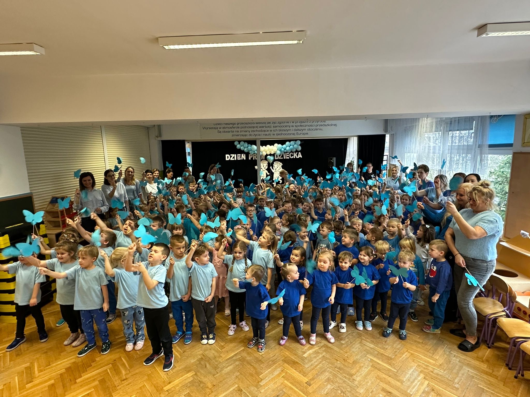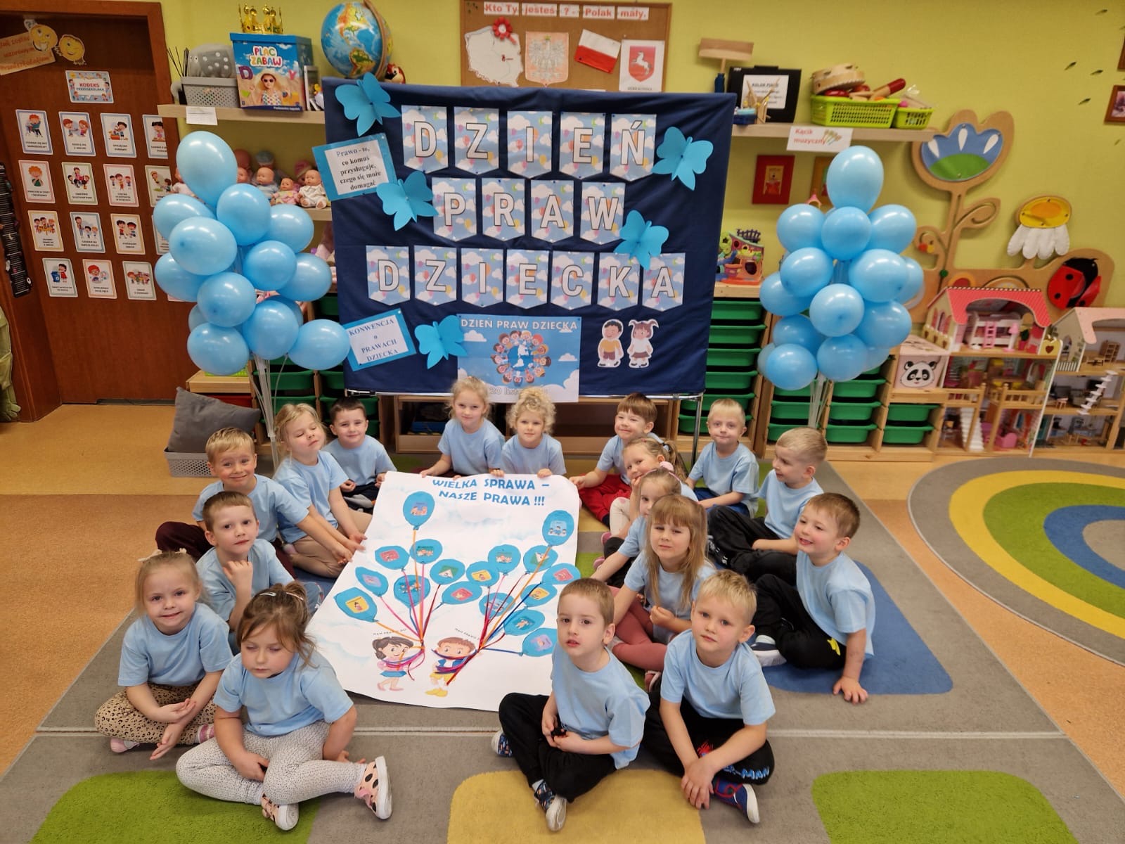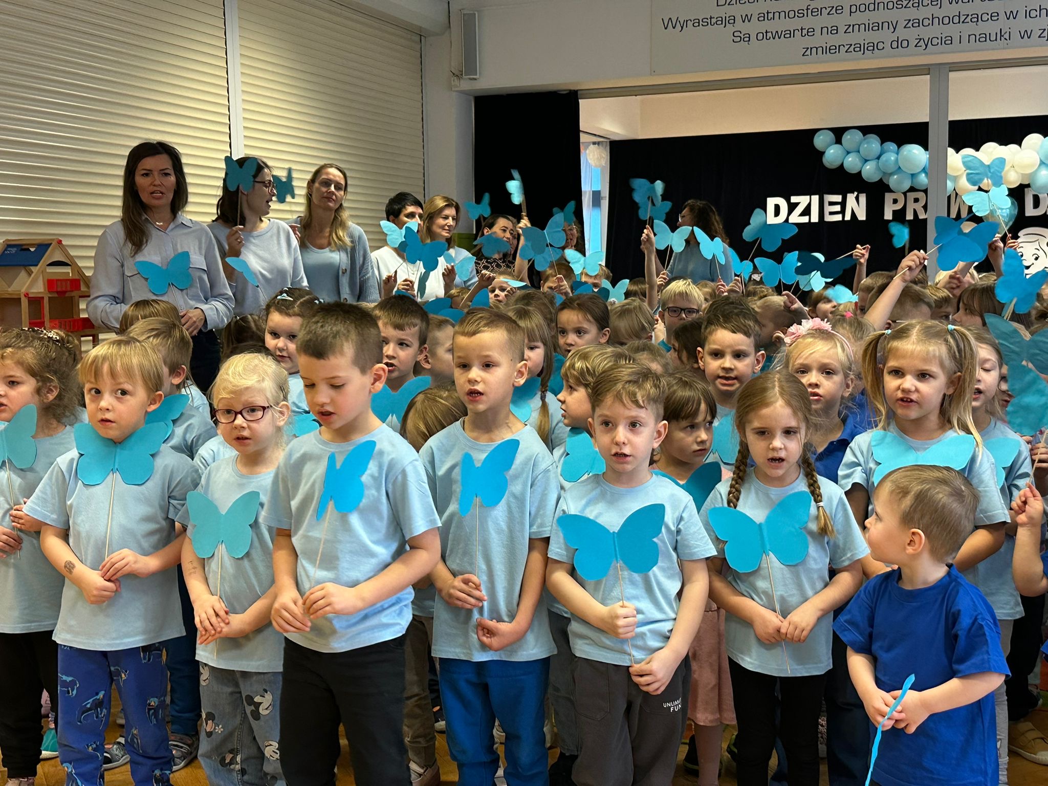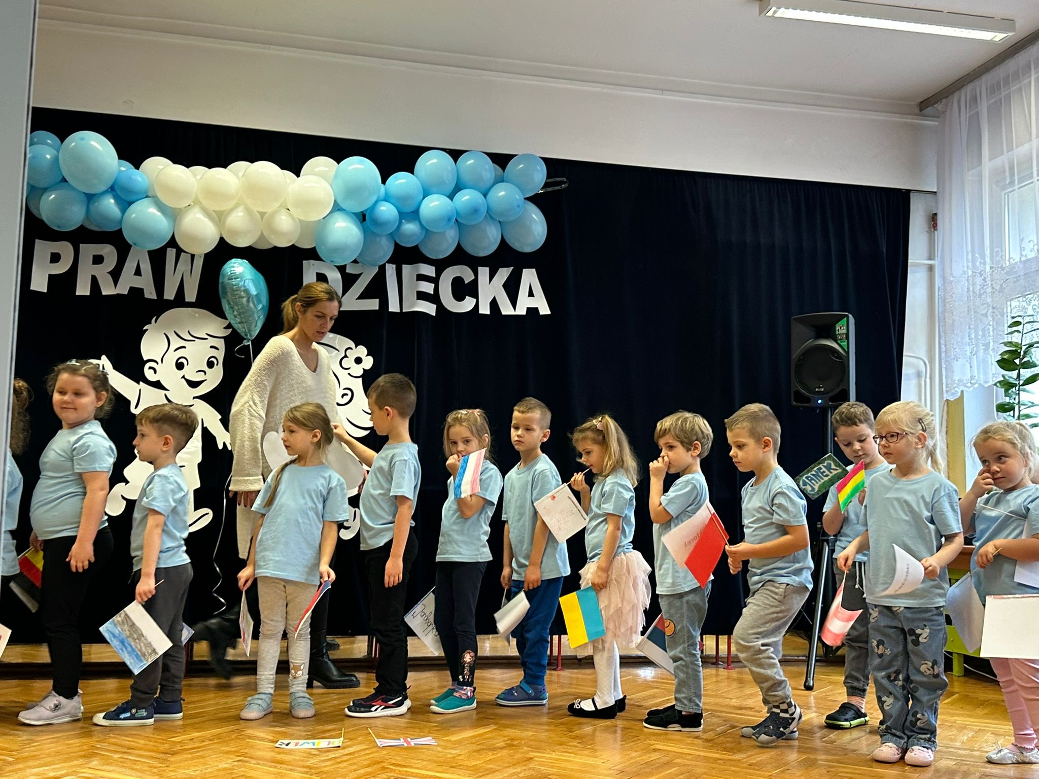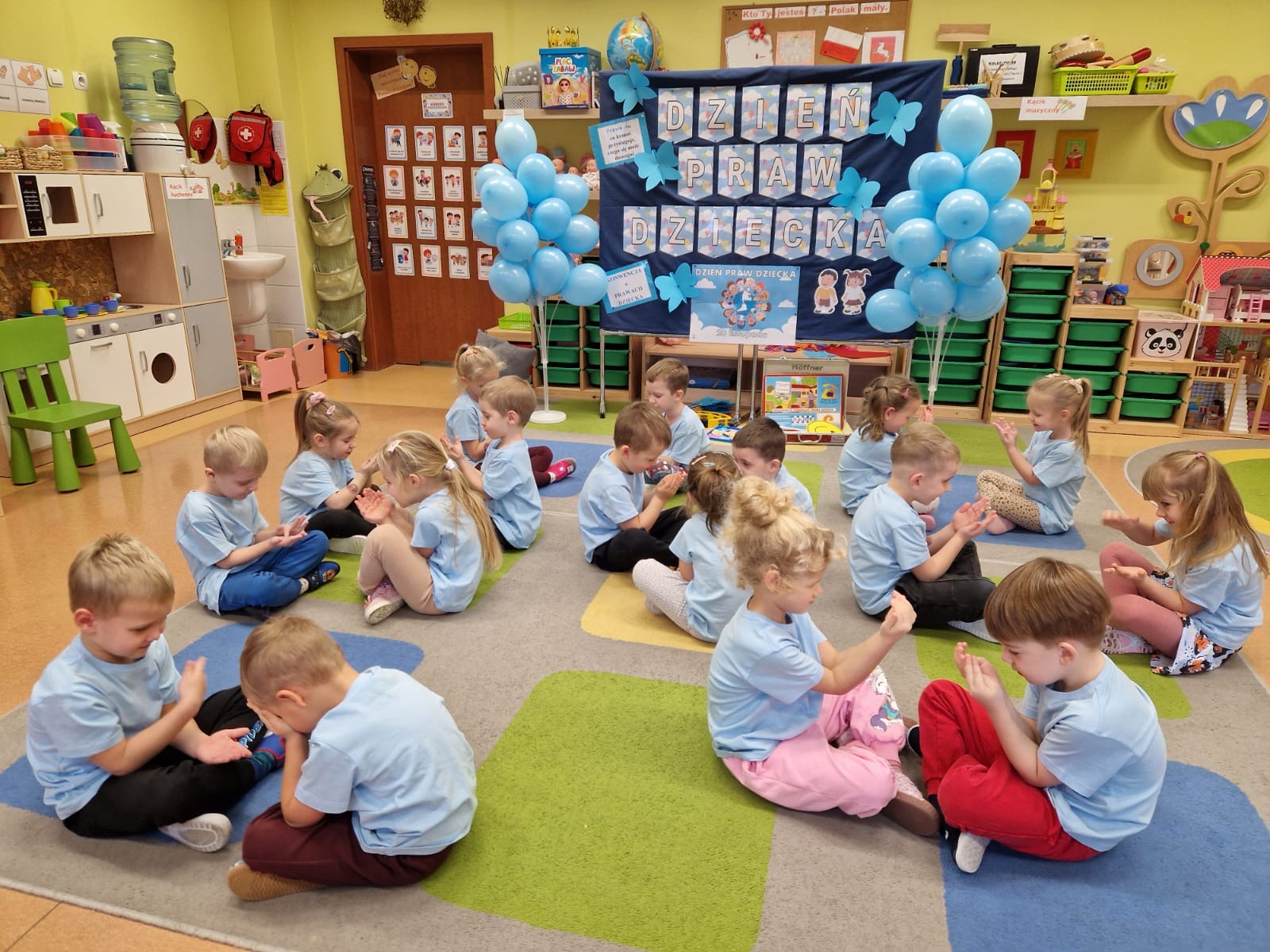 Tego dnia przedszkolaki ubrane były na niebiesko – kolor symbolizujący solidarność ze wszystkimi dziećmi na świecie, również tymi, których prawa wciąż są naruszane. Wraz z wychowawcami uczestniczyły w przedstawieniu pantomimicznym, które miało na celu przypomnienie i utrwalenie zasad dotyczących praw dziecka. Na zakończenie występu dzieci zaśpiewały piosenkę „Prawa dzieci”. Część podjęła prace w grupie, tworząc plakaty i organizując zabawy zgodnie z tematem.