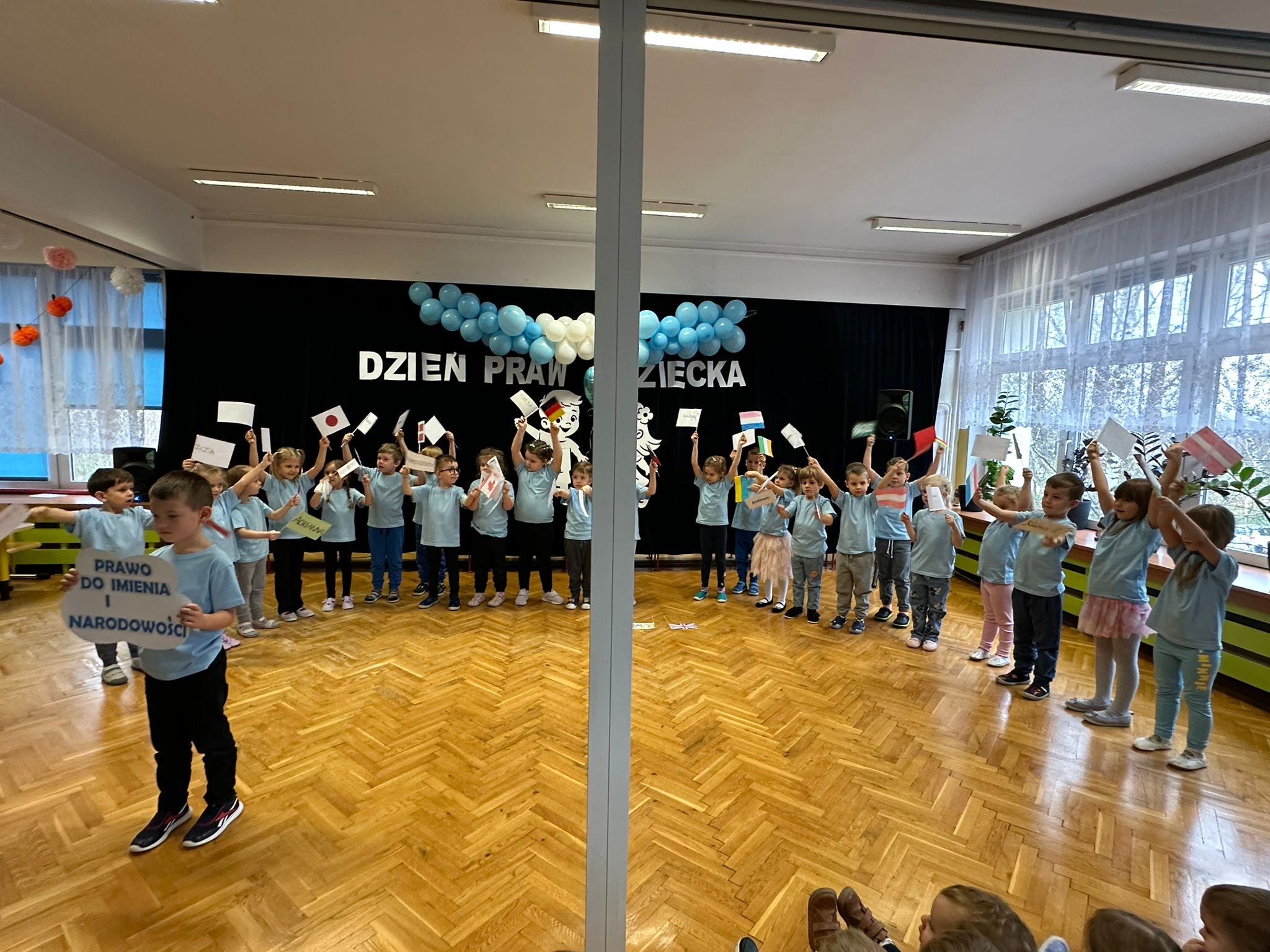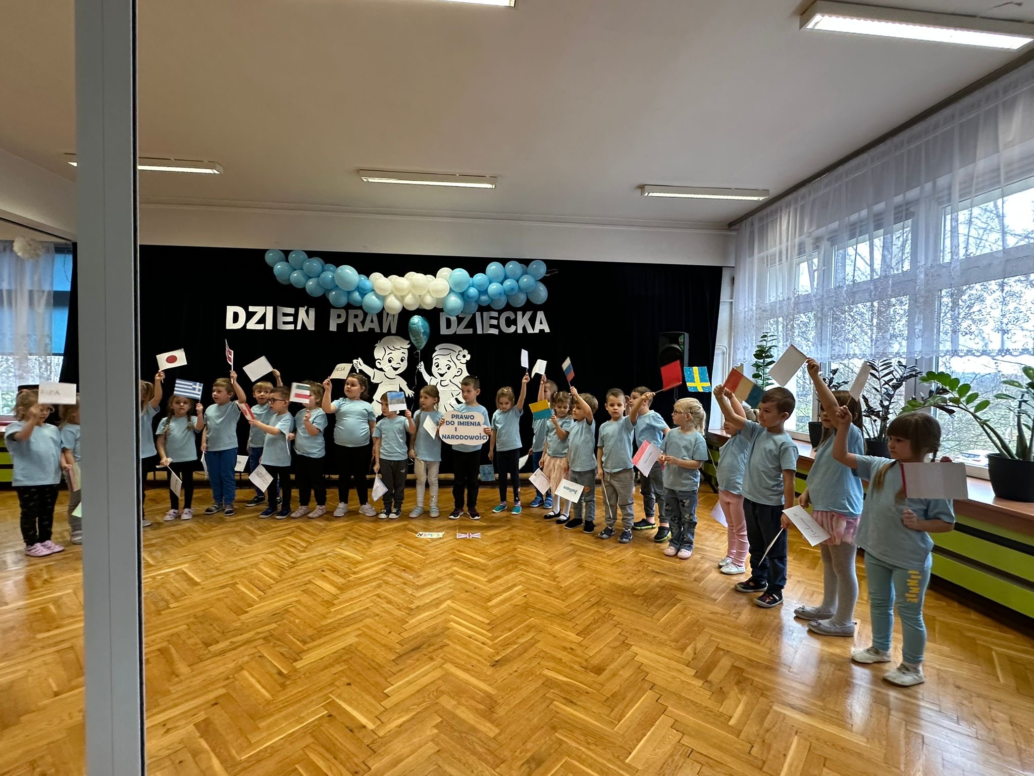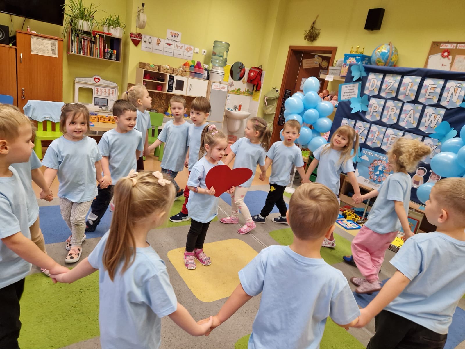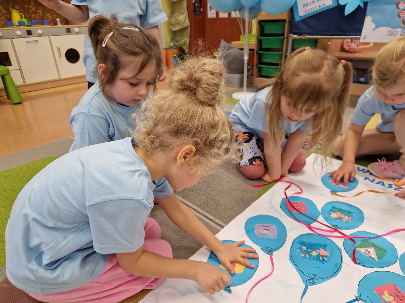 Tego dnia przedszkolaki ubrane były na niebiesko – kolor symbolizujący solidarność ze wszystkimi dziećmi na świecie, również tymi, których prawa wciąż są naruszane. Wraz z wychowawcami uczestniczyły w przedstawieniu pantomimicznym, które miało na celu przypomnienie i utrwalenie zasad dotyczących praw dziecka. Na zakończenie występu dzieci zaśpiewały piosenkę „Prawa dzieci”. Część podjęła prace w grupie, tworząc plakaty i organizując zabawy zgodnie z tematem.