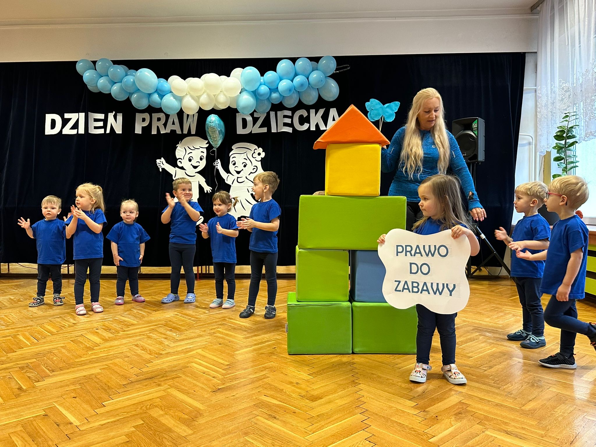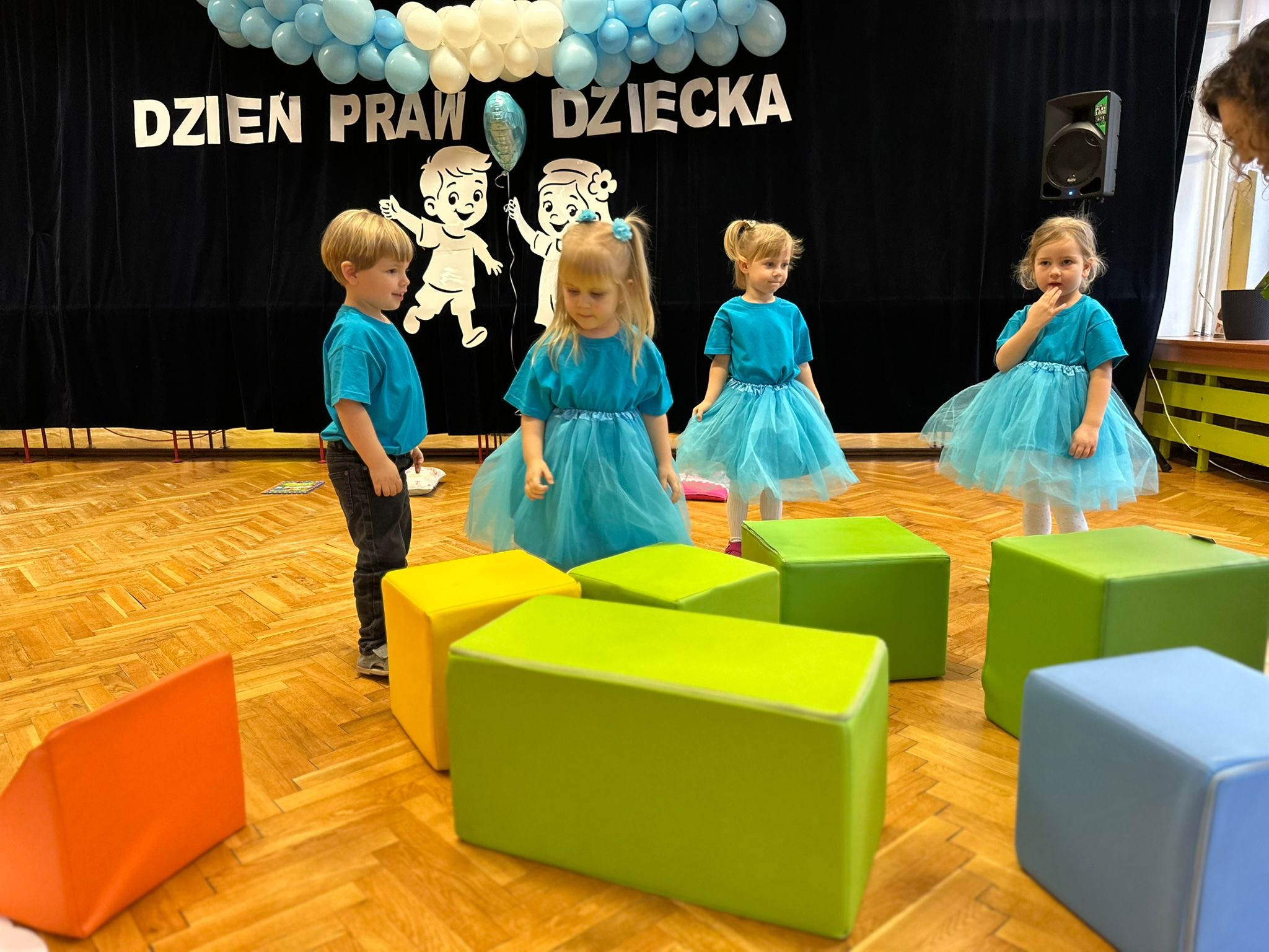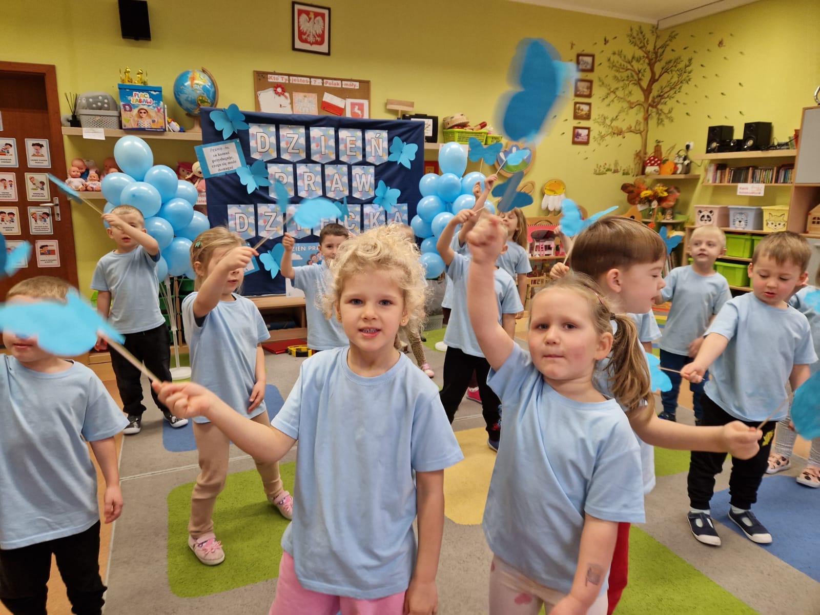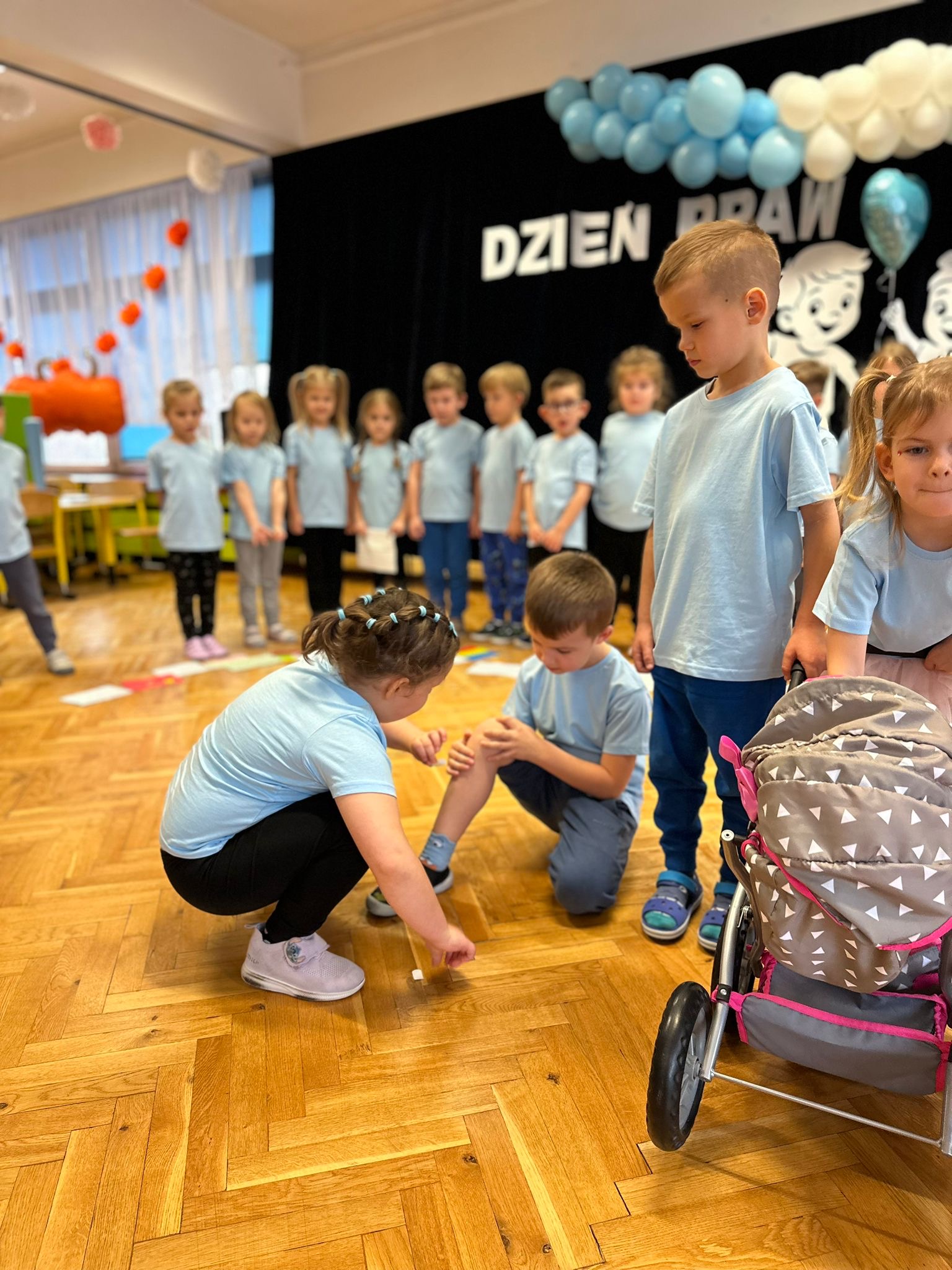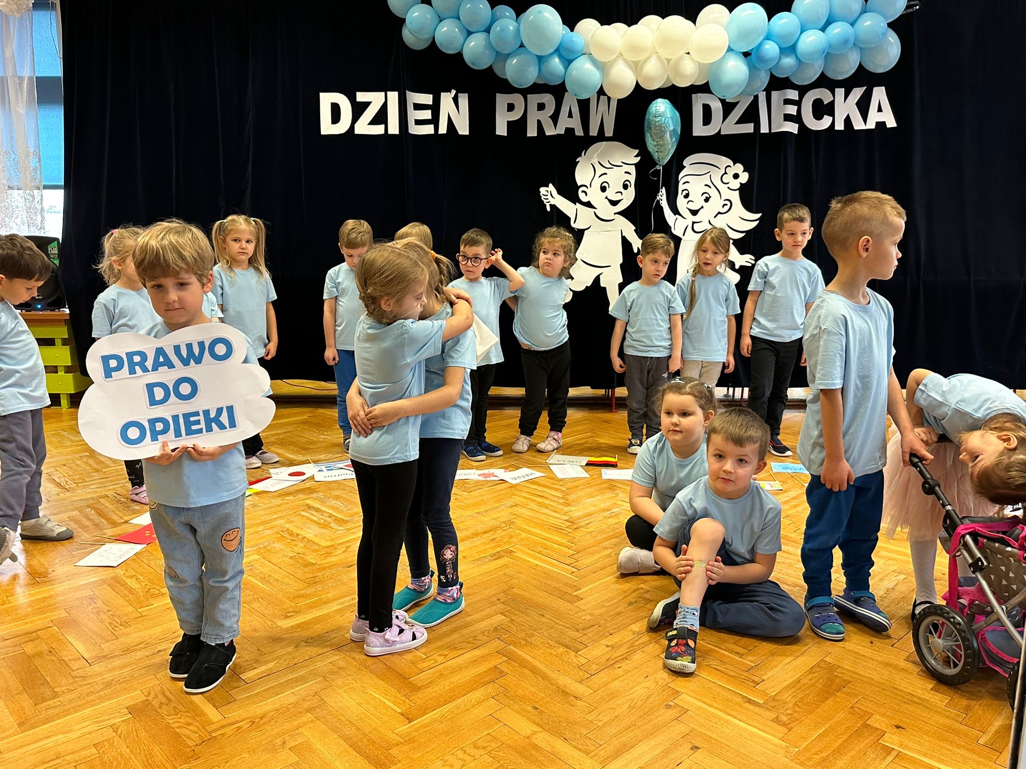 Tego dnia przedszkolaki ubrane były na niebiesko – kolor symbolizujący solidarność ze wszystkimi dziećmi na świecie, również tymi, których prawa wciąż są naruszane. Wraz z wychowawcami uczestniczyły w przedstawieniu pantomimicznym, które miało na celu przypomnienie i utrwalenie zasad dotyczących praw dziecka. Na zakończenie występu dzieci zaśpiewały piosenkę „Prawa dzieci”. Część podjęła prace w grupie, tworząc plakaty i organizując zabawy zgodnie z tematem.