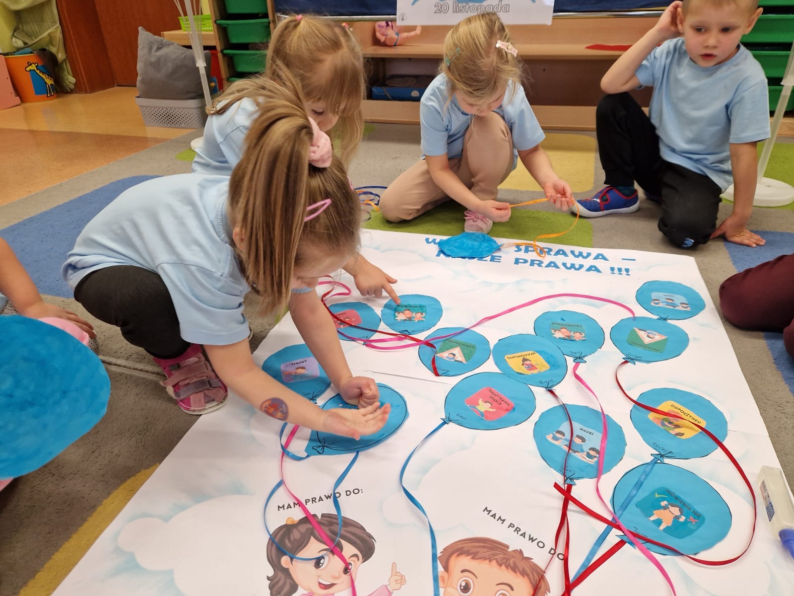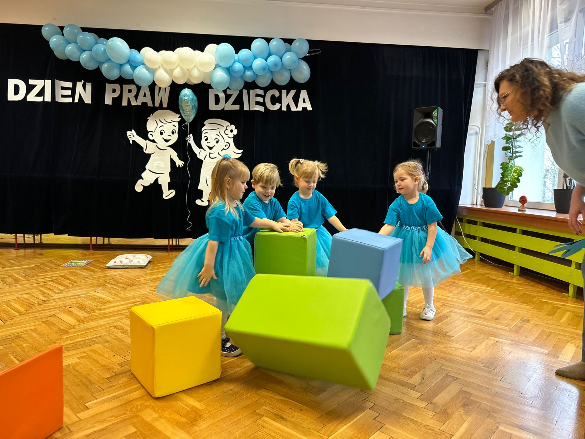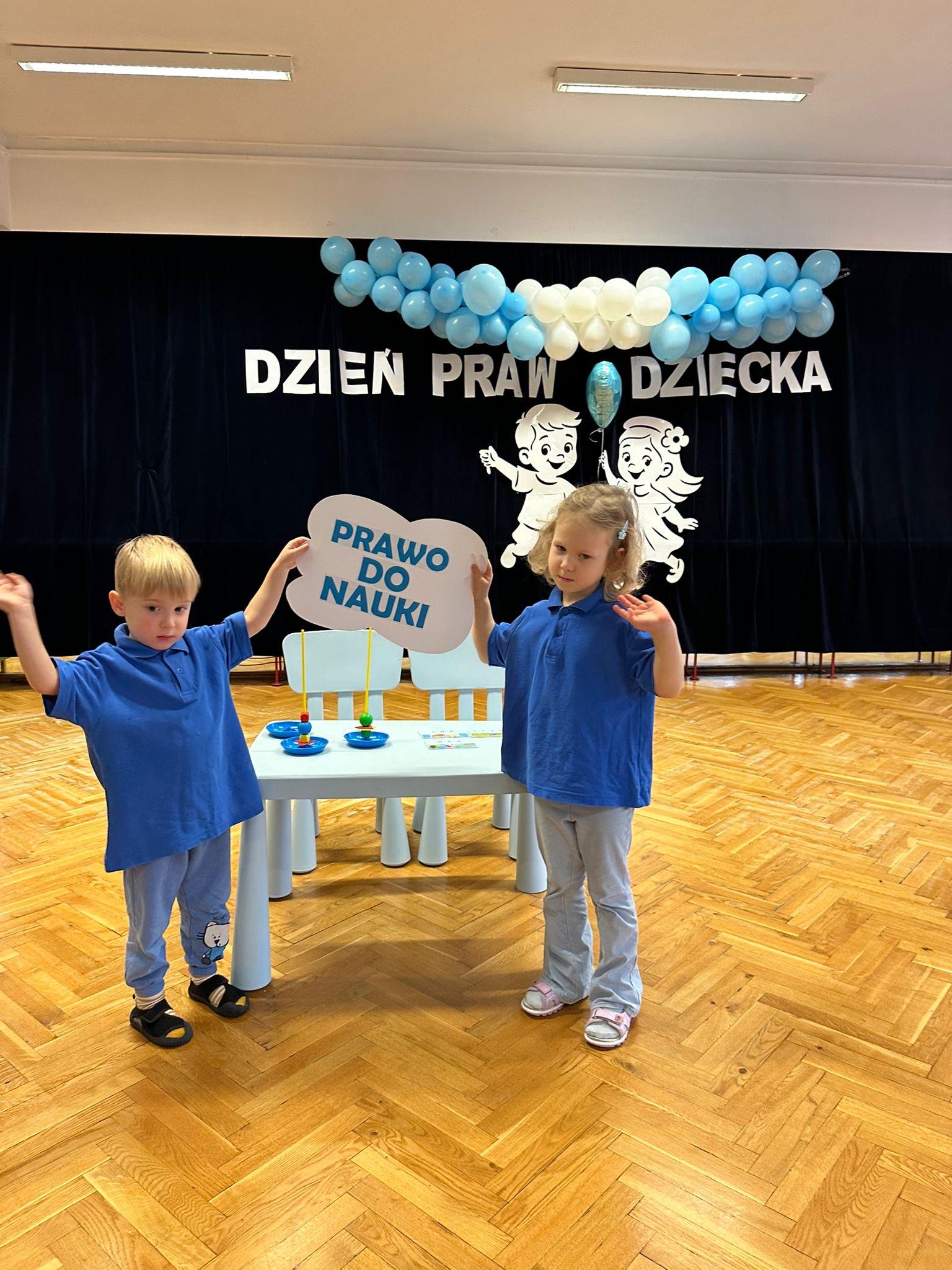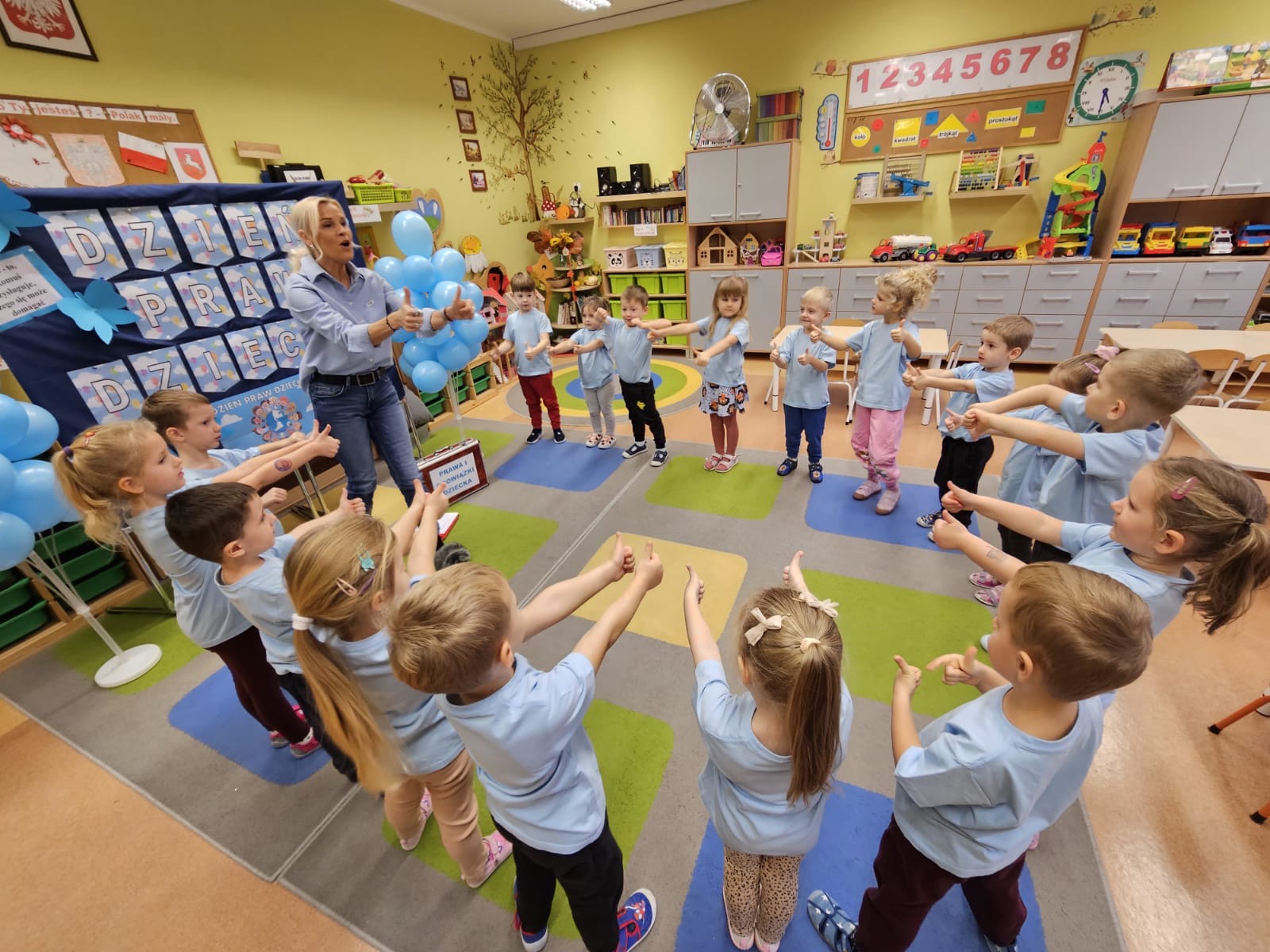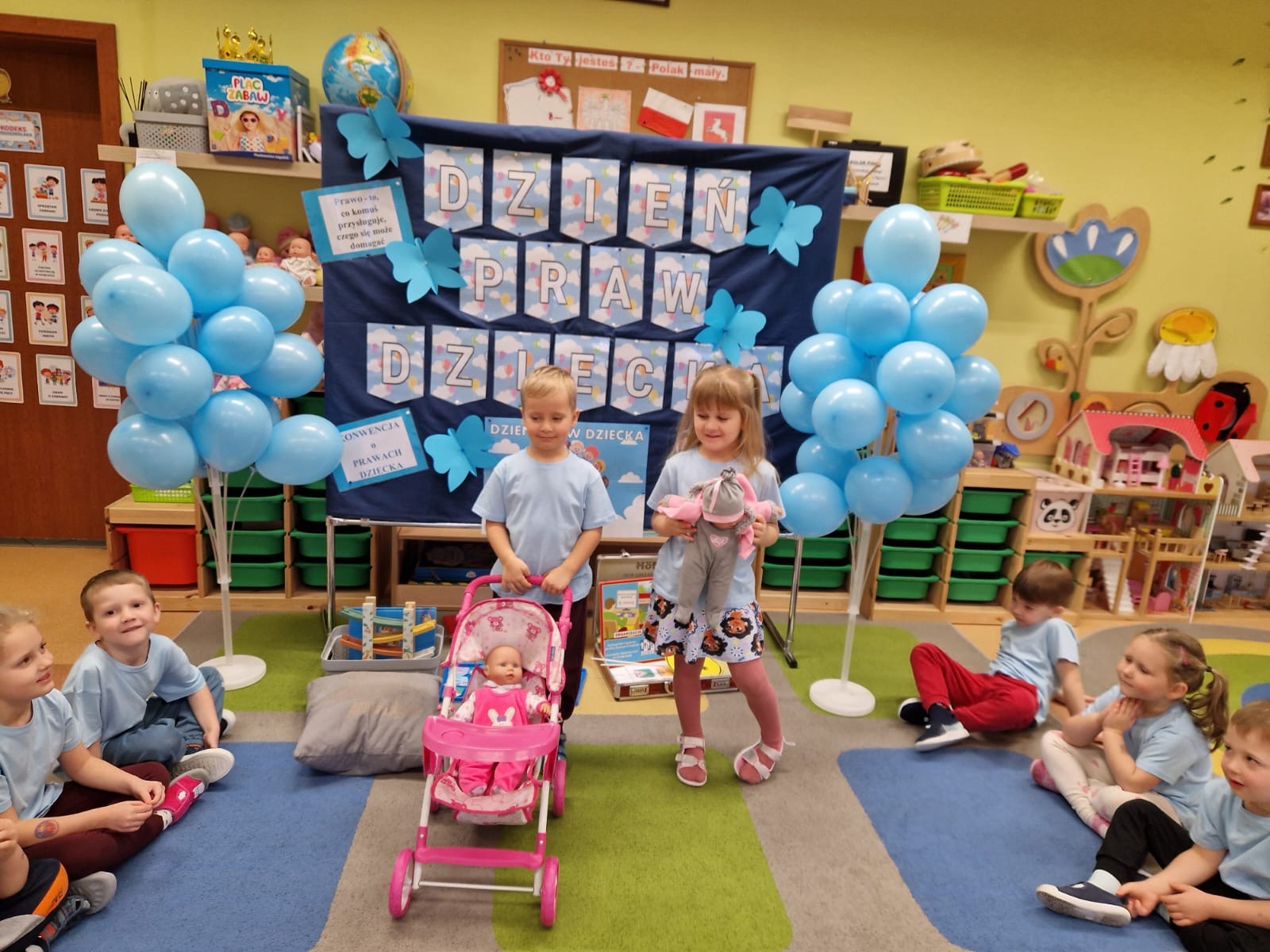 Tego dnia przedszkolaki ubrane były na niebiesko – kolor symbolizujący solidarność ze wszystkimi dziećmi na świecie, również tymi, których prawa wciąż są naruszane. Wraz z wychowawcami uczestniczyły w przedstawieniu pantomimicznym, które miało na celu przypomnienie i utrwalenie zasad dotyczących praw dziecka. Na zakończenie występu dzieci zaśpiewały piosenkę „Prawa dzieci”. Część podjęła prace w grupie, tworząc plakaty i organizując zabawy zgodnie z tematem.