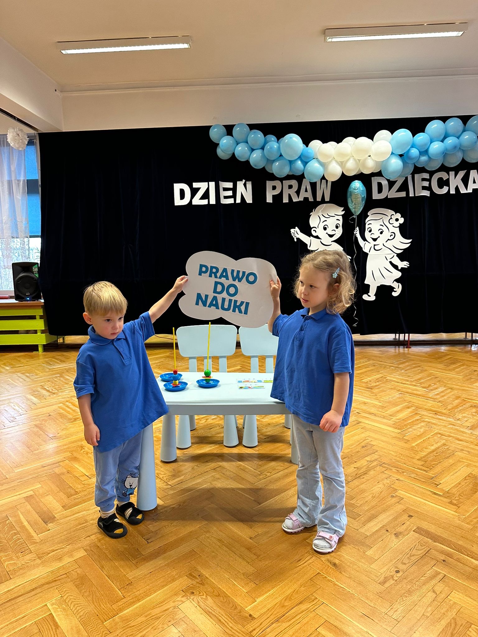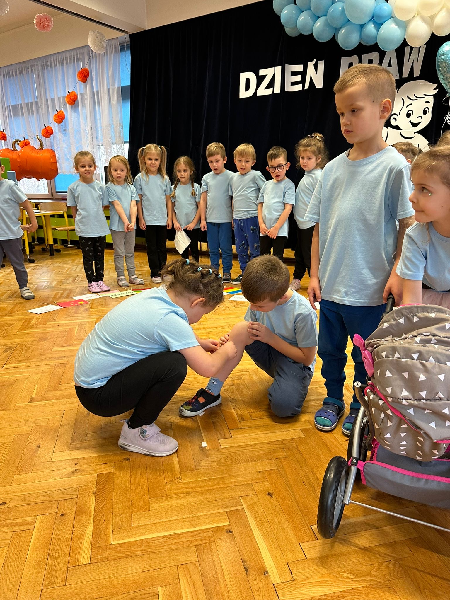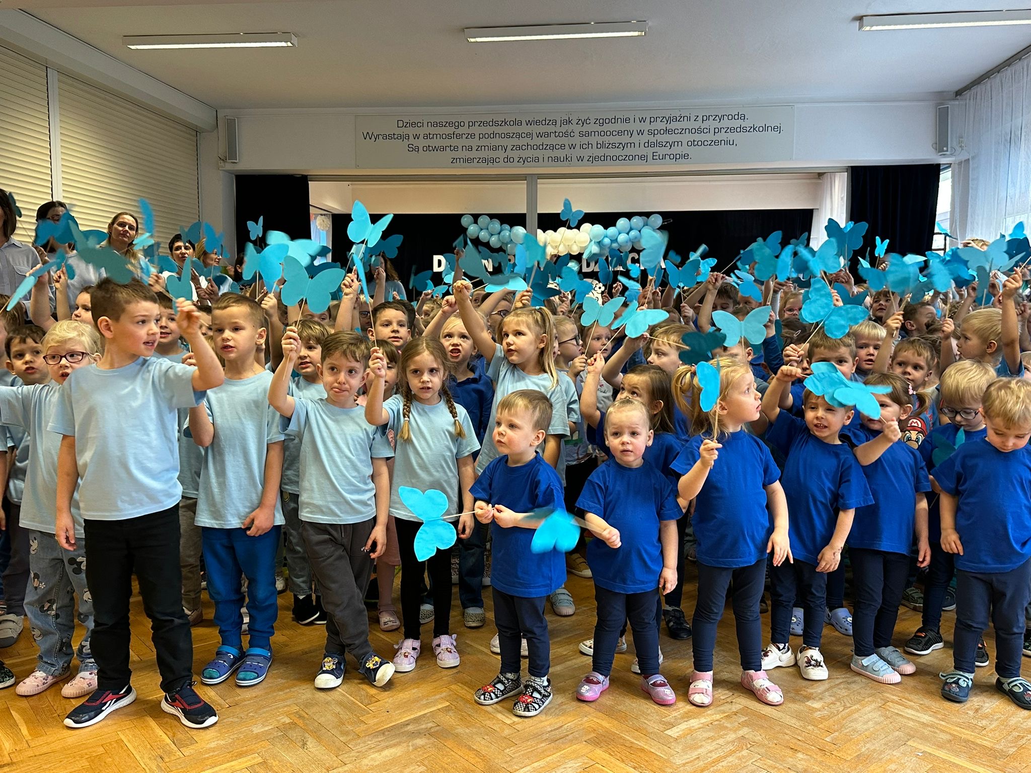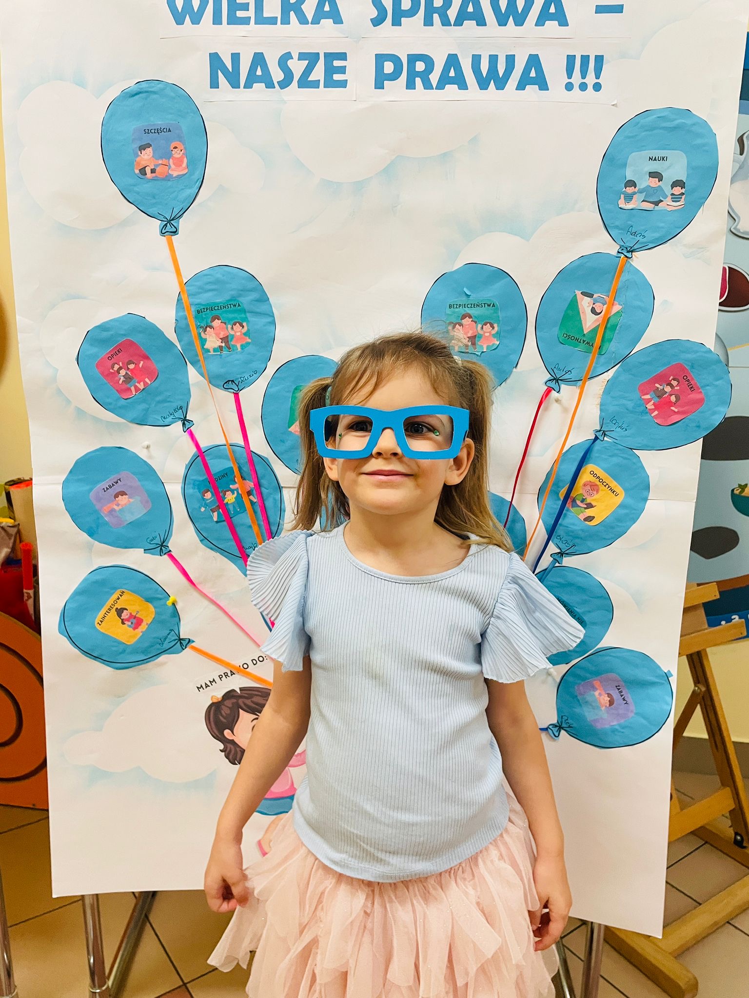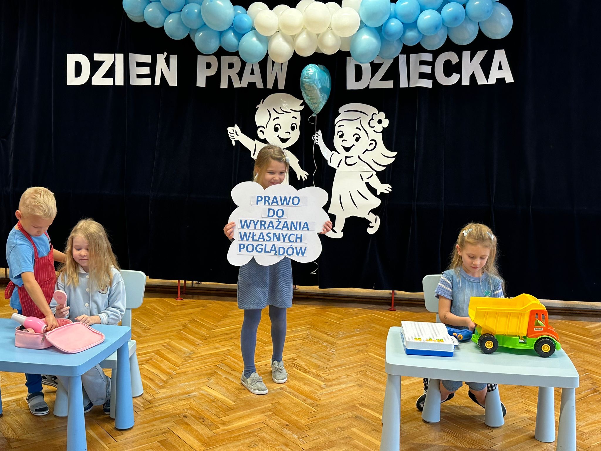 Tego dnia przedszkolaki ubrane były na niebiesko – kolor symbolizujący solidarność ze wszystkimi dziećmi na świecie, również tymi, których prawa wciąż są naruszane. Wraz z wychowawcami uczestniczyły w przedstawieniu pantomimicznym, które miało na celu przypomnienie i utrwalenie zasad dotyczących praw dziecka. Na zakończenie występu dzieci zaśpiewały piosenkę „Prawa dzieci”. Część podjęła prace w grupie, tworząc plakaty i organizując zabawy zgodnie z tematem.