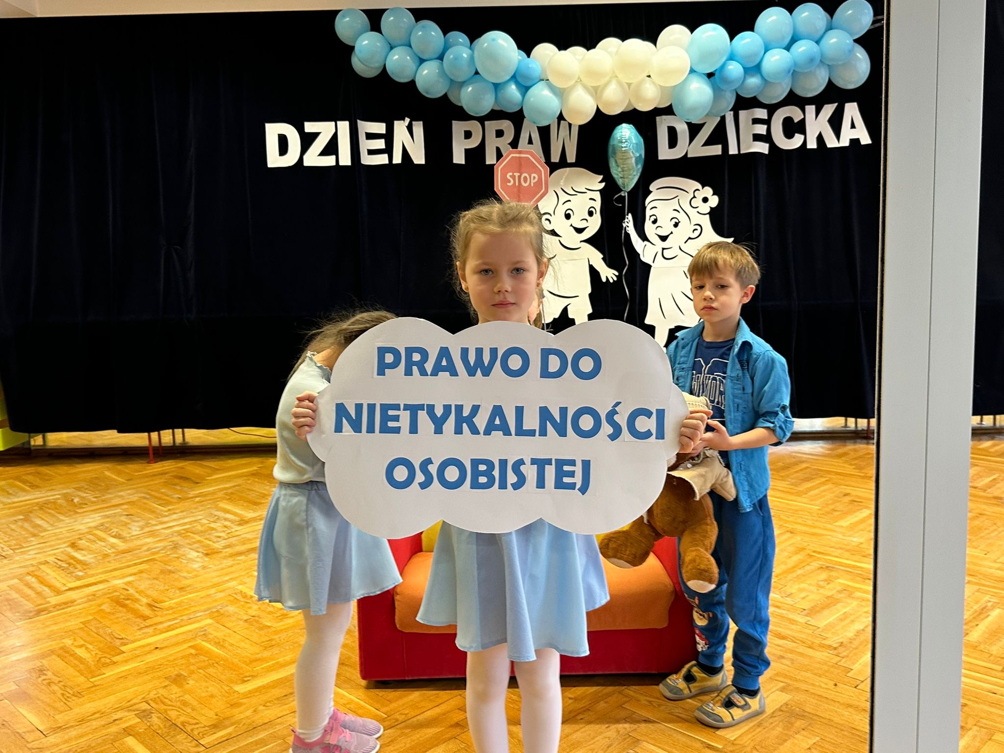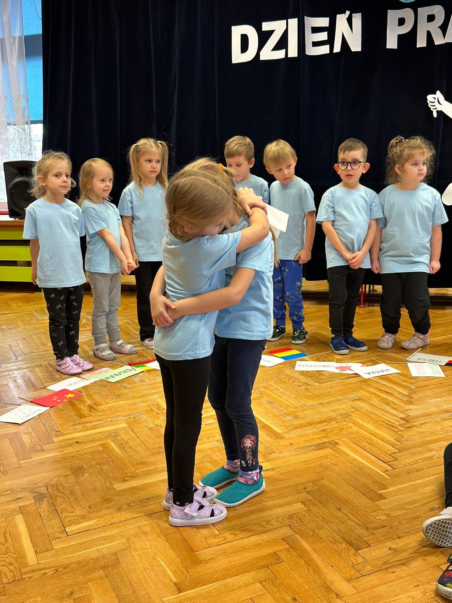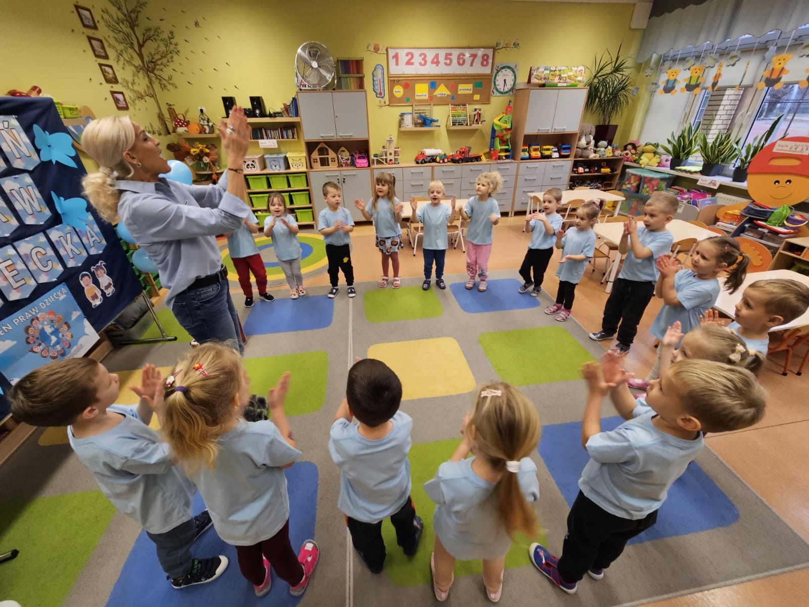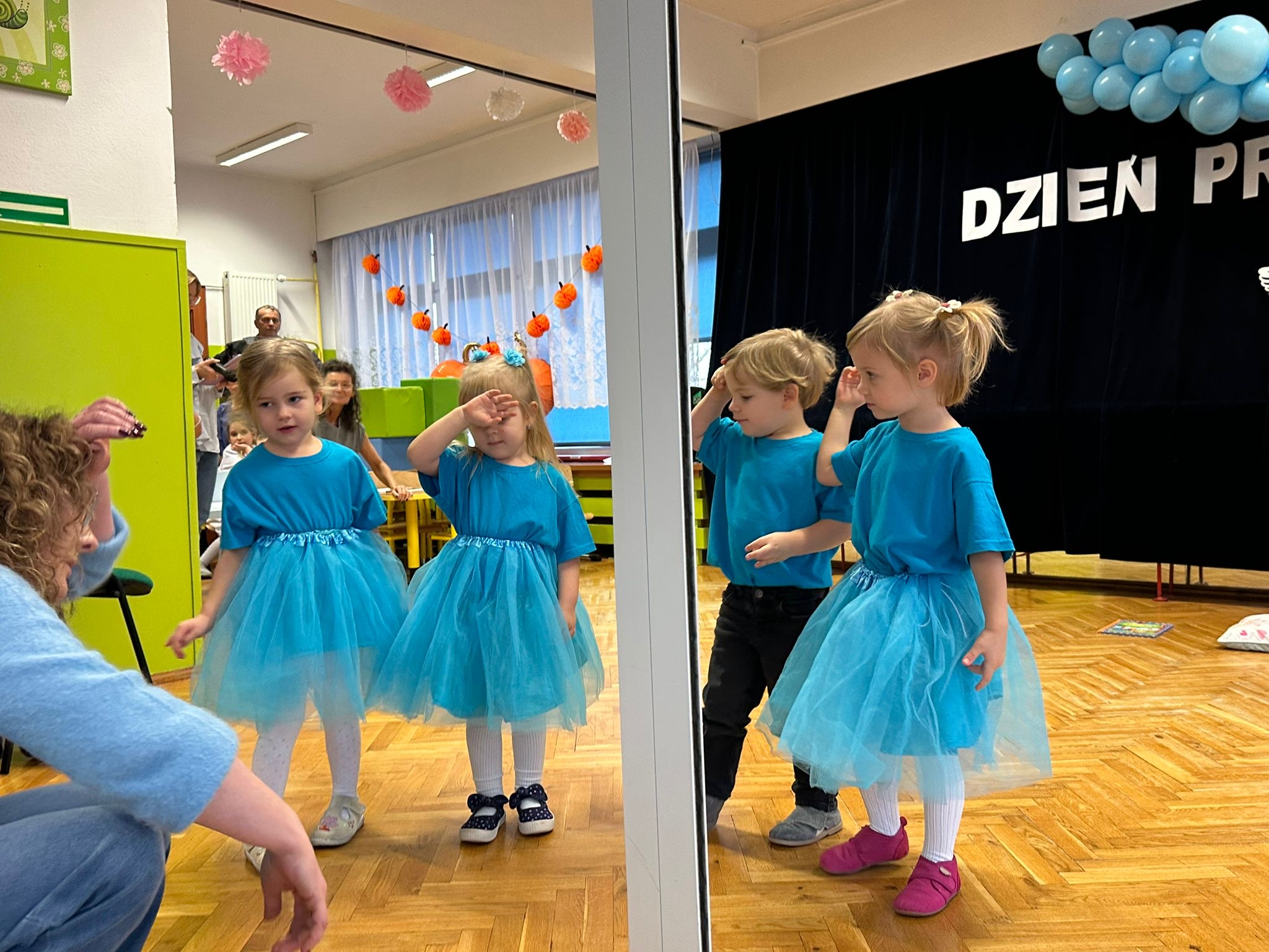 Tego dnia przedszkolaki ubrane były na niebiesko – kolor symbolizujący solidarność ze wszystkimi dziećmi na świecie, również tymi, których prawa wciąż są naruszane. Wraz z wychowawcami uczestniczyły w przedstawieniu pantomimicznym, które miało na celu przypomnienie i utrwalenie zasad dotyczących praw dziecka. Na zakończenie występu dzieci zaśpiewały piosenkę „Prawa dzieci”. Część podjęła prace w grupie, tworząc plakaty i organizując zabawy zgodnie z tematem.
