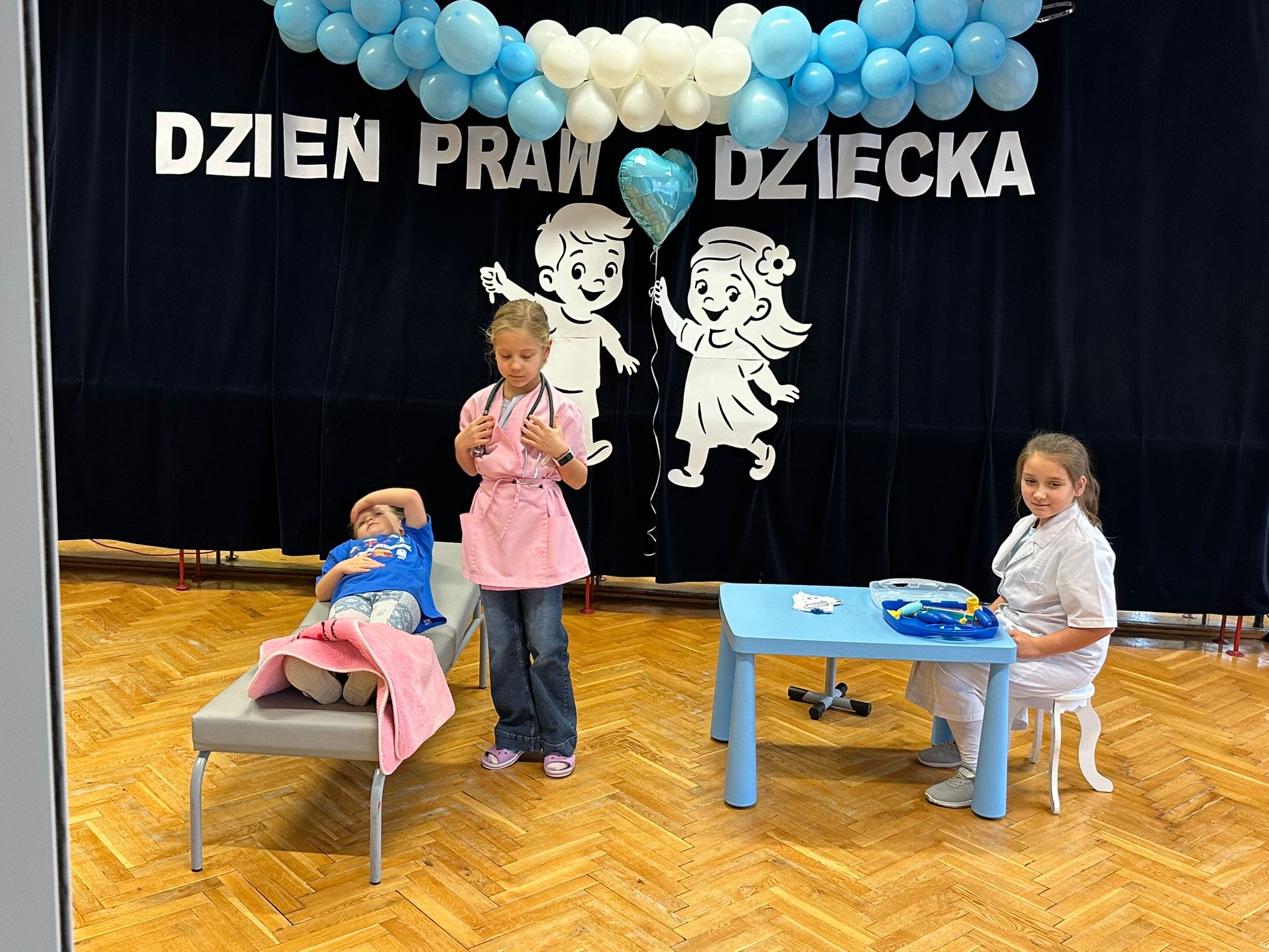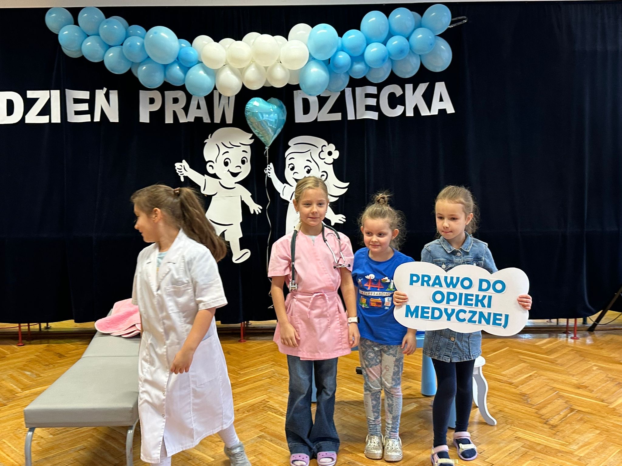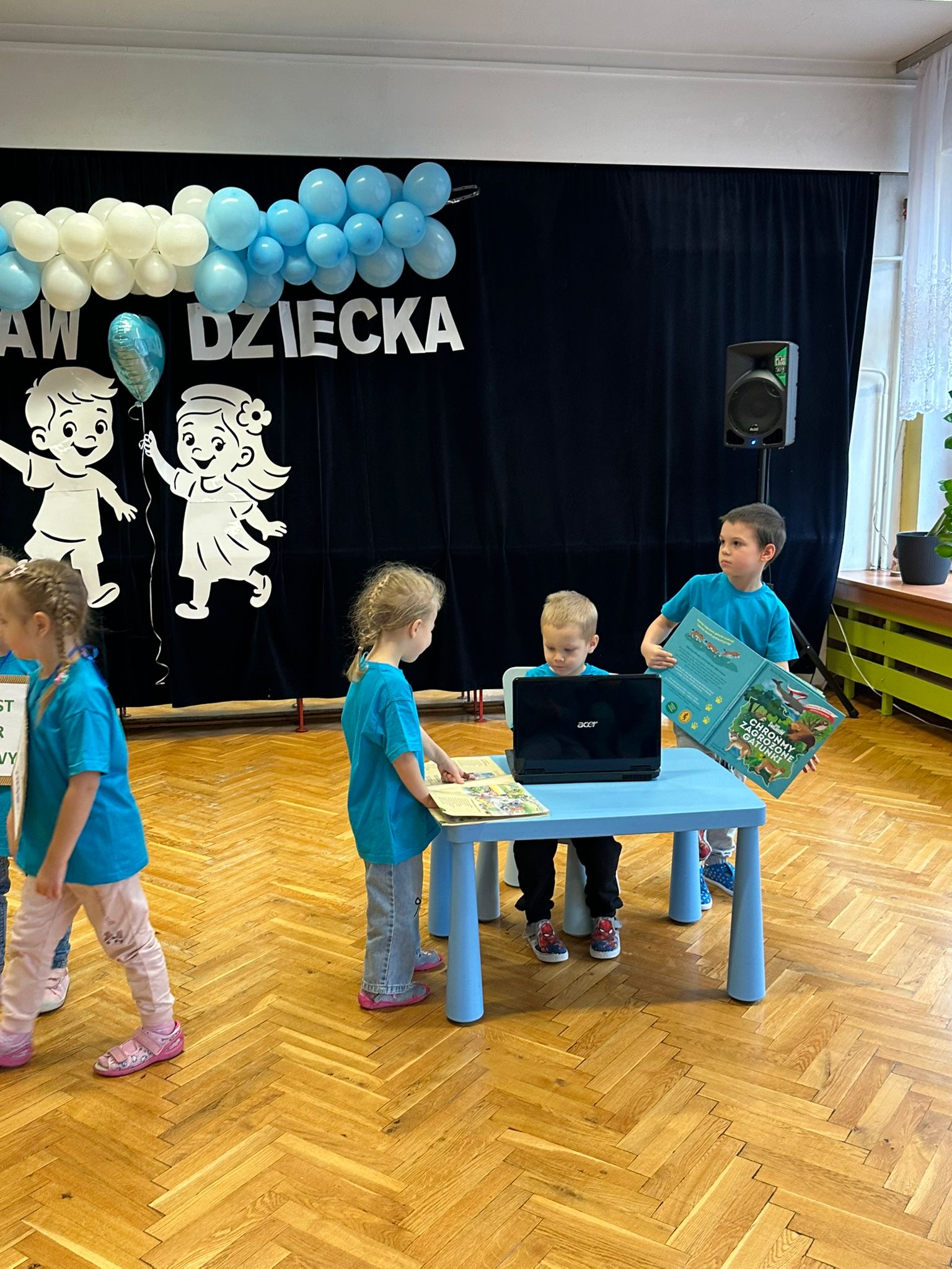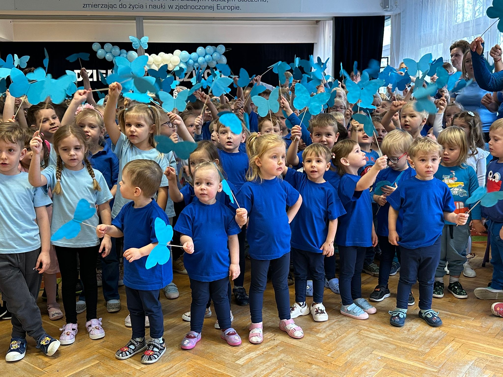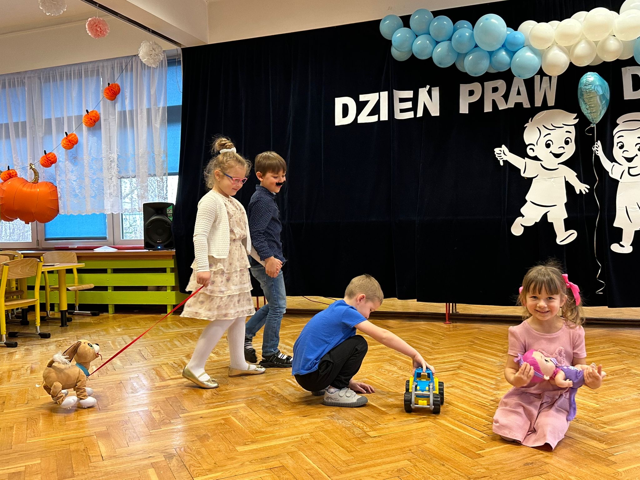 Tego dnia przedszkolaki ubrane były na niebiesko – kolor symbolizujący solidarność ze wszystkimi dziećmi na świecie, również tymi, których prawa wciąż są naruszane. Wraz z wychowawcami uczestniczyły w przedstawieniu pantomimicznym, które miało na celu przypomnienie i utrwalenie zasad dotyczących praw dziecka. Na zakończenie występu dzieci zaśpiewały piosenkę „Prawa dzieci”. Część podjęła prace w grupie, tworząc plakaty i organizując zabawy zgodnie z tematem.