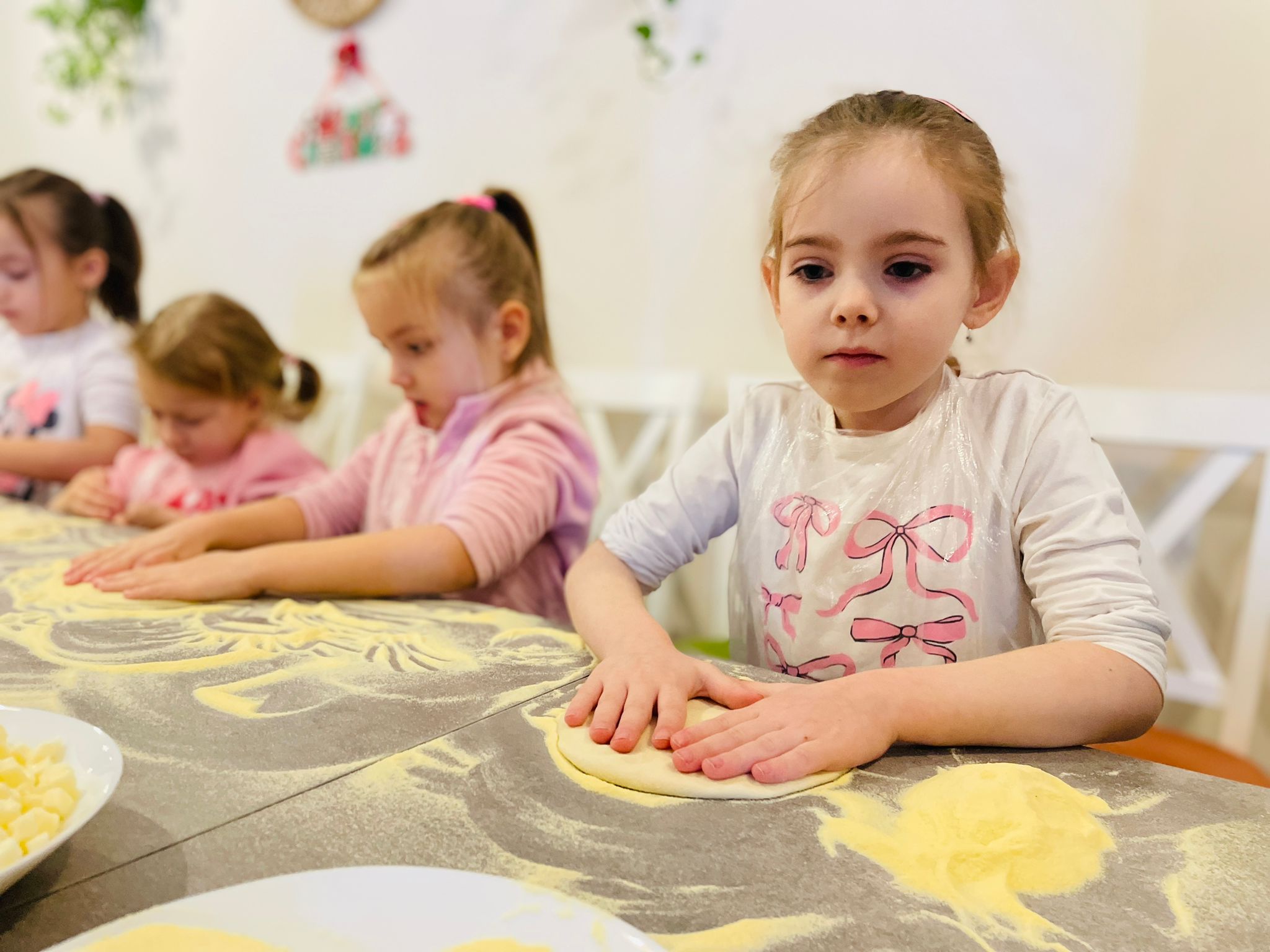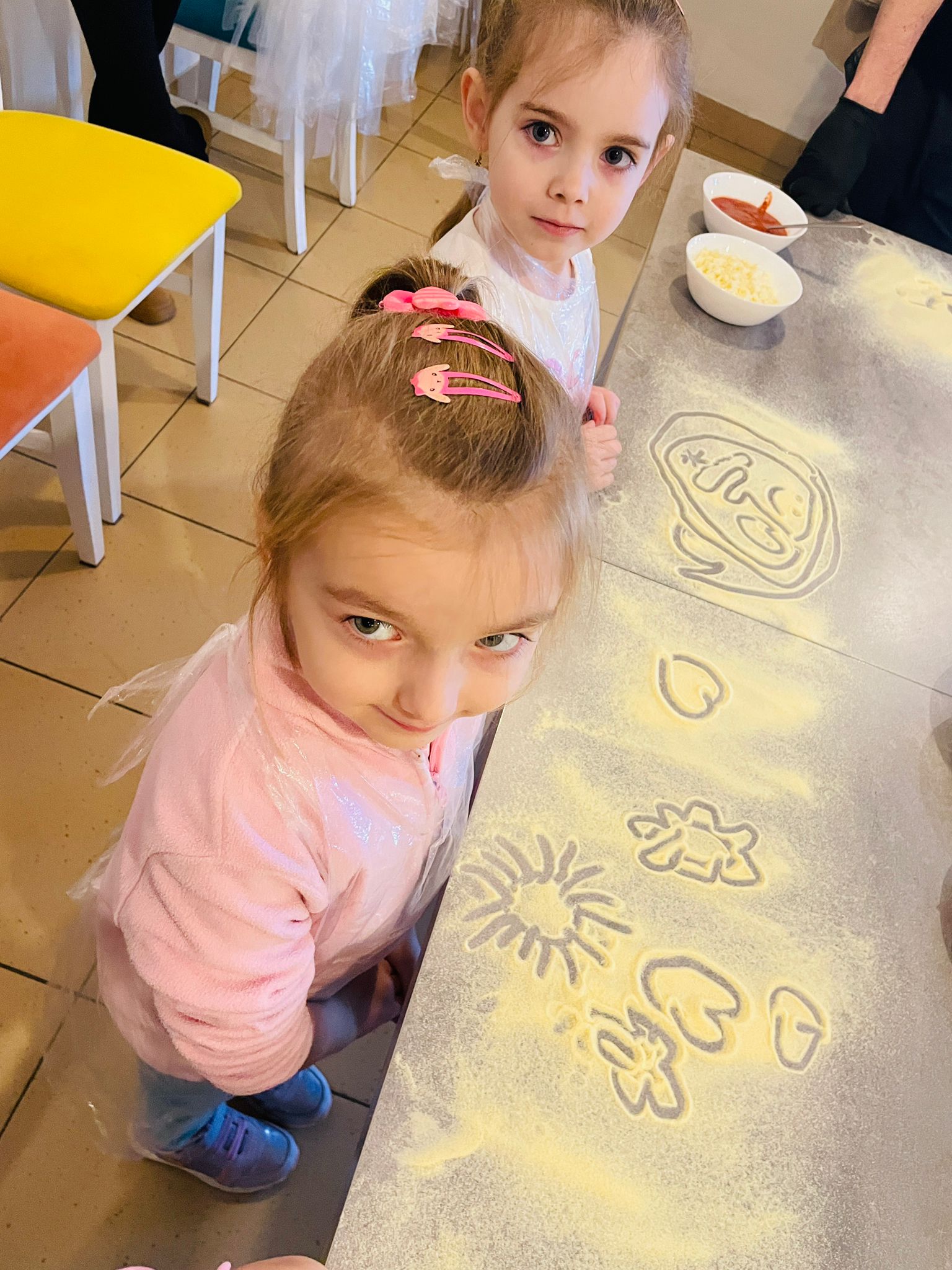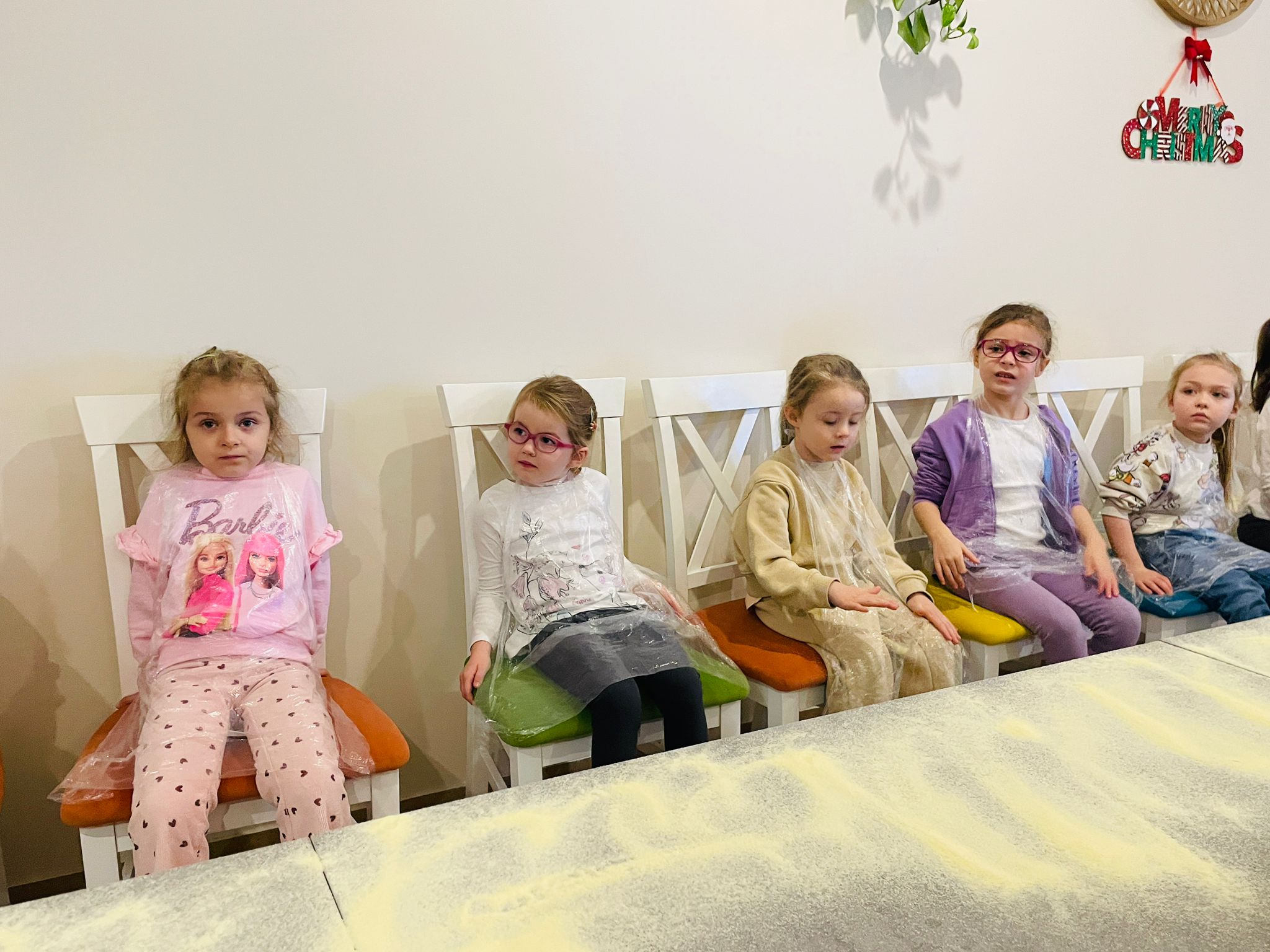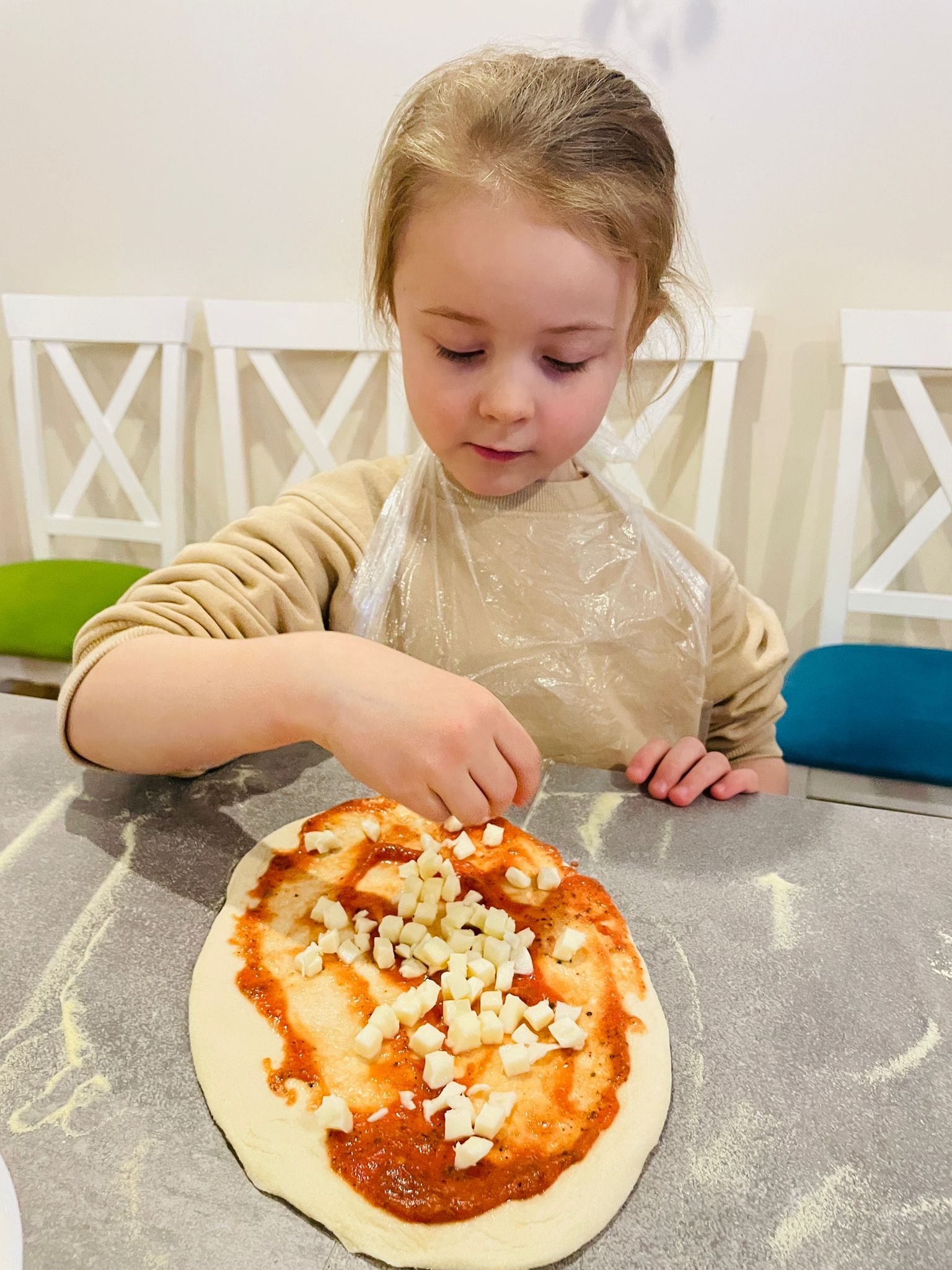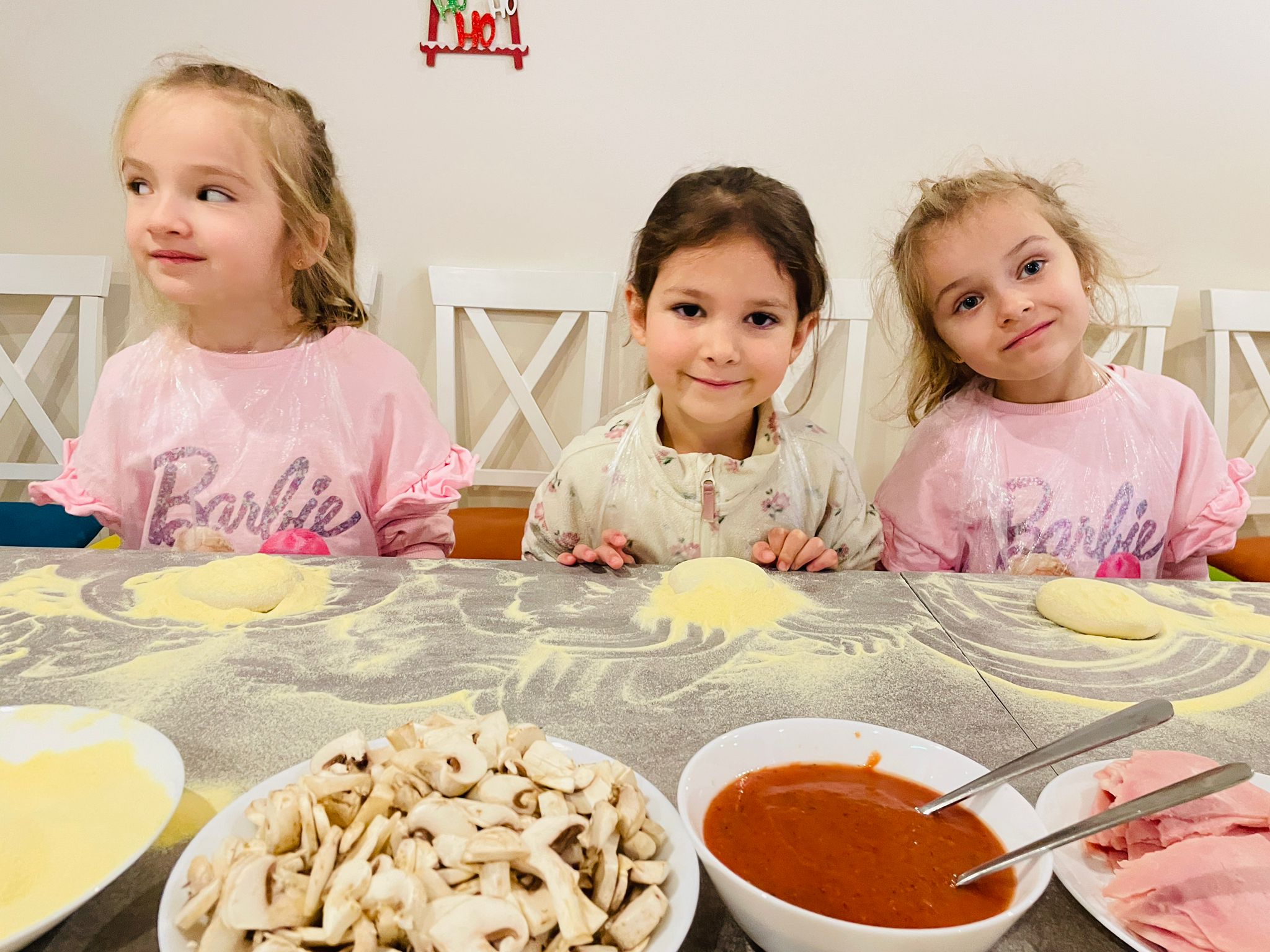 Kolejne kulinarne przygody za nami. Przedszkolaki z gr. XI miały okazję uczestniczyć w warsztatach z robienia pizzy organizowanych w pobliskiej Restauracji "Osiedlowa". Na początku szefowa kuchni- p. Ania, przybliżyła dzieciom historię pizzy. Następnie do akcji wkroczył p. Oliwer- pizzerman, który pokazał dzieciom, jak przejść do części praktycznej. Chłopcy i dziewczynki samodzielnie sypali mąkę, wyrabiali ciasto, a na koniec dodawali ulubione smakołyki. Po wypieczeniu pizzy w specjalnym piecu przyszedł czas na pałaszowanie. Dzieci pracowały z niezwykłym zaangażowaniem, a czekając na wypiek zaśpiewały pracownikom restauracji świąteczną piosenkę. To był niezwykle miły czas.