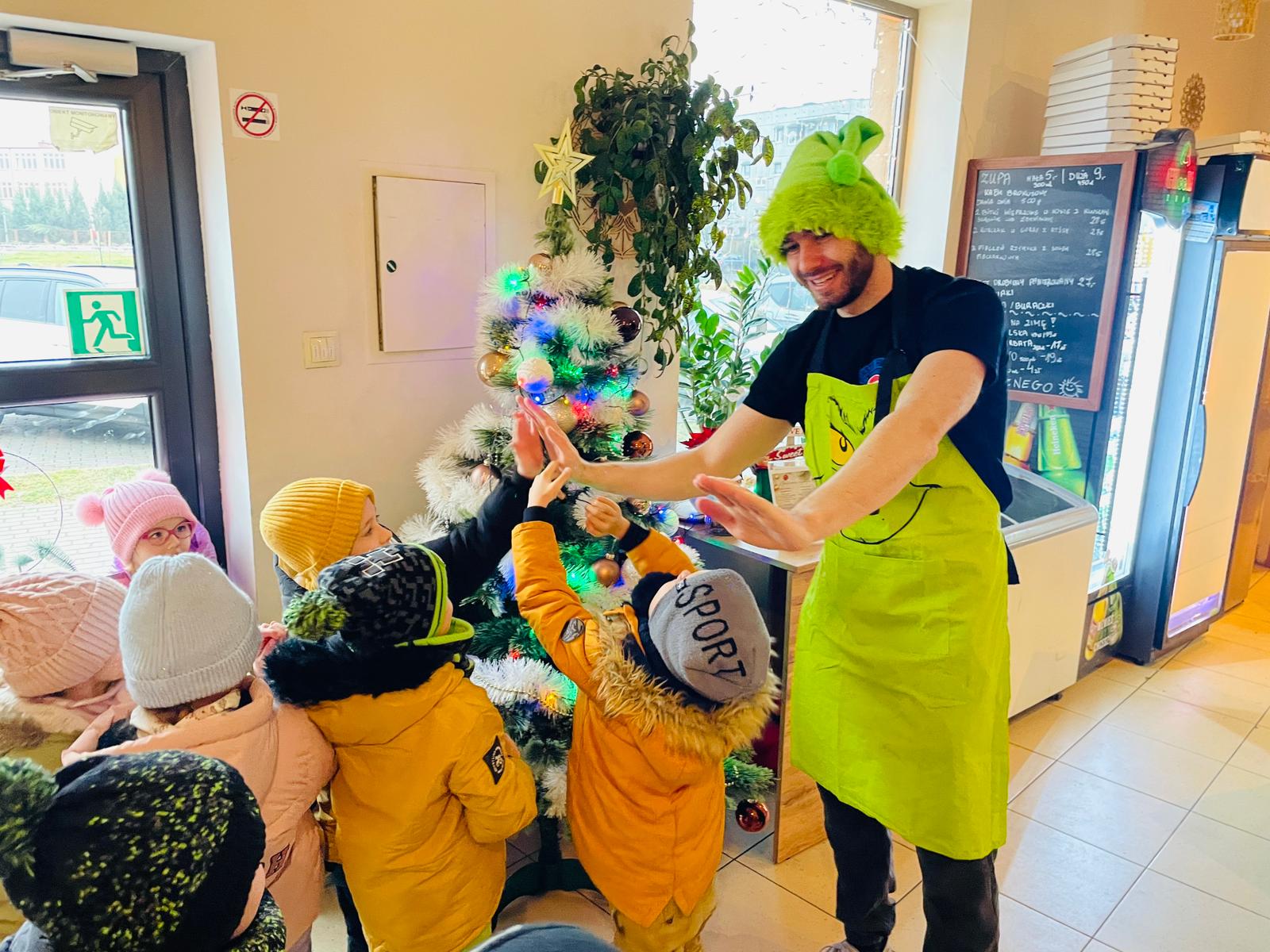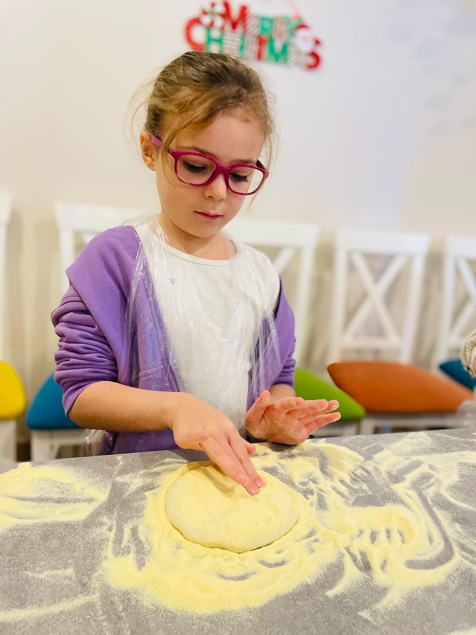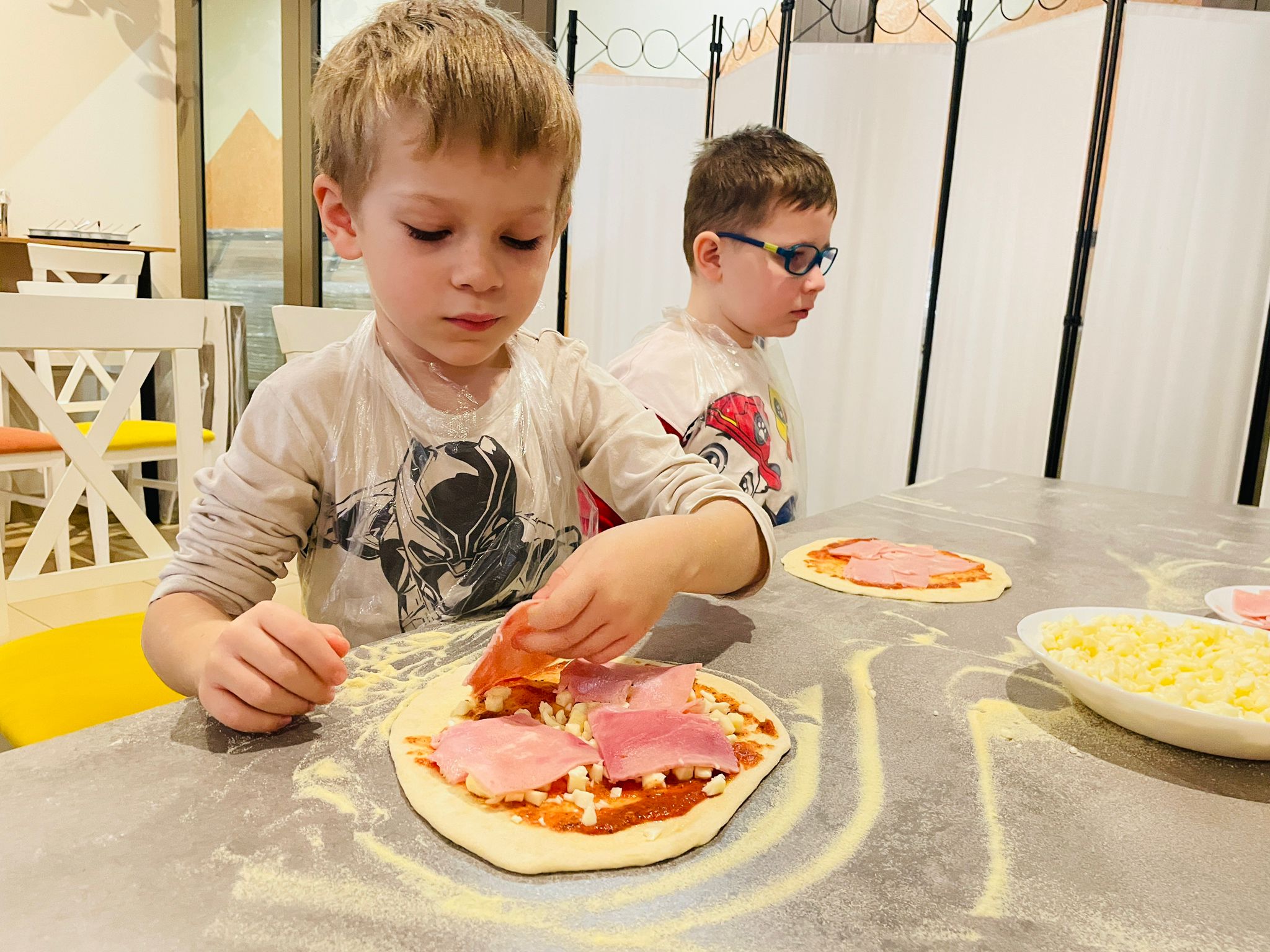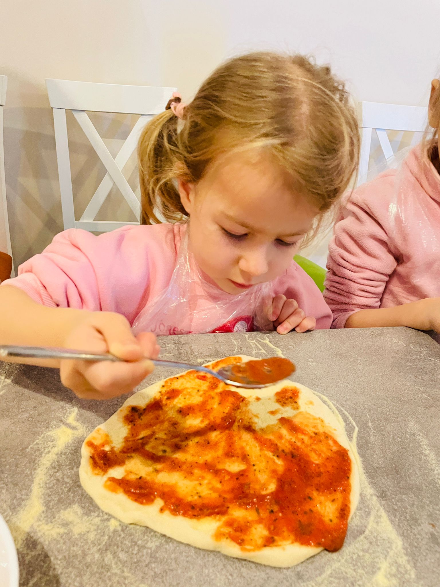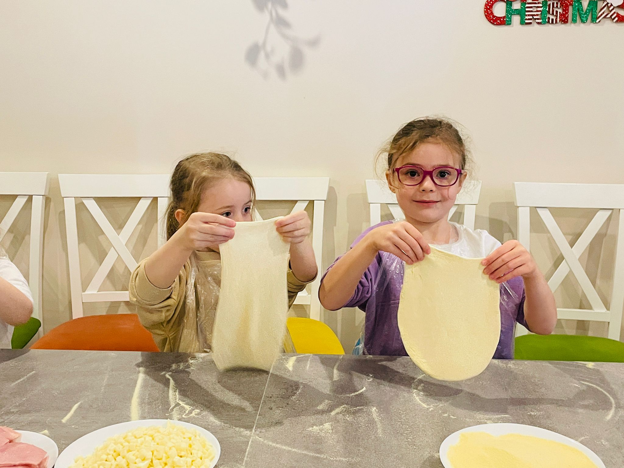 Kolejne kulinarne przygody za nami. Przedszkolaki z gr. XI miały okazję uczestniczyć w warsztatach z robienia pizzy organizowanych w pobliskiej Restauracji "Osiedlowa". Na początku szefowa kuchni- p. Ania, przybliżyła dzieciom historię pizzy. Następnie do akcji wkroczył p. Oliwer- pizzerman, który pokazał dzieciom, jak przejść do części praktycznej. Chłopcy i dziewczynki samodzielnie sypali mąkę, wyrabiali ciasto, a na koniec dodawali ulubione smakołyki. Po wypieczeniu pizzy w specjalnym piecu przyszedł czas na pałaszowanie. Dzieci pracowały z niezwykłym zaangażowaniem, a czekając na wypiek zaśpiewały pracownikom restauracji świąteczną piosenkę. To był niezwykle miły czas.