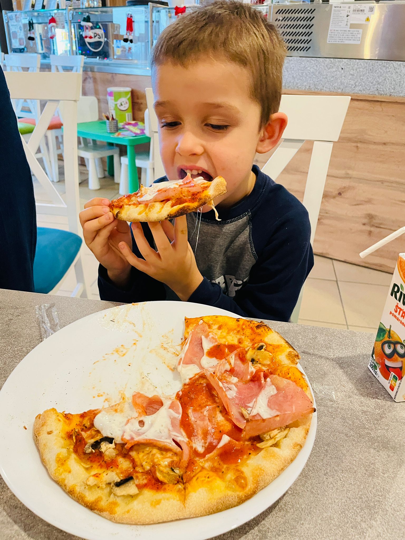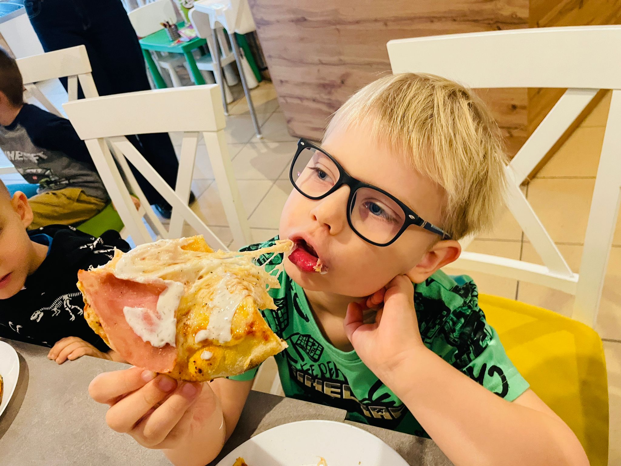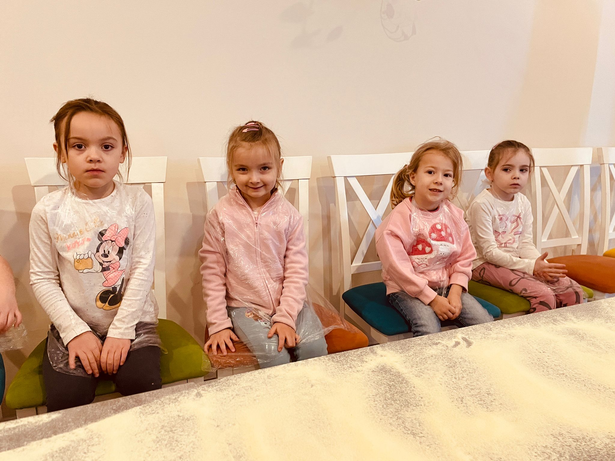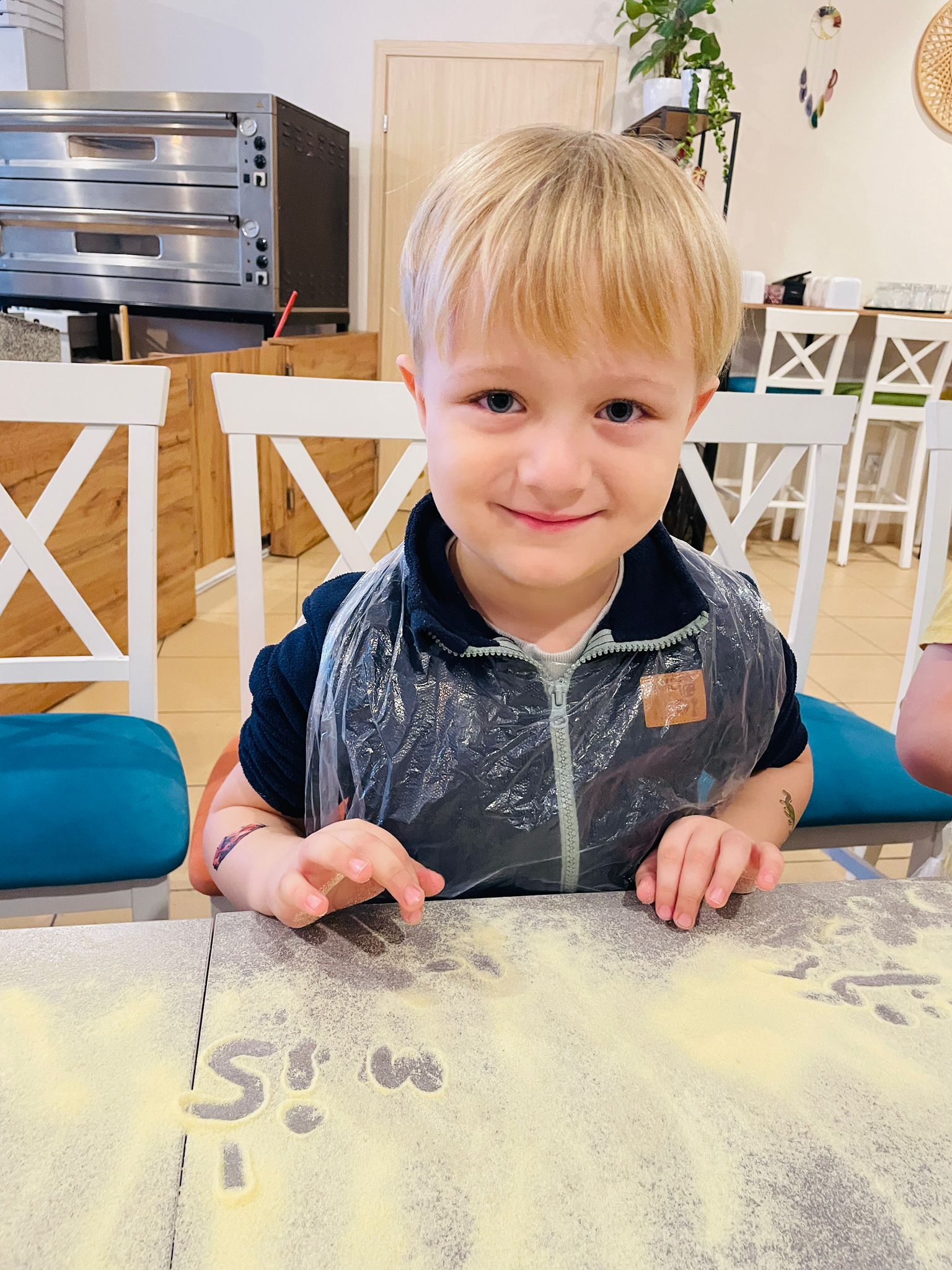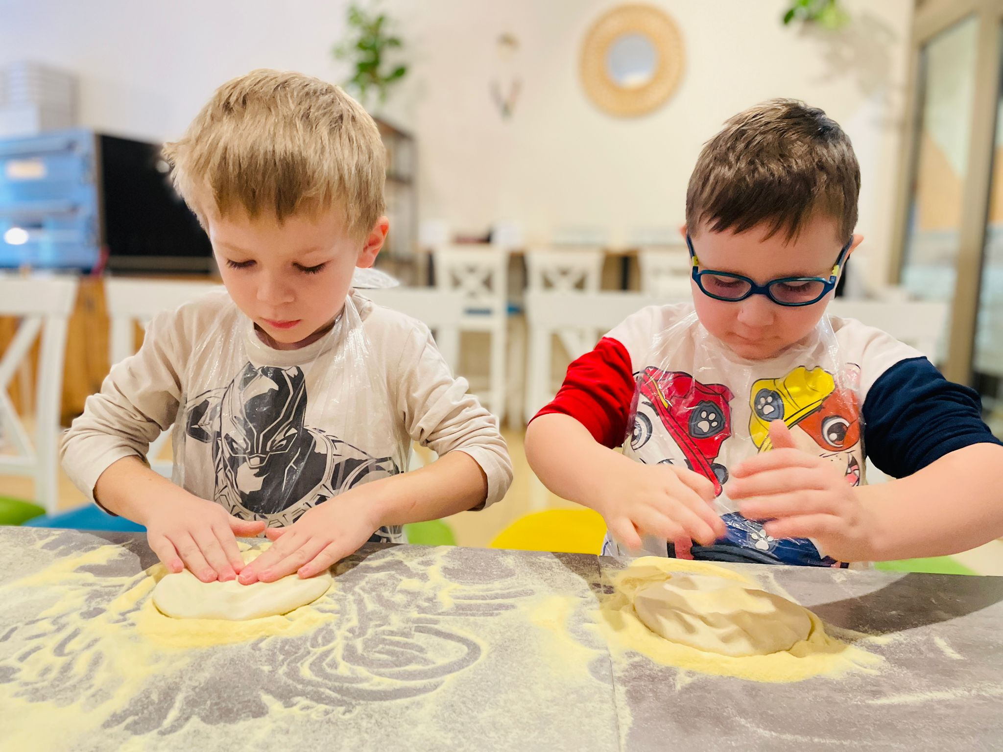Kolejne kulinarne przygody za nami. Przedszkolaki z gr. XI miały okazję uczestniczyć w warsztatach z robienia pizzy organizowanych w pobliskiej Restauracji "Osiedlowa". Na początku szefowa kuchni- p. Ania, przybliżyła dzieciom historię pizzy. Następnie do akcji wkroczył p. Oliwer- pizzerman, który pokazał dzieciom, jak przejść do części praktycznej. Chłopcy i dziewczynki samodzielnie sypali mąkę, wyrabiali ciasto, a na koniec dodawali ulubione smakołyki. Po wypieczeniu pizzy w specjalnym piecu przyszedł czas na pałaszowanie. Dzieci pracowały z niezwykłym zaangażowaniem, a czekając na wypiek zaśpiewały pracownikom restauracji świąteczną piosenkę. To był niezwykle miły czas.