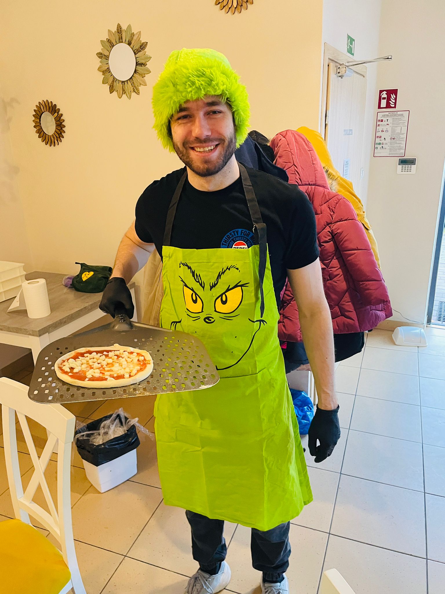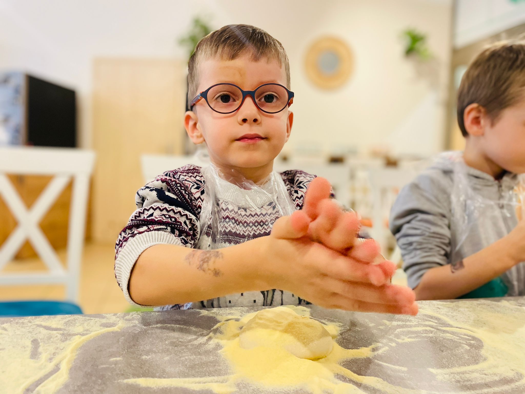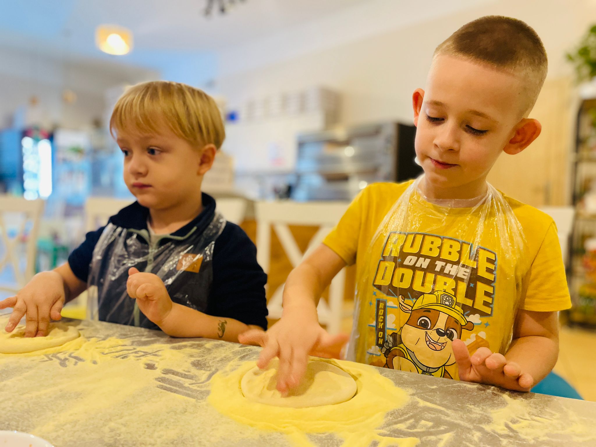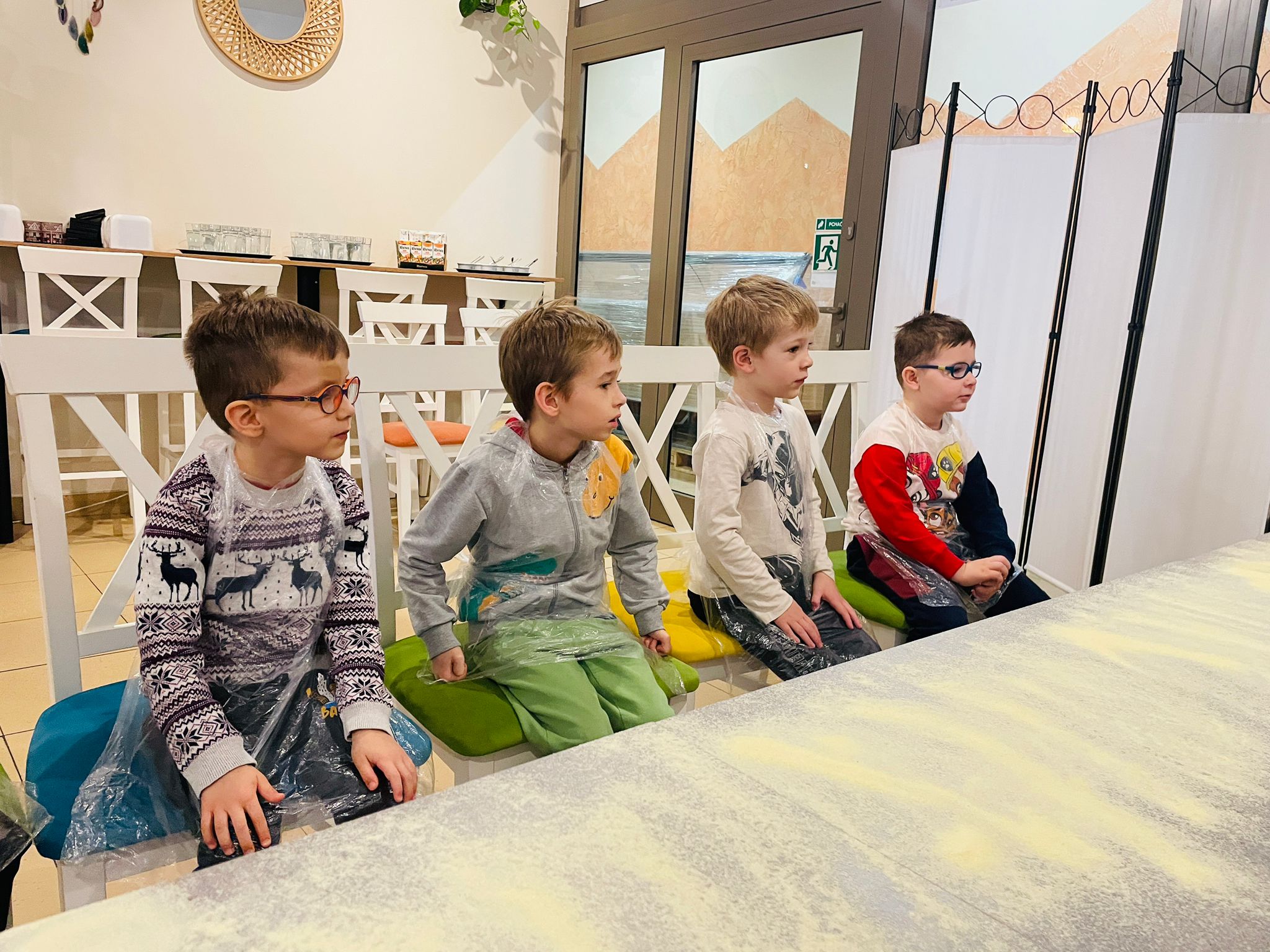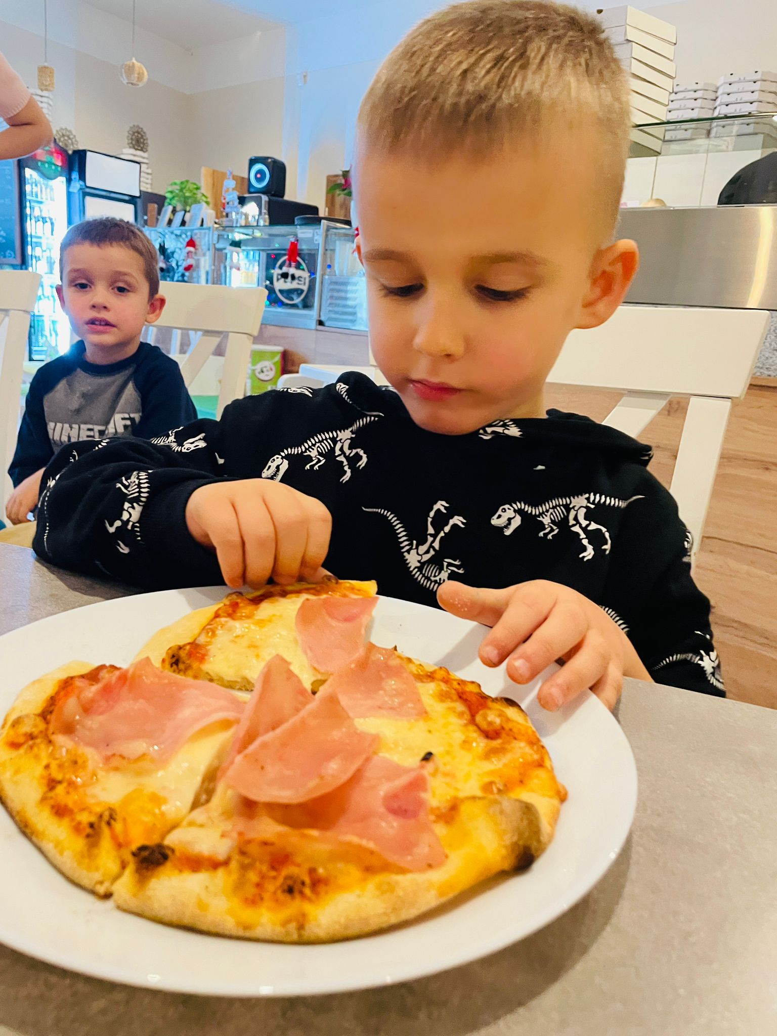 Kolejne kulinarne przygody za nami. Przedszkolaki z gr. XI miały okazję uczestniczyć w warsztatach z robienia pizzy organizowanych w pobliskiej Restauracji "Osiedlowa". Na początku szefowa kuchni- p. Ania, przybliżyła dzieciom historię pizzy. Następnie do akcji wkroczył p. Oliwer- pizzerman, który pokazał dzieciom, jak przejść do części praktycznej. Chłopcy i dziewczynki samodzielnie sypali mąkę, wyrabiali ciasto, a na koniec dodawali ulubione smakołyki. Po wypieczeniu pizzy w specjalnym piecu przyszedł czas na pałaszowanie. Dzieci pracowały z niezwykłym zaangażowaniem, a czekając na wypiek zaśpiewały pracownikom restauracji świąteczną piosenkę. To był niezwykle miły czas.