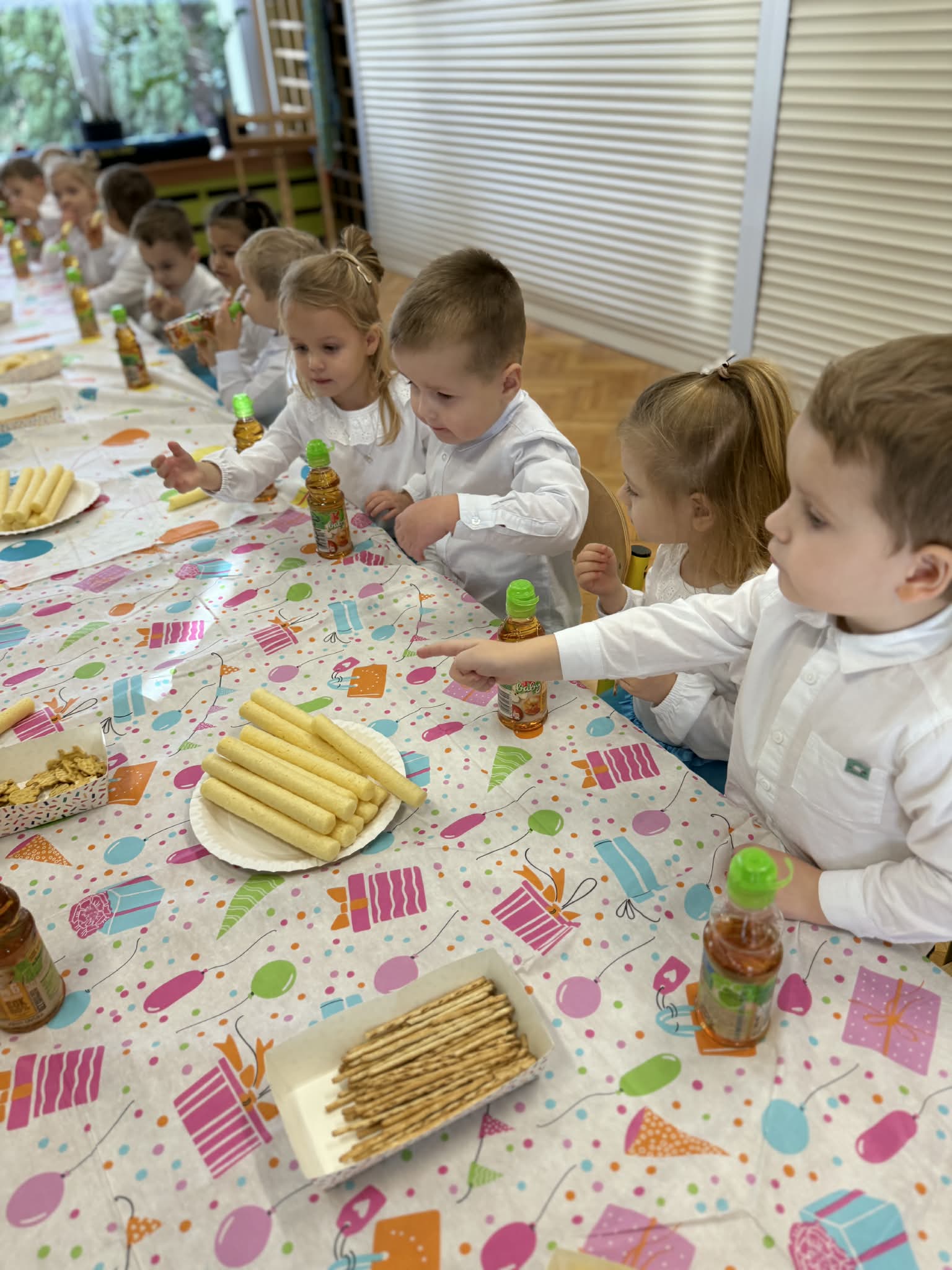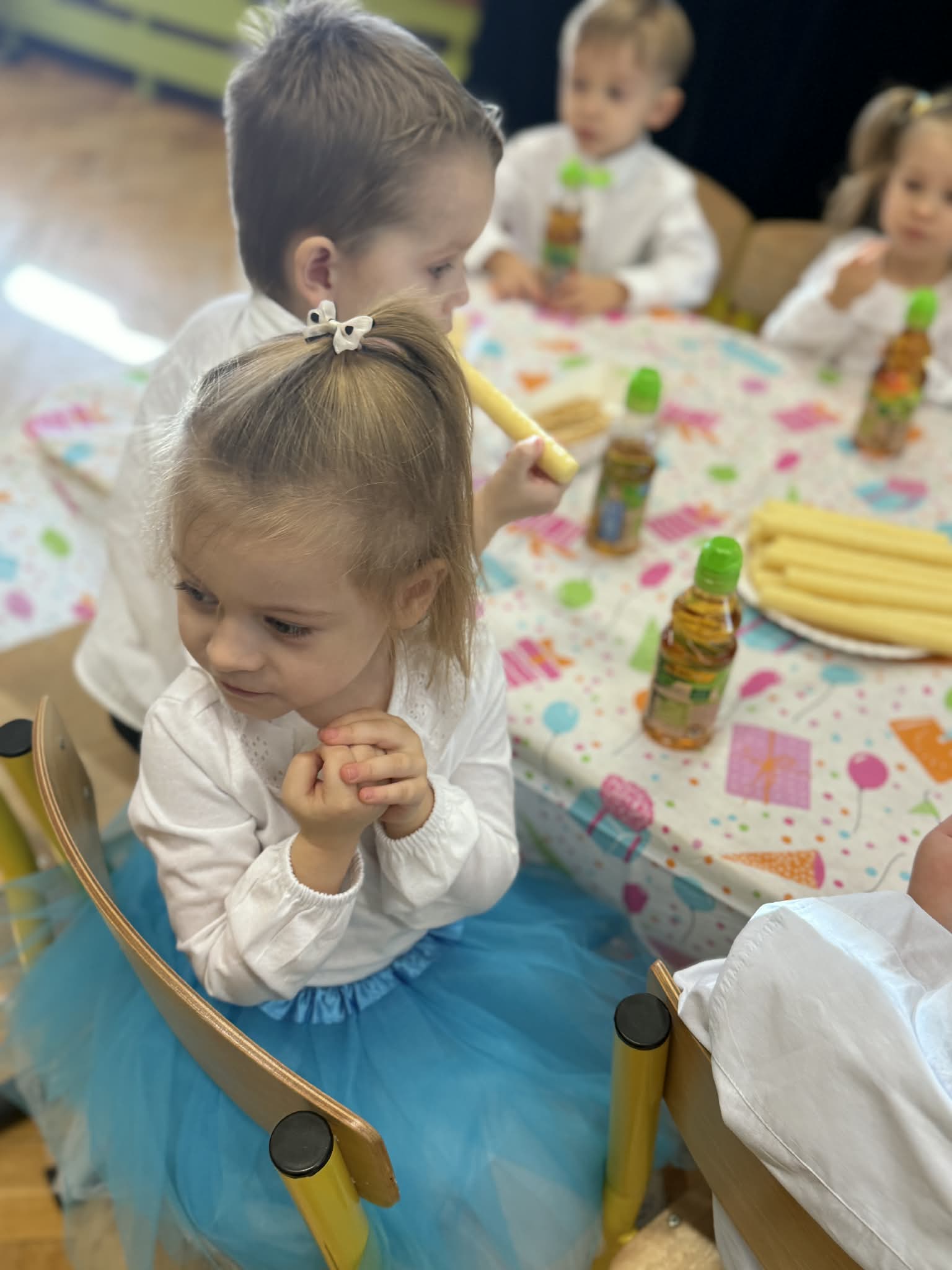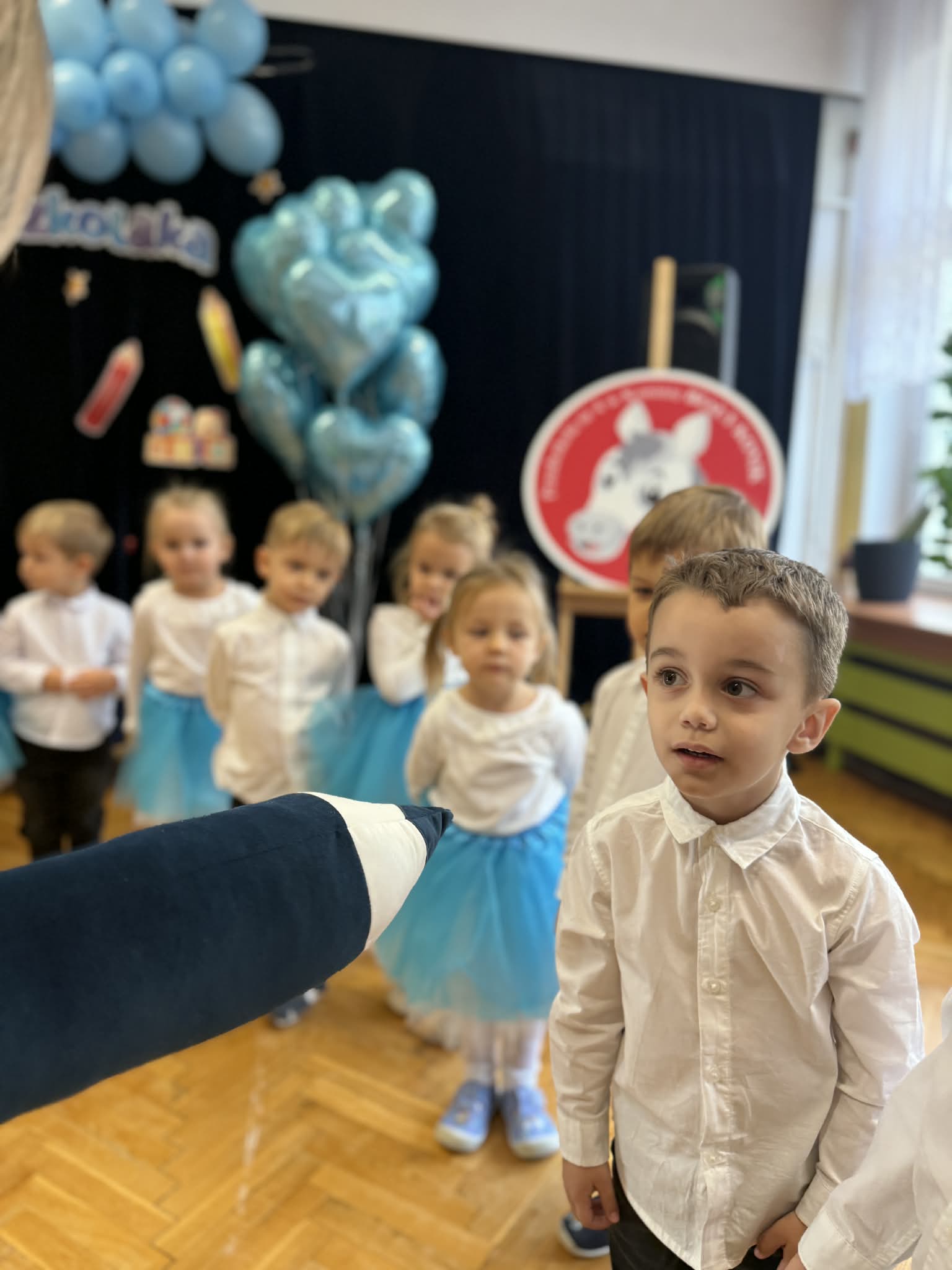 Uroczystość włączenia dzieci do grona przedszkolaków była dla naszej placówki szczególnym wydarzeniem i odbyła się 19 listopada. Mali uczestnicy zaprezentowali szeroki wachlarz swoich talentów – zaśpiewali, zatańczyli, recytowali oraz pokazali wszelakie zdolności artystyczne. Po części występów nastąpił moment oficjalnego przyjęcia do społeczności przedszkola – czyli symboliczne dotknięcie ramienia każdego dziecka piękną kredką. Aby uczcić ten ważny dzień, wychowawczynie podarowały dzieciom pamiątkowe dyplomy oraz baloniki. Po części artystycznej, na maluchy czekały smakołyki, na które wszyscy niecierpliwie czekali.