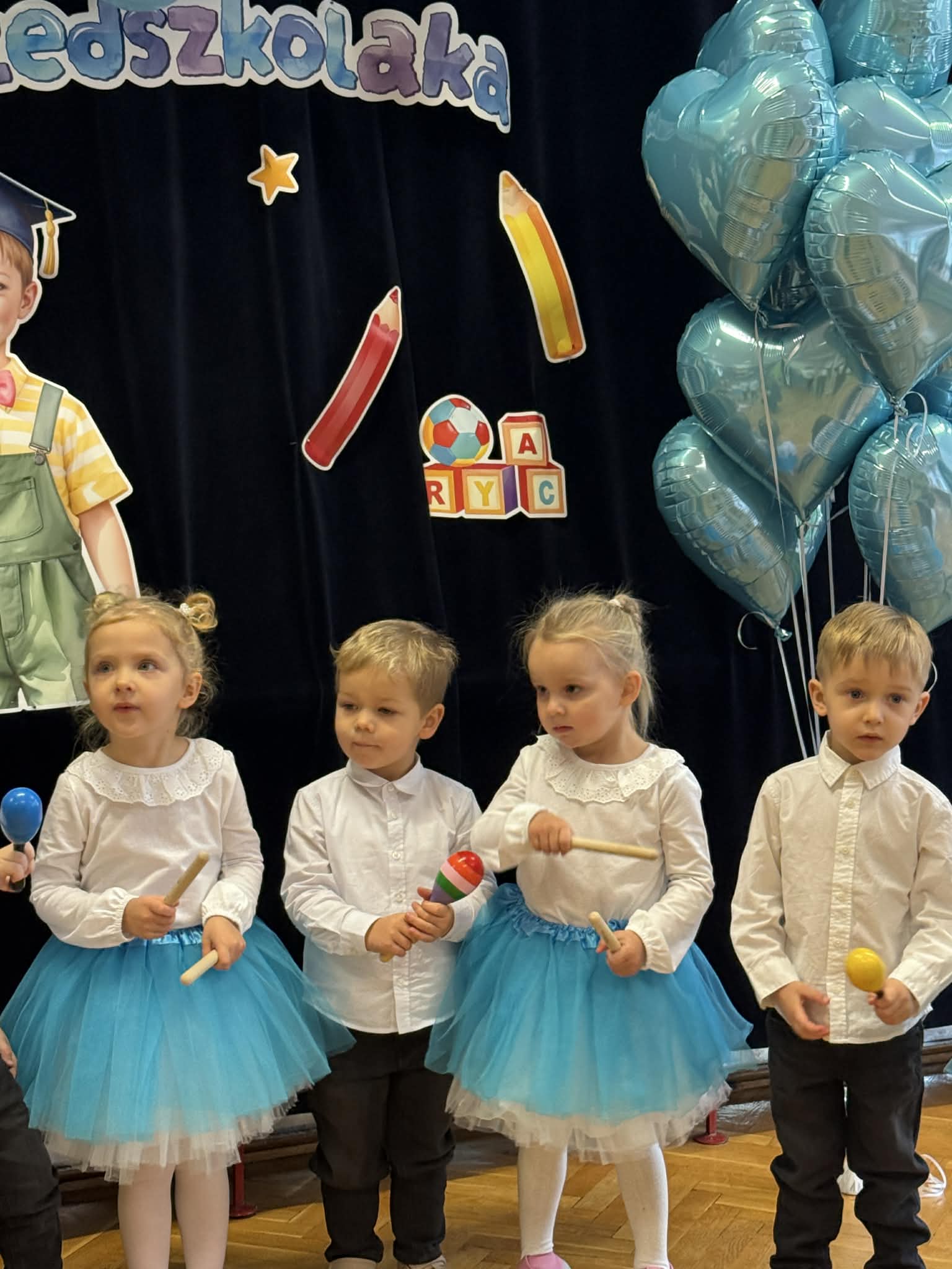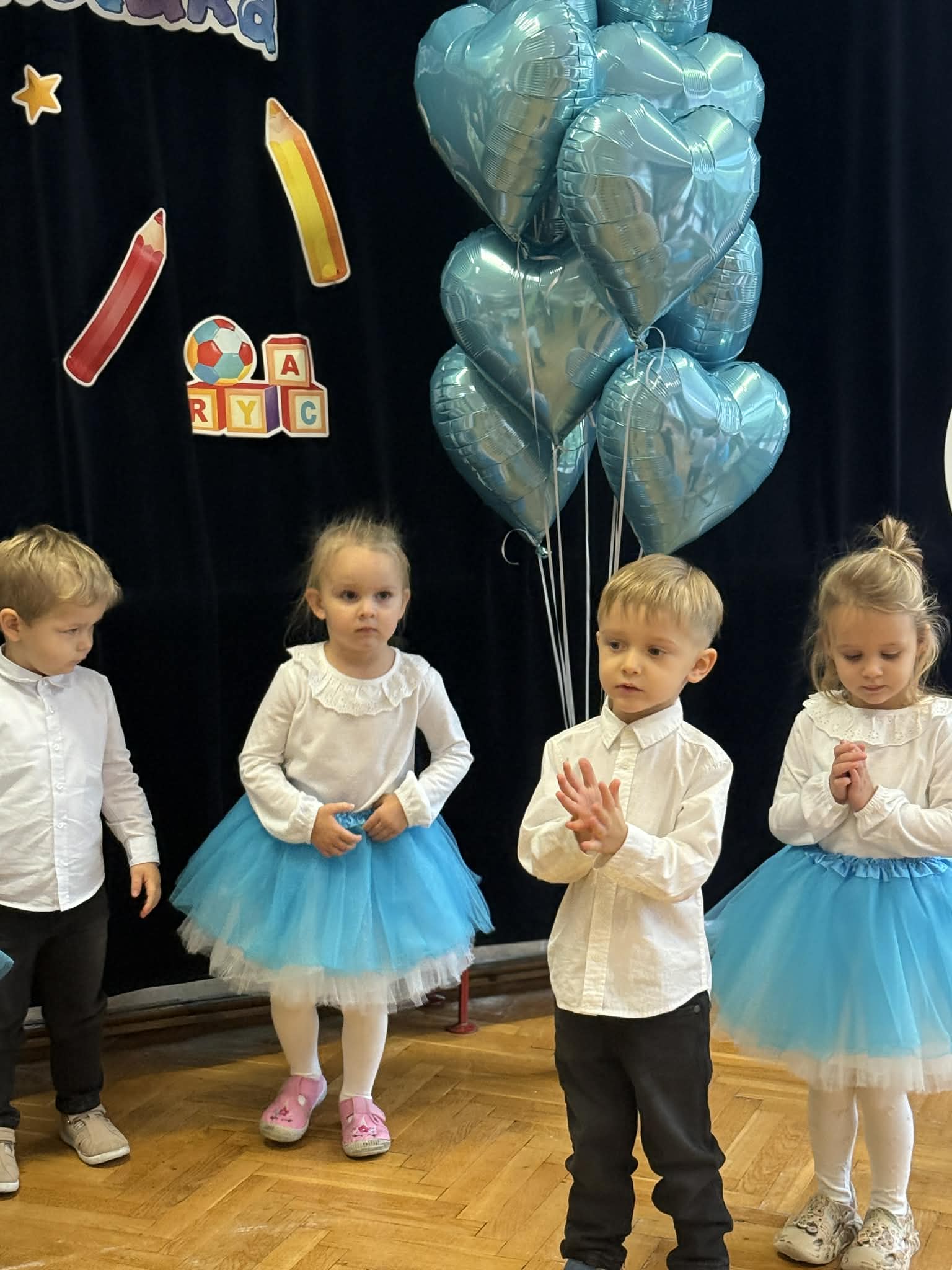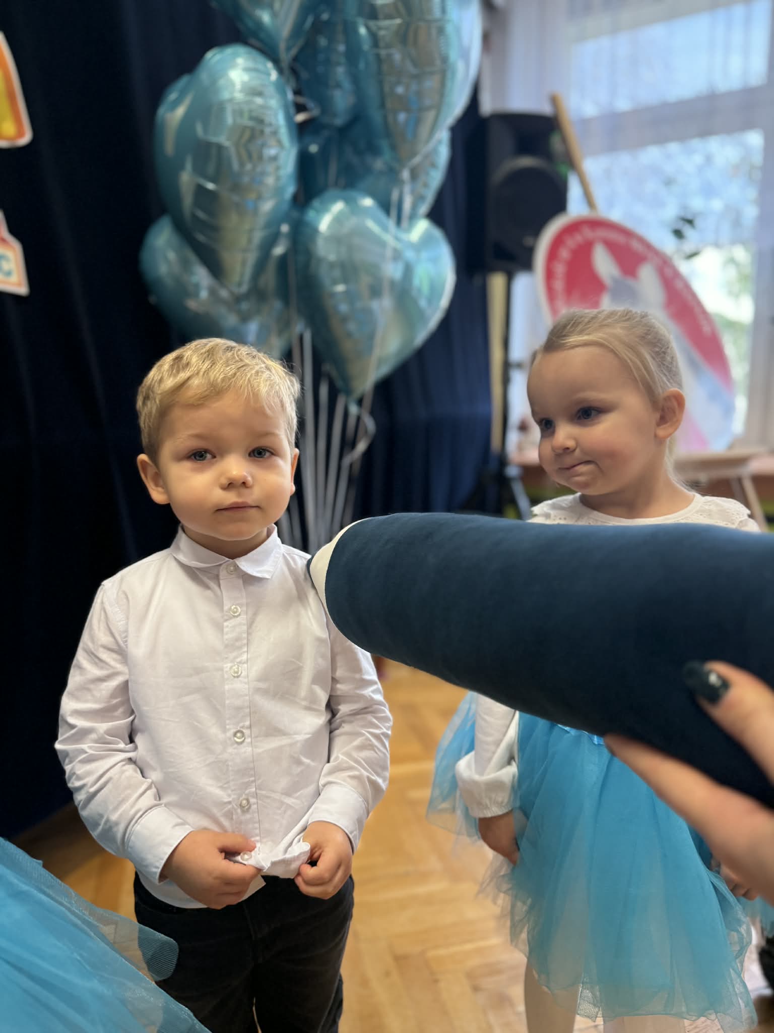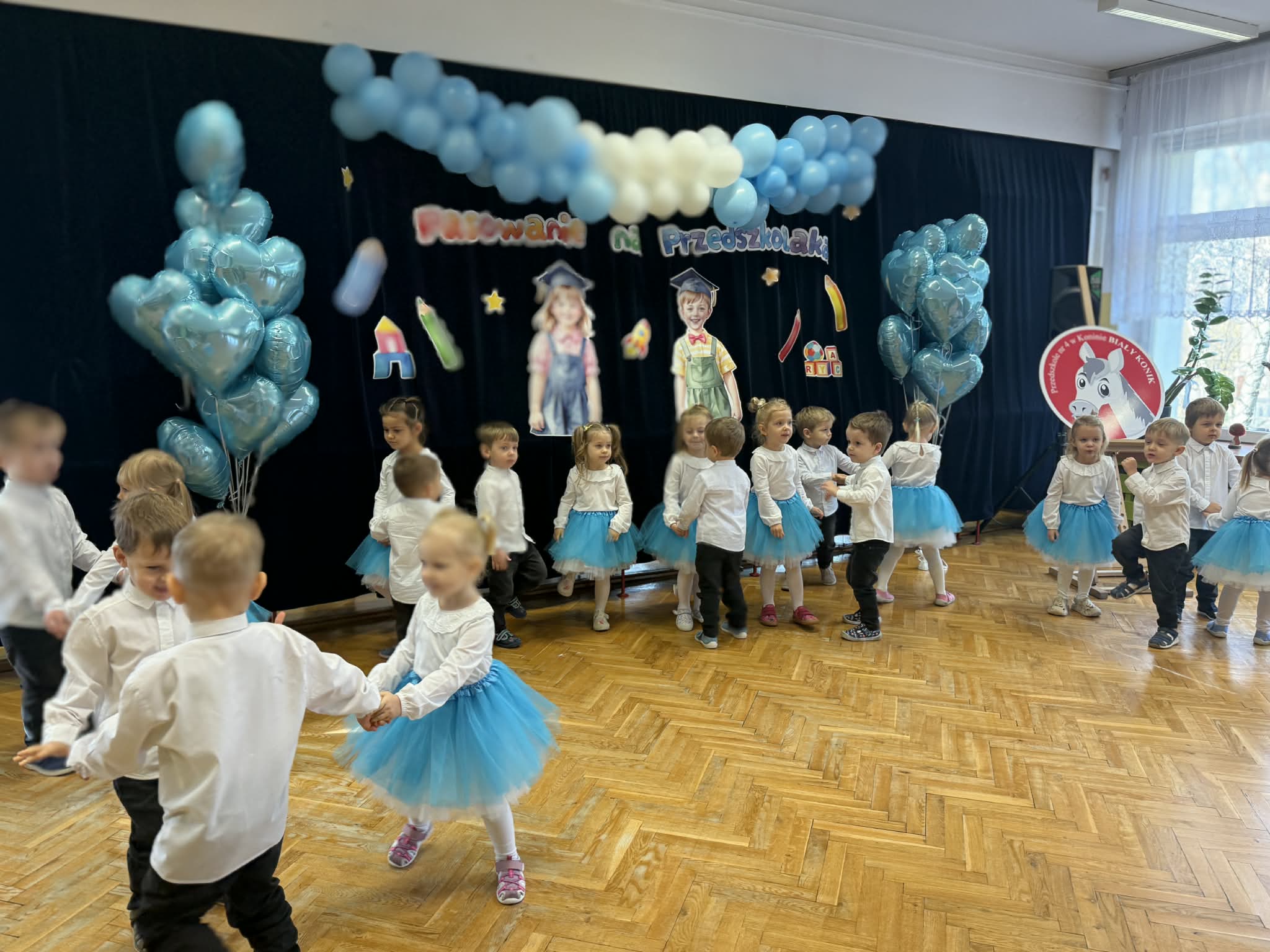Dla wielu przedszkolaków był to pierwszy tak istotny występ i wszyscy spisali się znakomicie, zasługując na ogromne brawa. Rodzicom gratulujemy tak utalentowanych dzieci oraz składamy ogromne podziękowania za pomoc w przygotowaniu uroczystości. Szczególnie dziękujemy Tacie Hani za piękną oprawę balonową, która dodała atrakcyjności naszym występom oraz była cudownym prezentem dla naszych pociech. Zapraszamy do galerii.