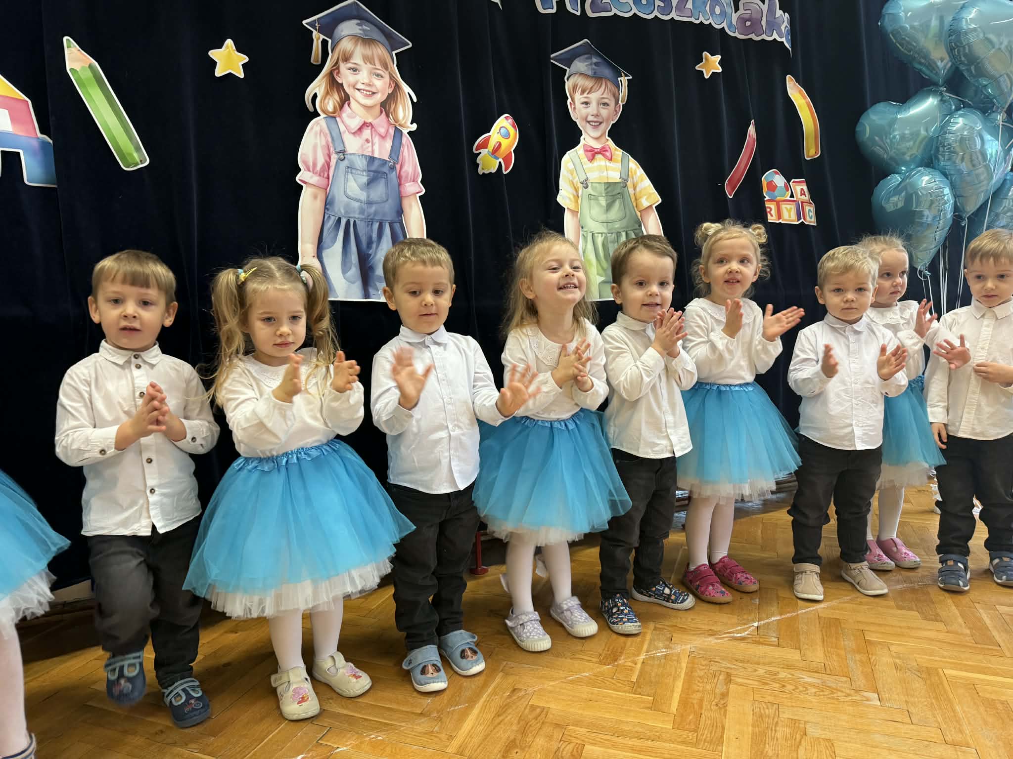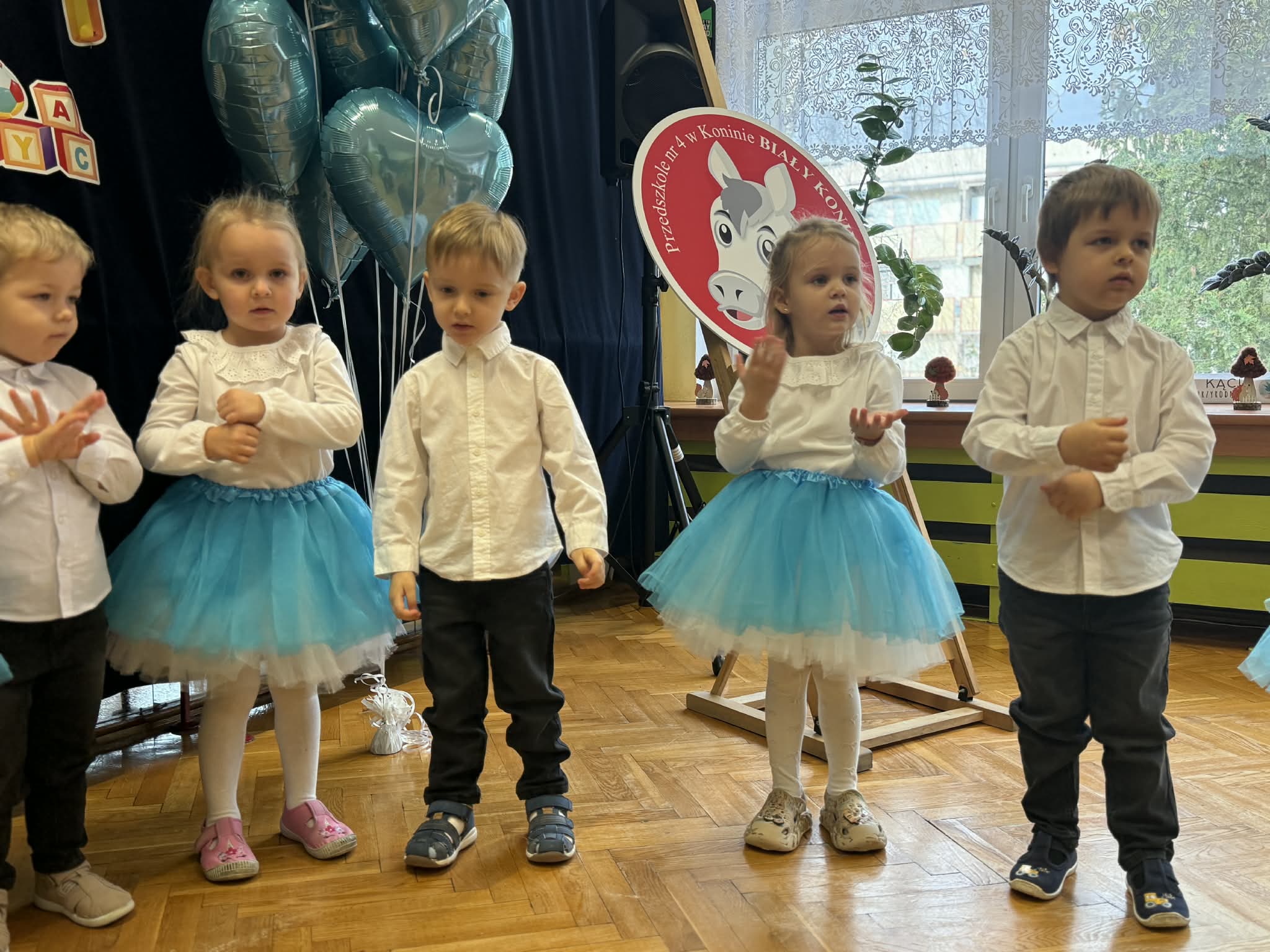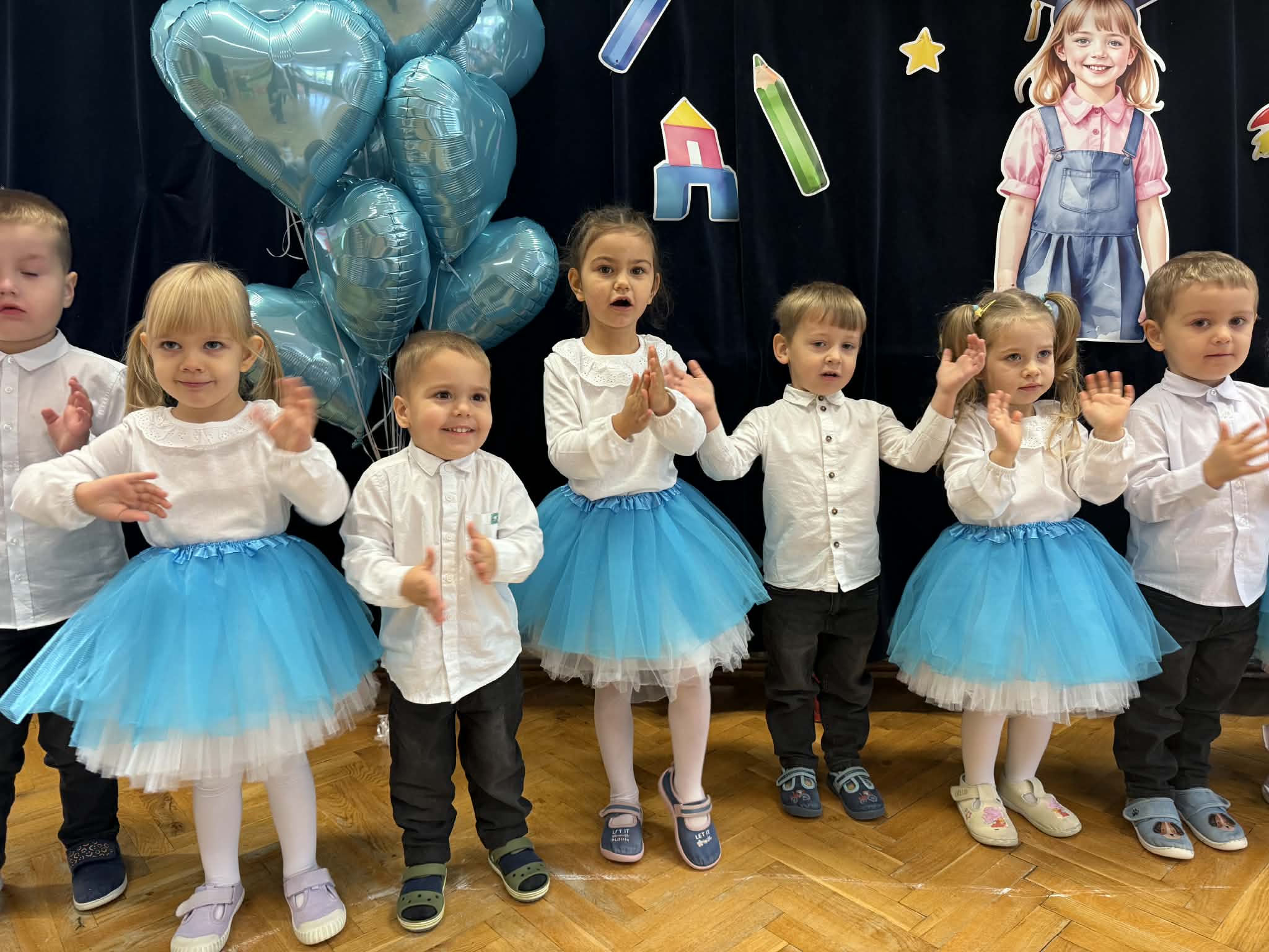 Dla wielu przedszkolaków był to pierwszy tak istotny występ i wszyscy spisali się znakomicie, zasługując na ogromne brawa. Rodzicom gratulujemy tak utalentowanych dzieci oraz składamy ogromne podziękowania za pomoc w przygotowaniu uroczystości. Szczególnie dziękujemy Tacie Hani za piękną oprawę balonową, która dodała atrakcyjności naszym występom oraz była cudownym prezentem dla naszych pociech. Zapraszamy do galerii.