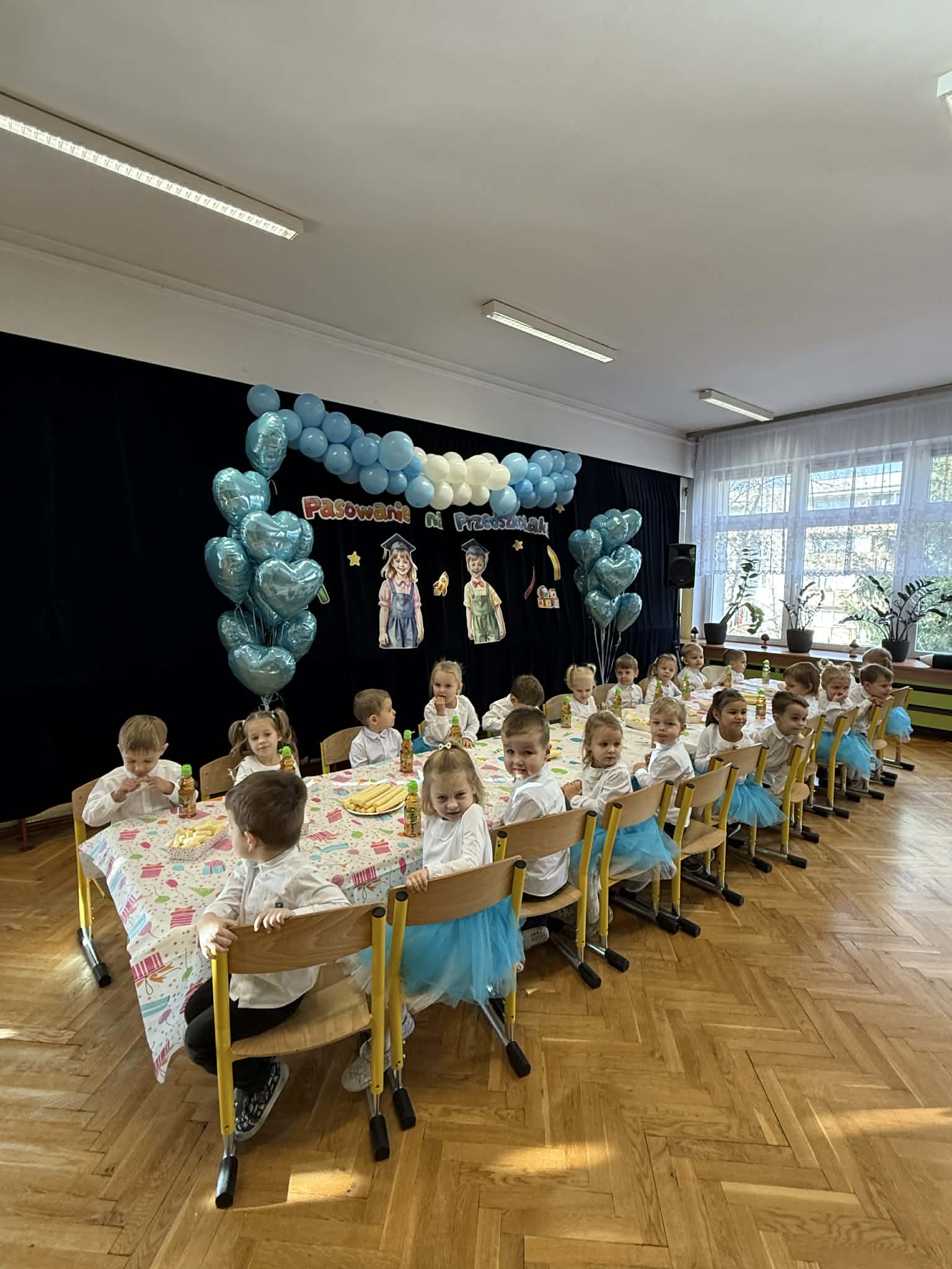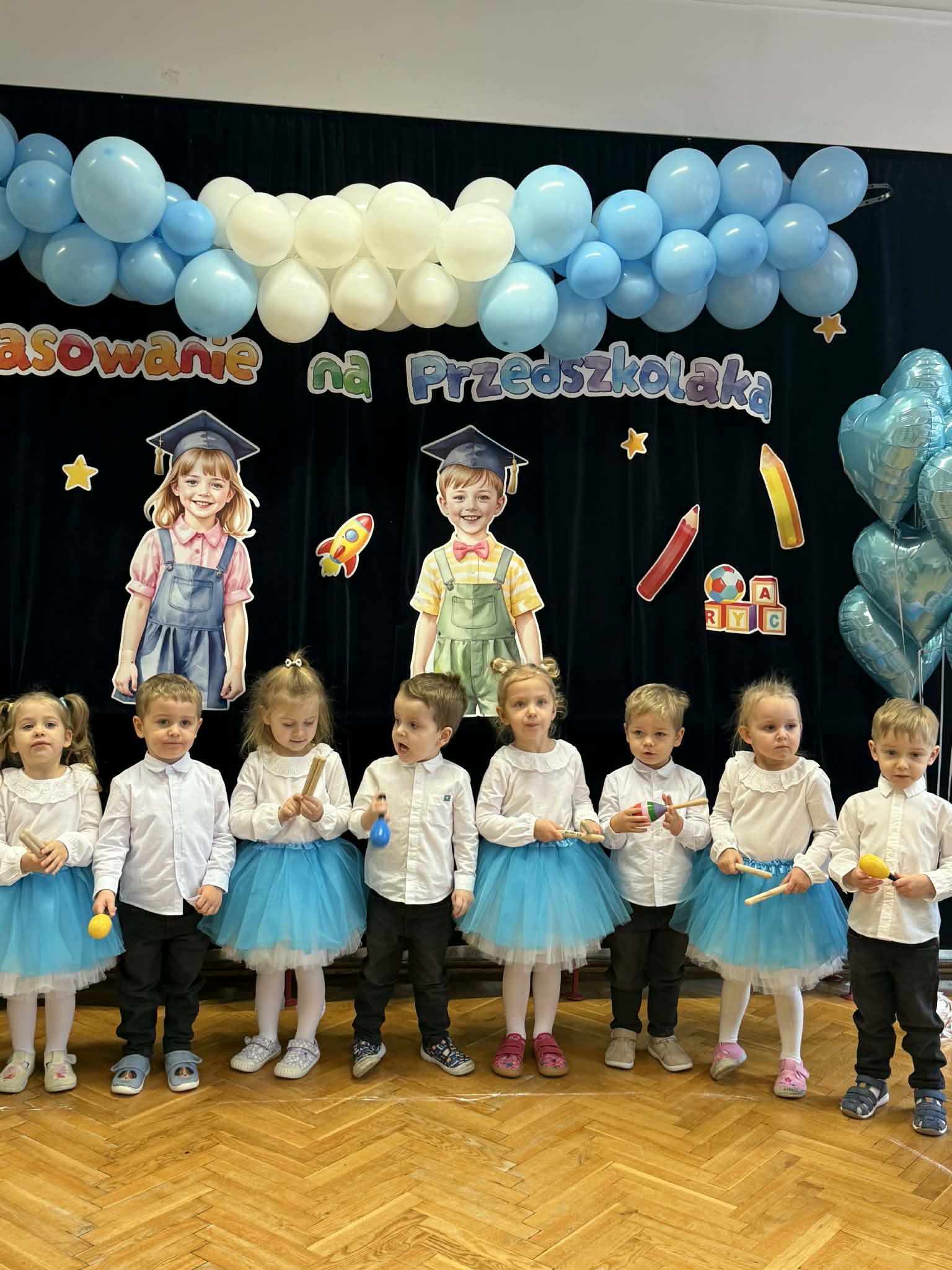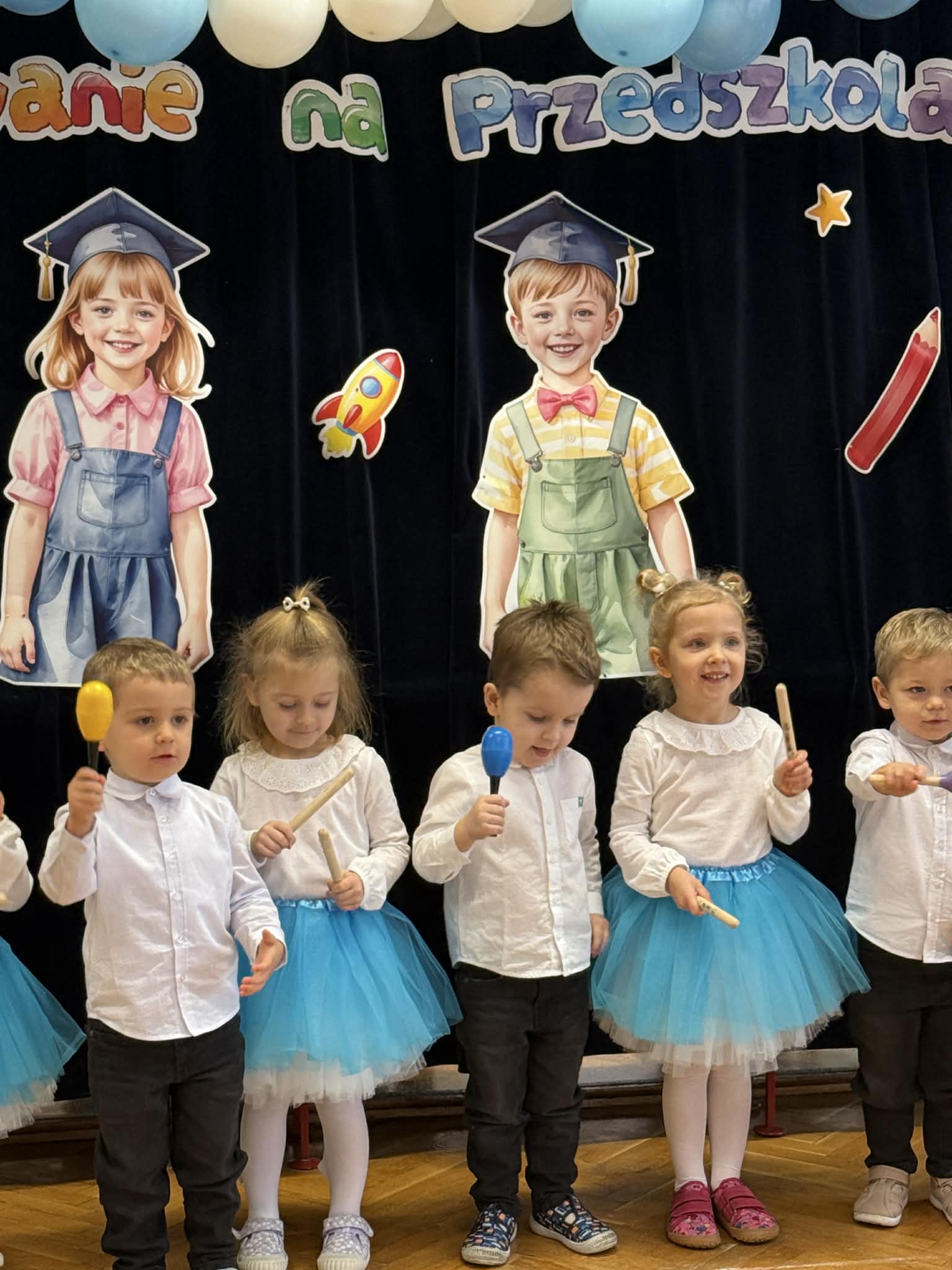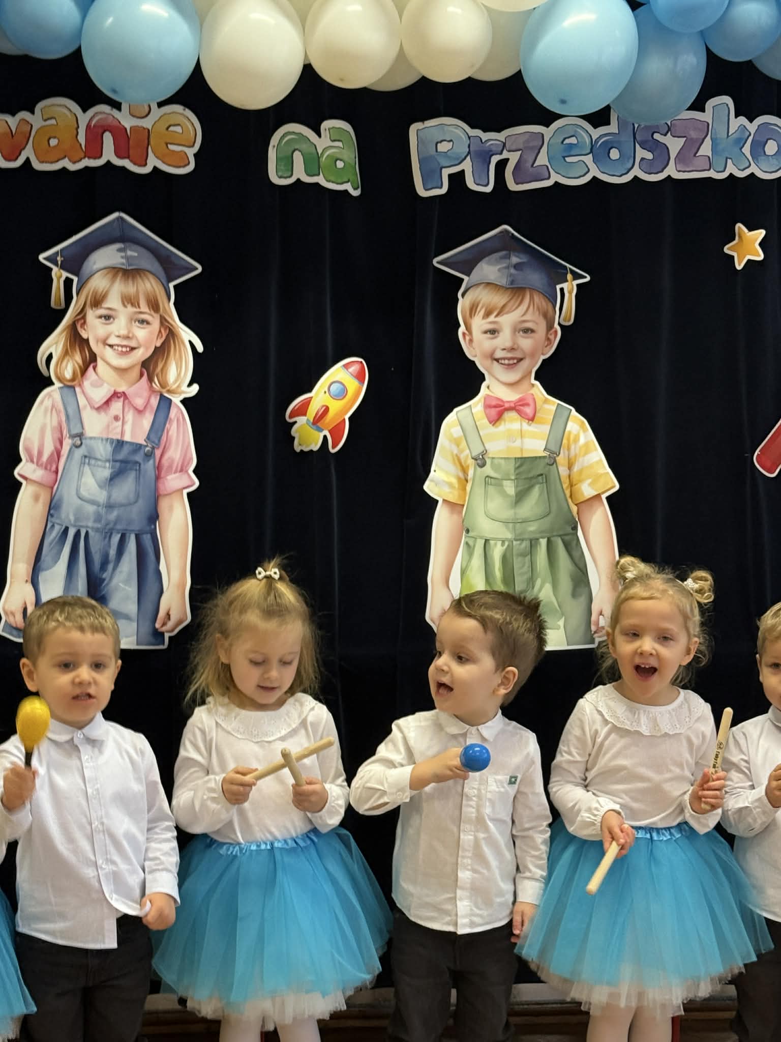 Dla wielu przedszkolaków był to pierwszy tak istotny występ i wszyscy spisali się znakomicie, zasługując na ogromne brawa. Rodzicom gratulujemy tak utalentowanych dzieci oraz składamy ogromne podziękowania za pomoc w przygotowaniu uroczystości. Szczególnie dziękujemy Tacie Hani za piękną oprawę balonową, która dodała atrakcyjności naszym występom oraz była cudownym prezentem dla naszych pociech. Zapraszamy do galerii.