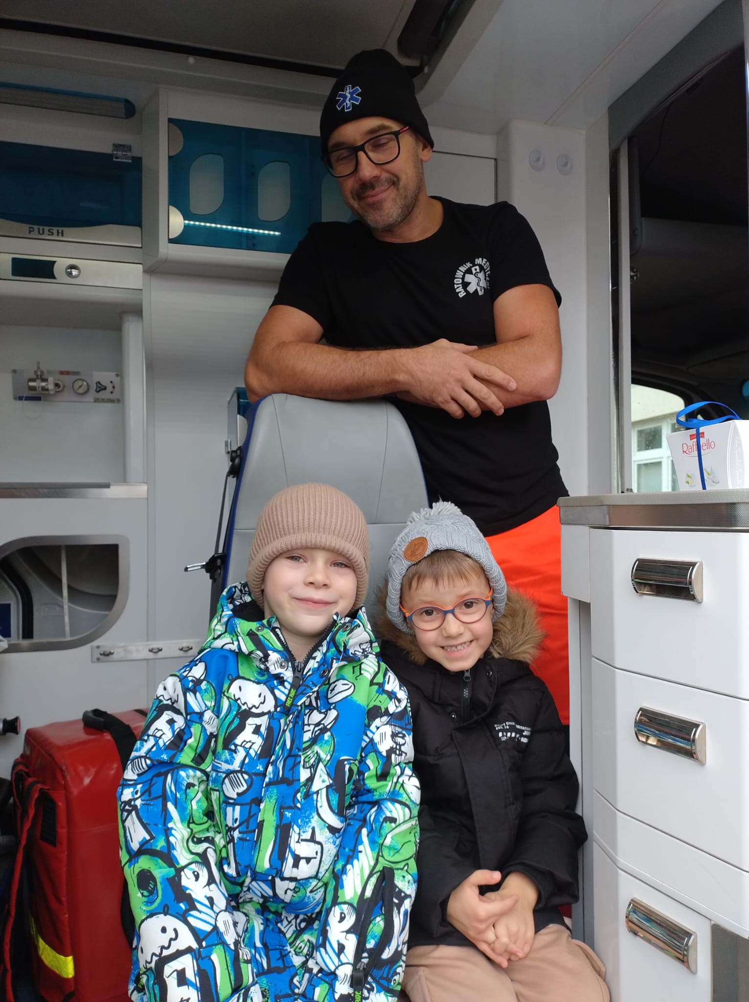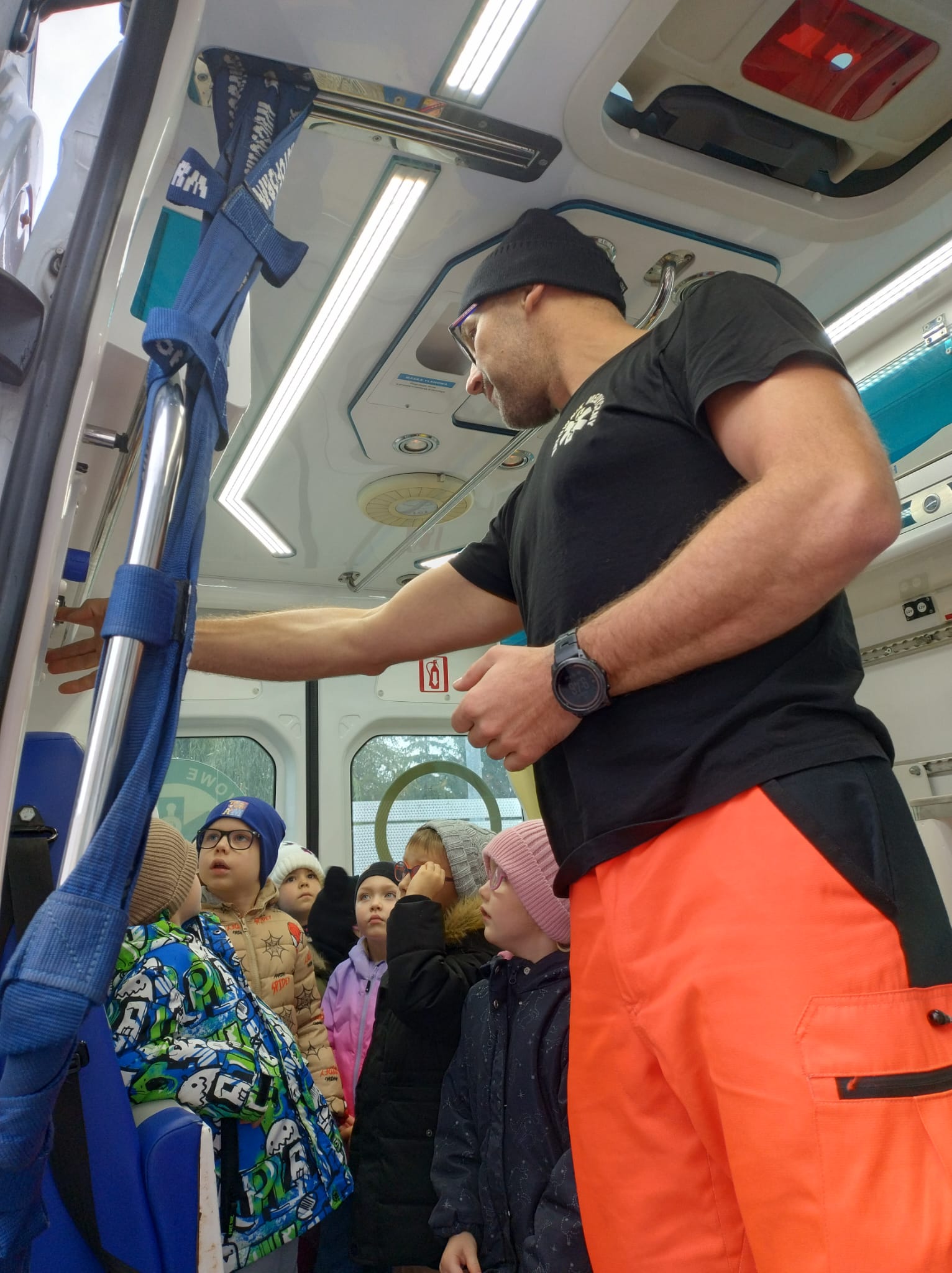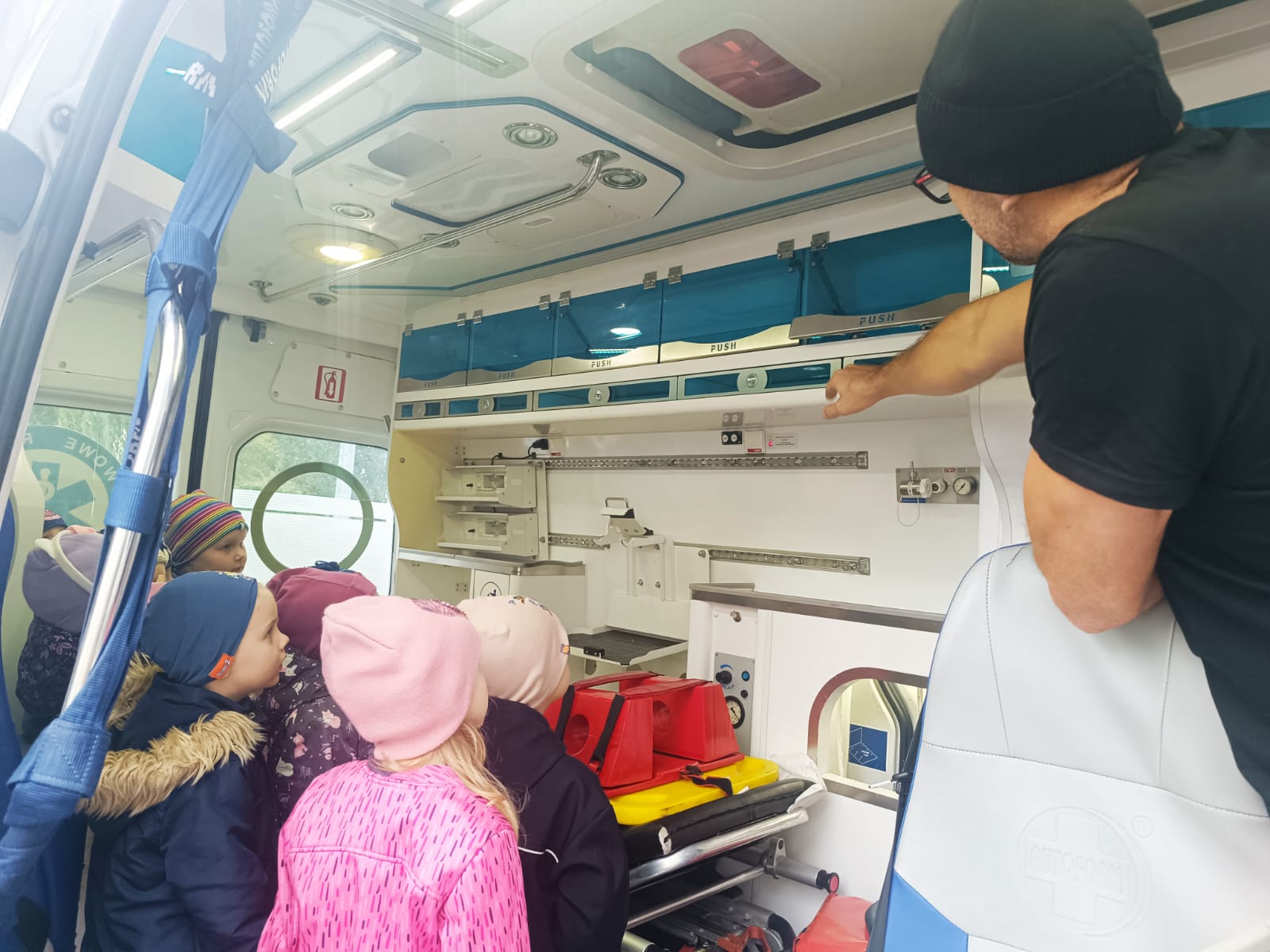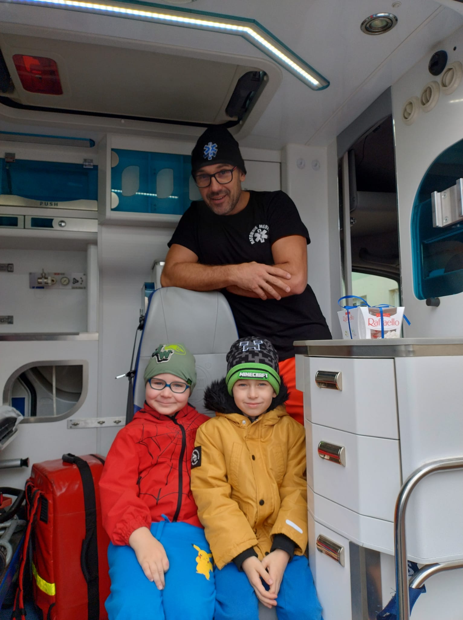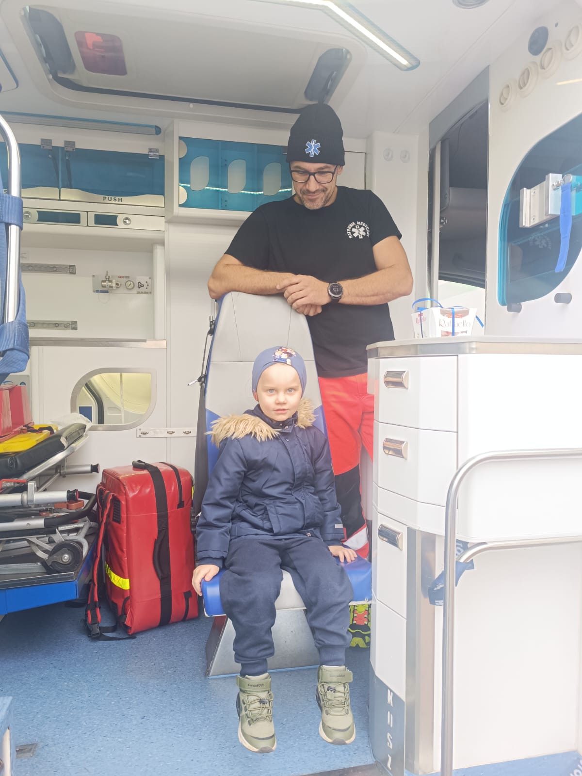 Dnia 28 października w naszym przedszkolu odbyło się wyjątkowe spotkanie z ratownikiem medycznym. Pan Artur Baranowski, który pracuje w Wielkopolskim Centrum Ratownictwa Medycznego w niezwykle przystępny sposób opowiedział dzieciom o swoim zawodzie, niesieniu pomocy i ratowaniu życia. Dzieci miały okazję zobaczyć z bliska karetkę pogotowia i przekonać się, jak ważna jest organizacja stanowiska pracy, gdy trwa walka o zdrowie i życie pacjenta. Podczas zajęć dzieci poznały podstawowe zasady udzielania pierwszej pomocy, zobaczyły torbę ratowniczą i akcesoria, które mogą się przydać przy mniejszym i większym wypadku, nosze i inne niezbędne atrybuty używane podczas akcji ratunkowych. Przedszkolaki z dużym zainteresowaniem uczestniczyły w pokazie, zadawały wiele pytań, ale również wykazały się zdobytą wcześniej wiedzą. Spotkanie było bardzo pouczające i z pewnością na długo pozostanie w pamięci dzieci.